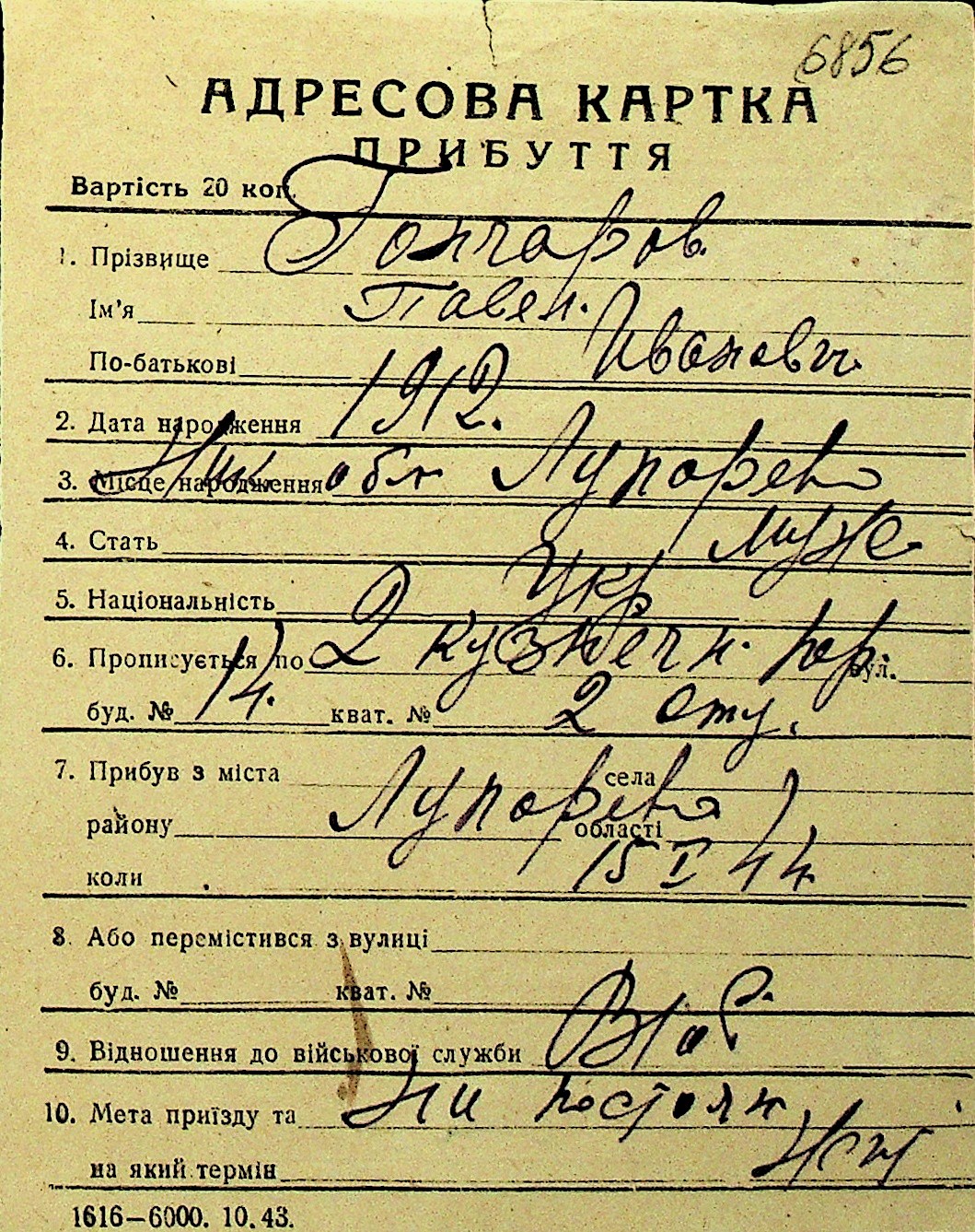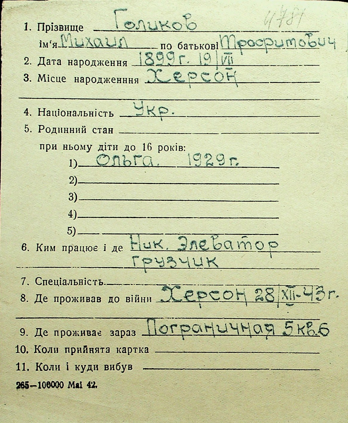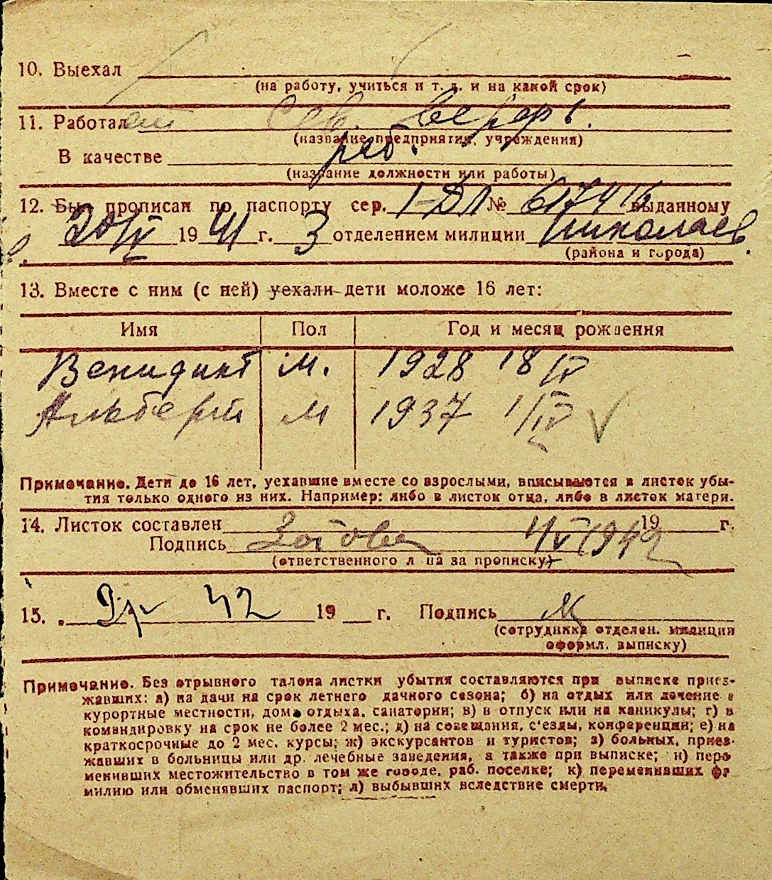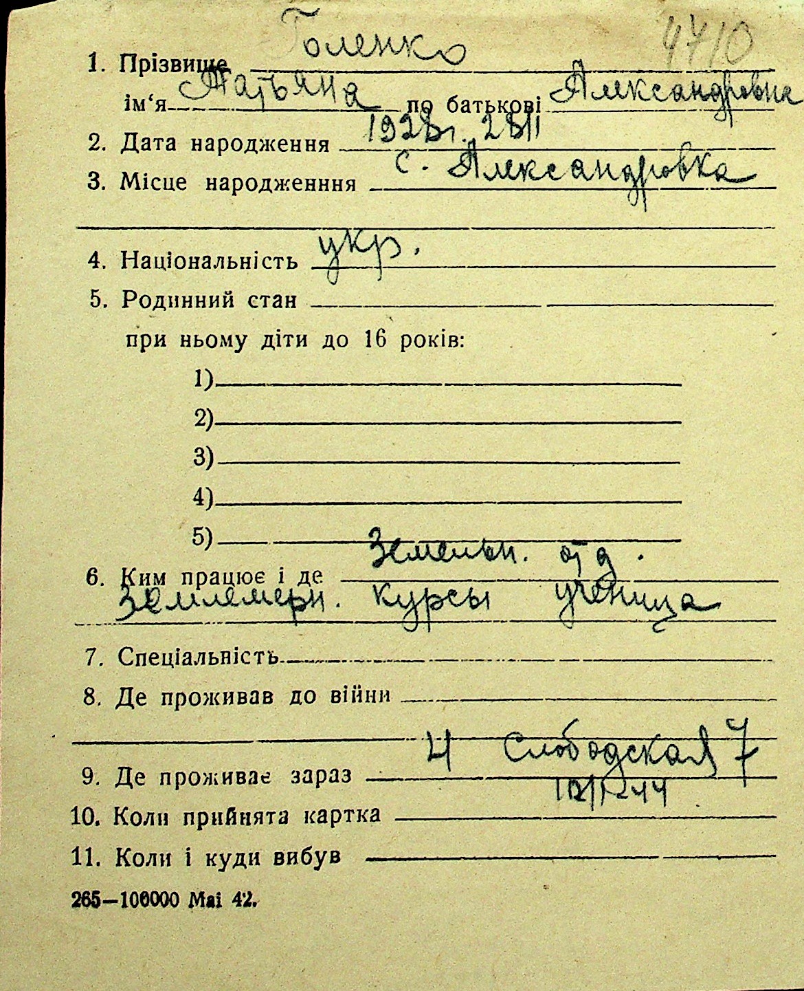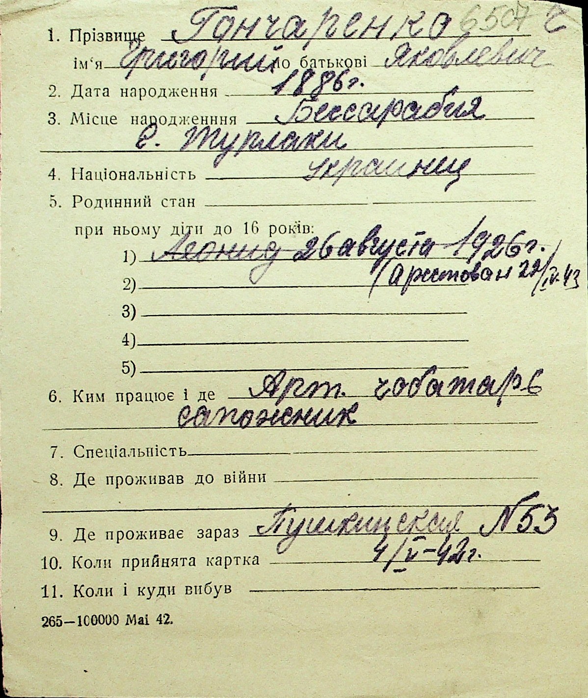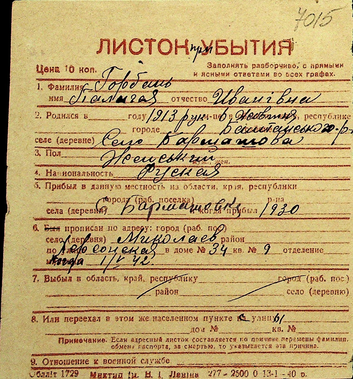 • • Перелік карток до фонду № Н-1016