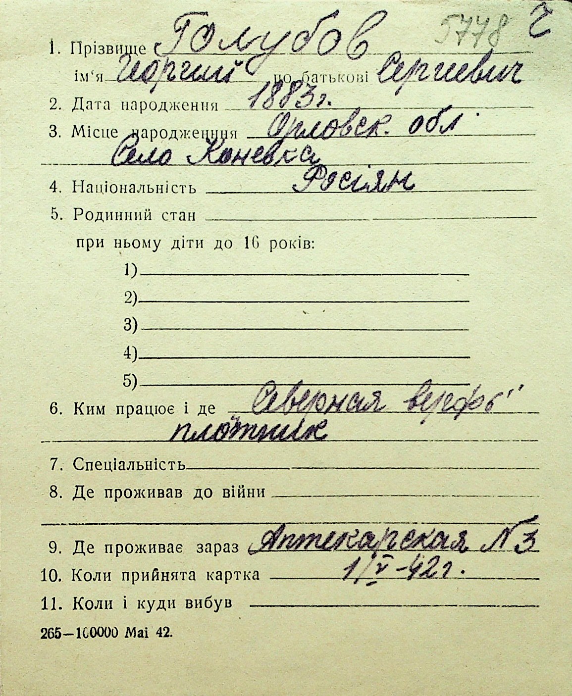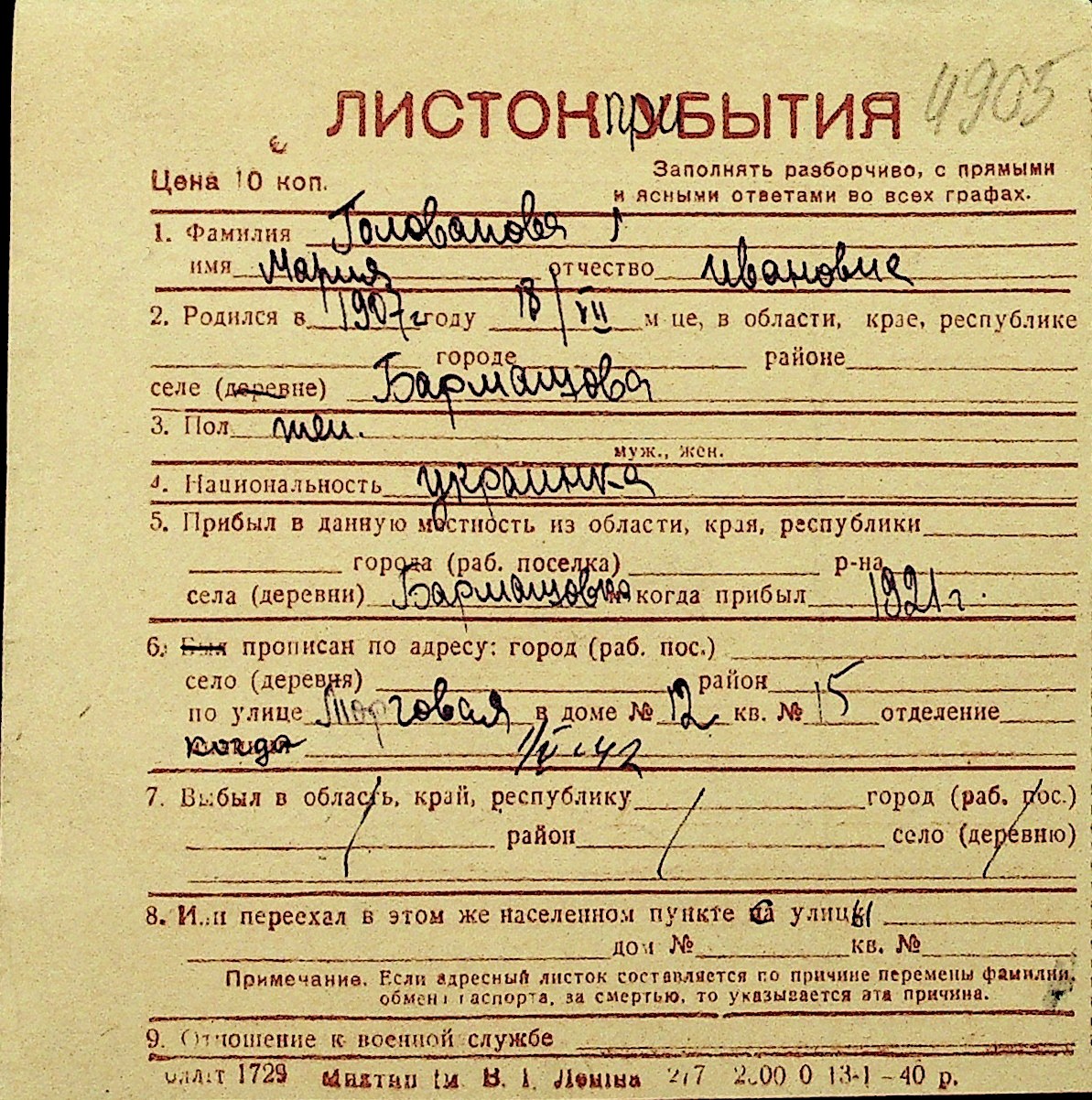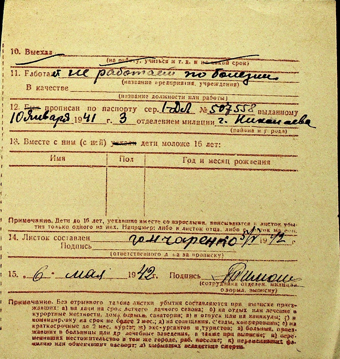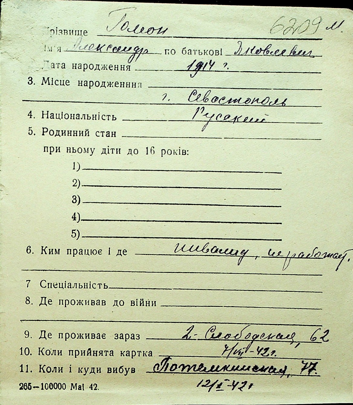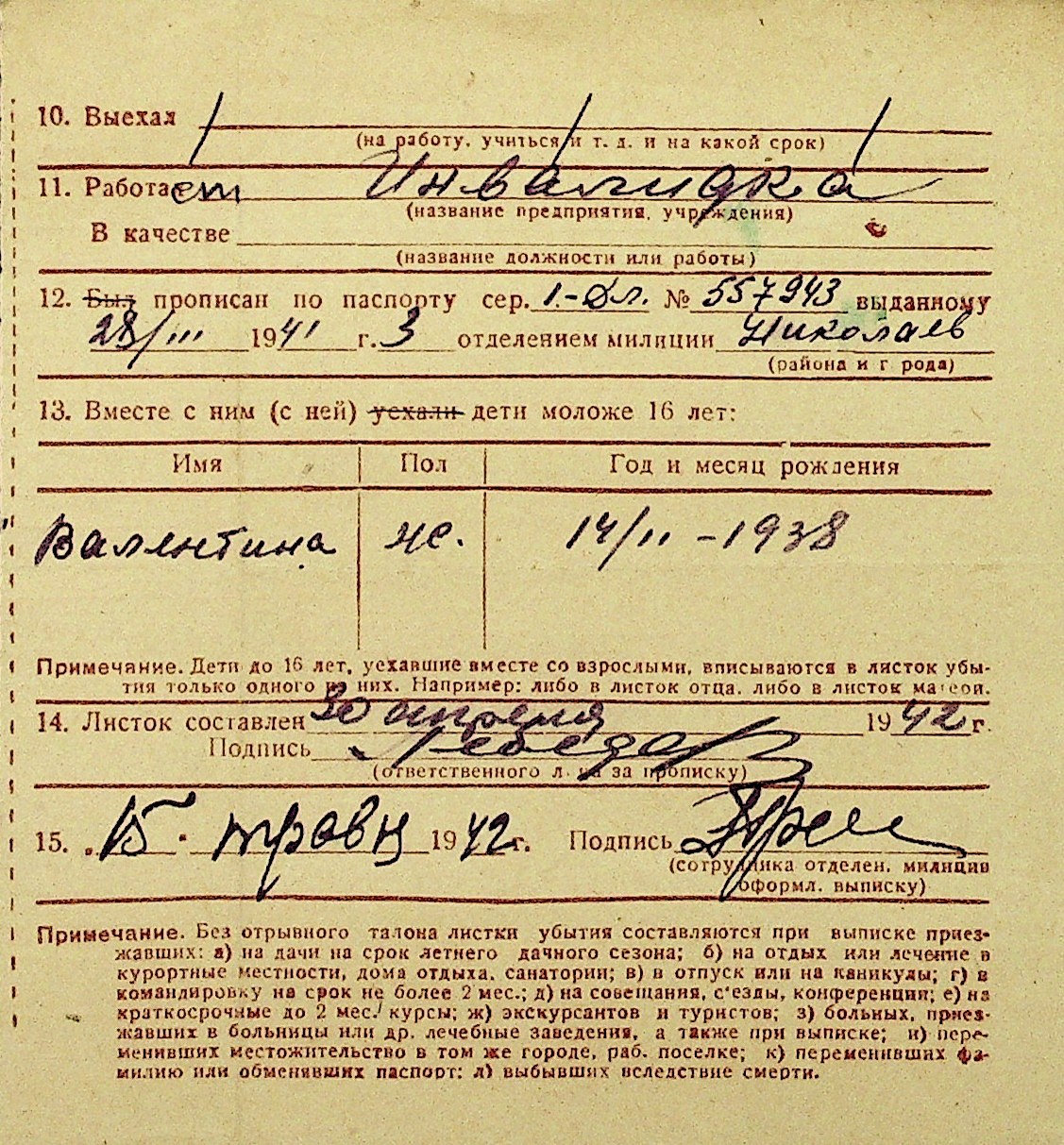 • • Перелік карток до фонду № Н-1016