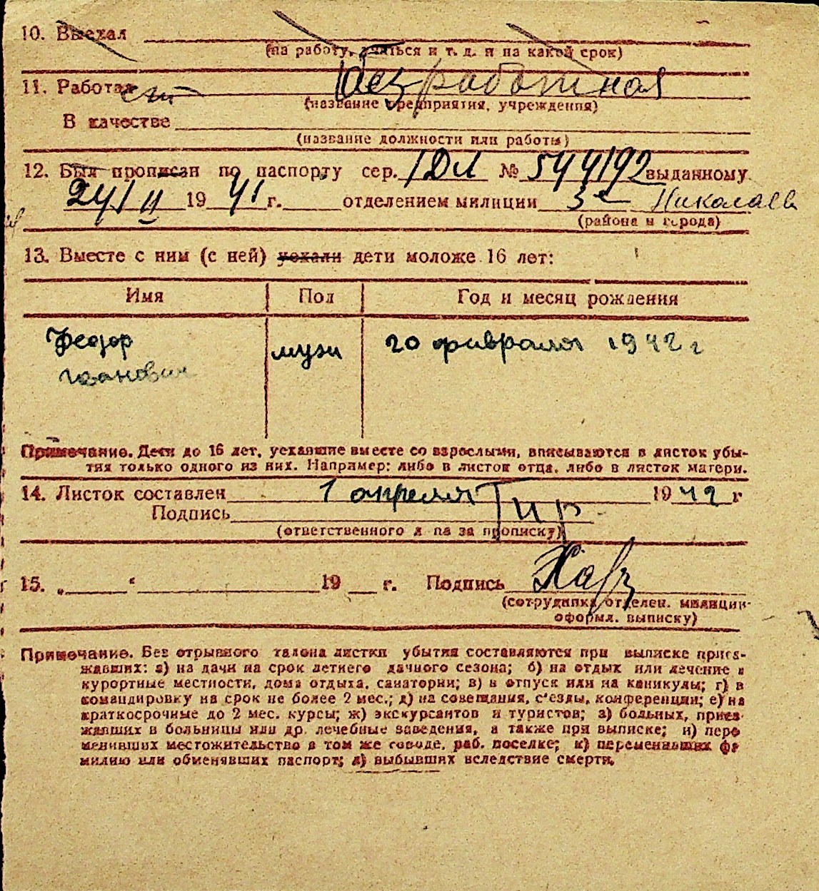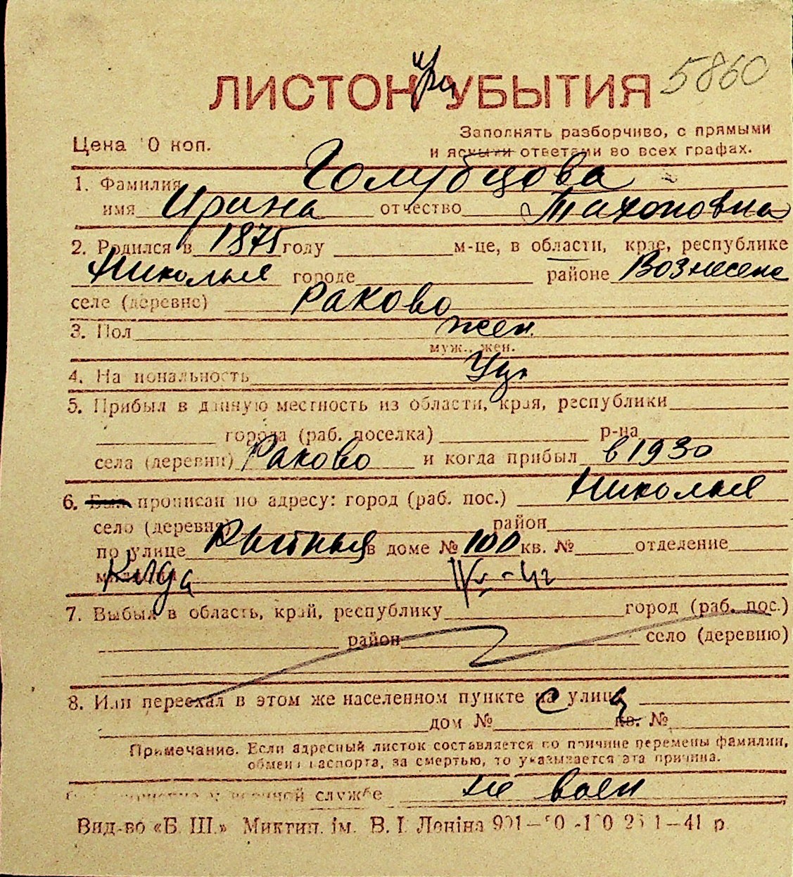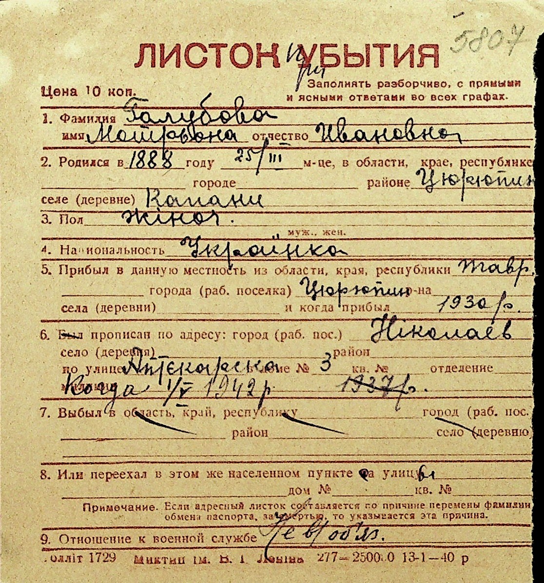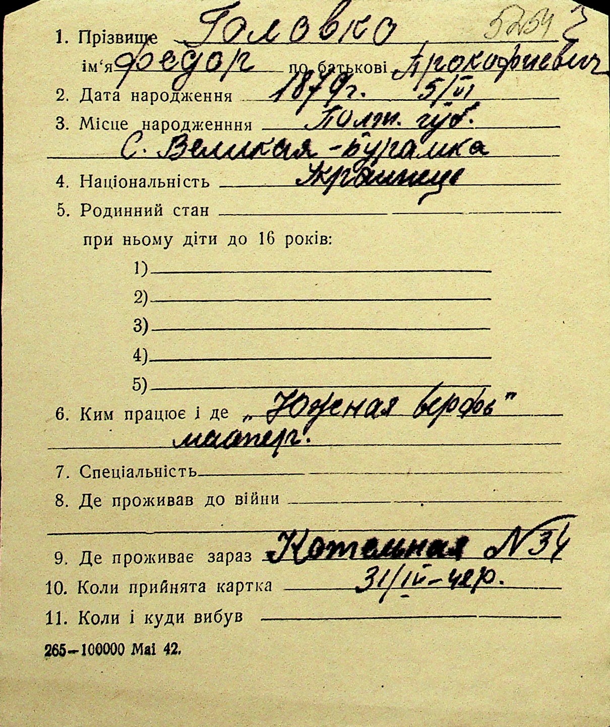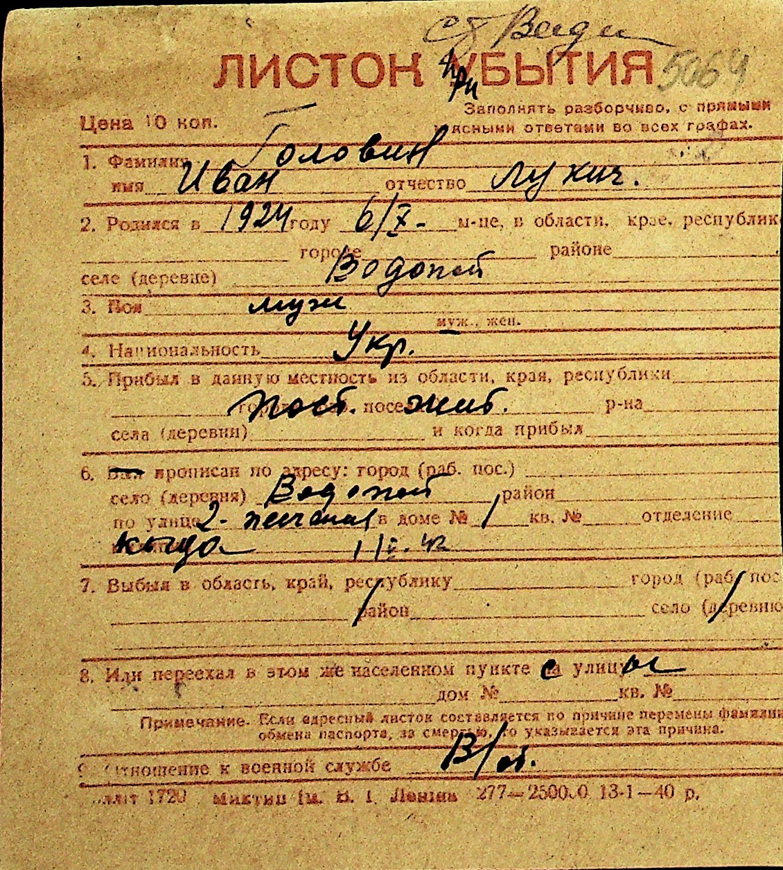 • • Перелік карток до фонду № Н-1016