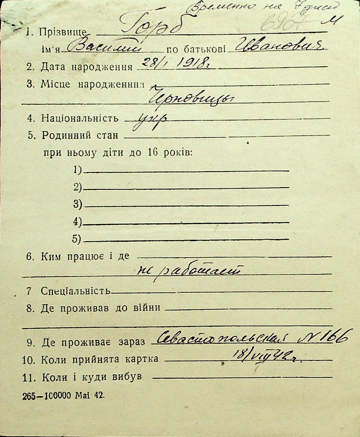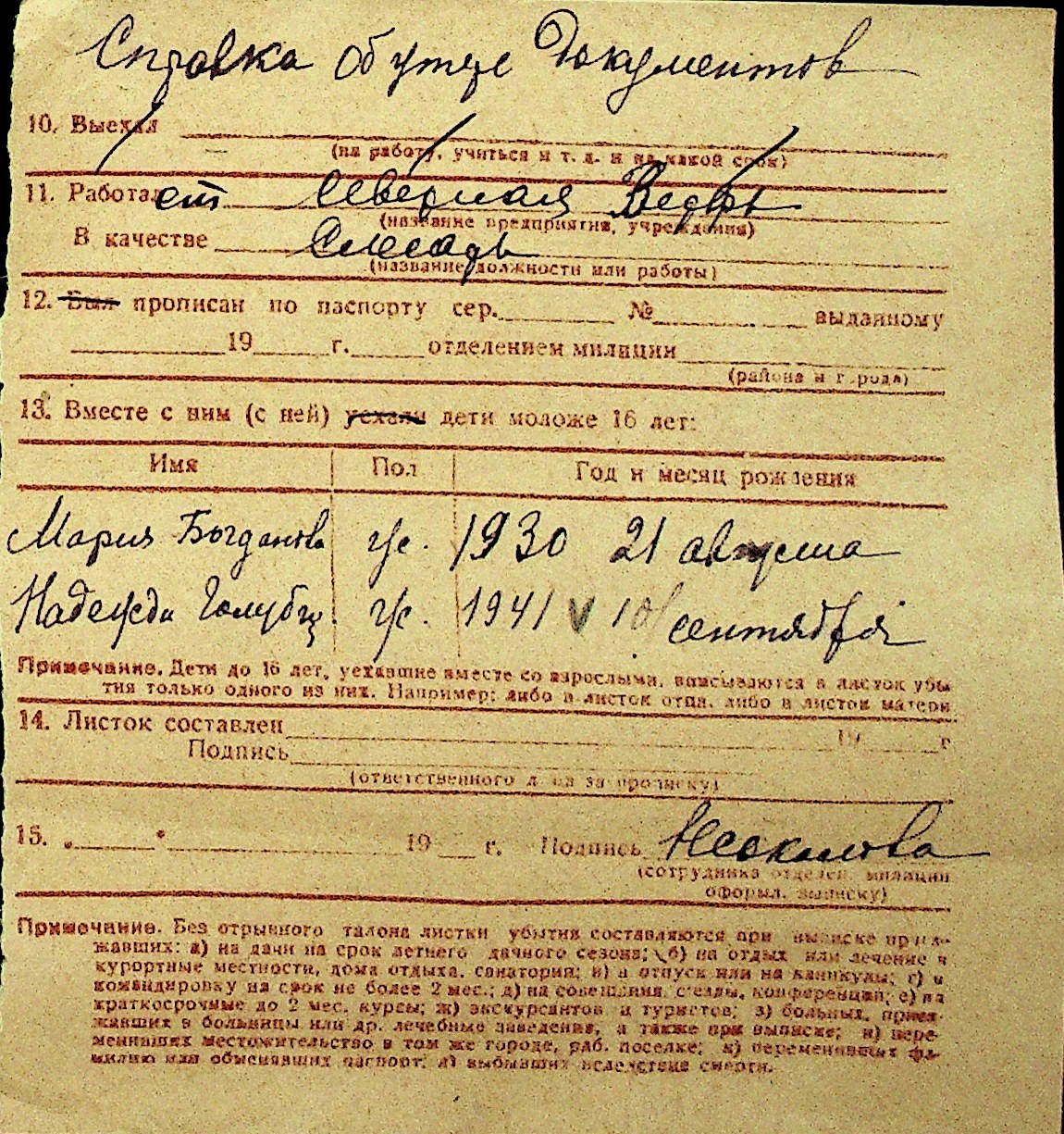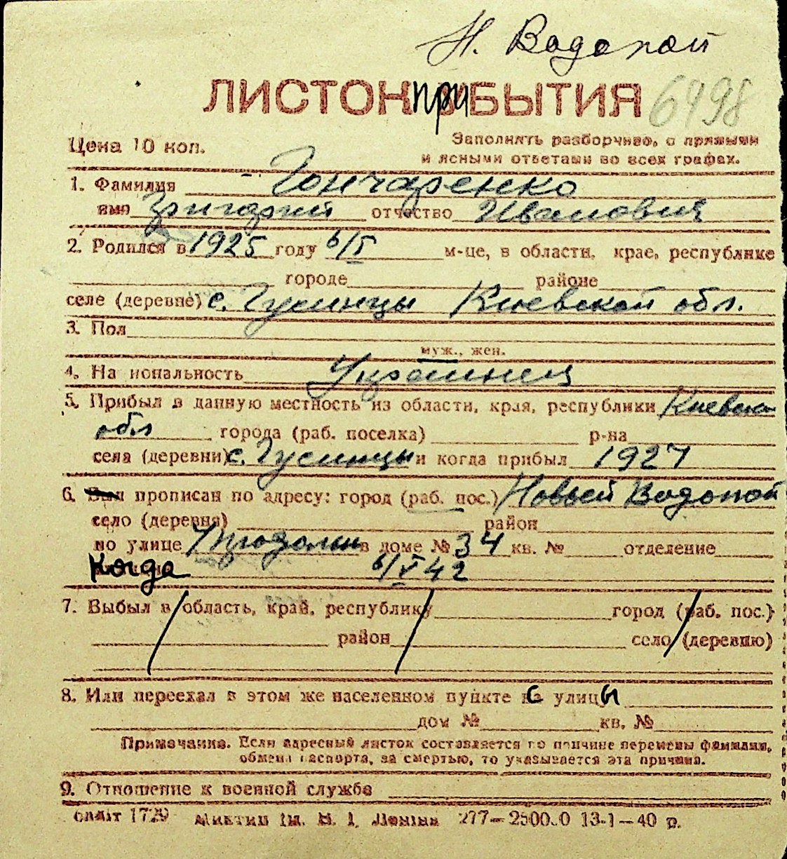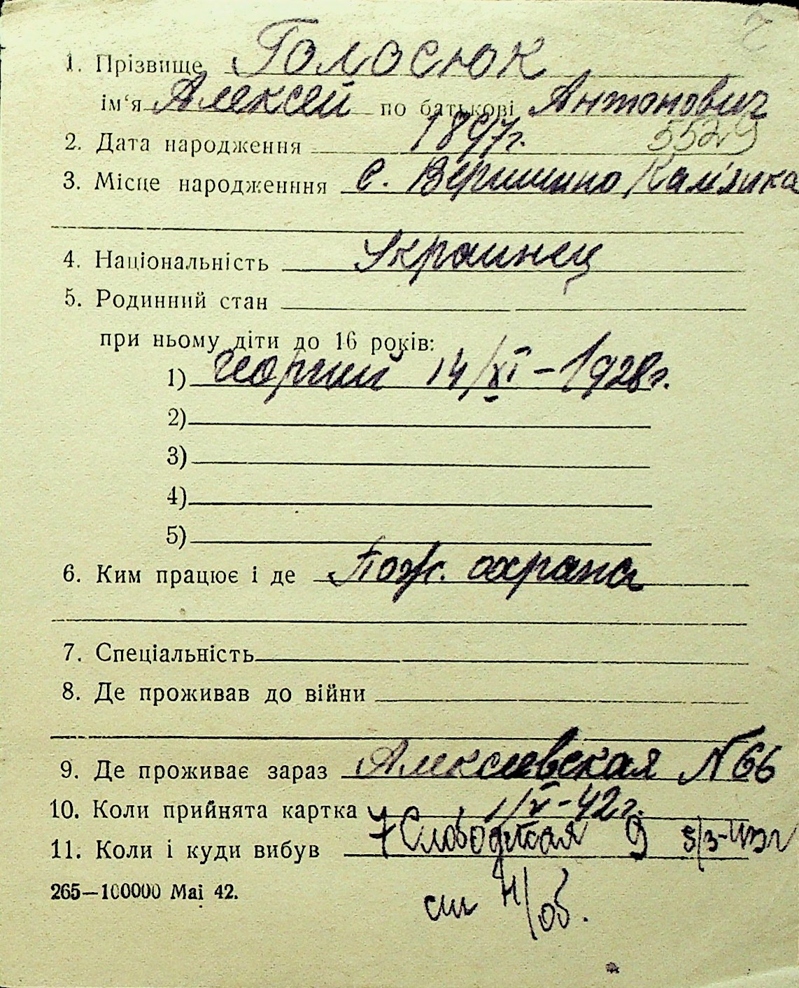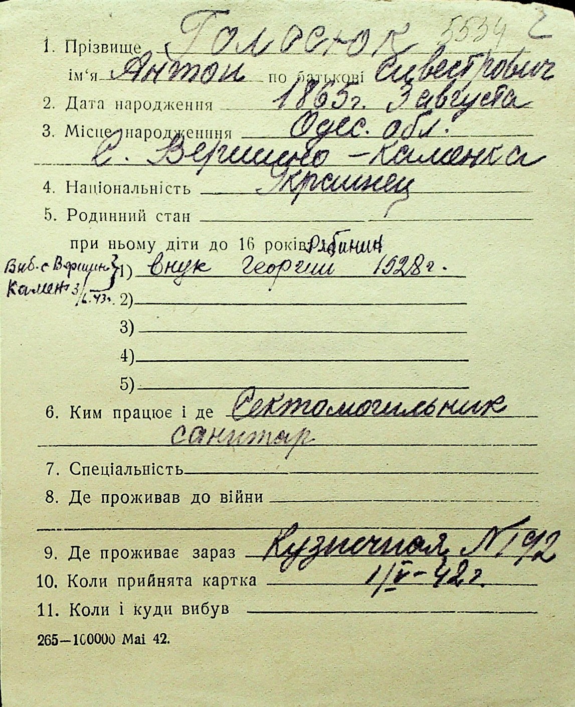 • • Перелік карток до фонду № Н-1016