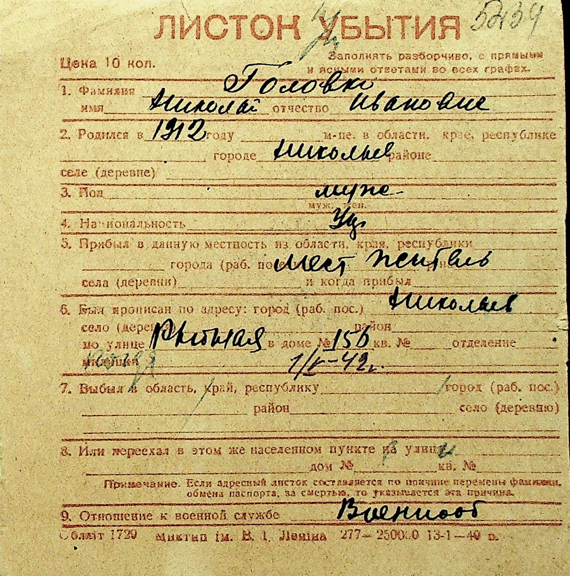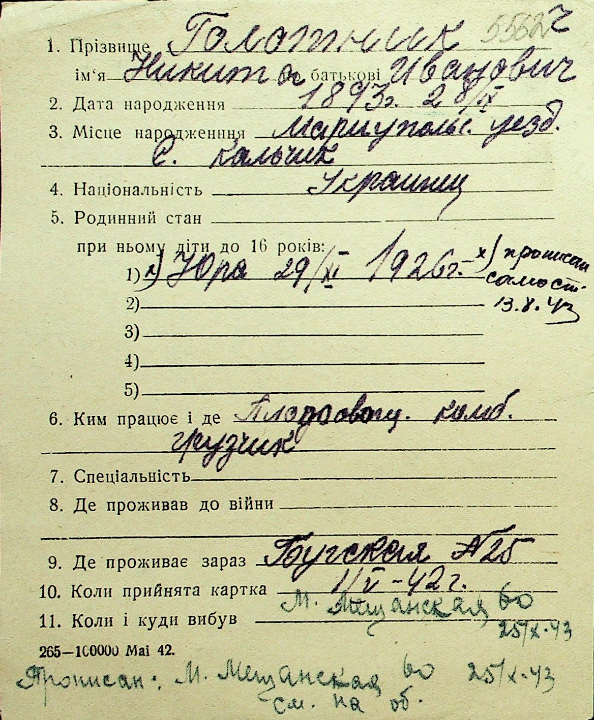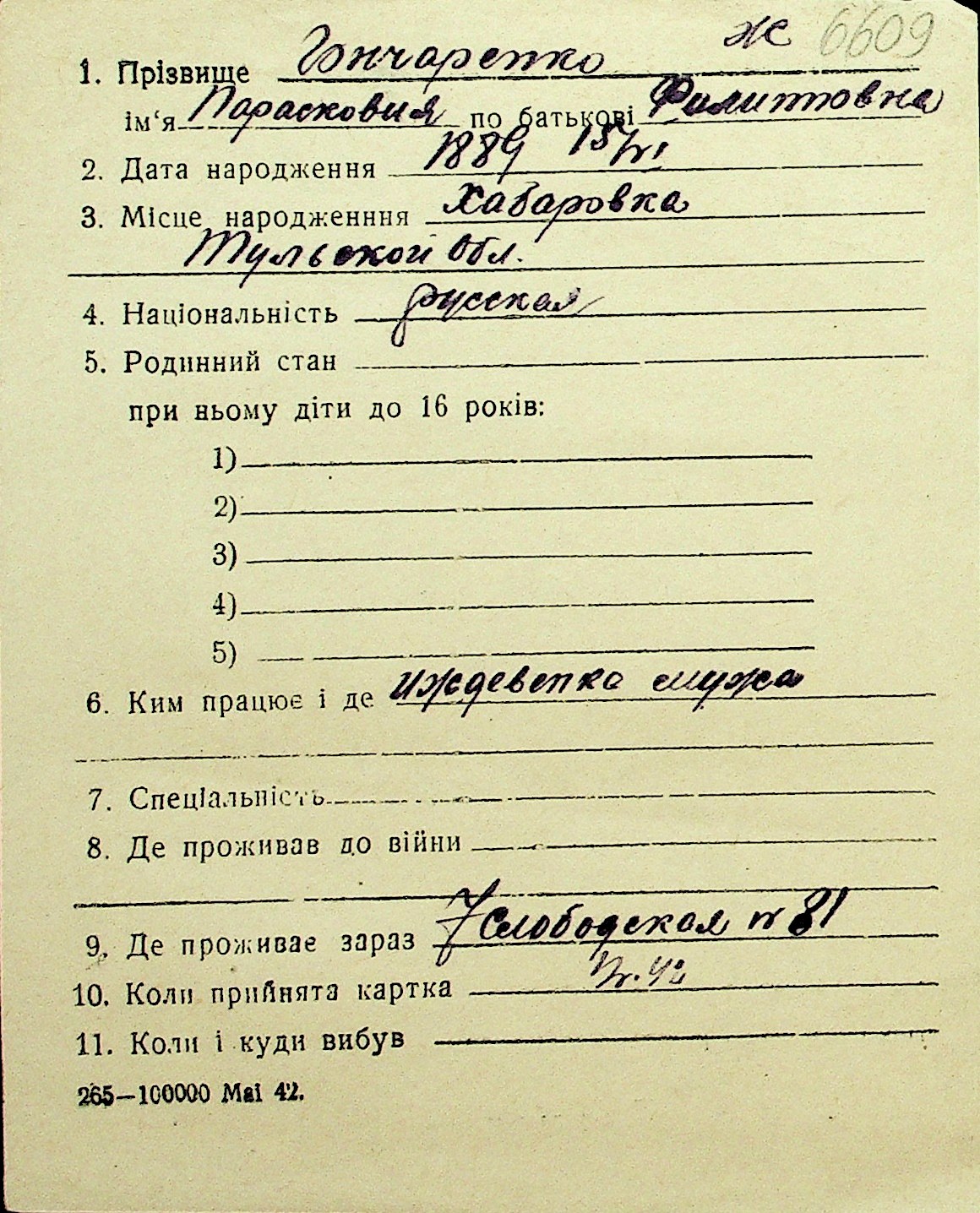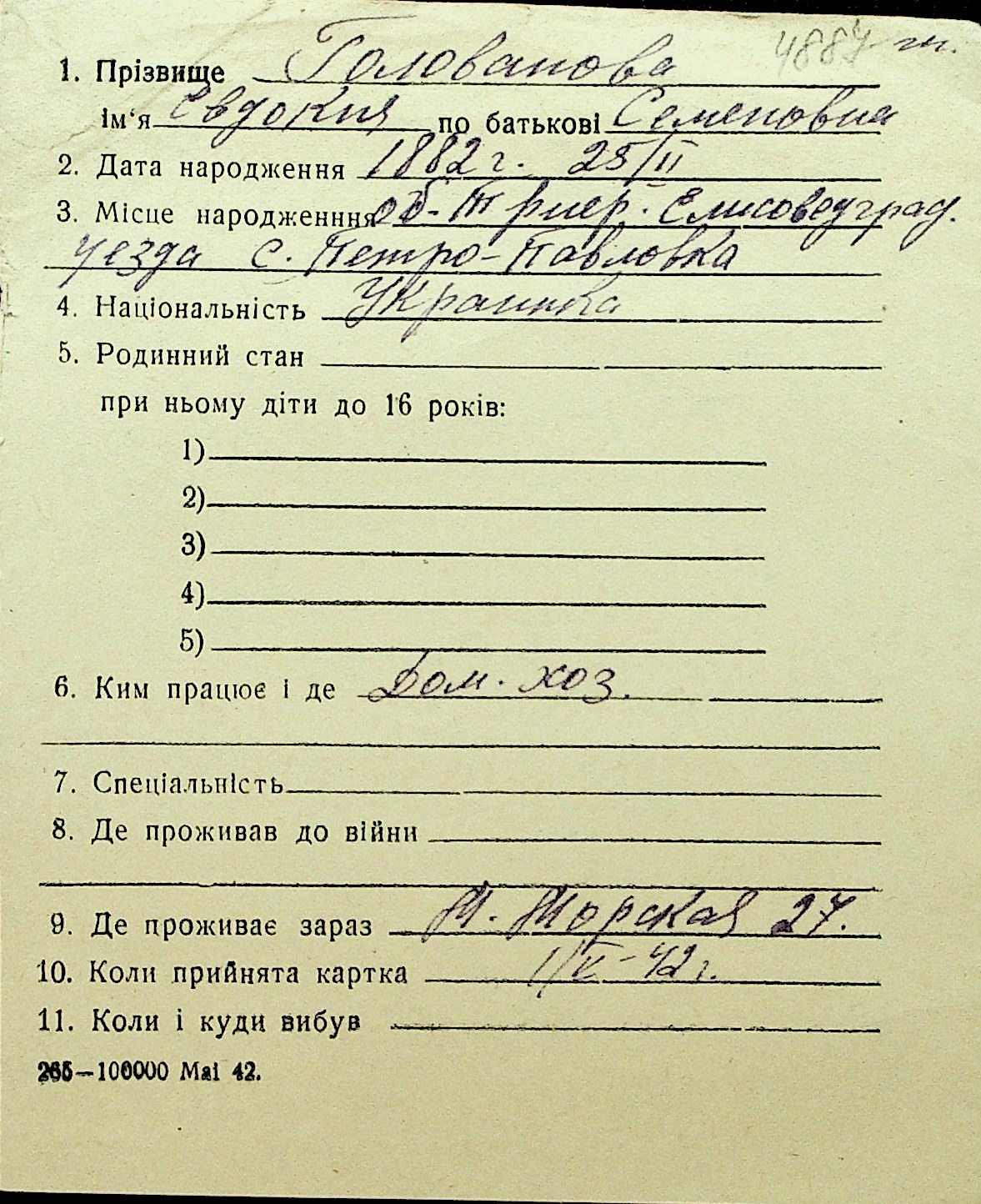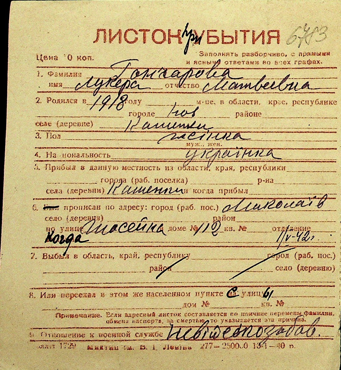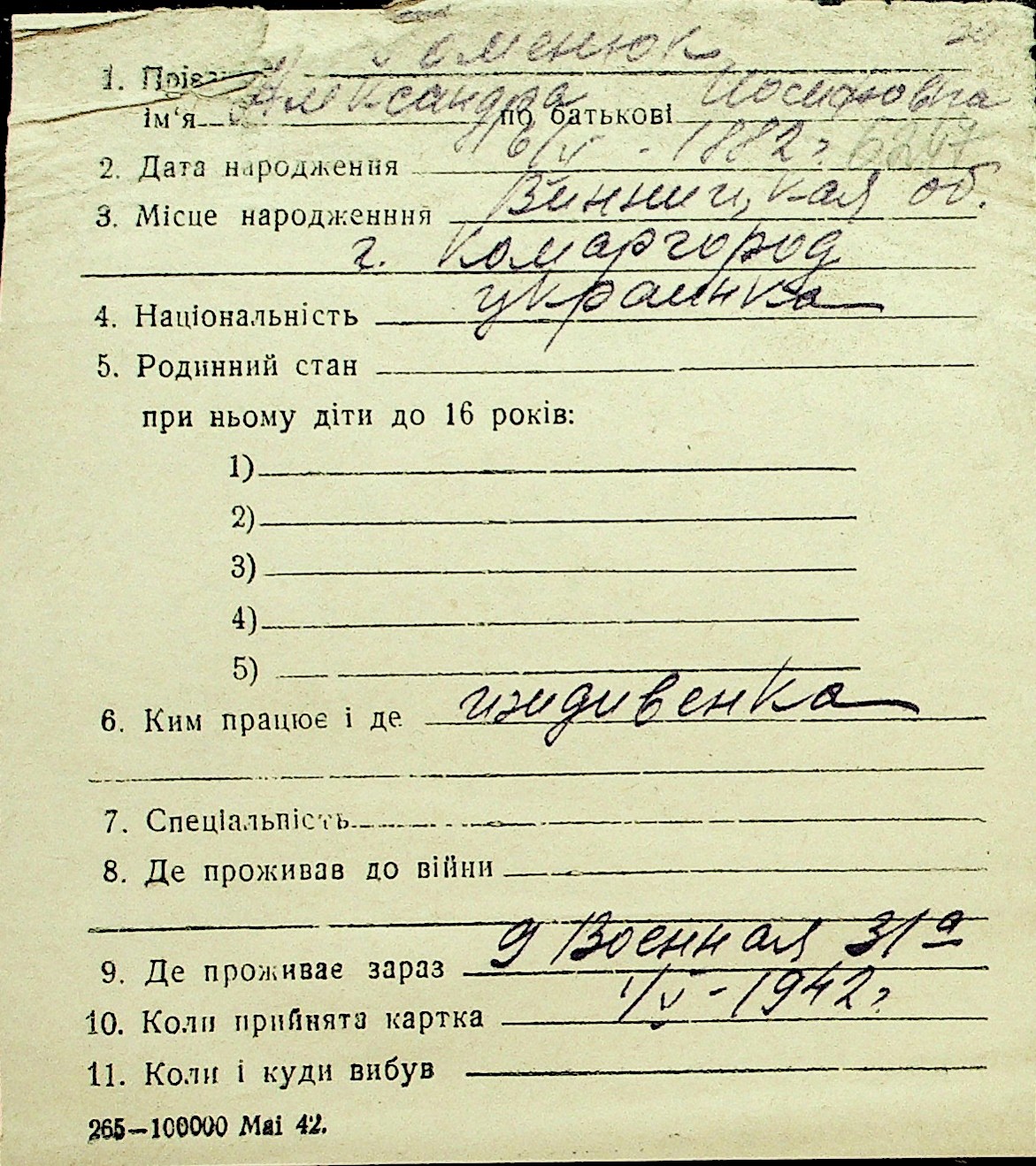 • • Перелік карток до фонду № Н-1016