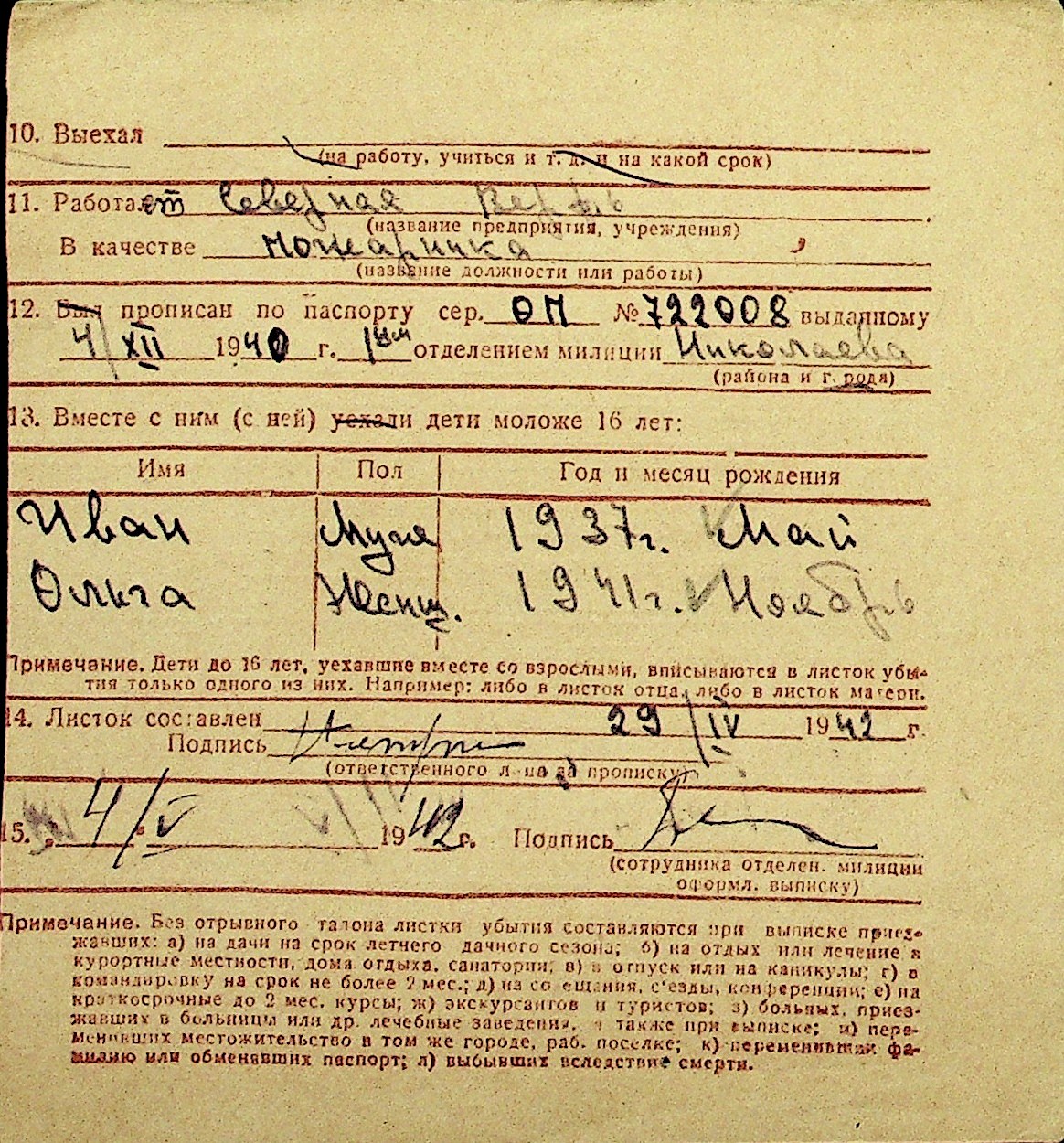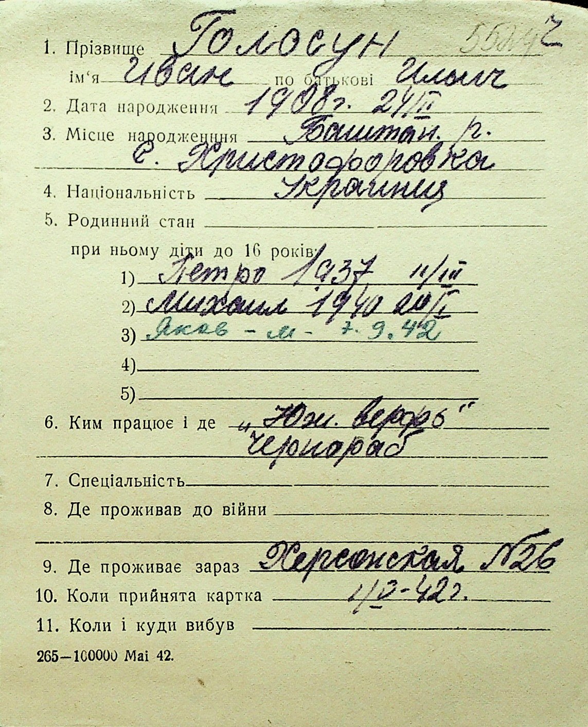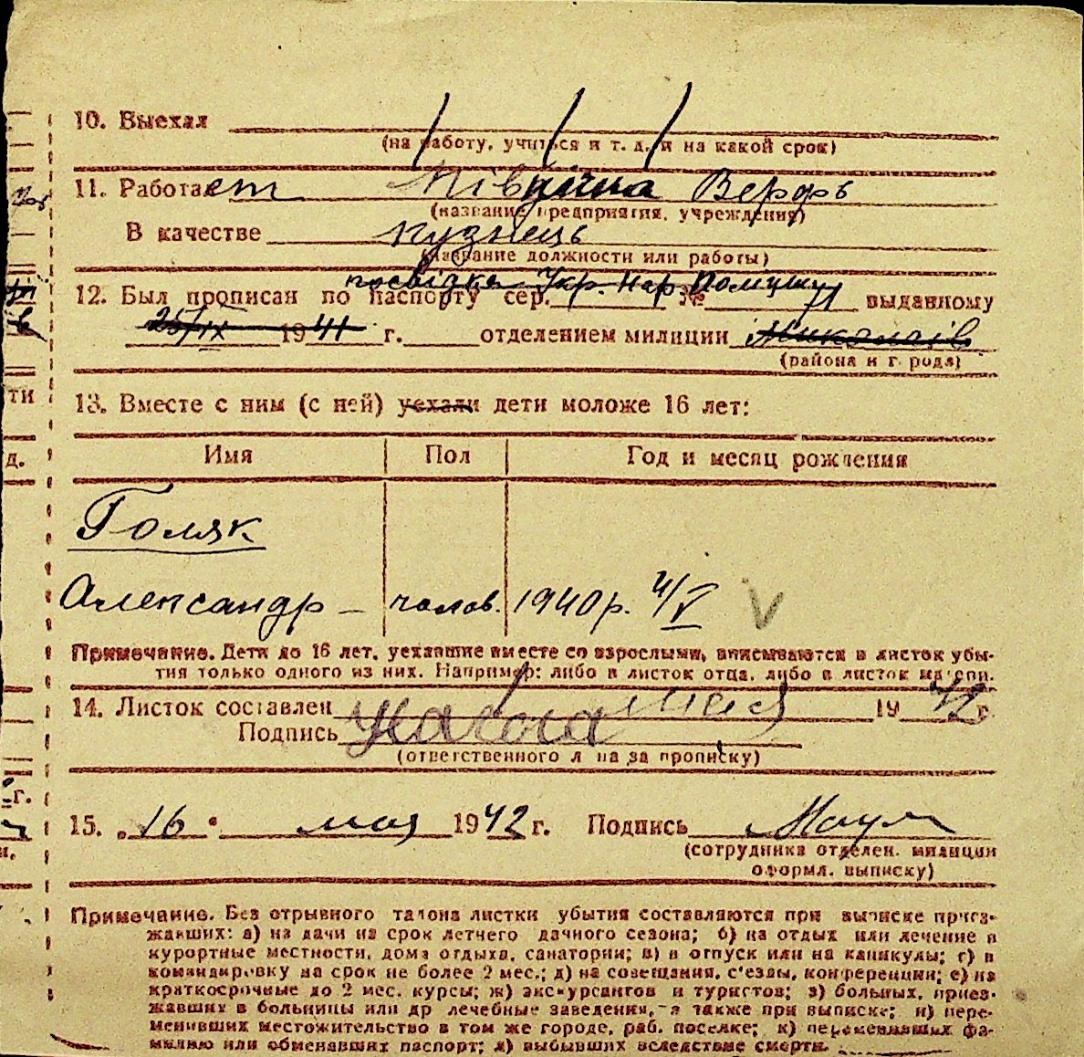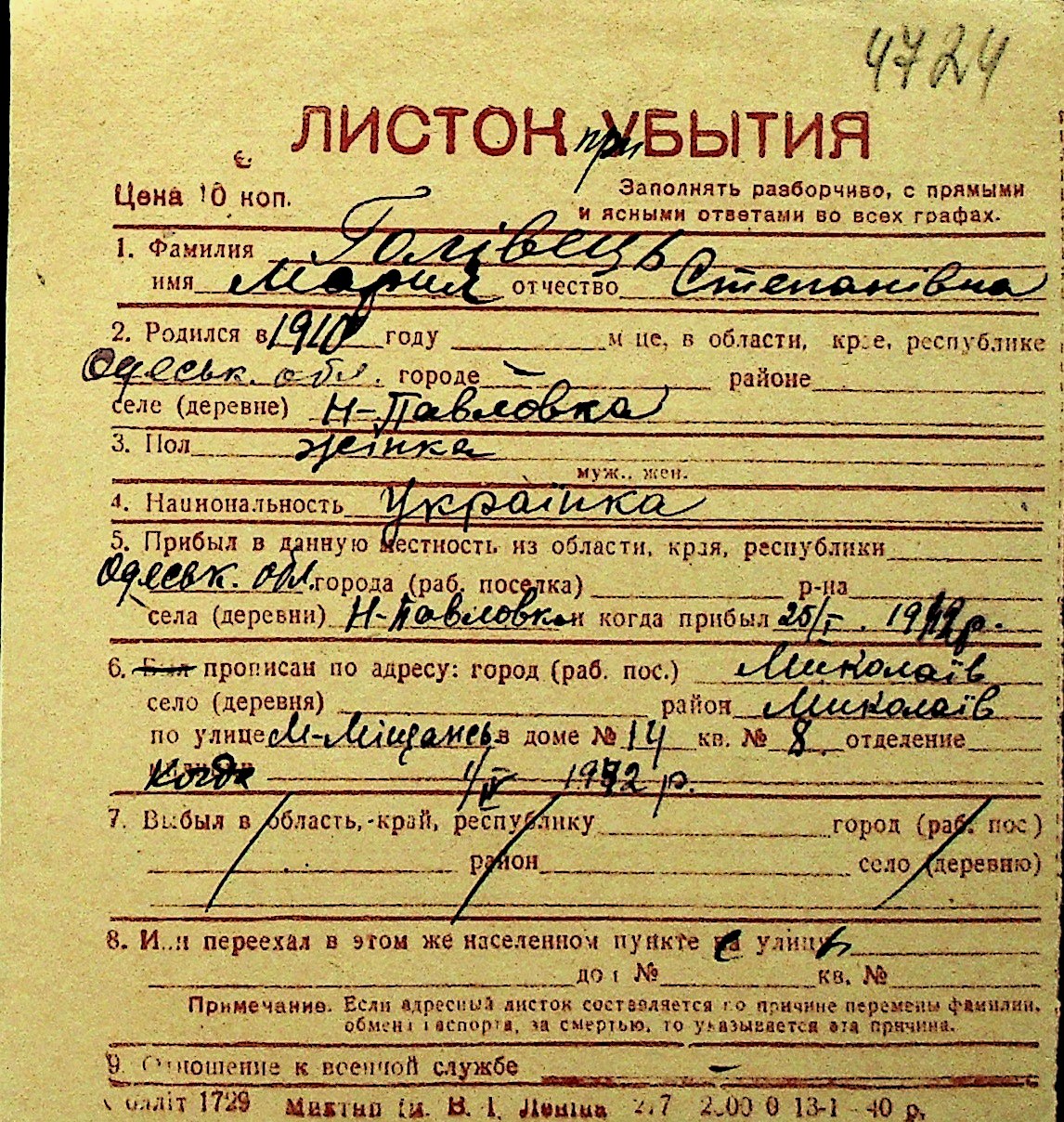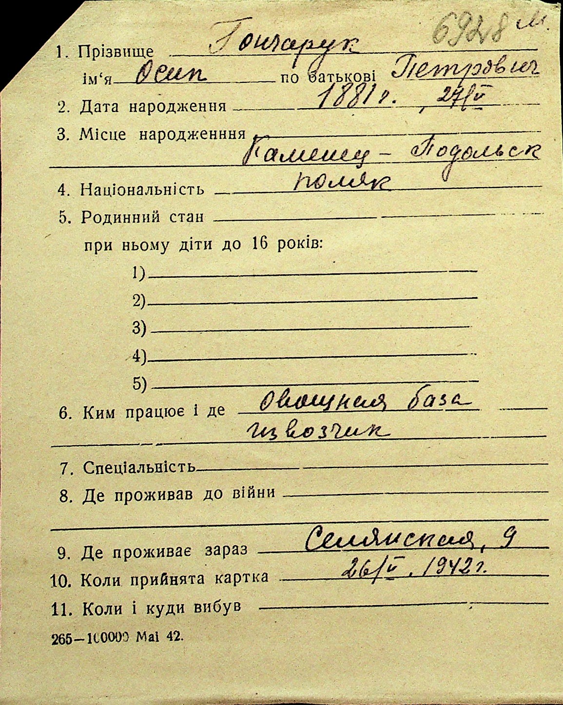 • • Перелік карток до фонду № Н-1016