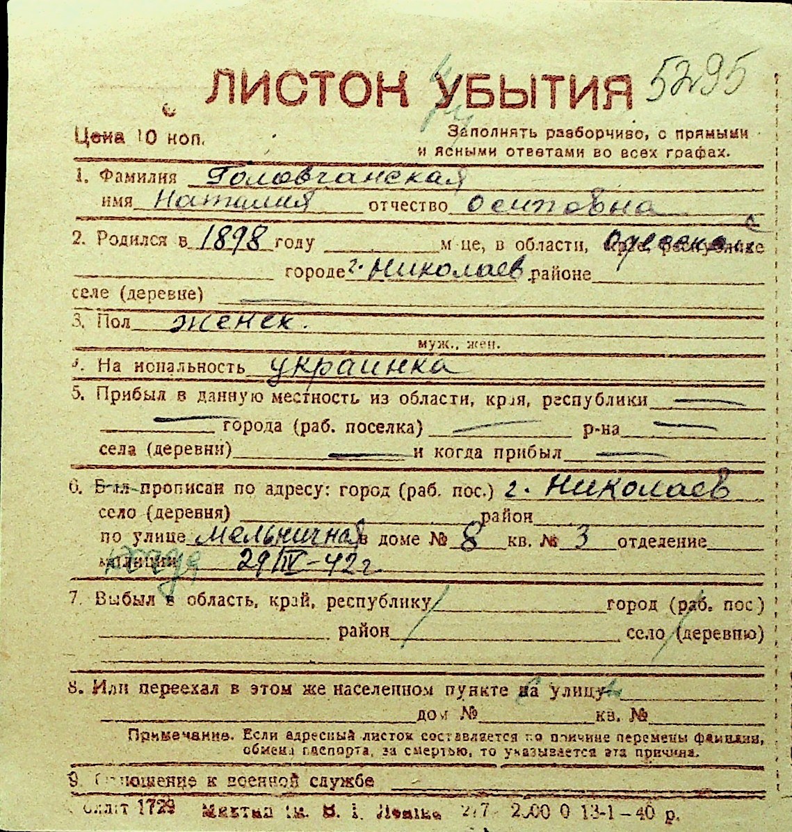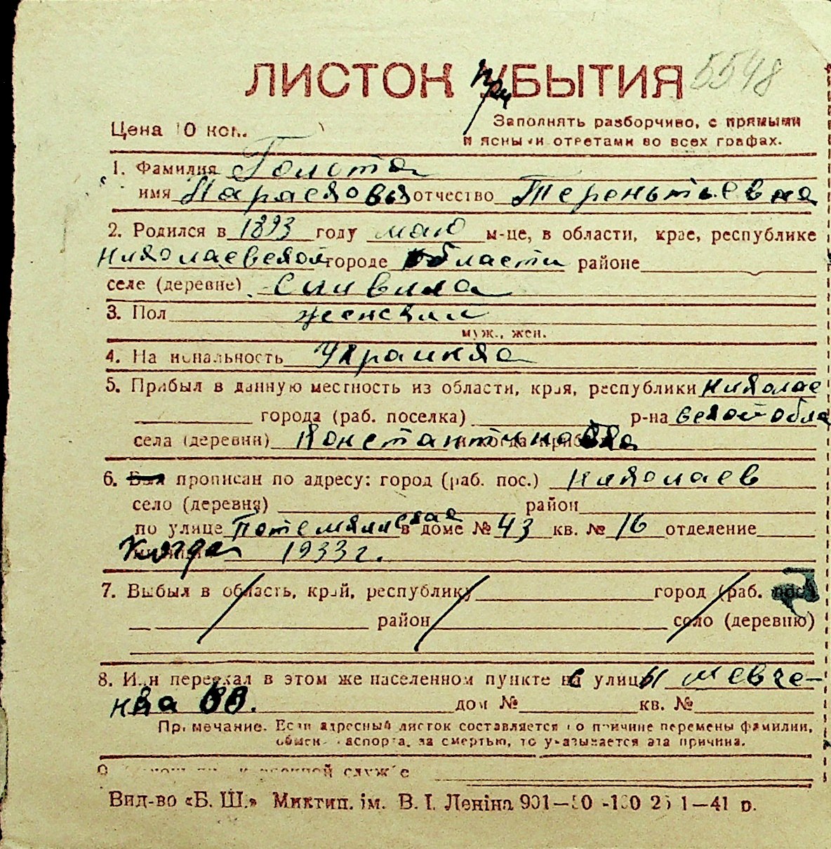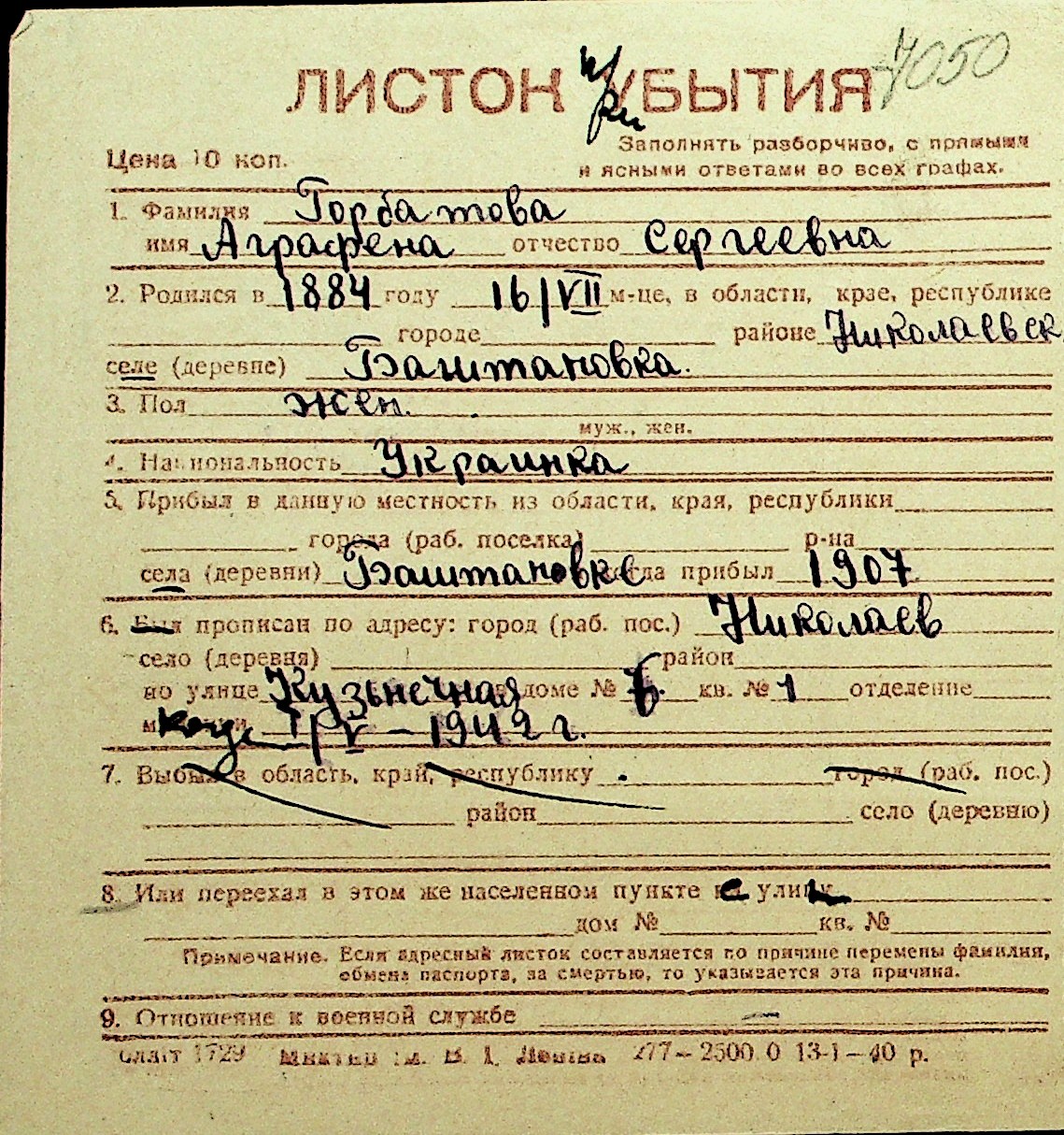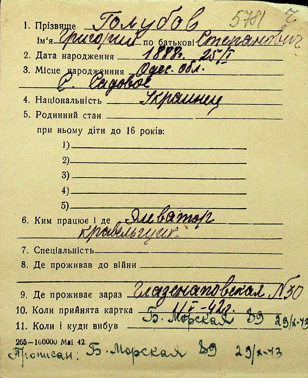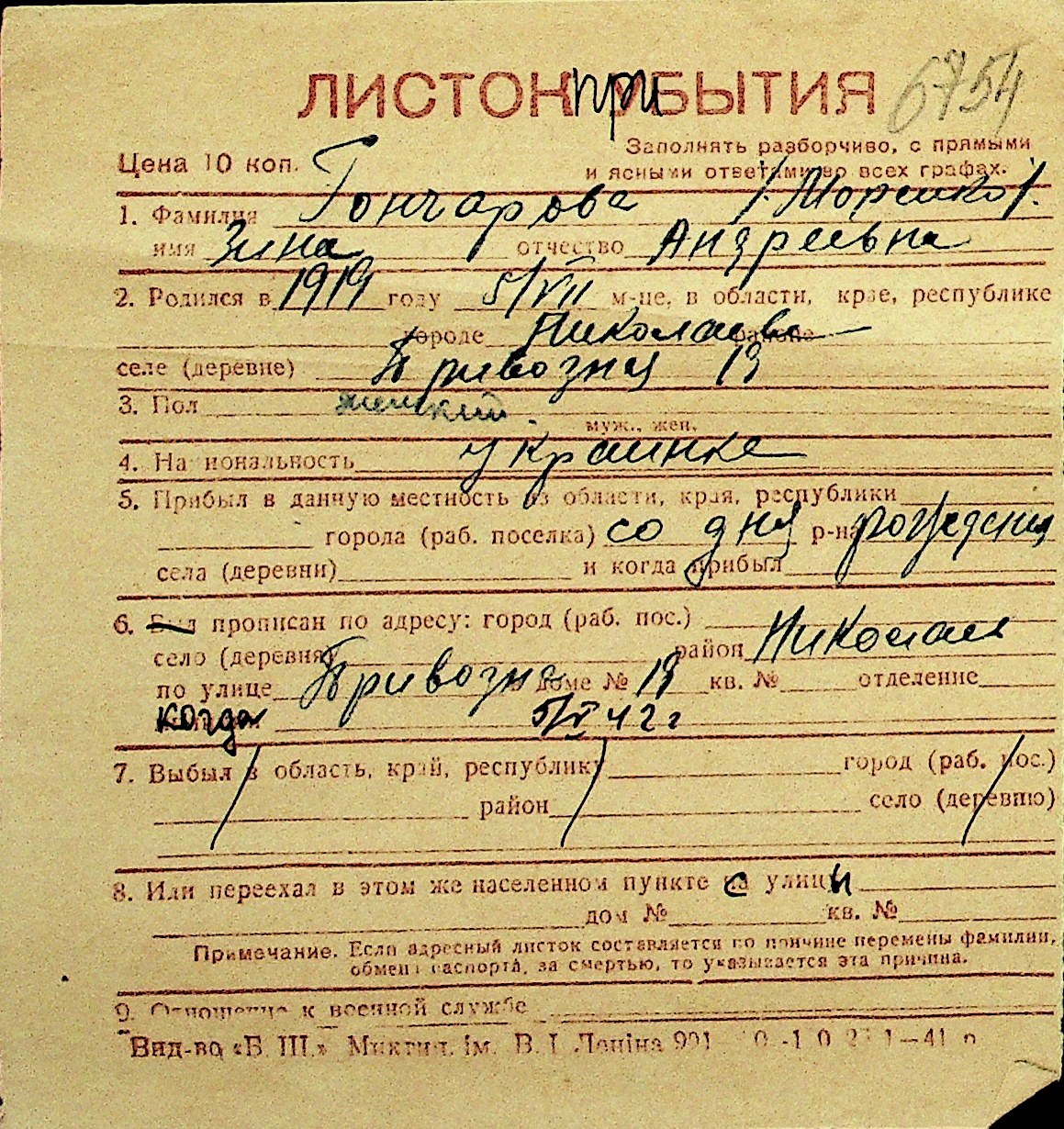 • • Перелік карток до фонду № Н-1016