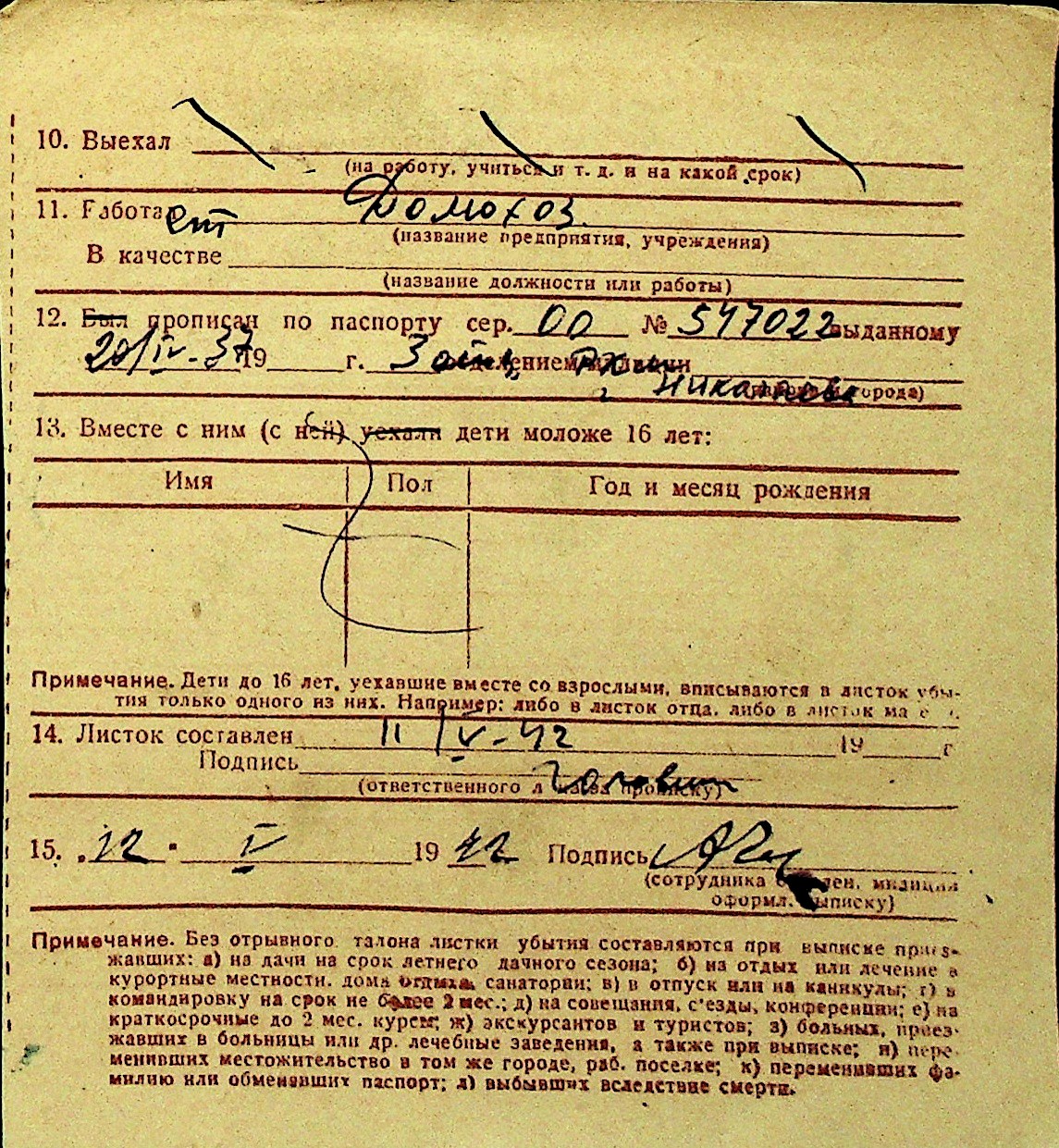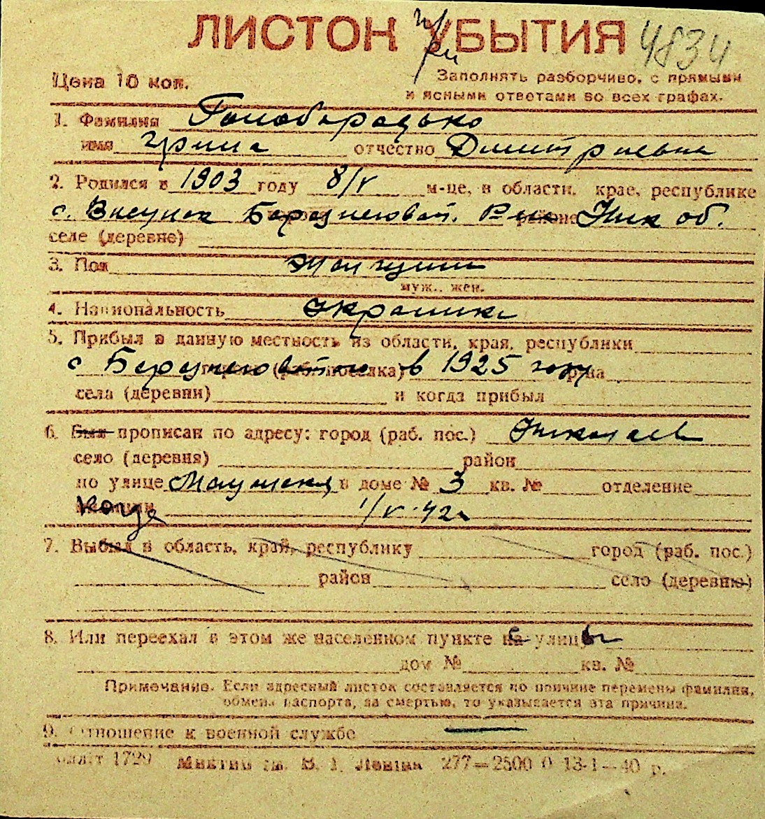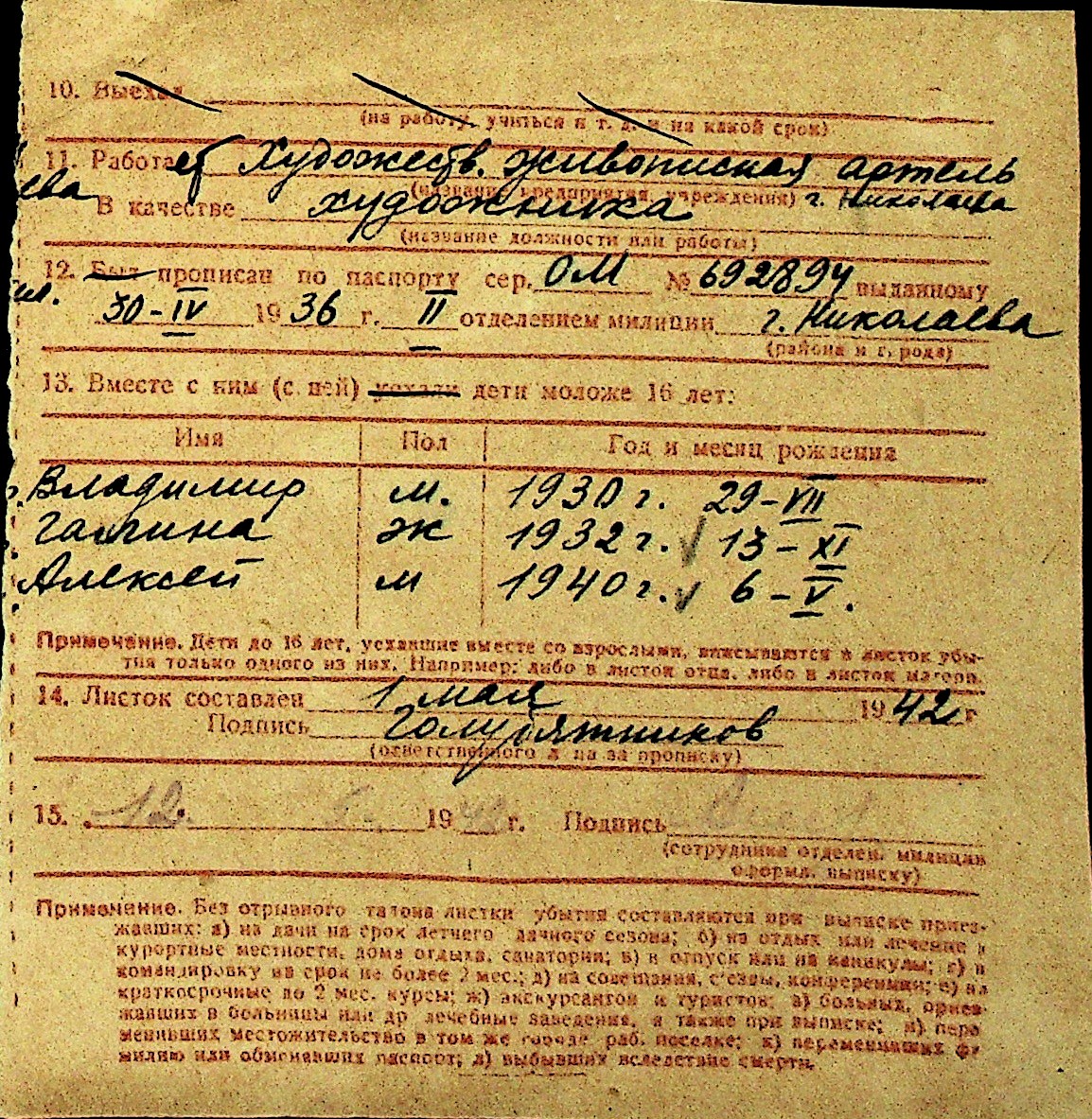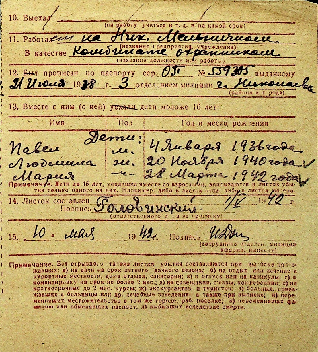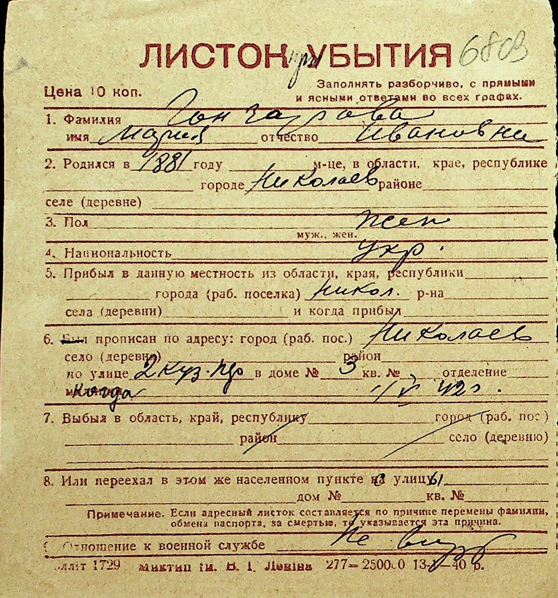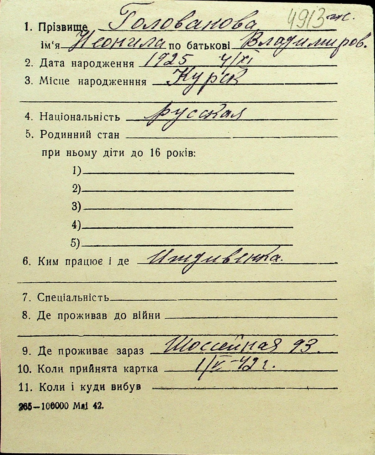 • • Перелік карток до фонду № Н-1016