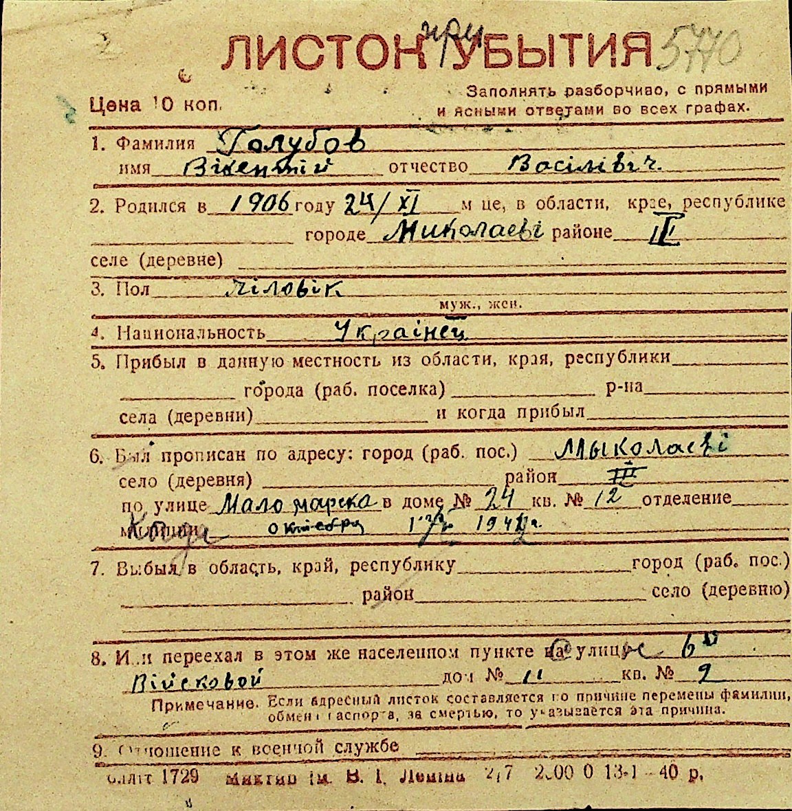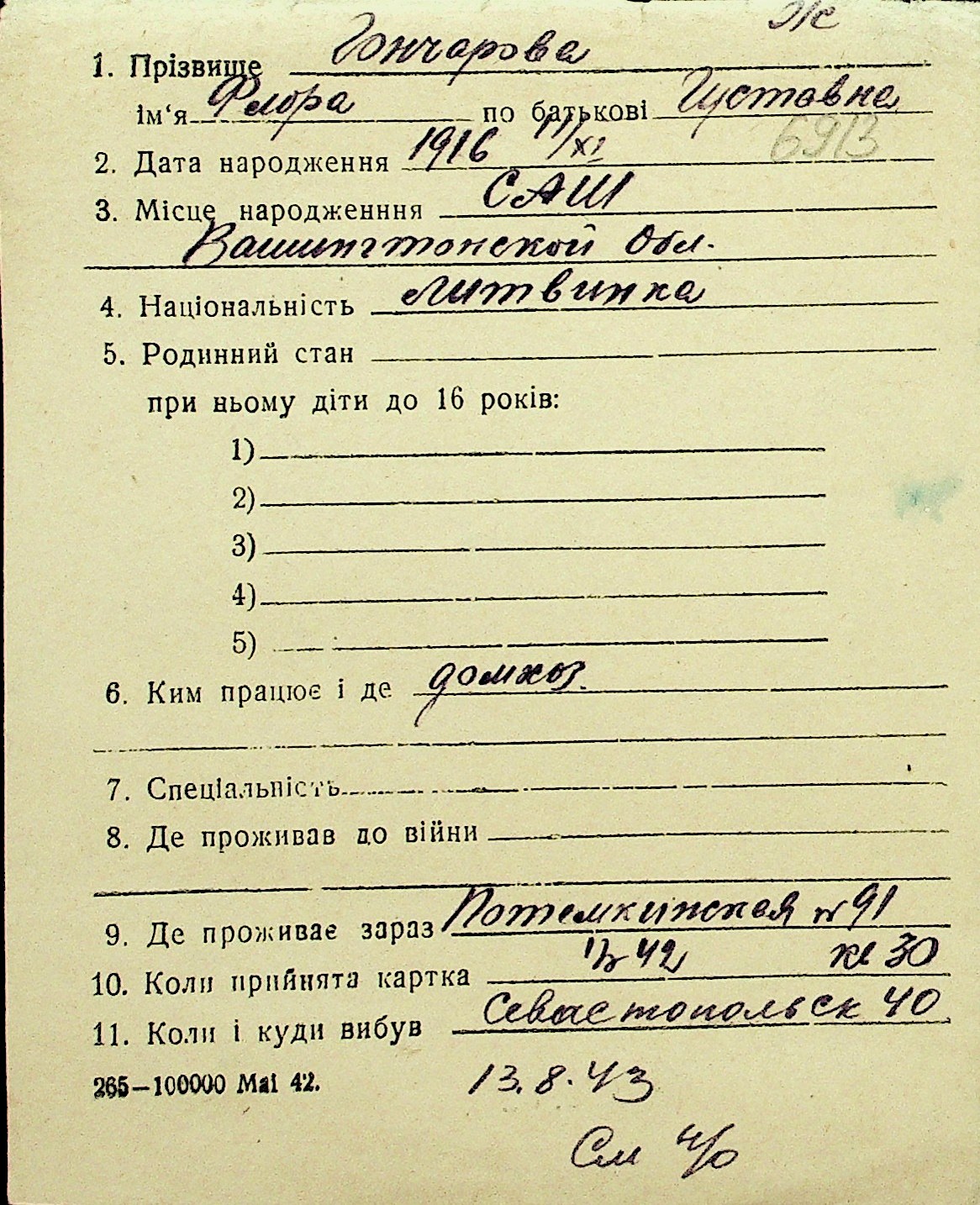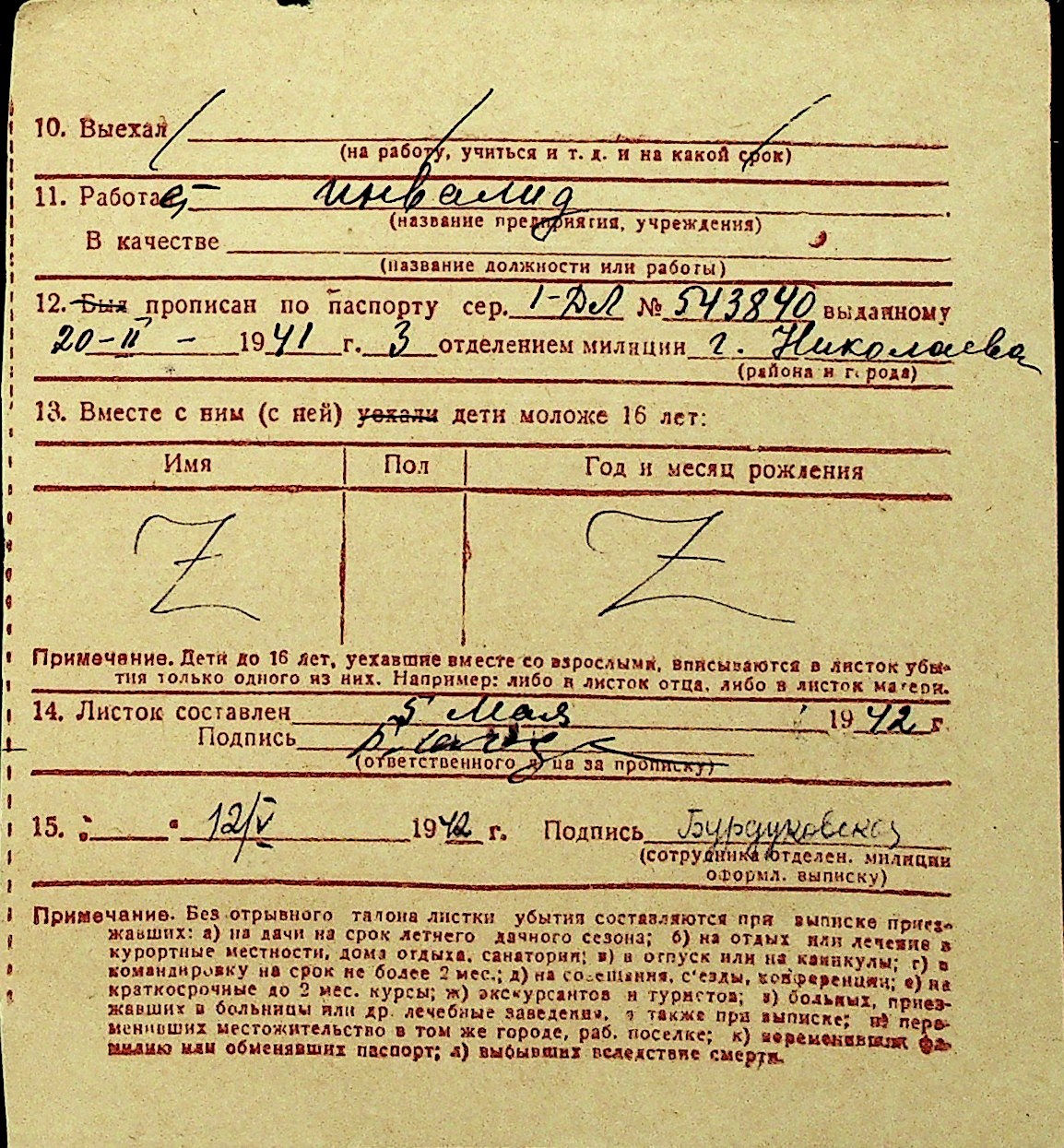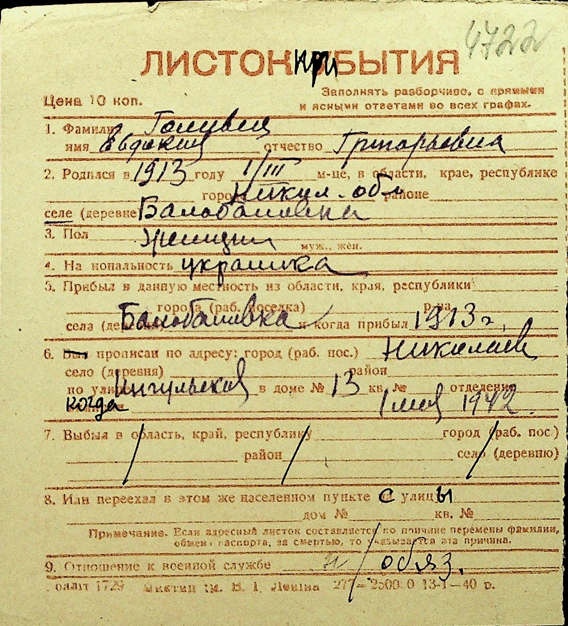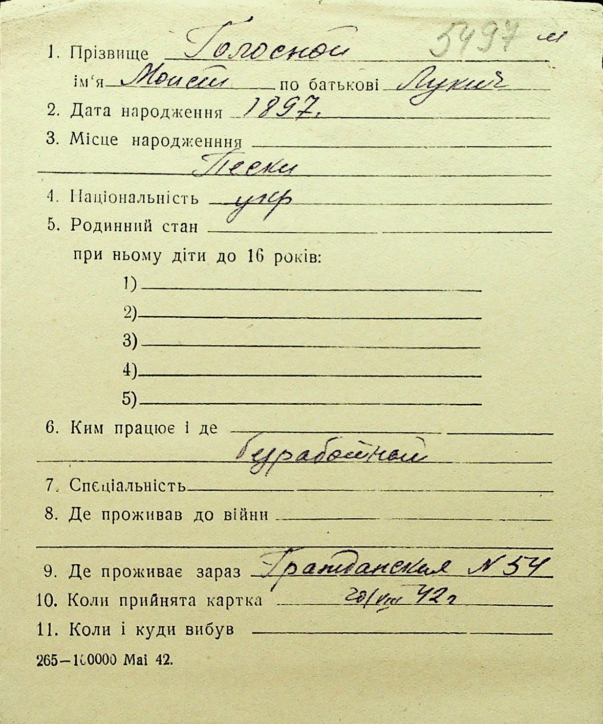 • • Перелік карток до фонду № Н-1016