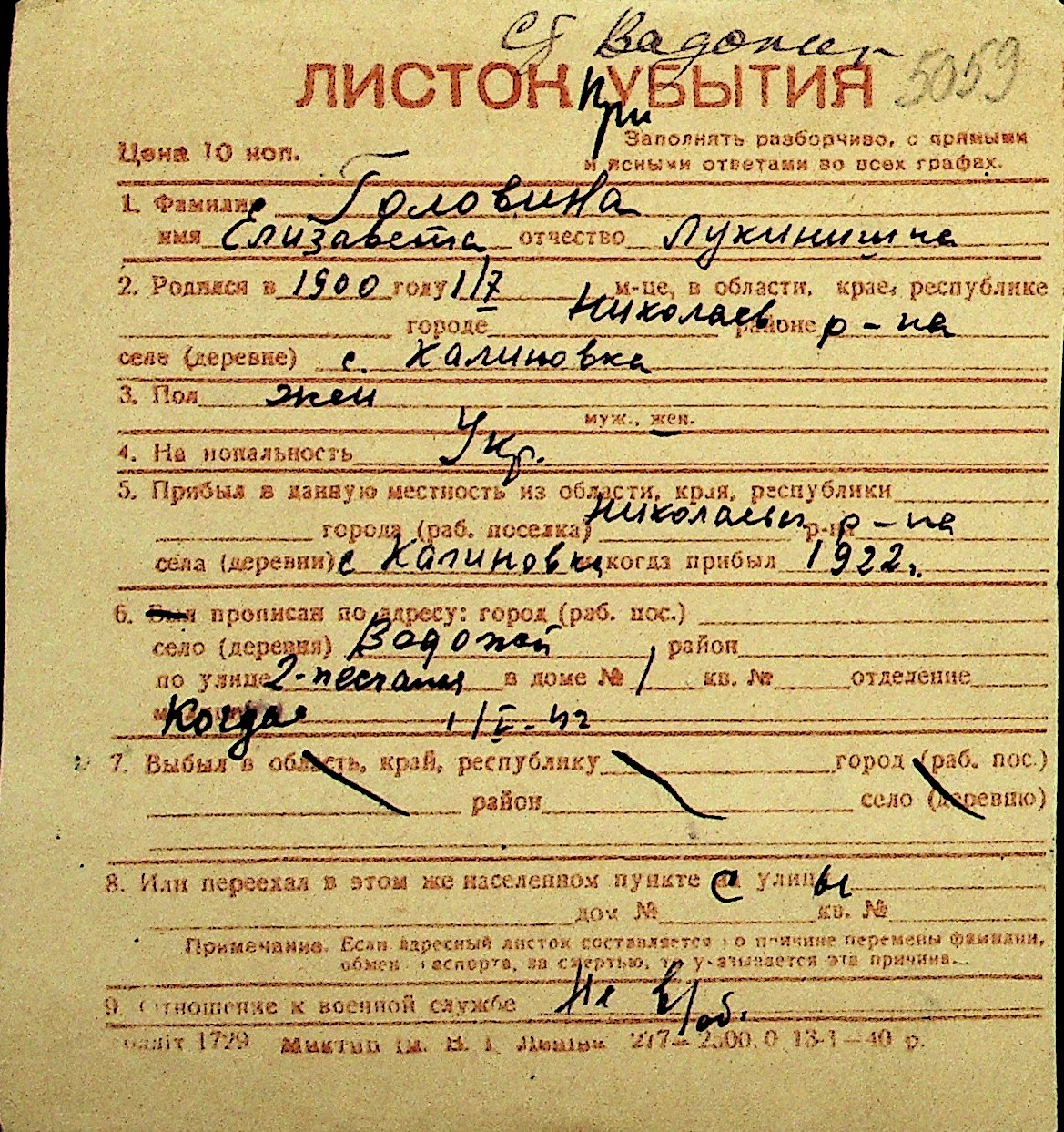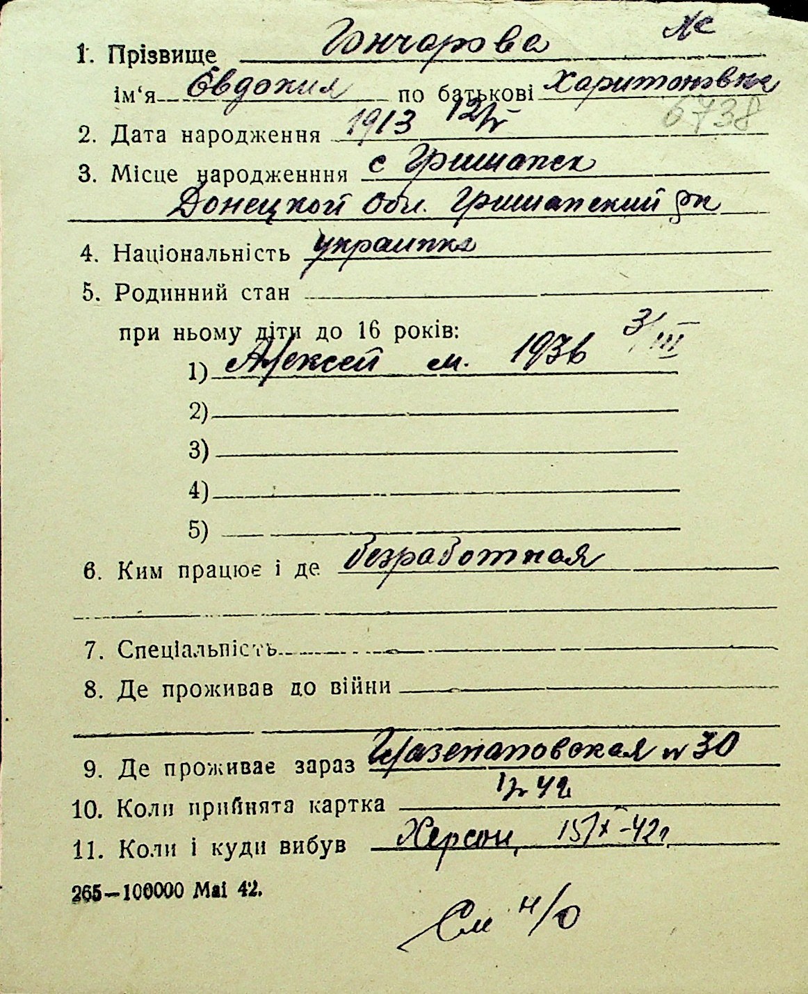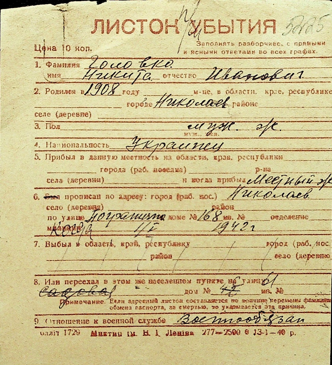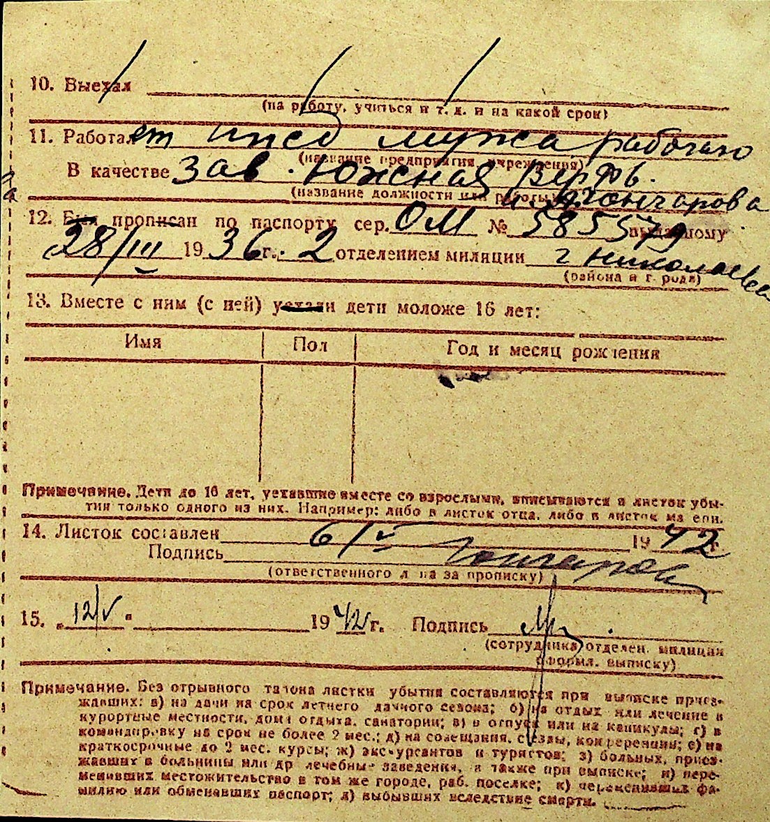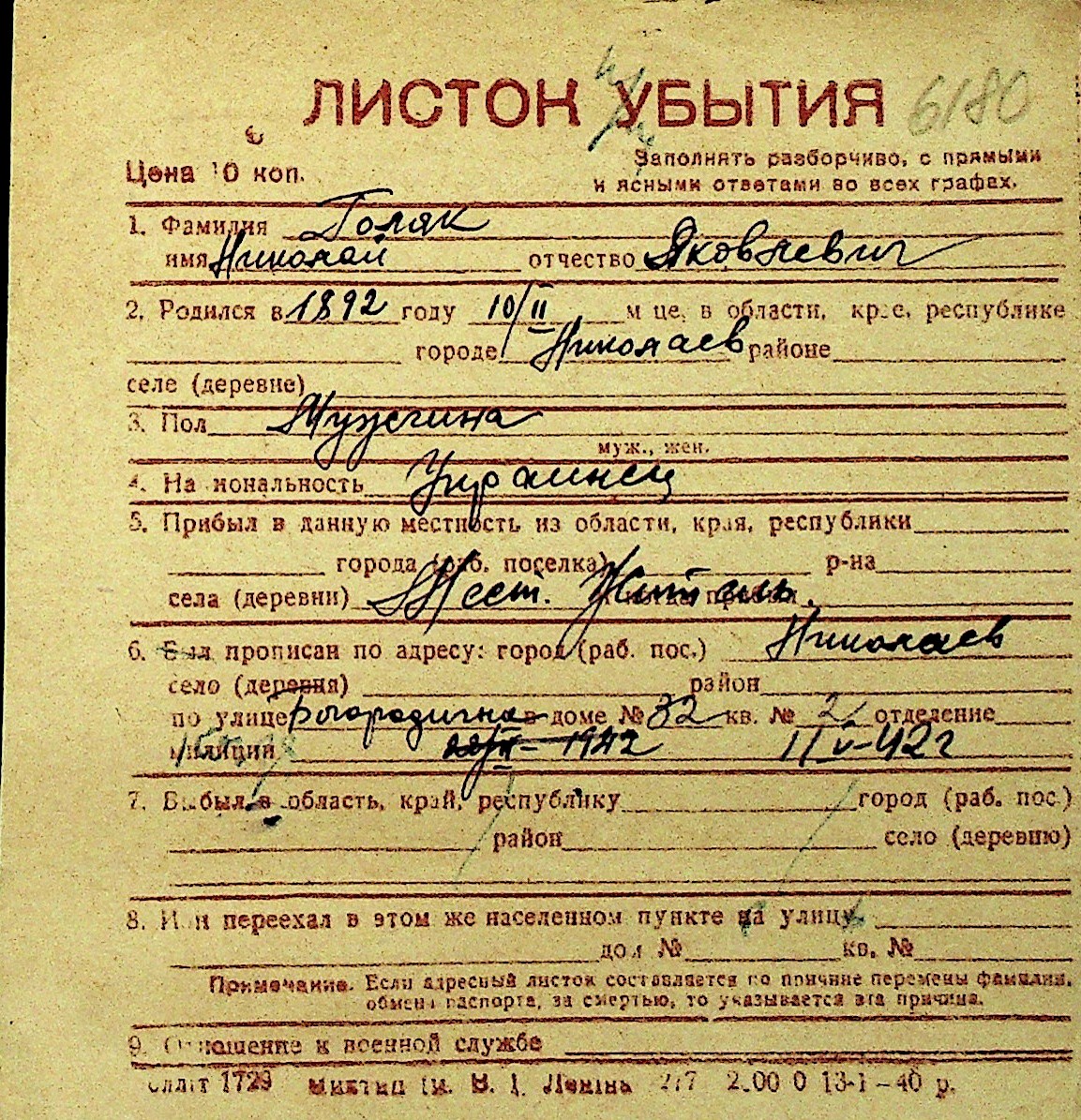 • • Перелік карток до фонду № Н-1016