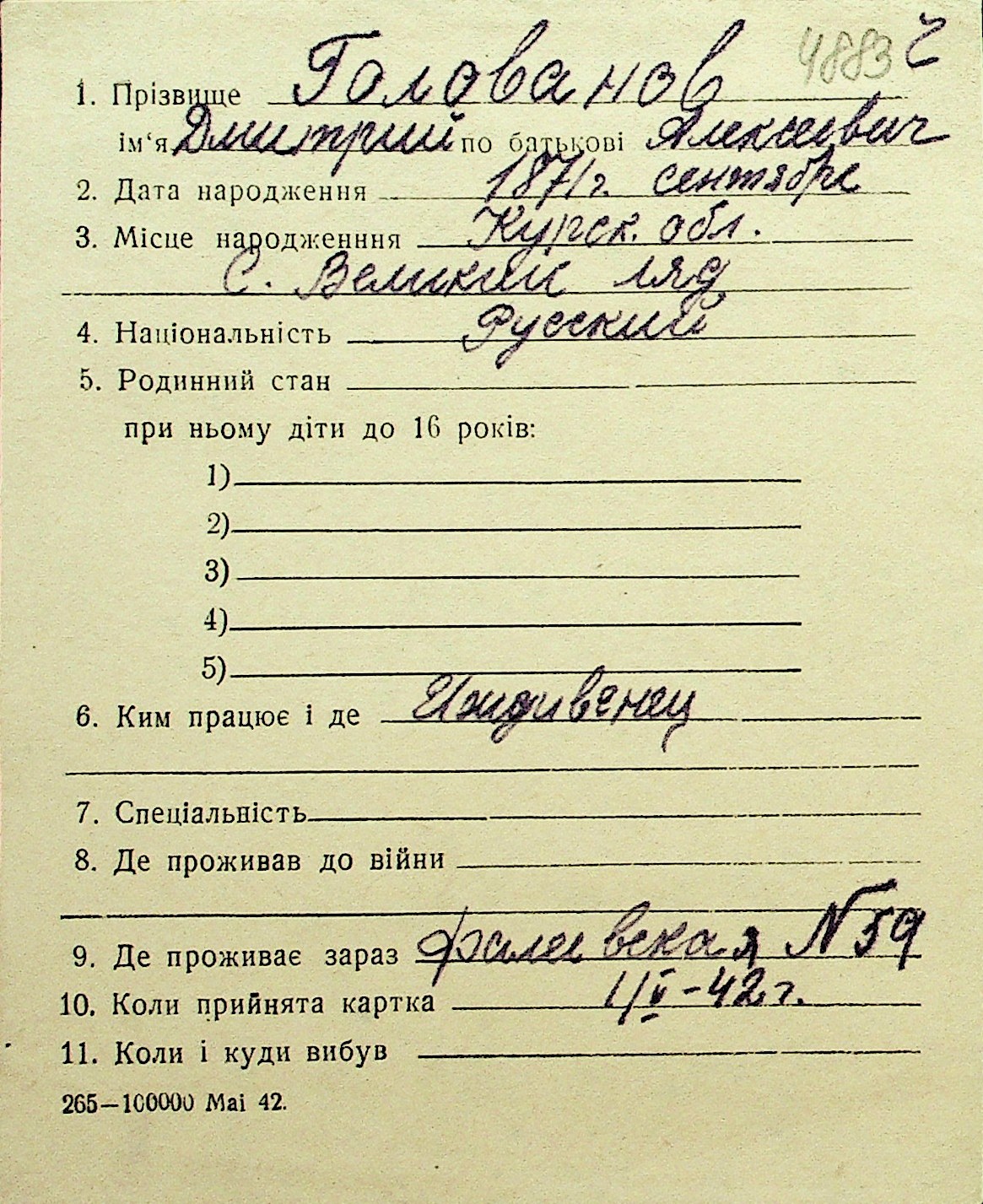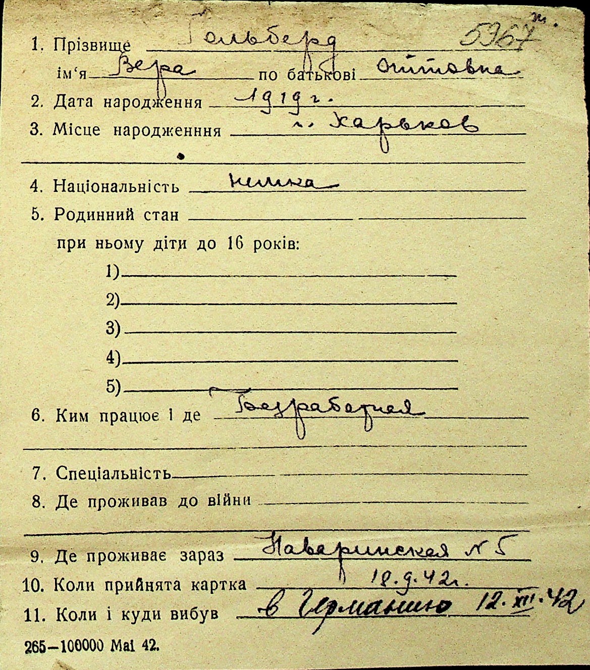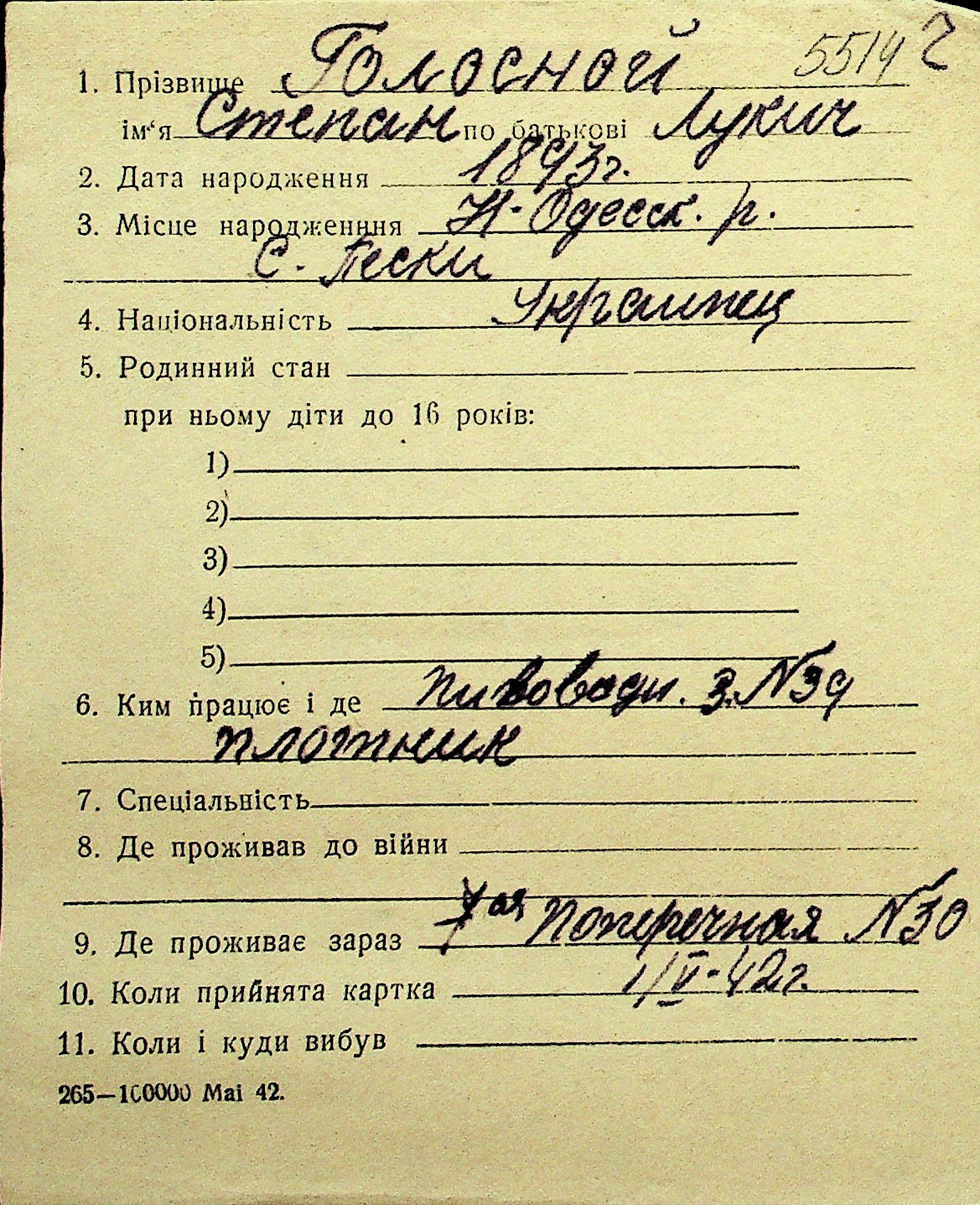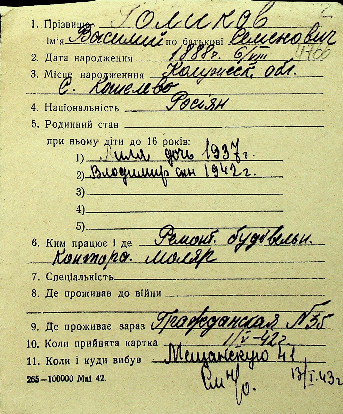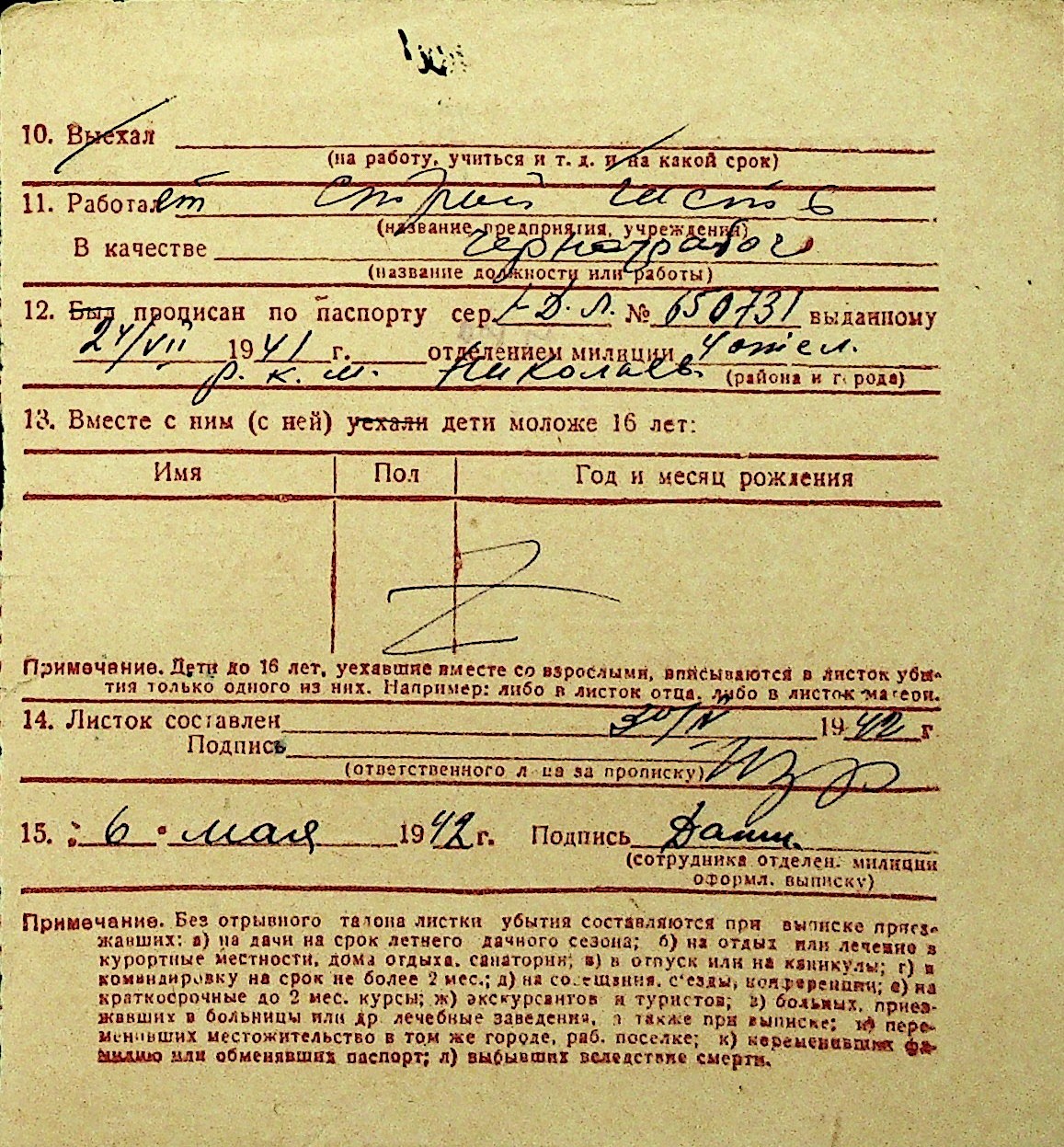 • • Перелік карток до фонду № Н-1016