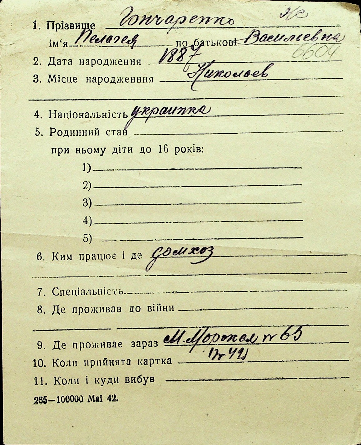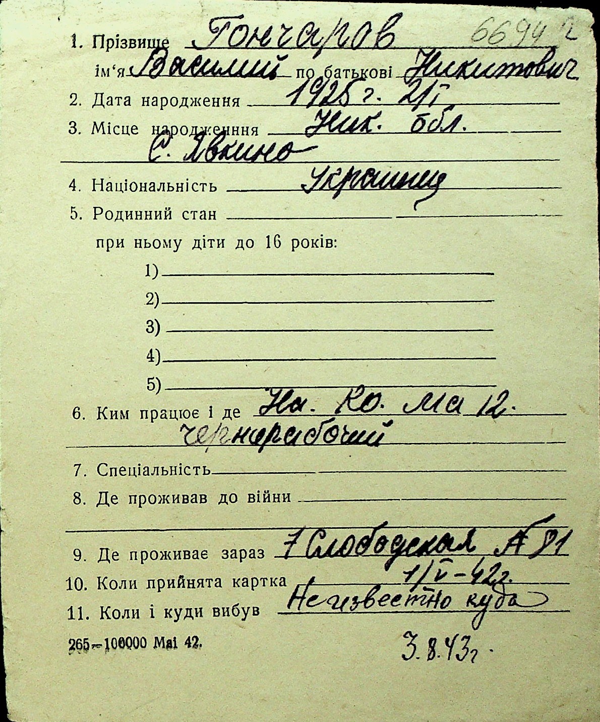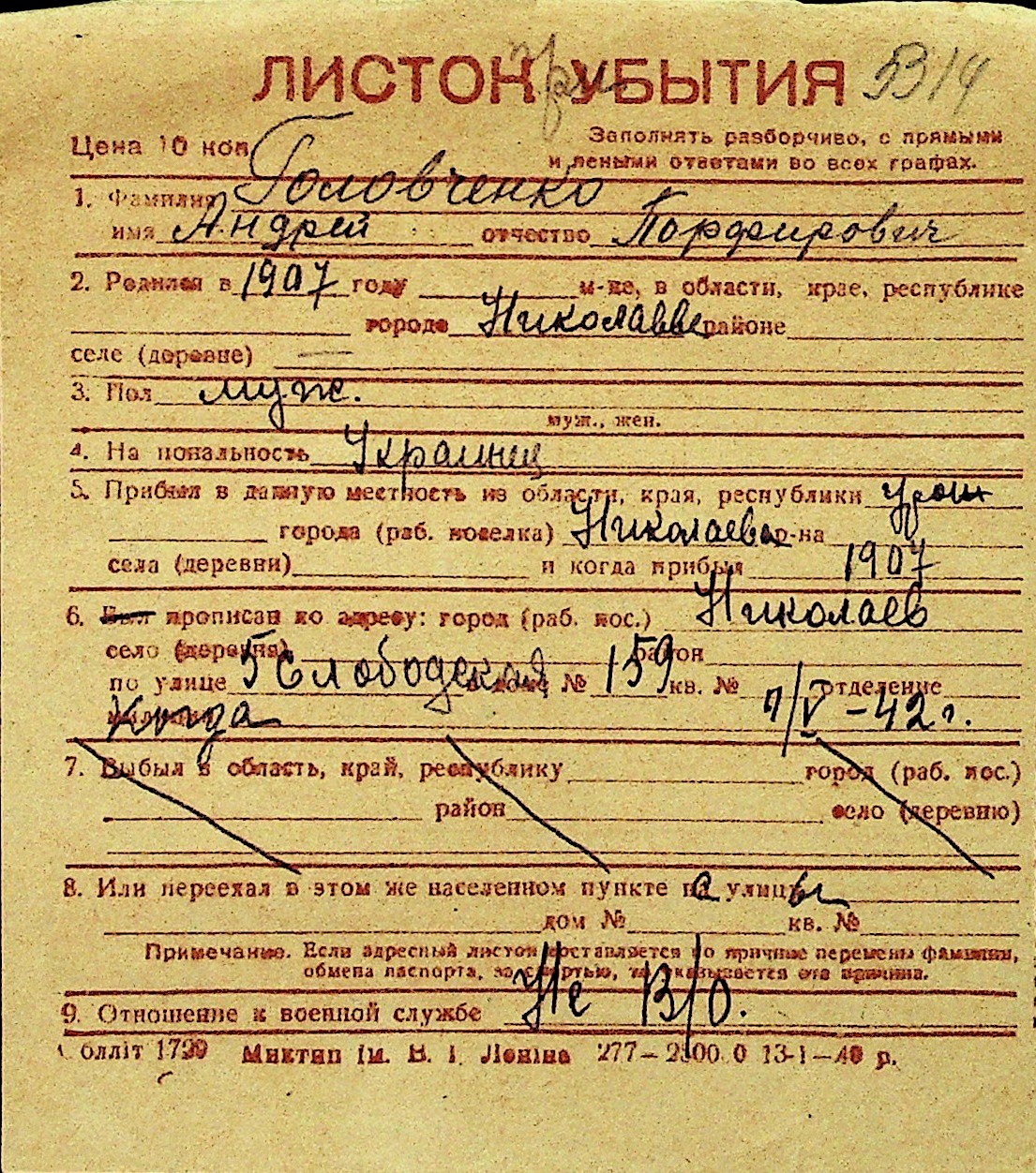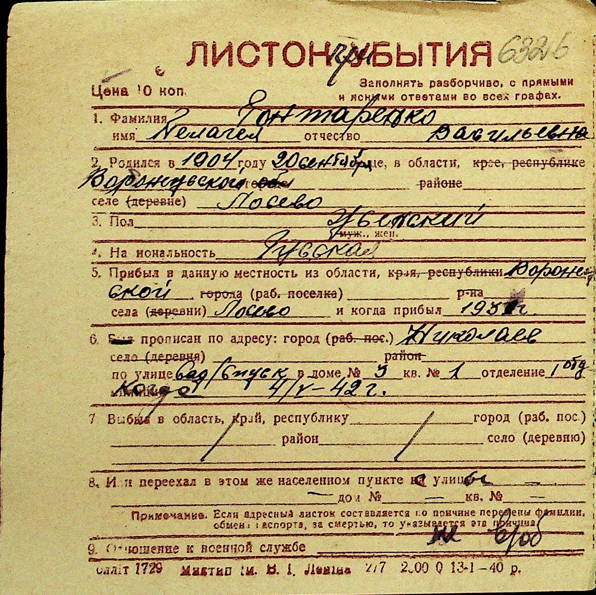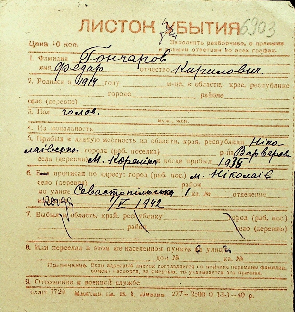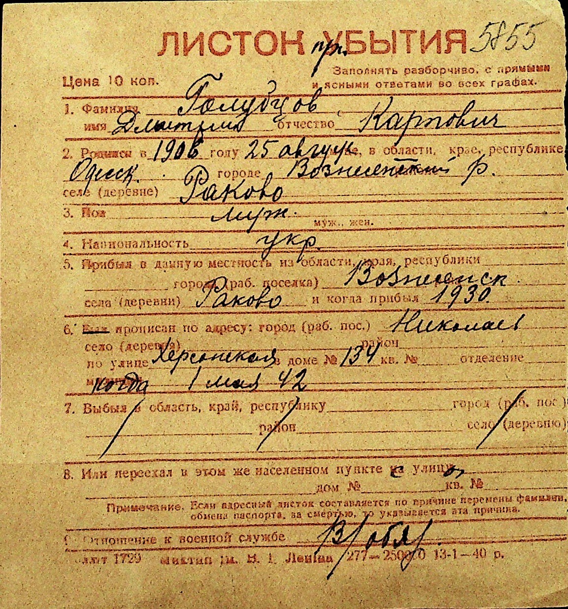 • • Перелік карток до фонду № Н-1016