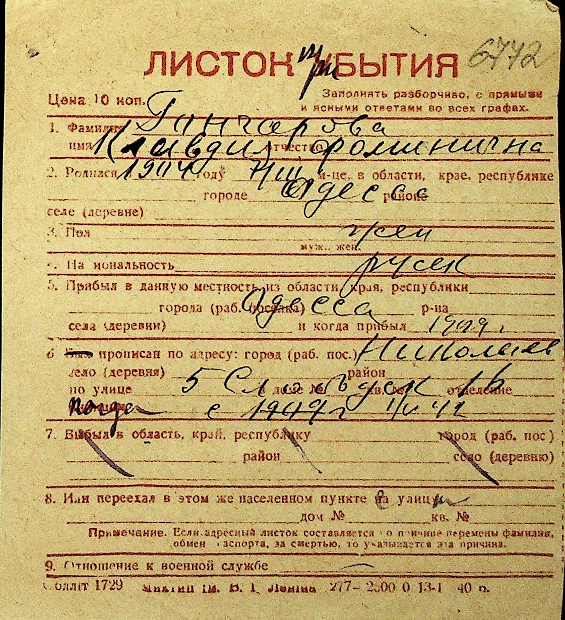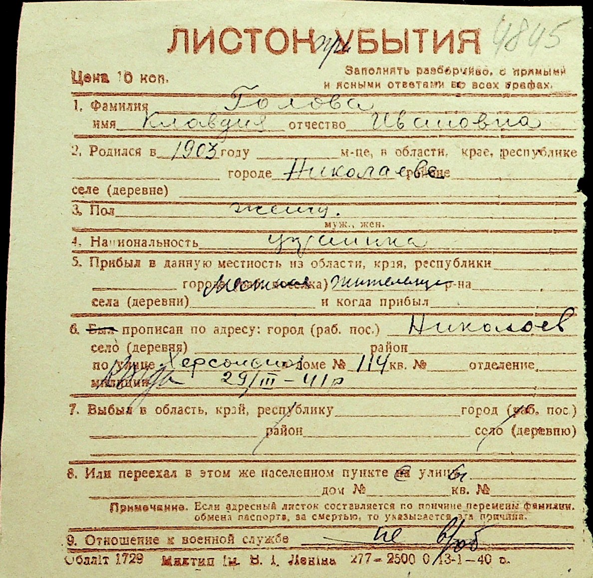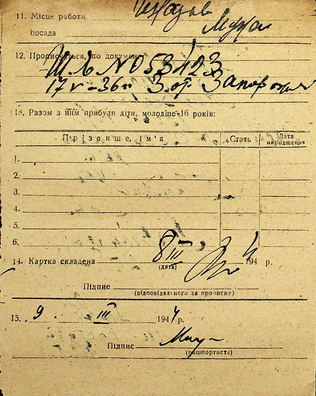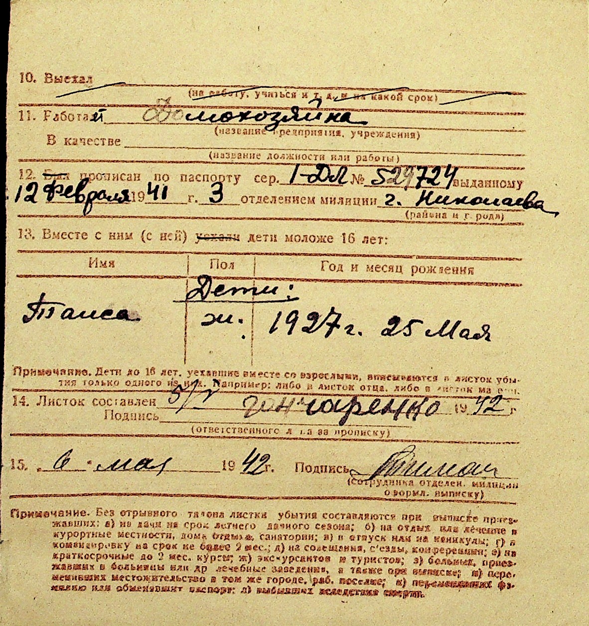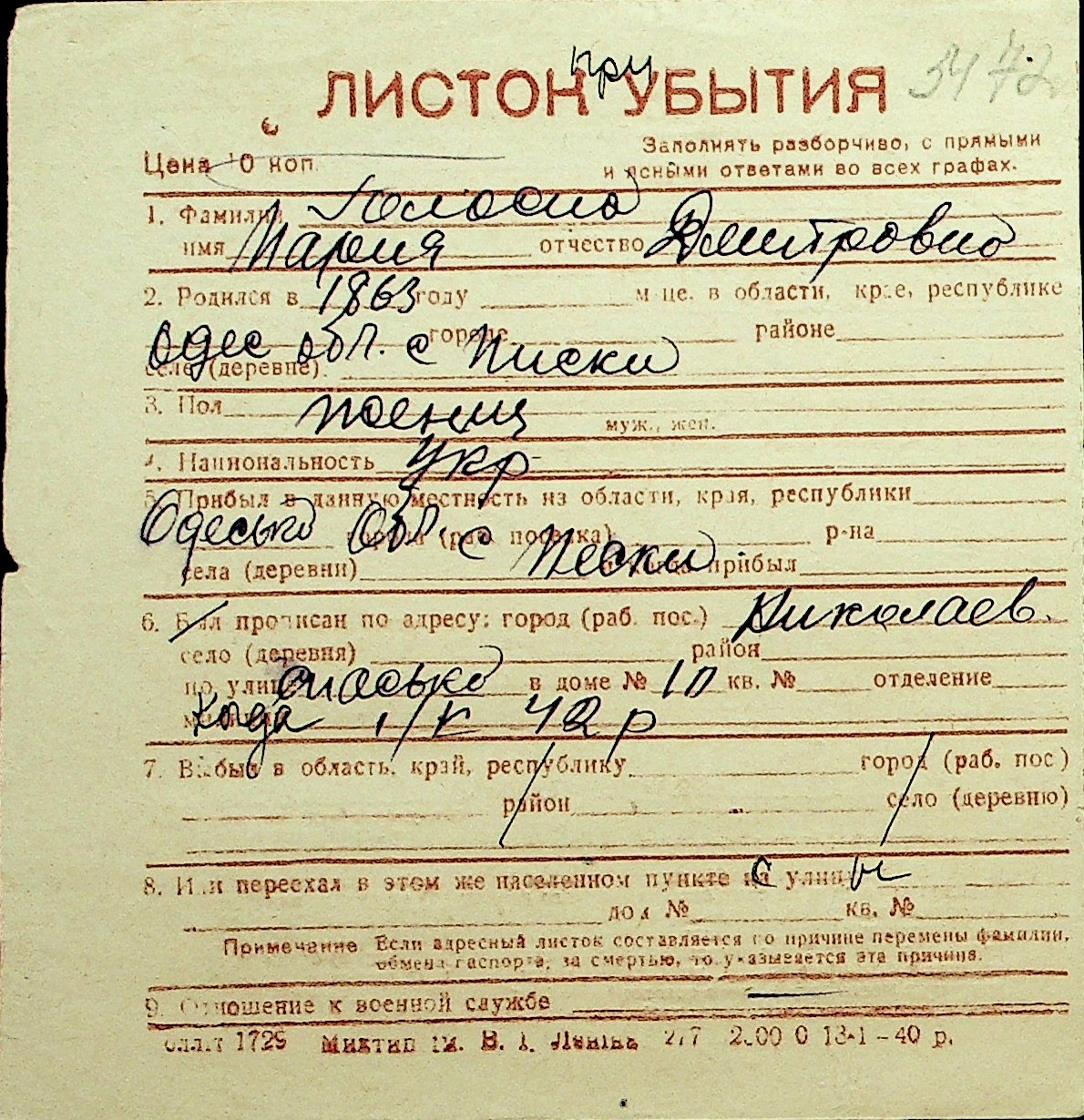 • • Перелік карток до фонду № Н-1016