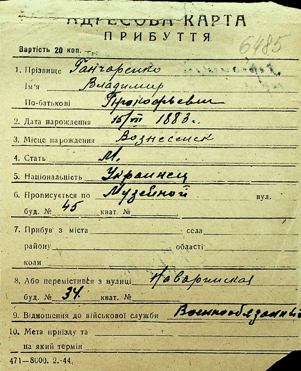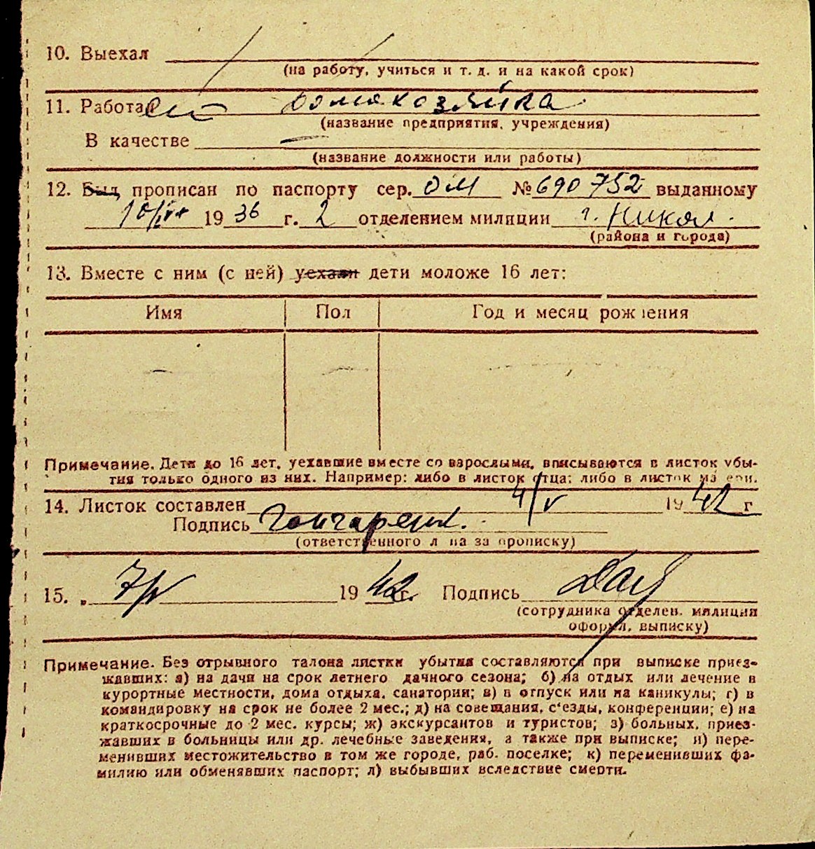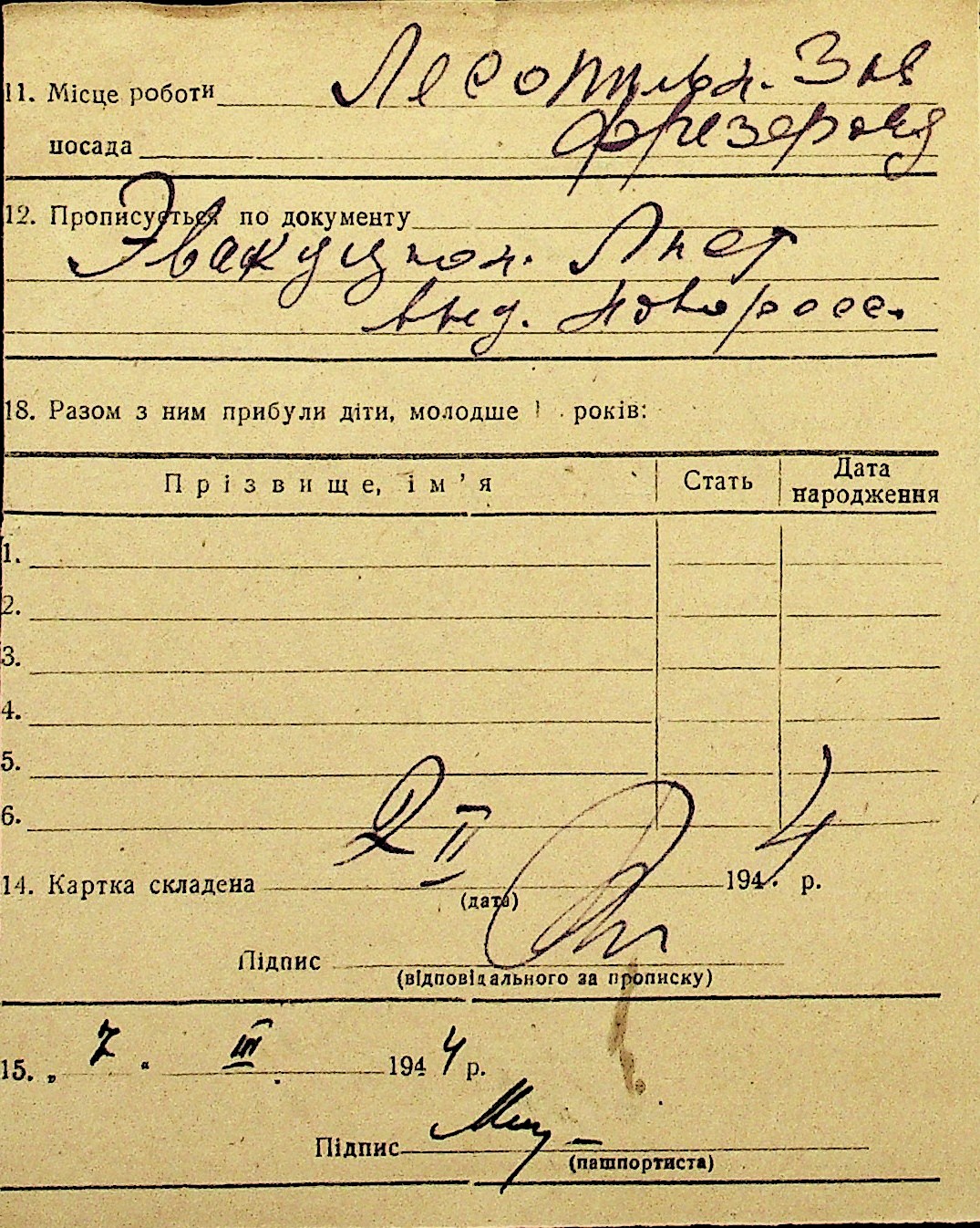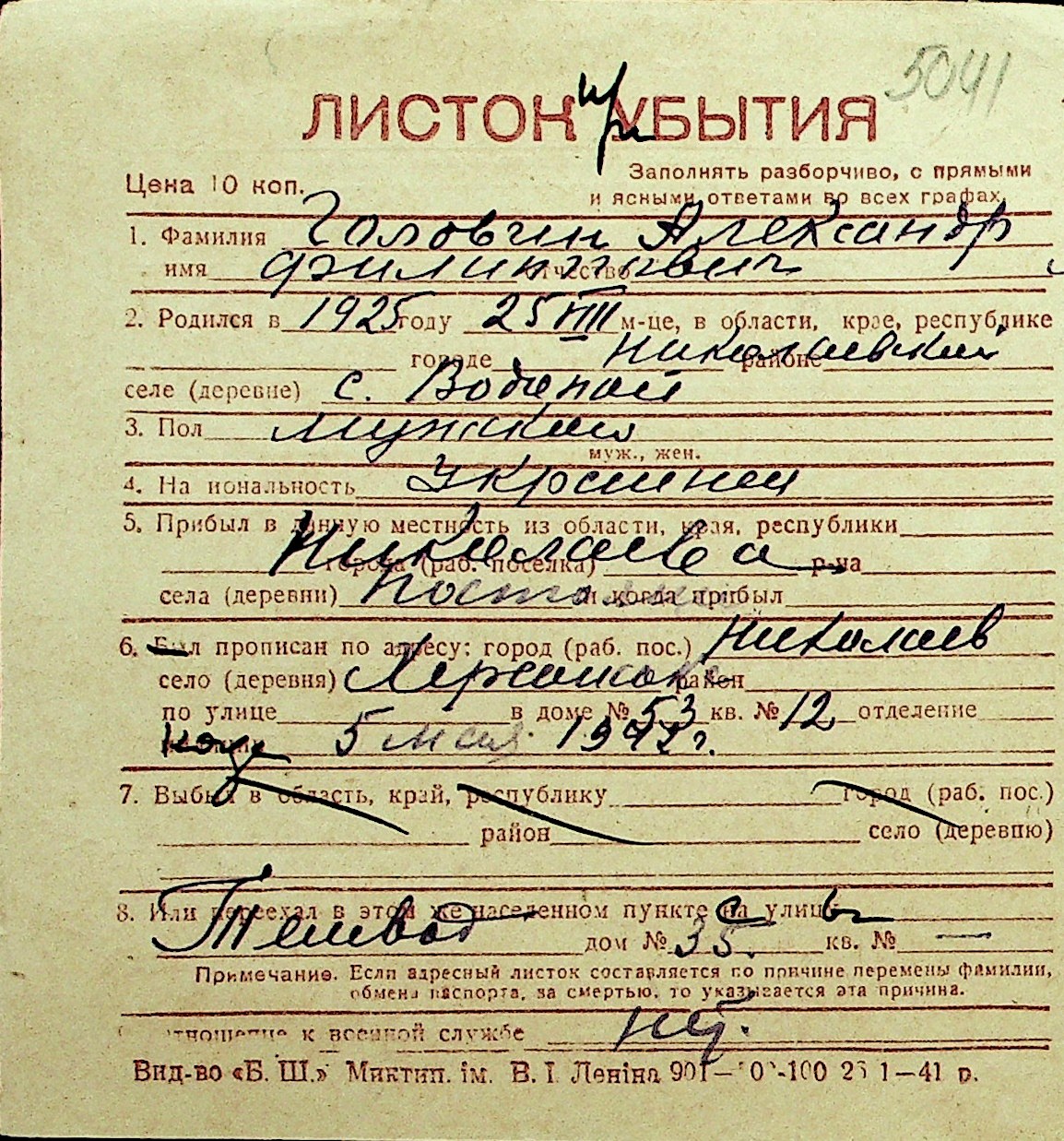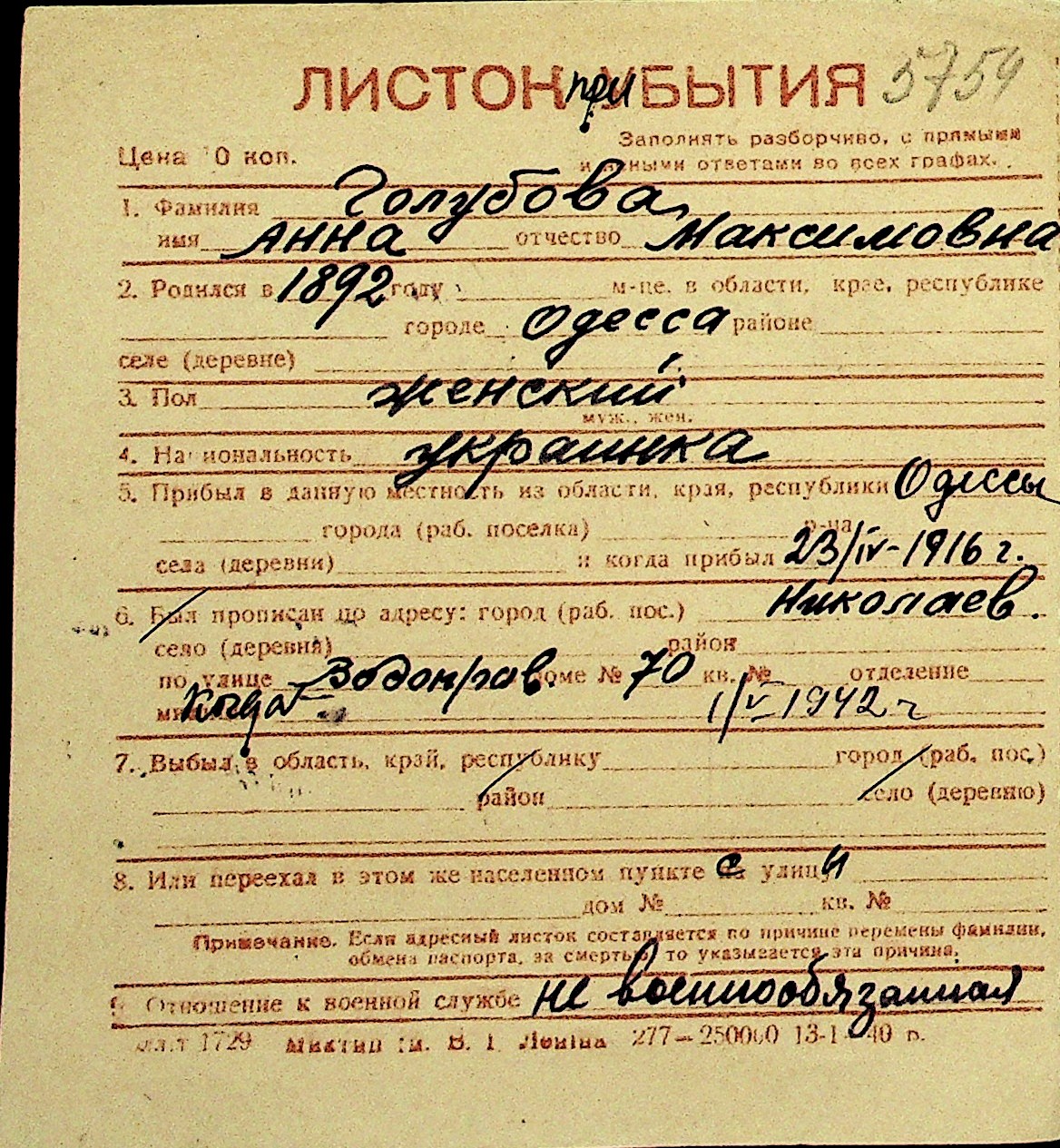 • • Перелік карток до фонду № Н-1016