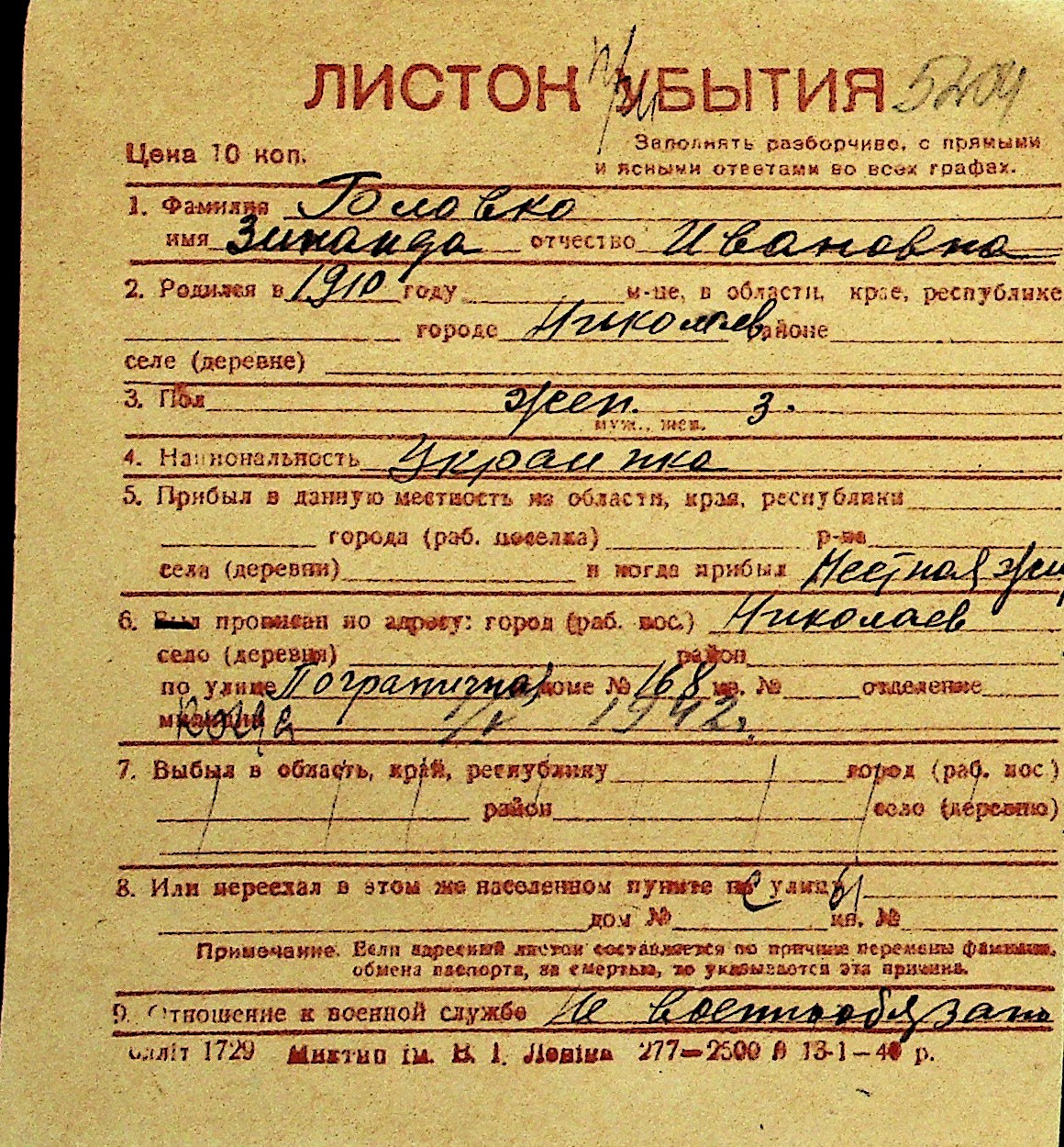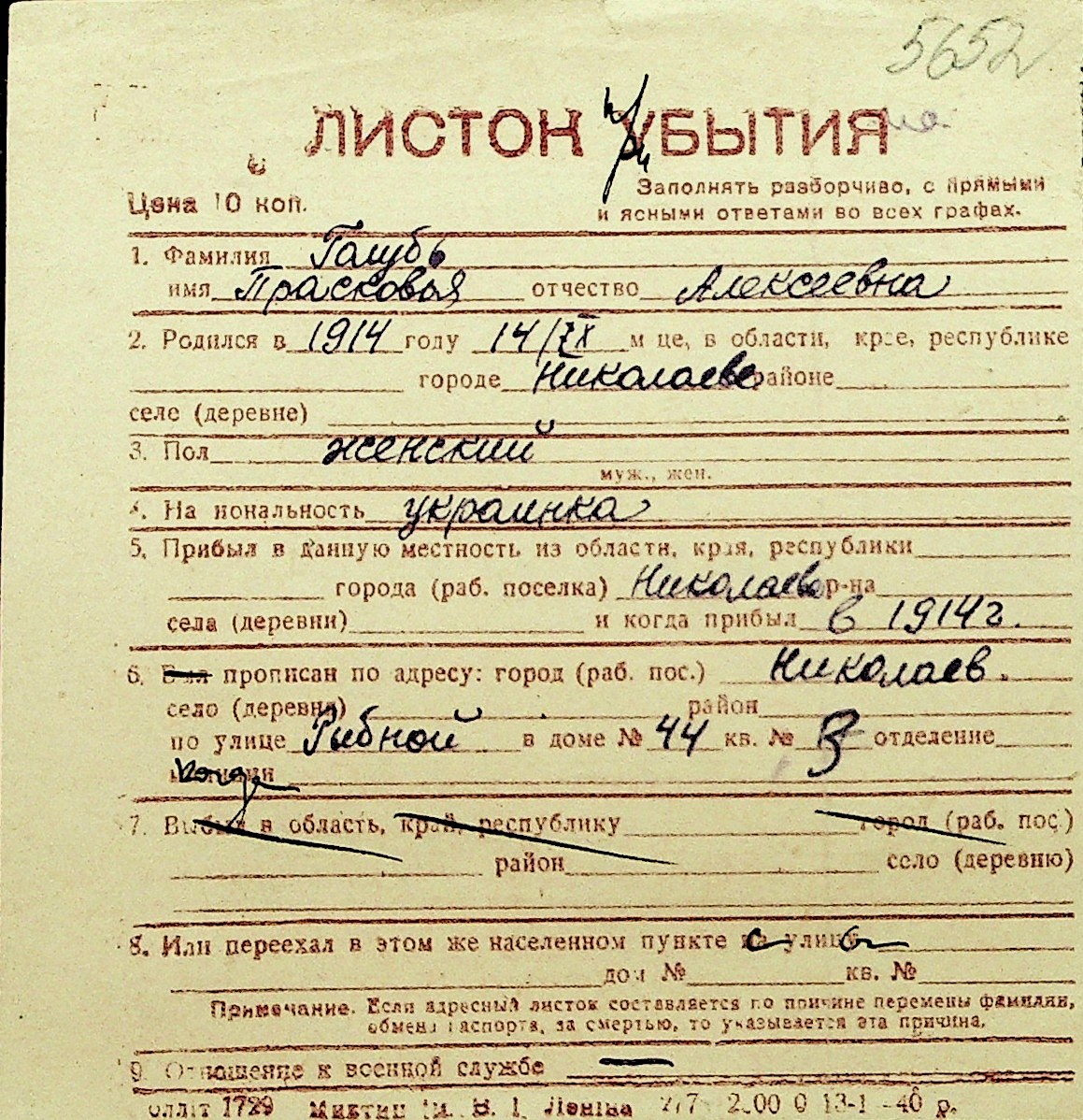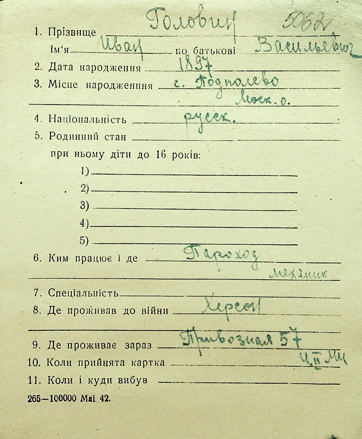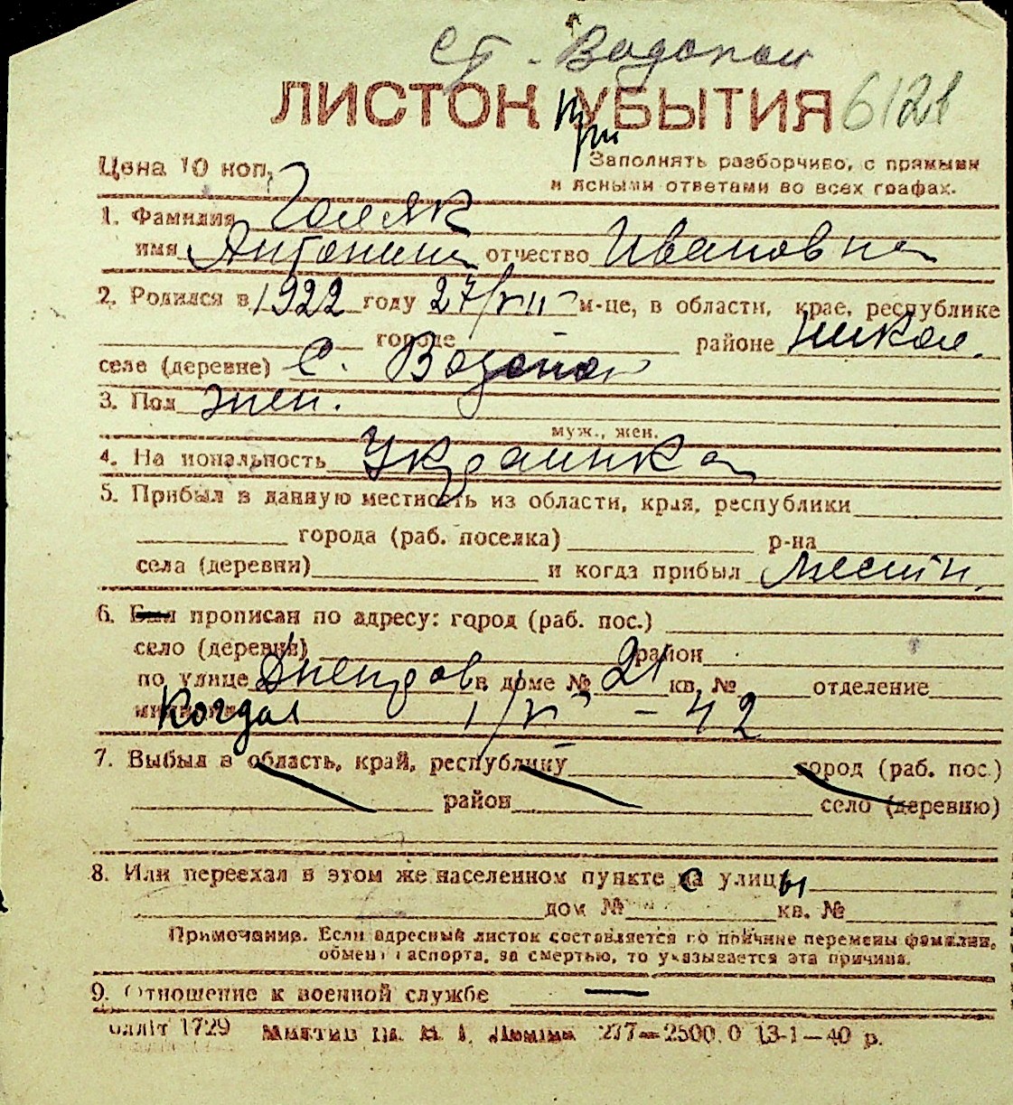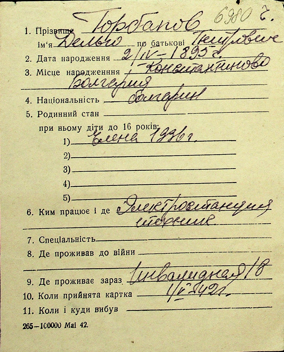 • • Перелік карток до фонду № Н-1016
