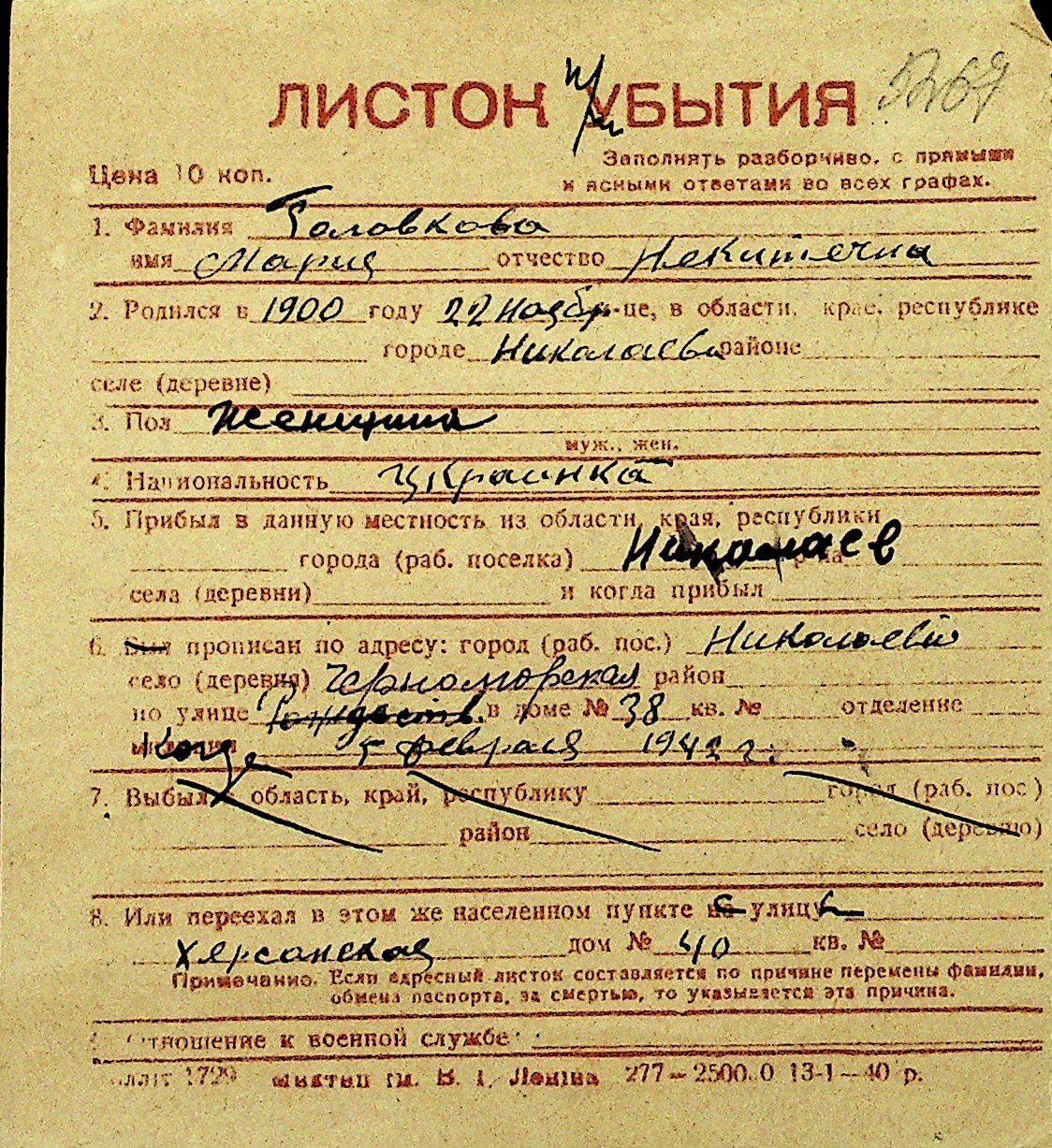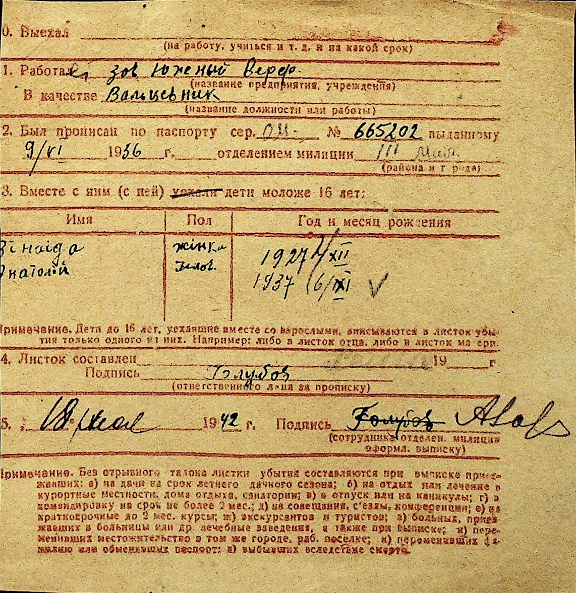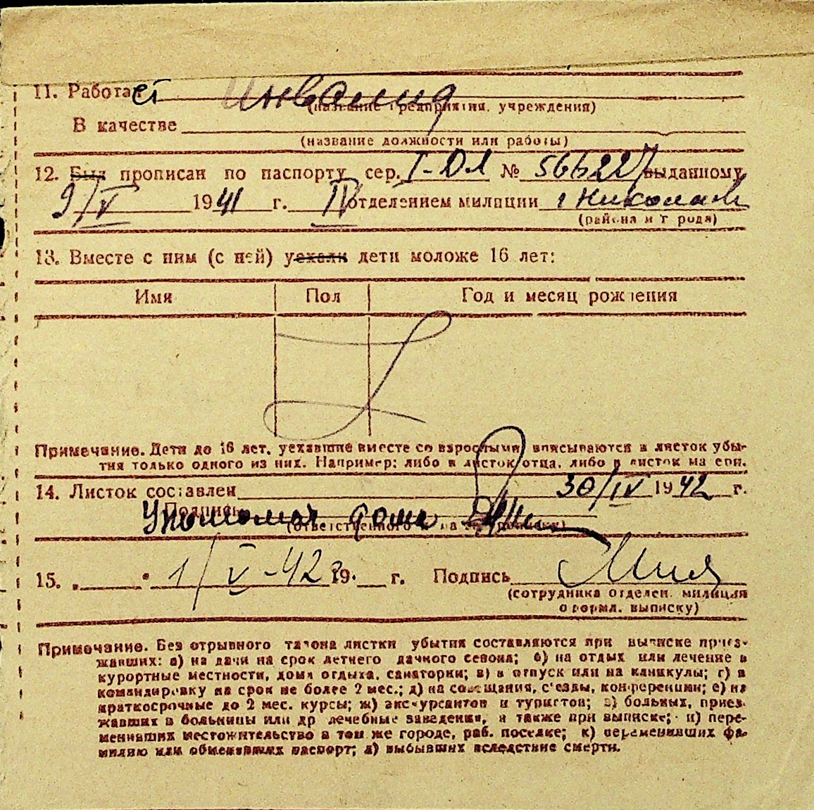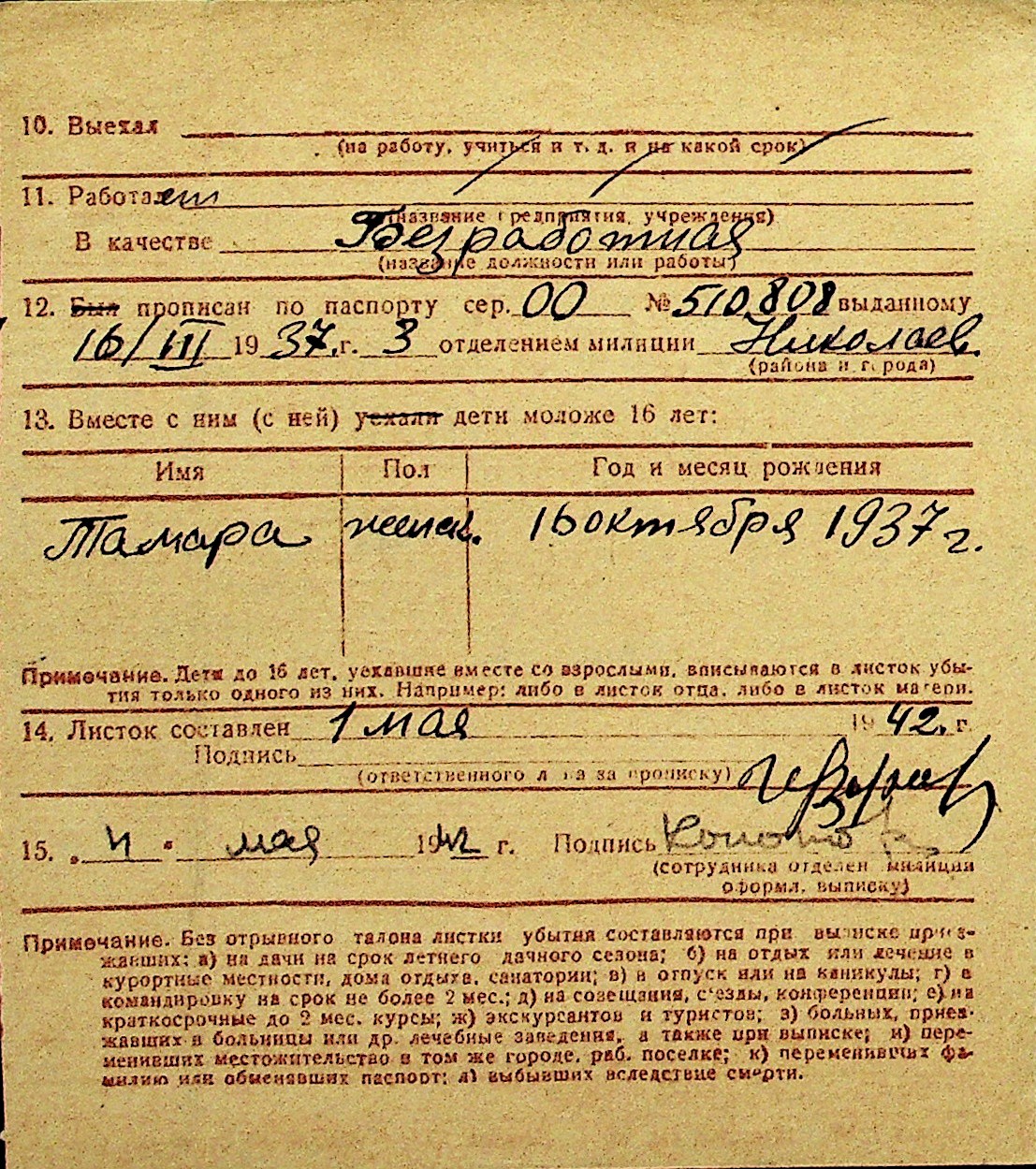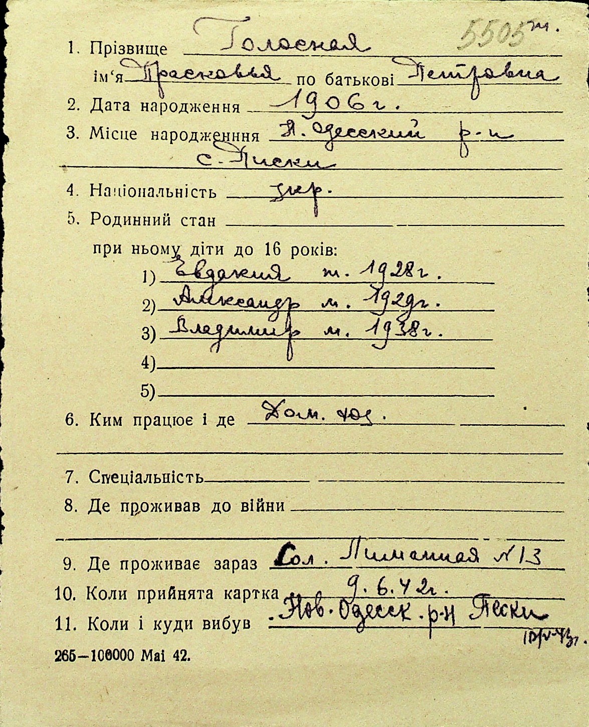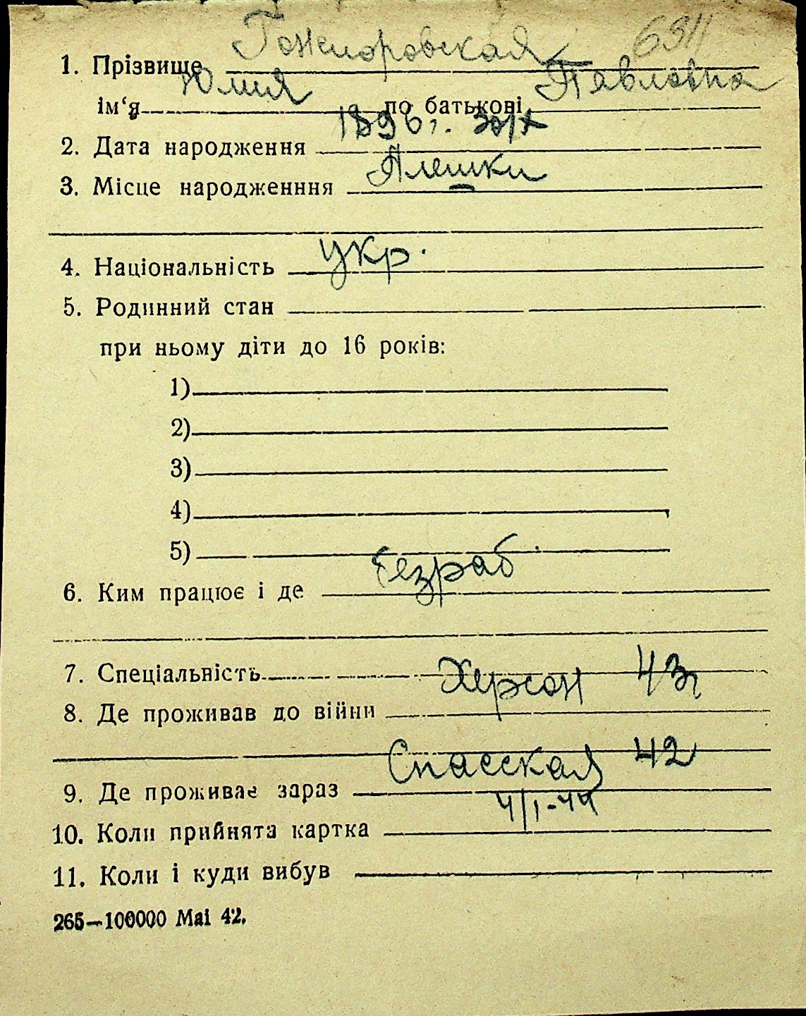 • • Перелік карток до фонду № Н-1016