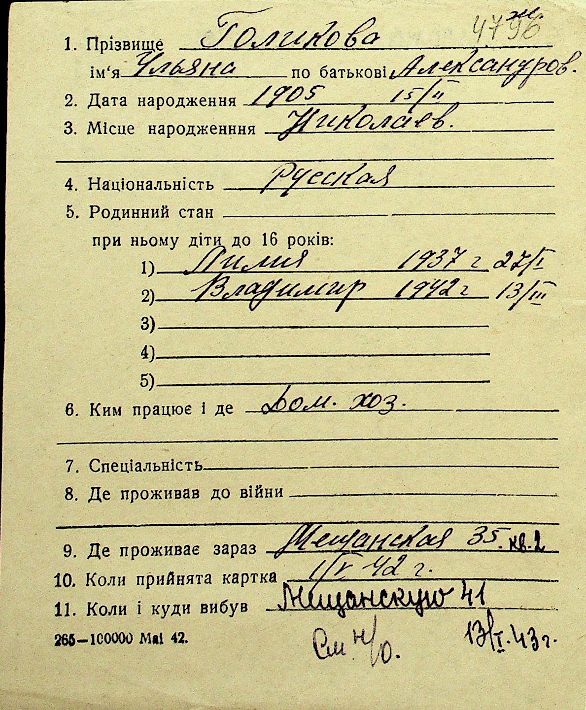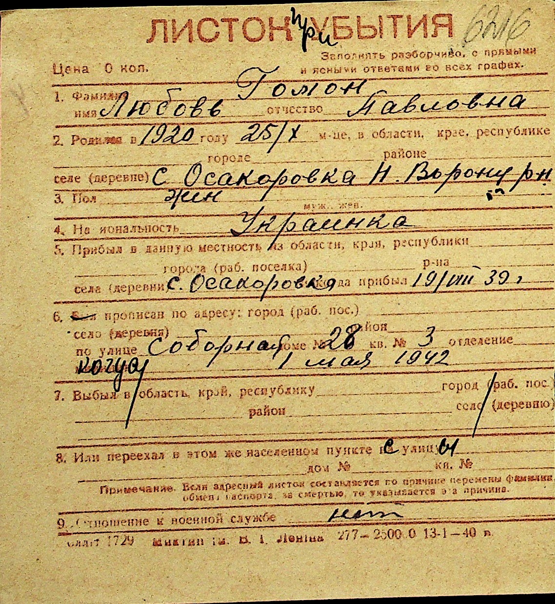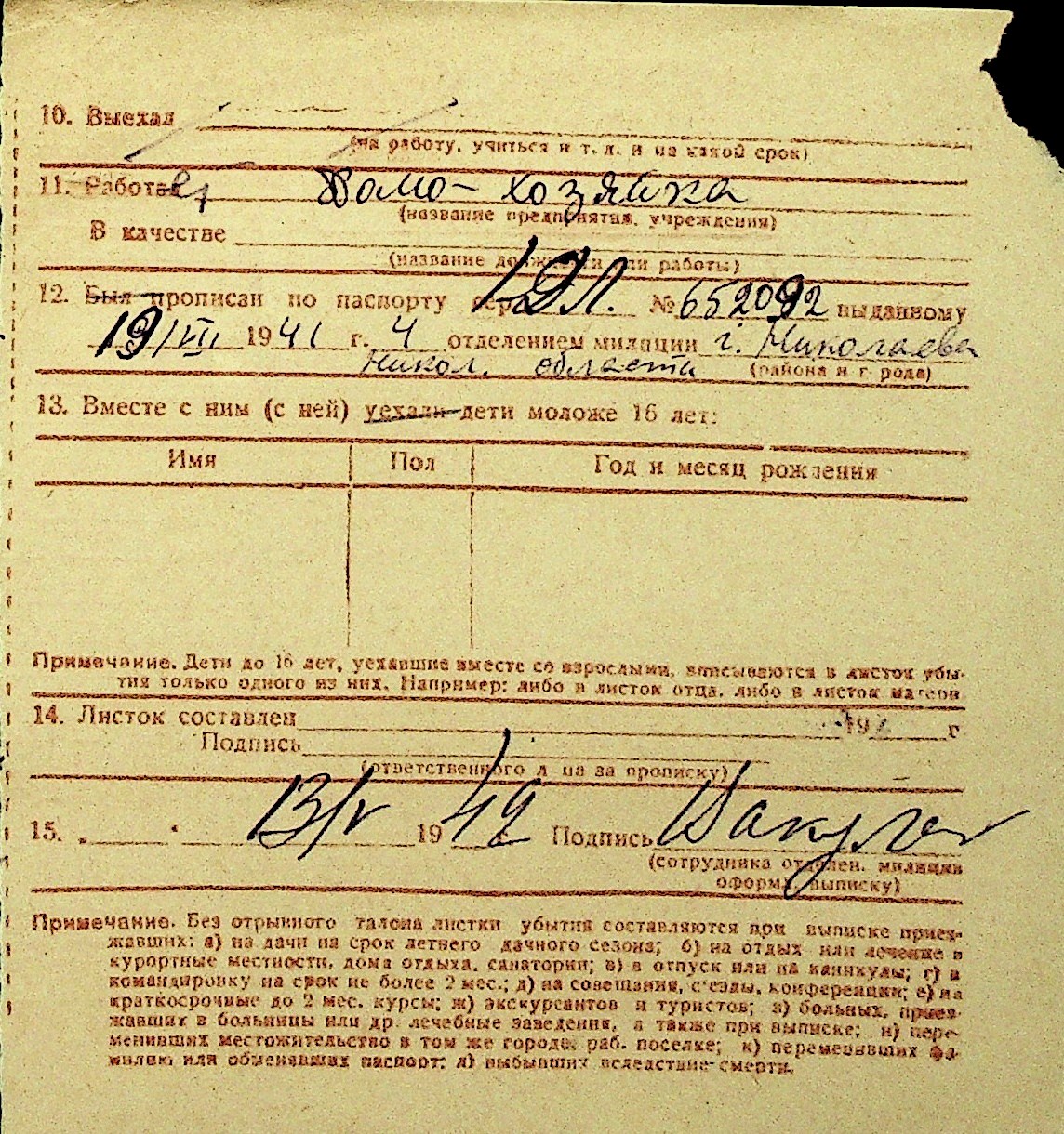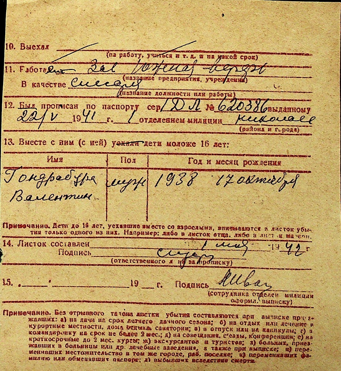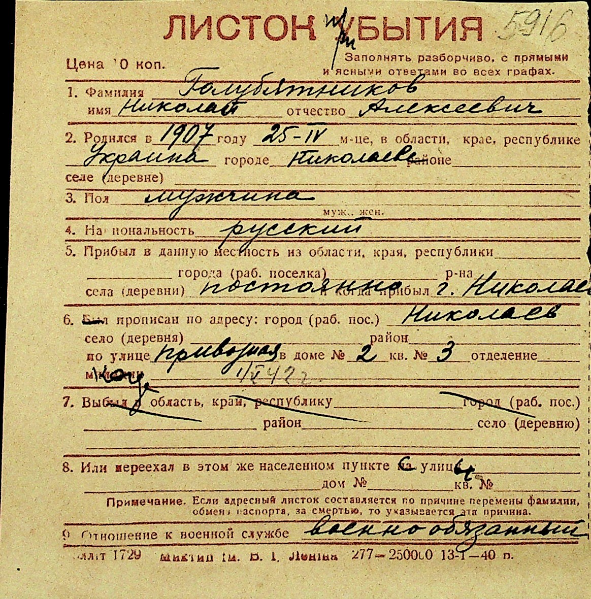 • • Перелік карток до фонду № Н-1016