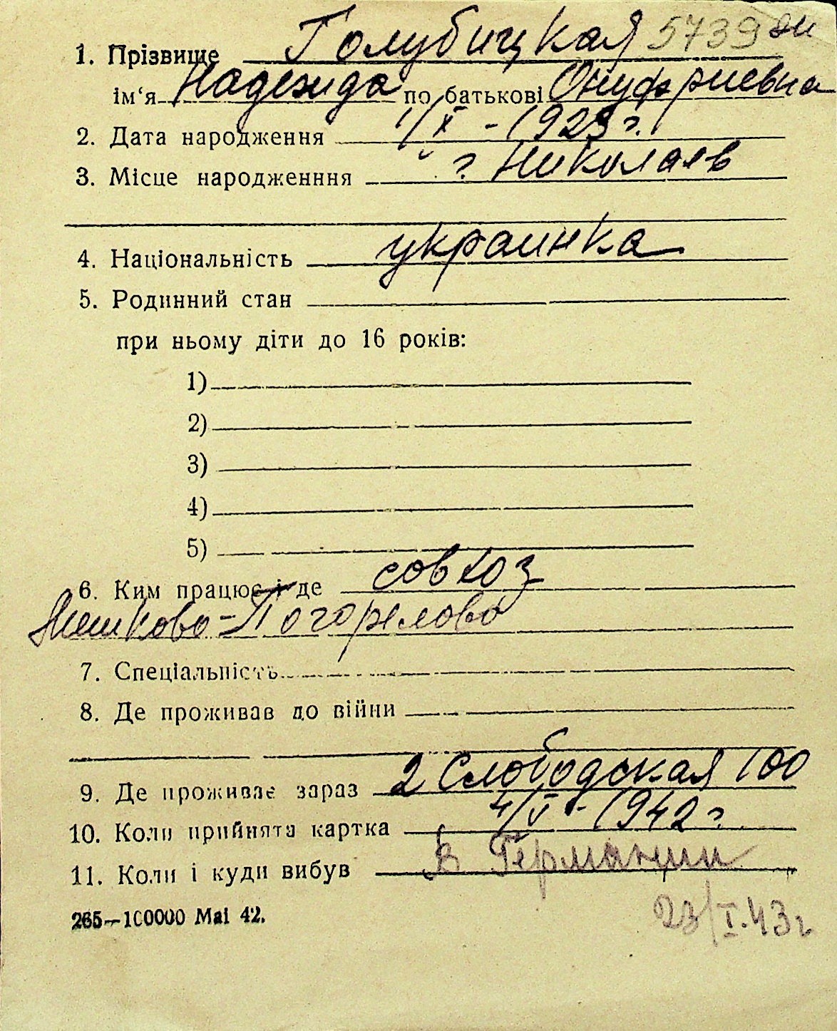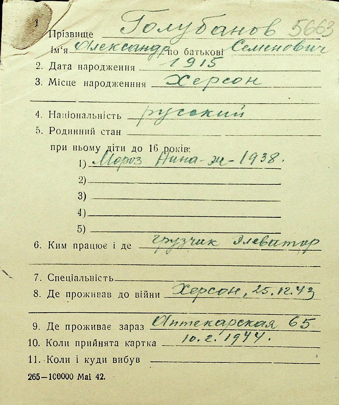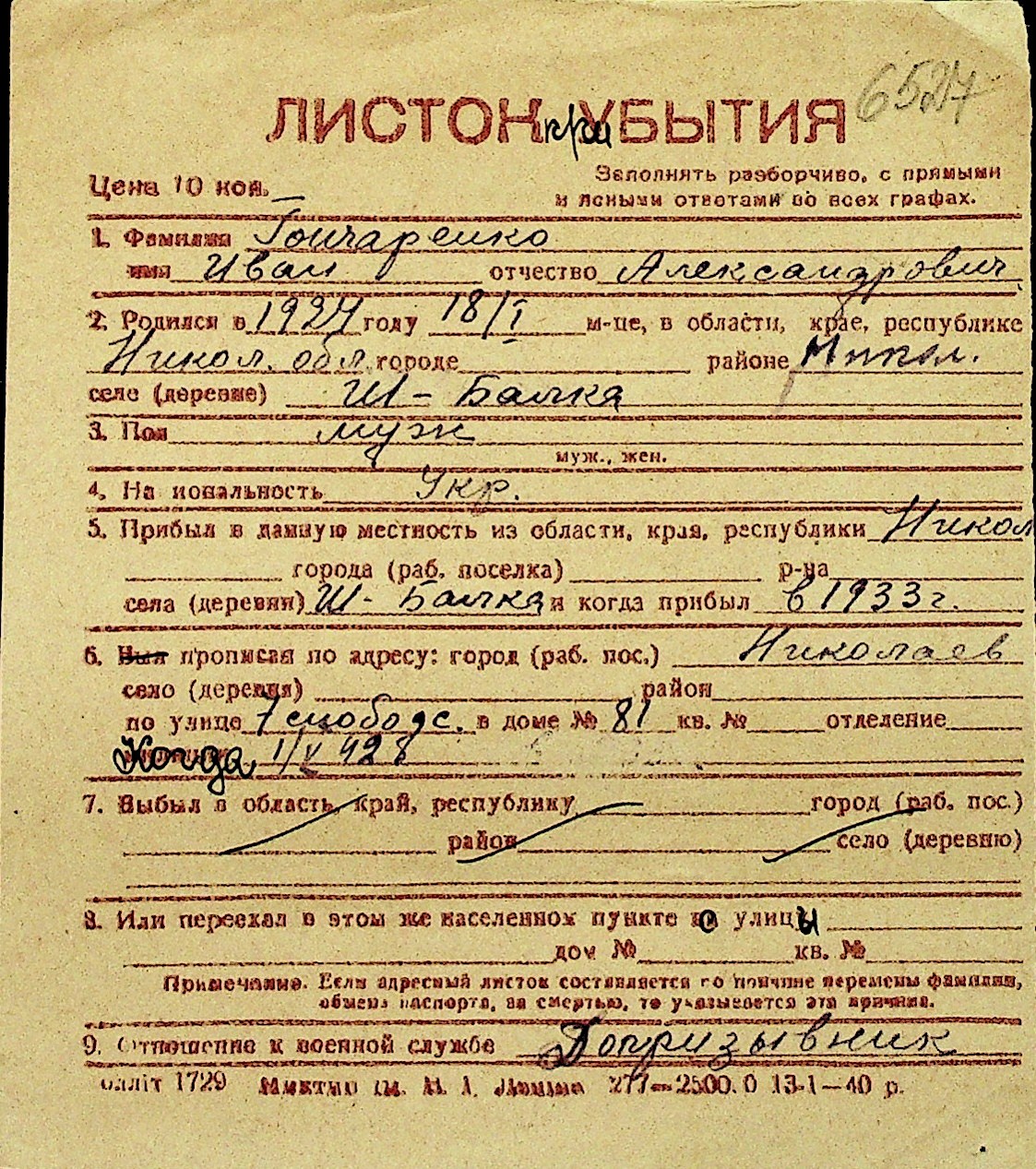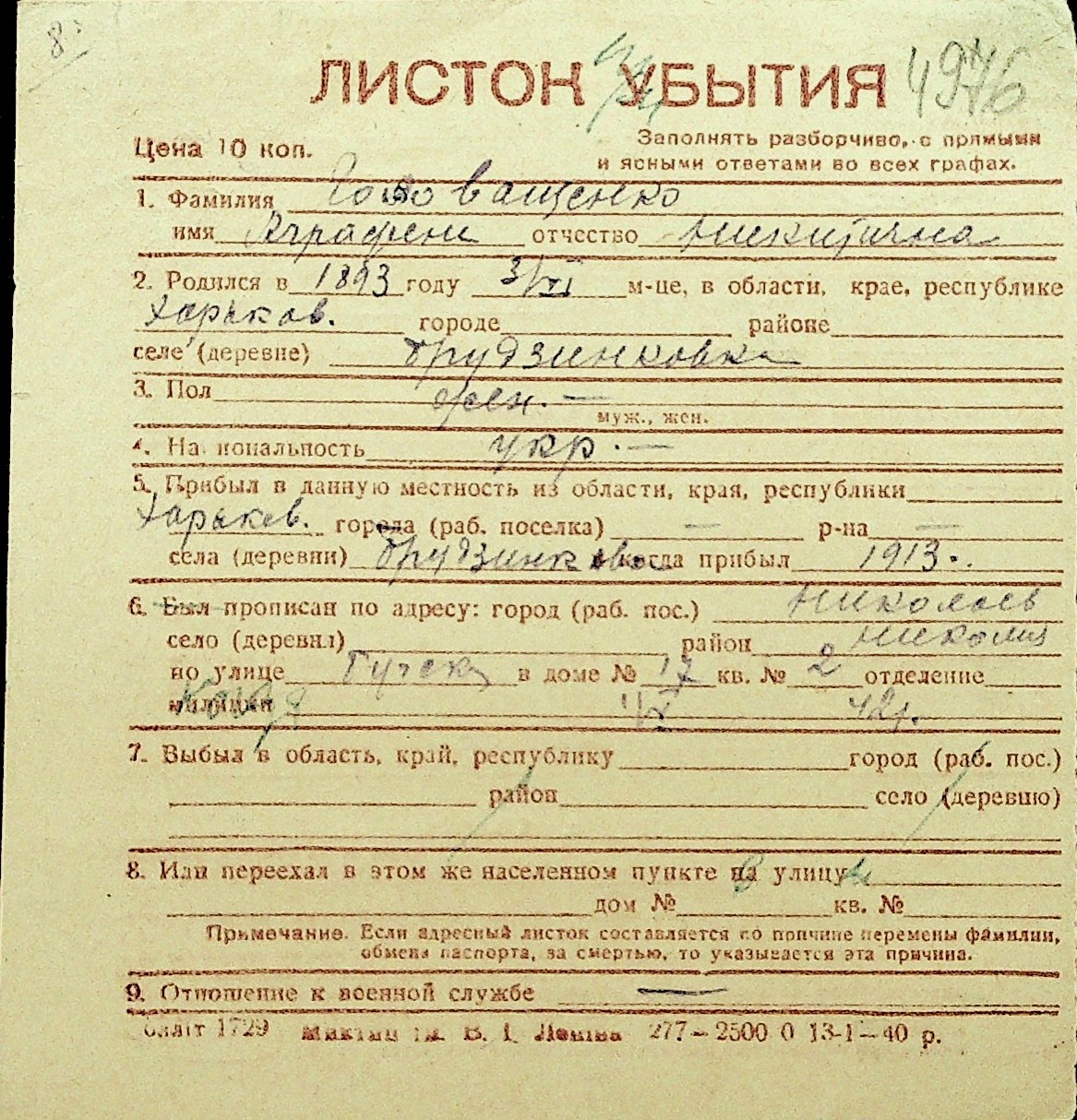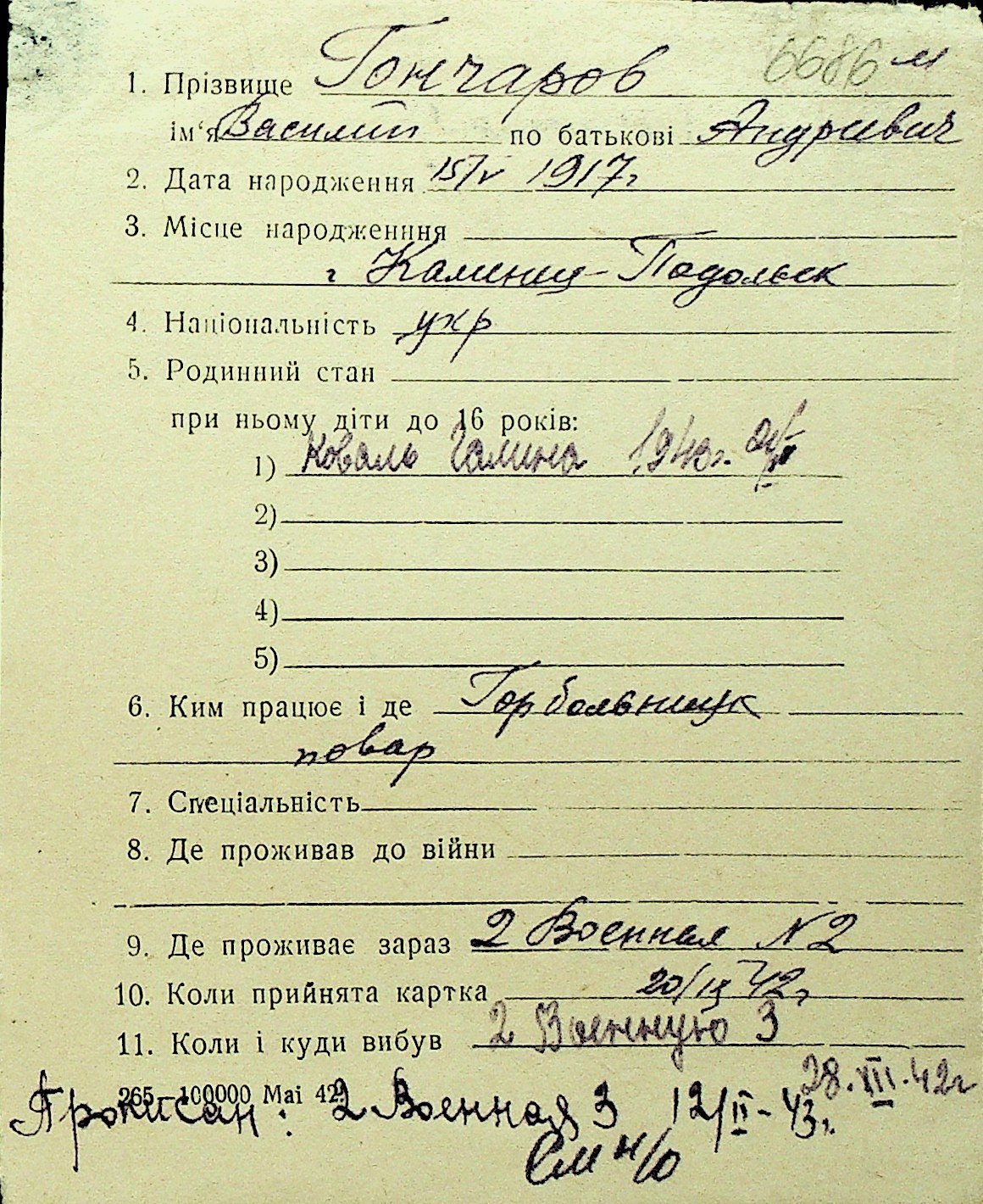 • • Перелік карток до фонду № Н-1016