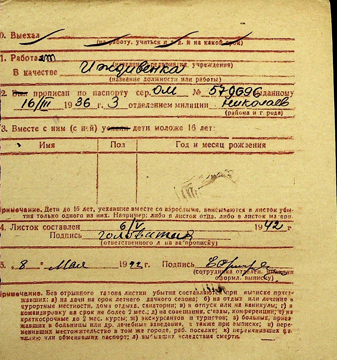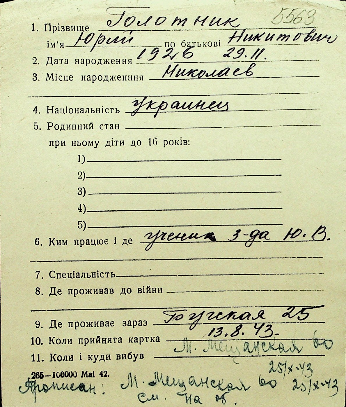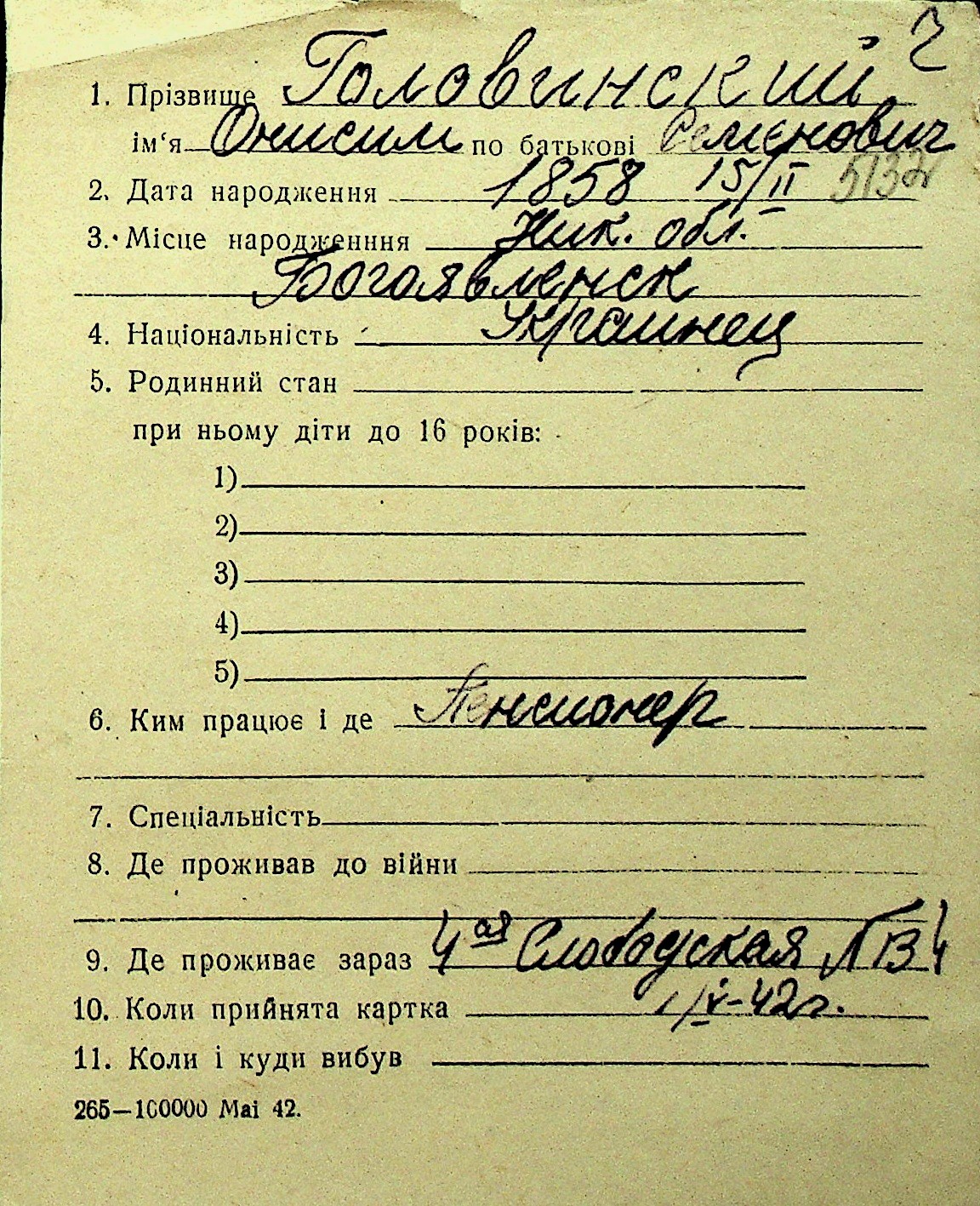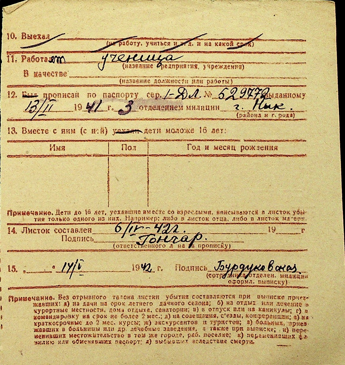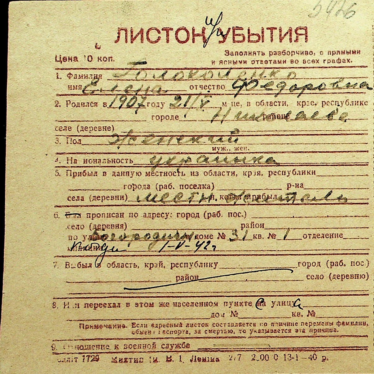 • • Перелік карток до фонду № Н-1016