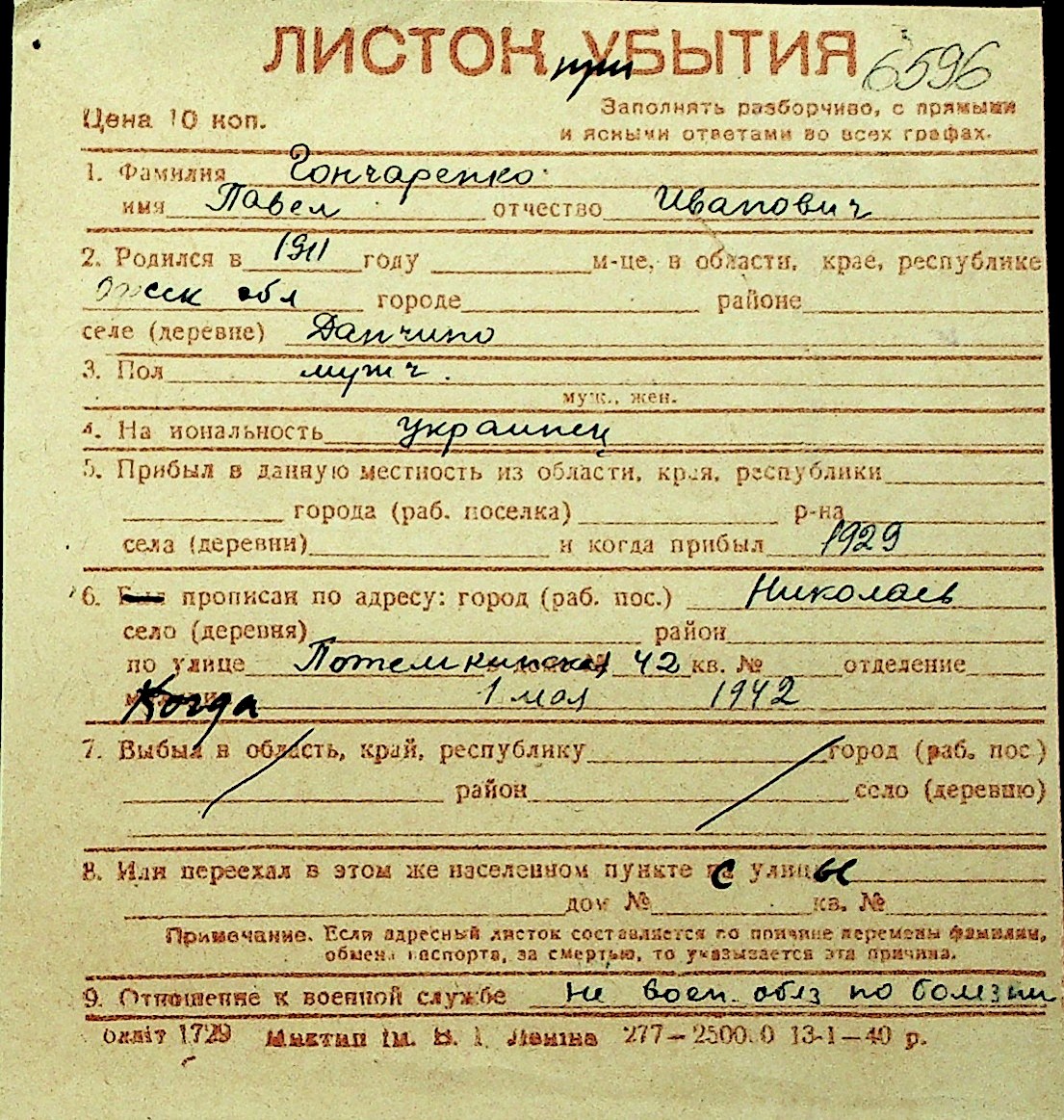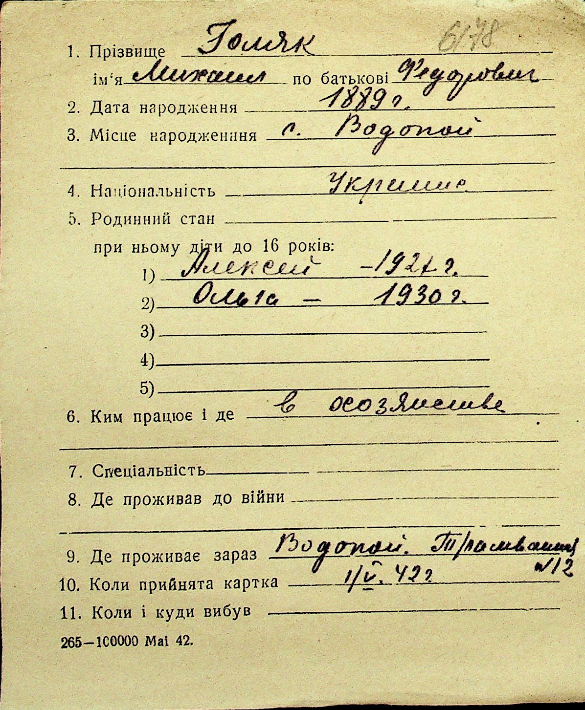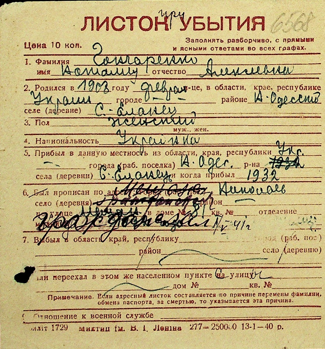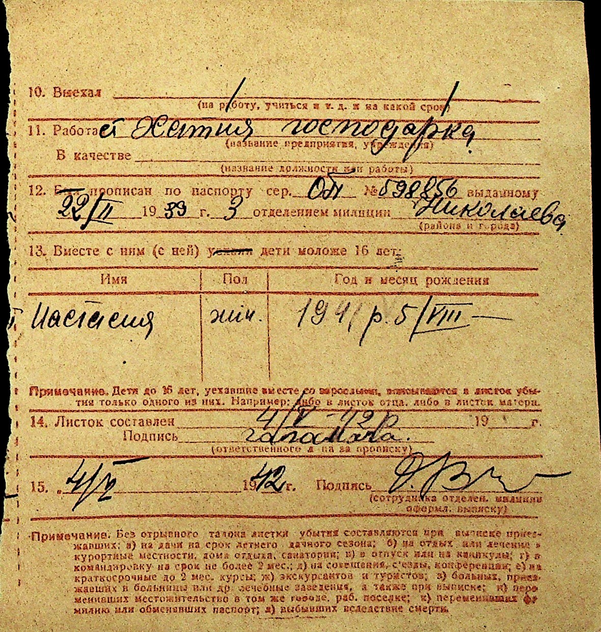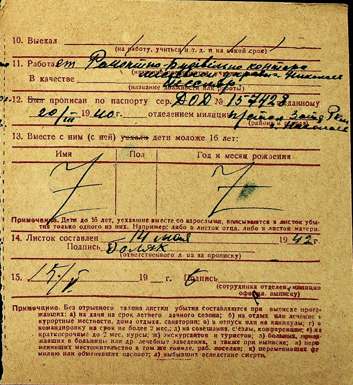 • • Перелік карток до фонду № Н-1016