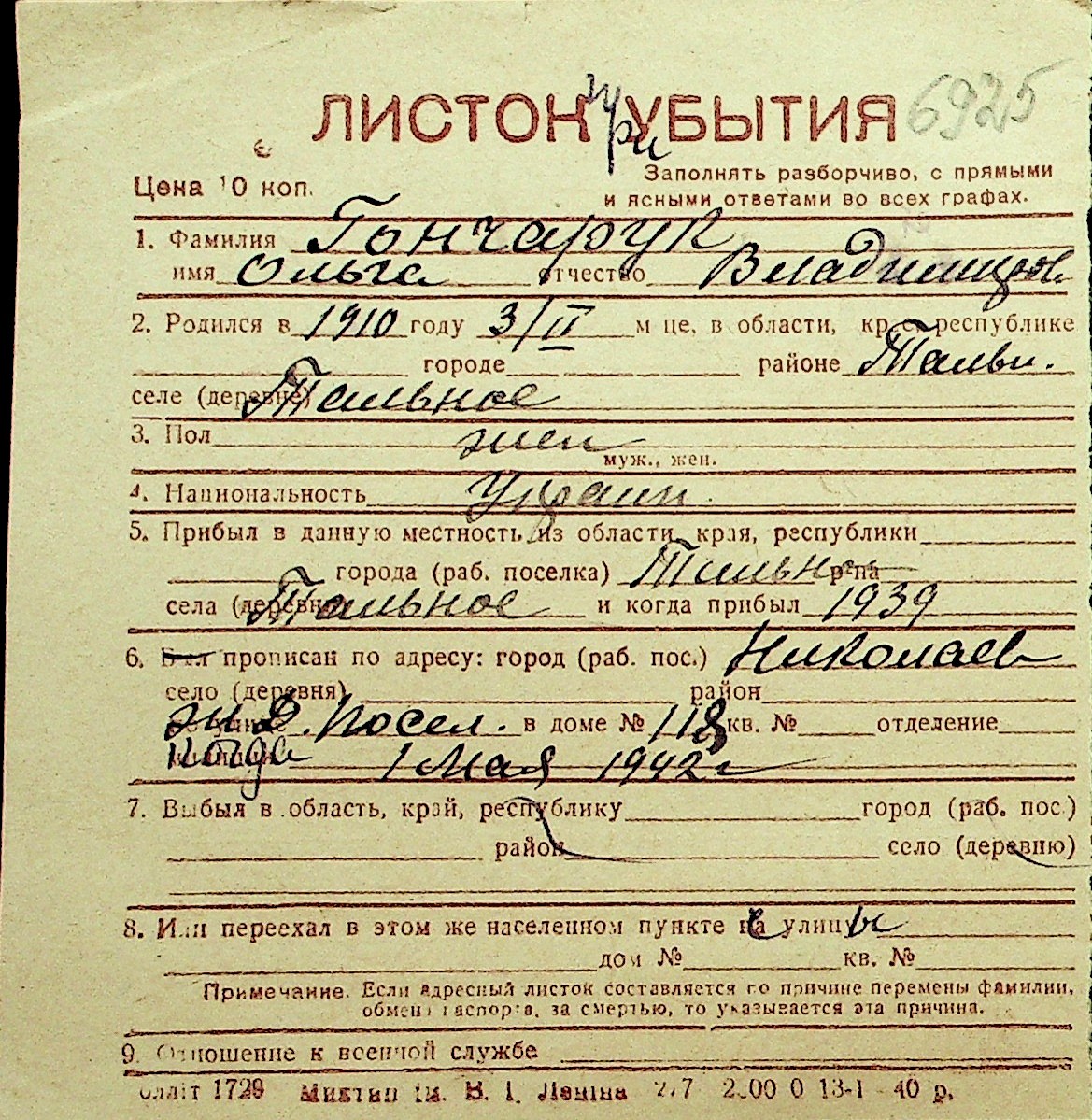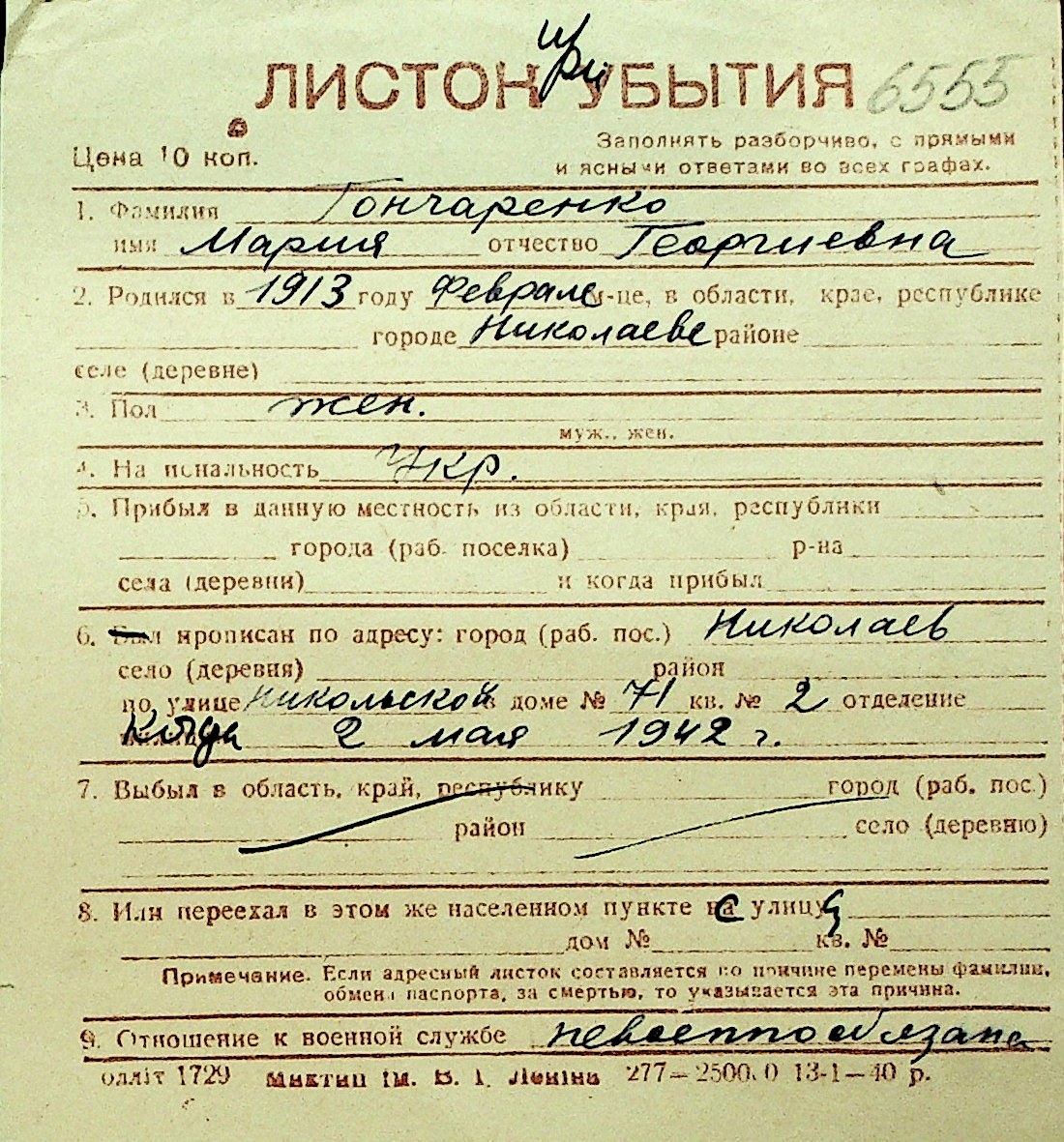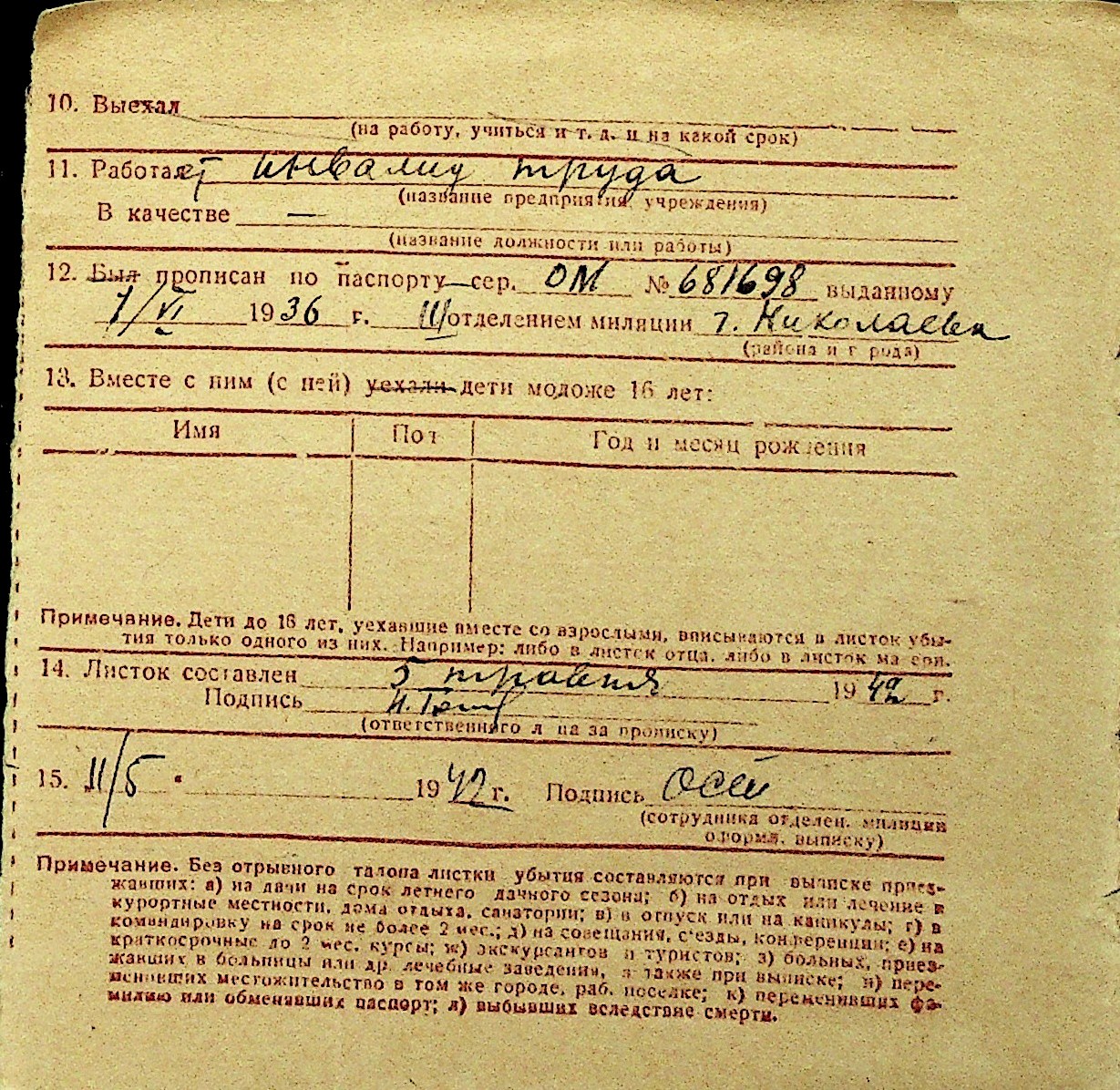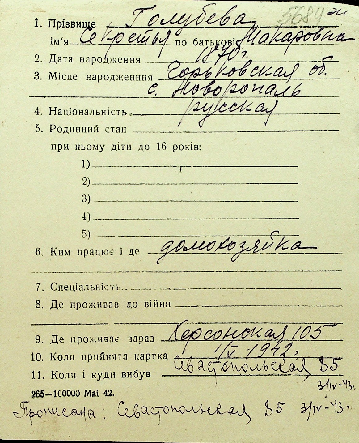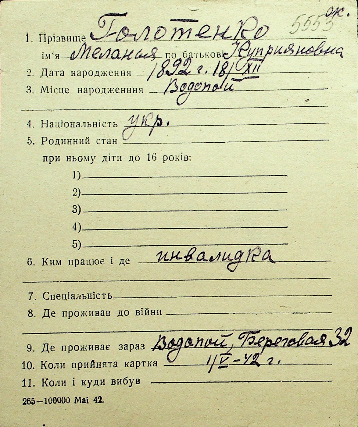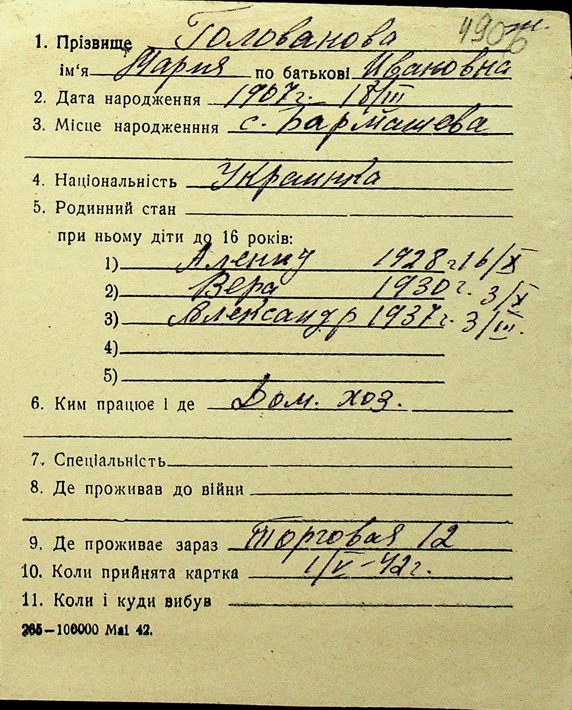 • • Перелік карток до фонду № Н-1016
