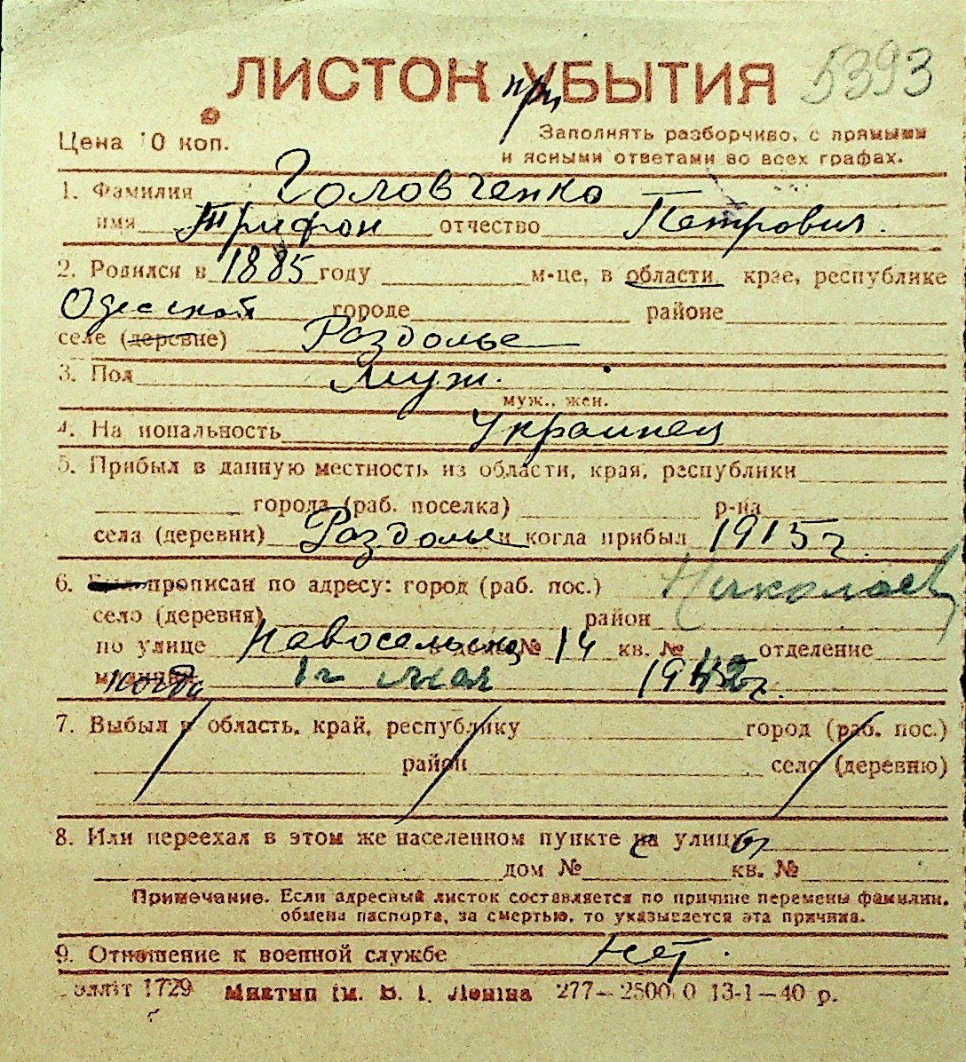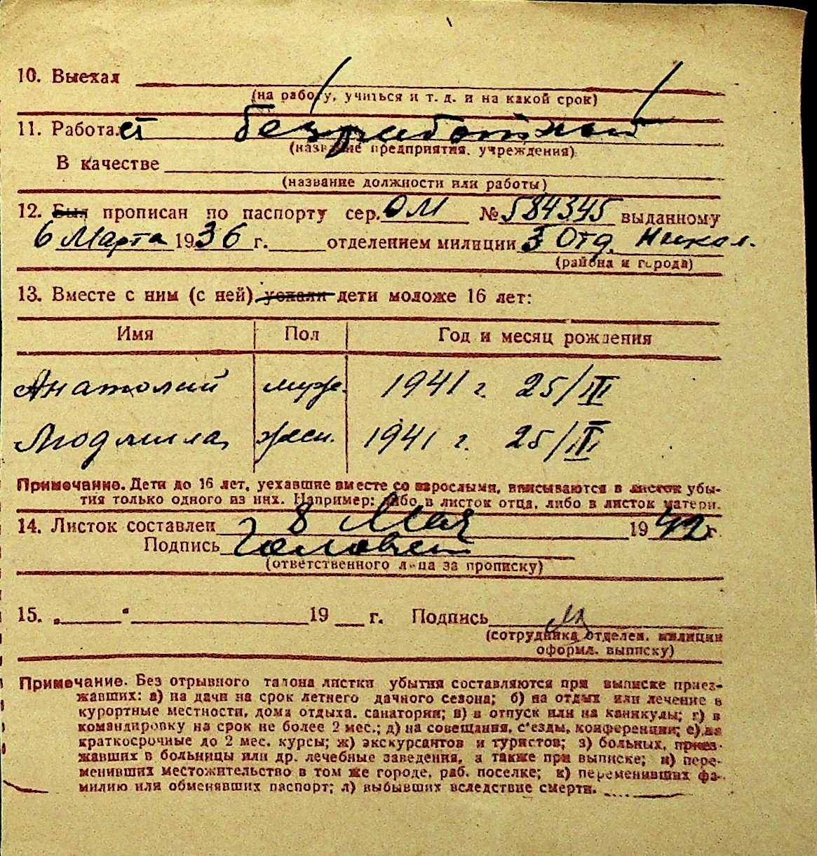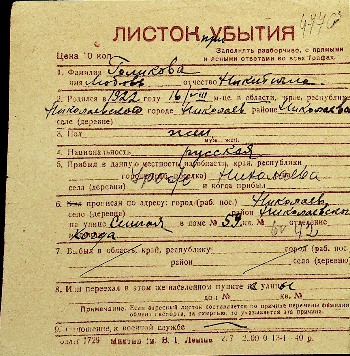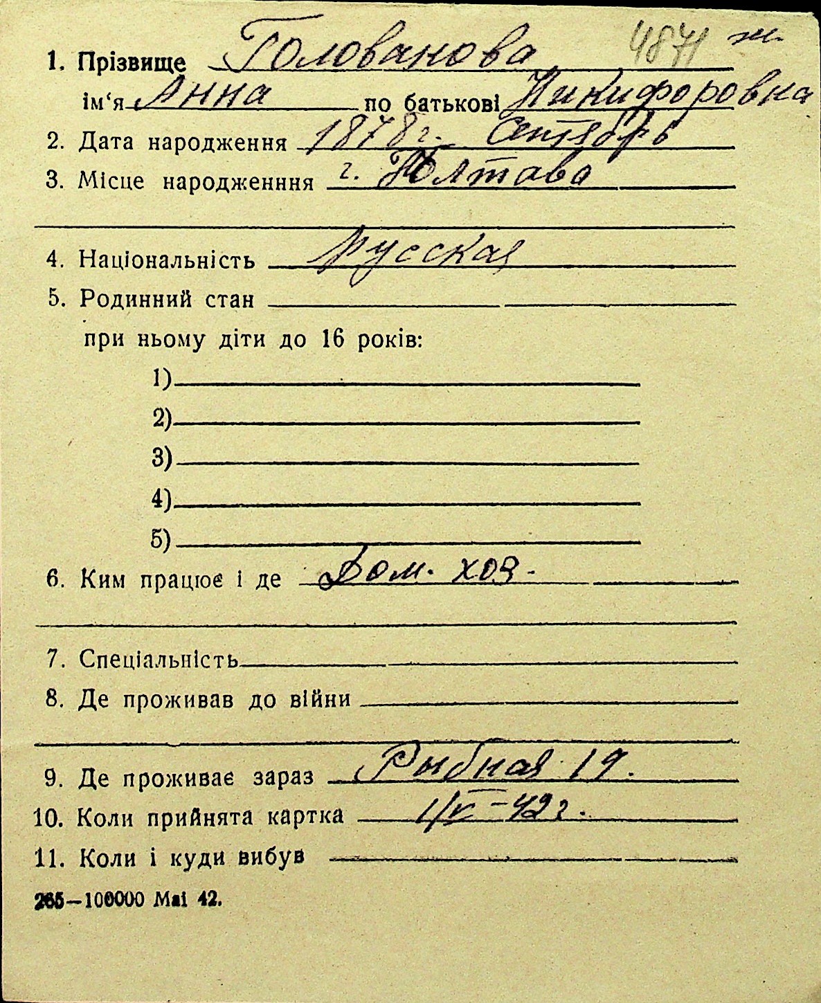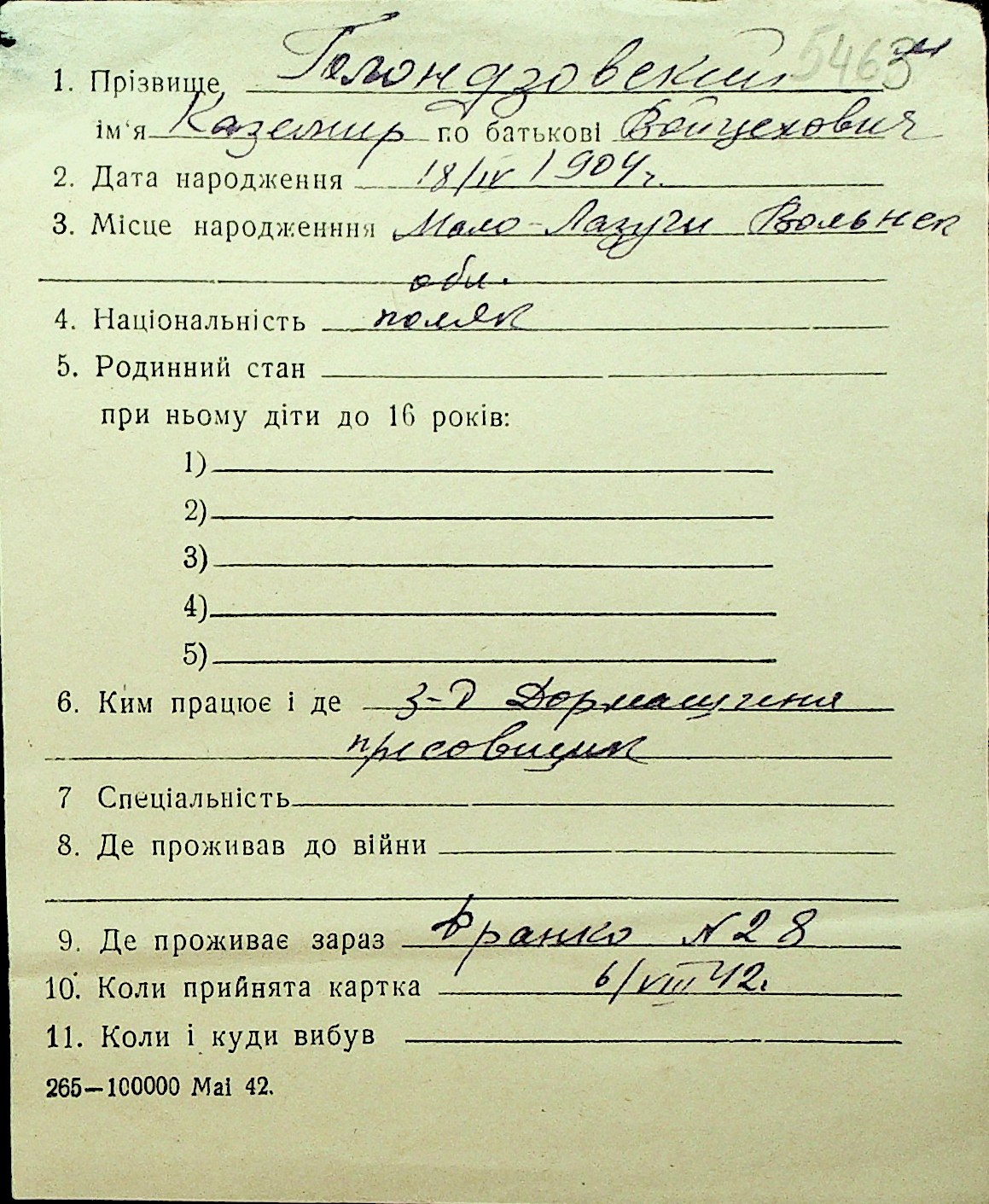 • • Перелік карток до фонду № Н-1016
