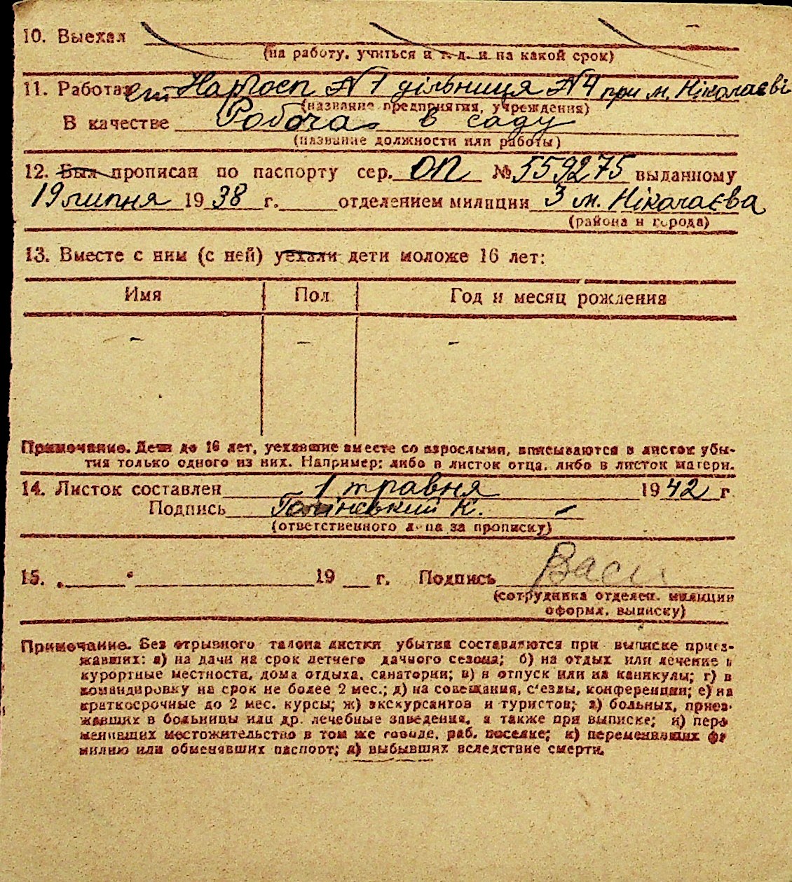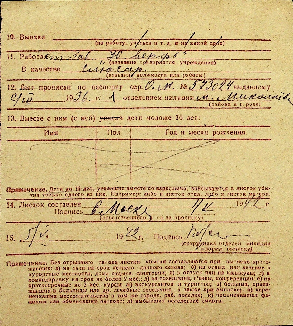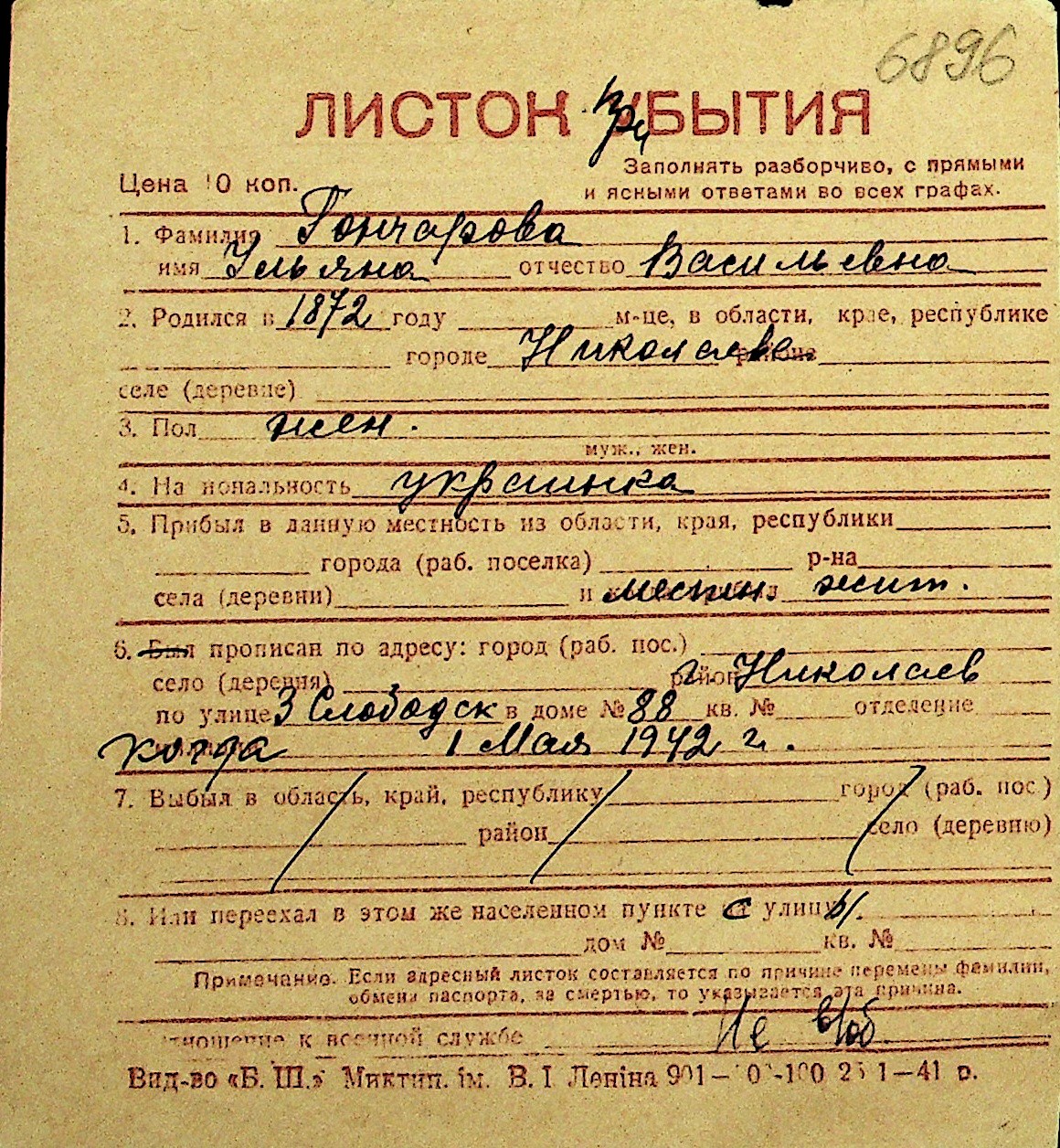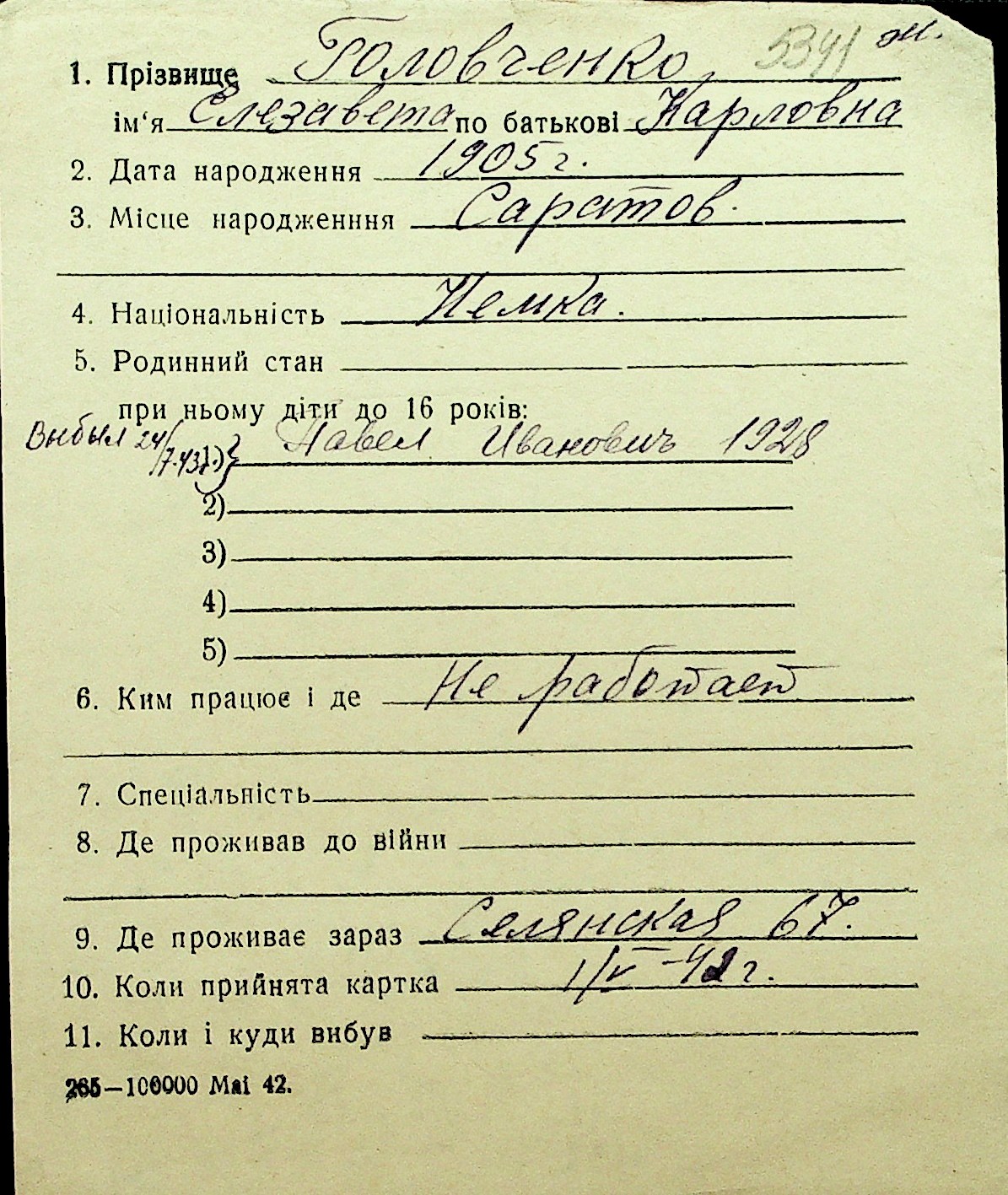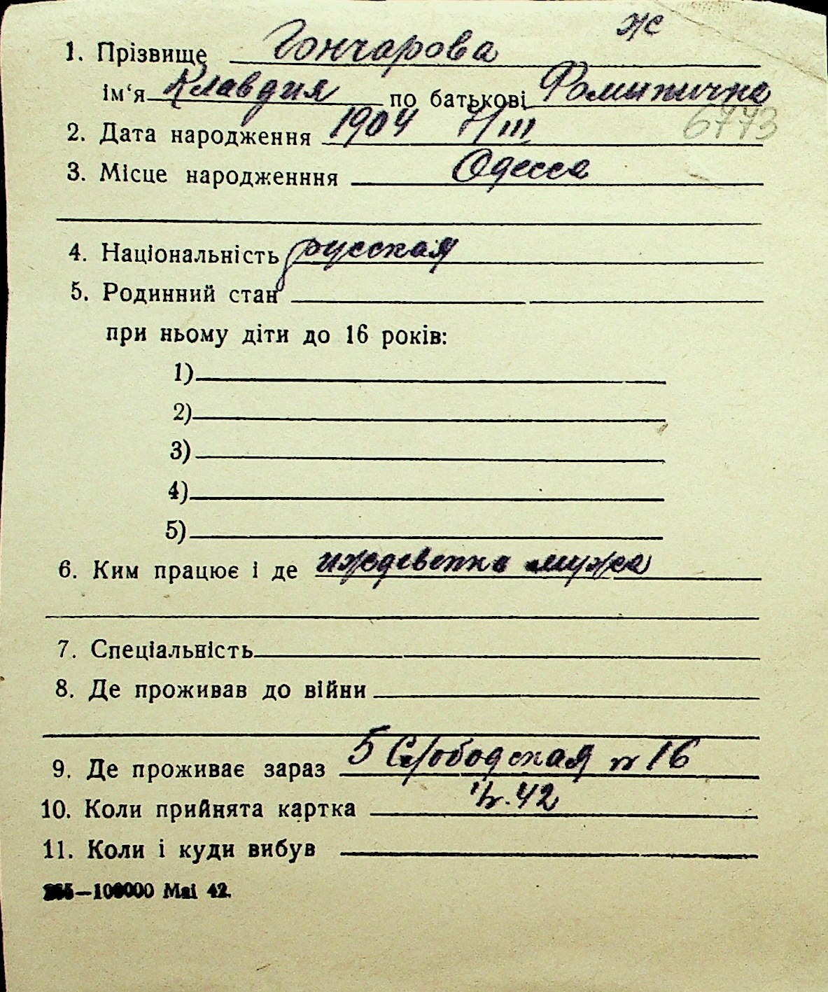 • • Перелік карток до фонду № Н-1016