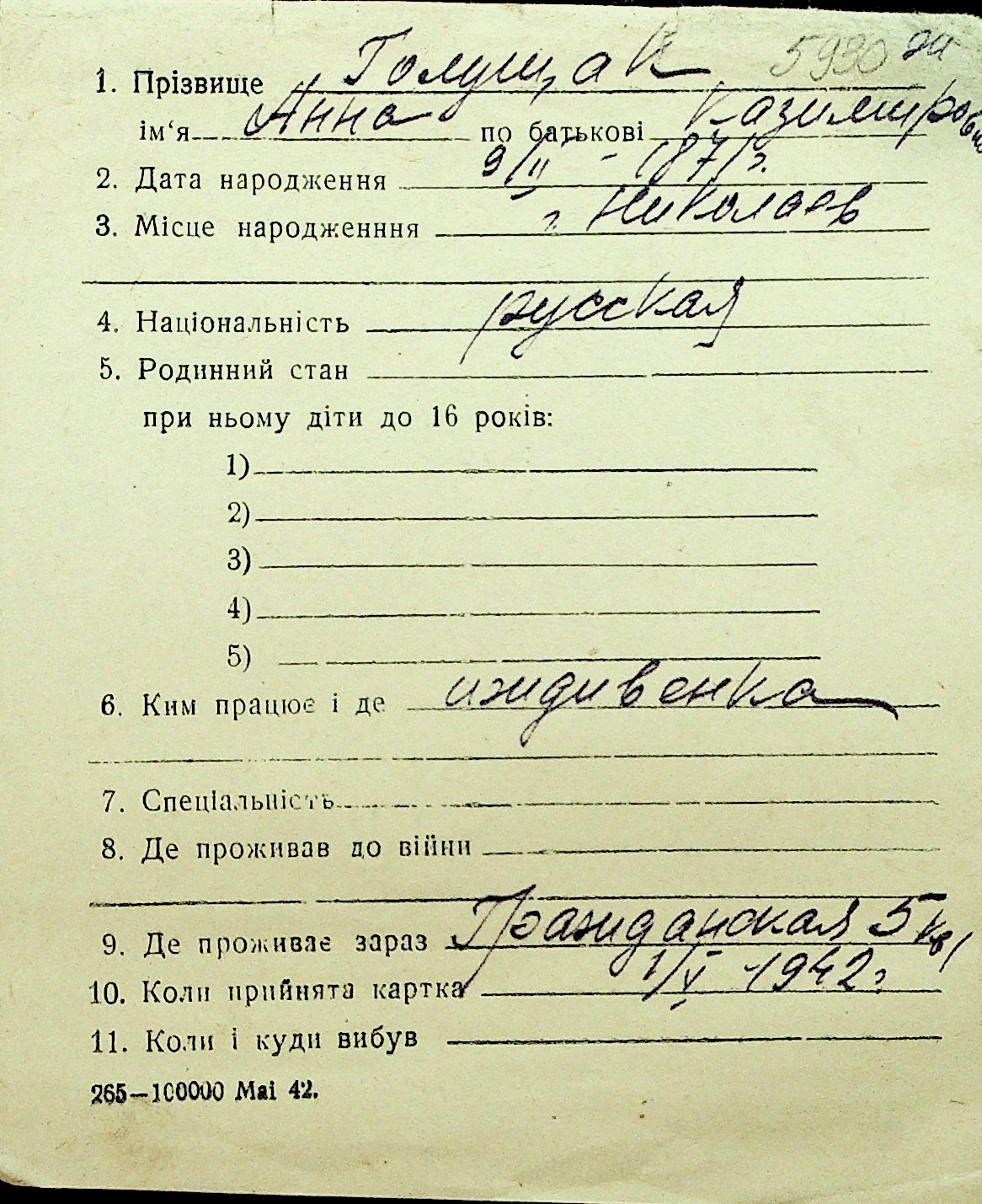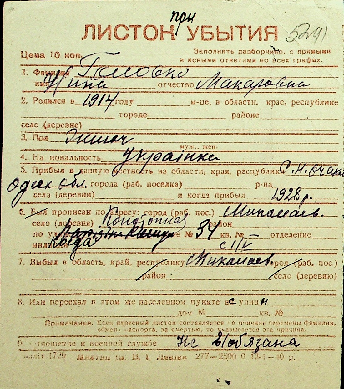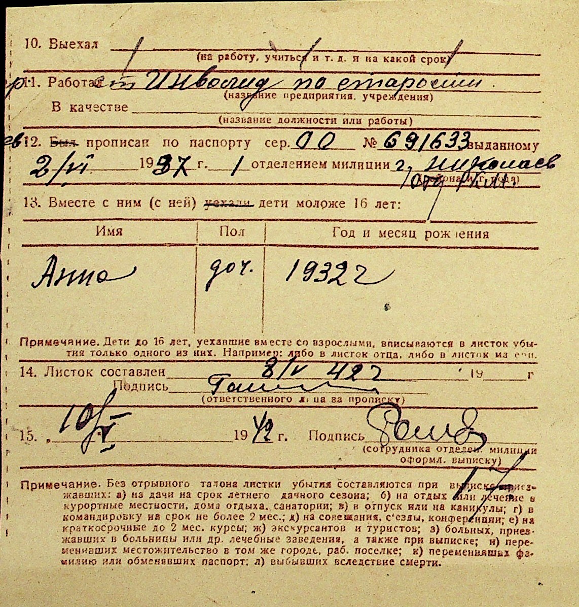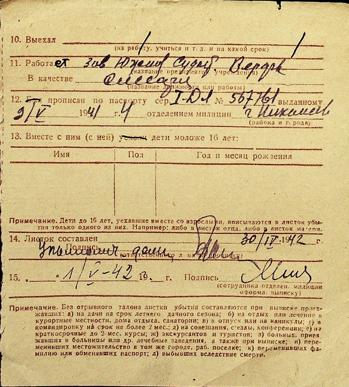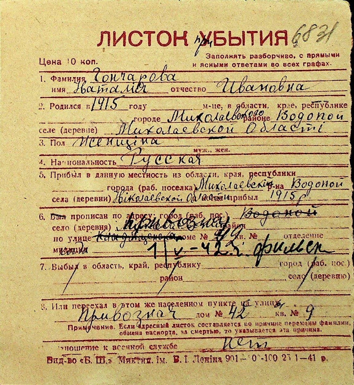 • • Перелік карток до фонду № Н-1016