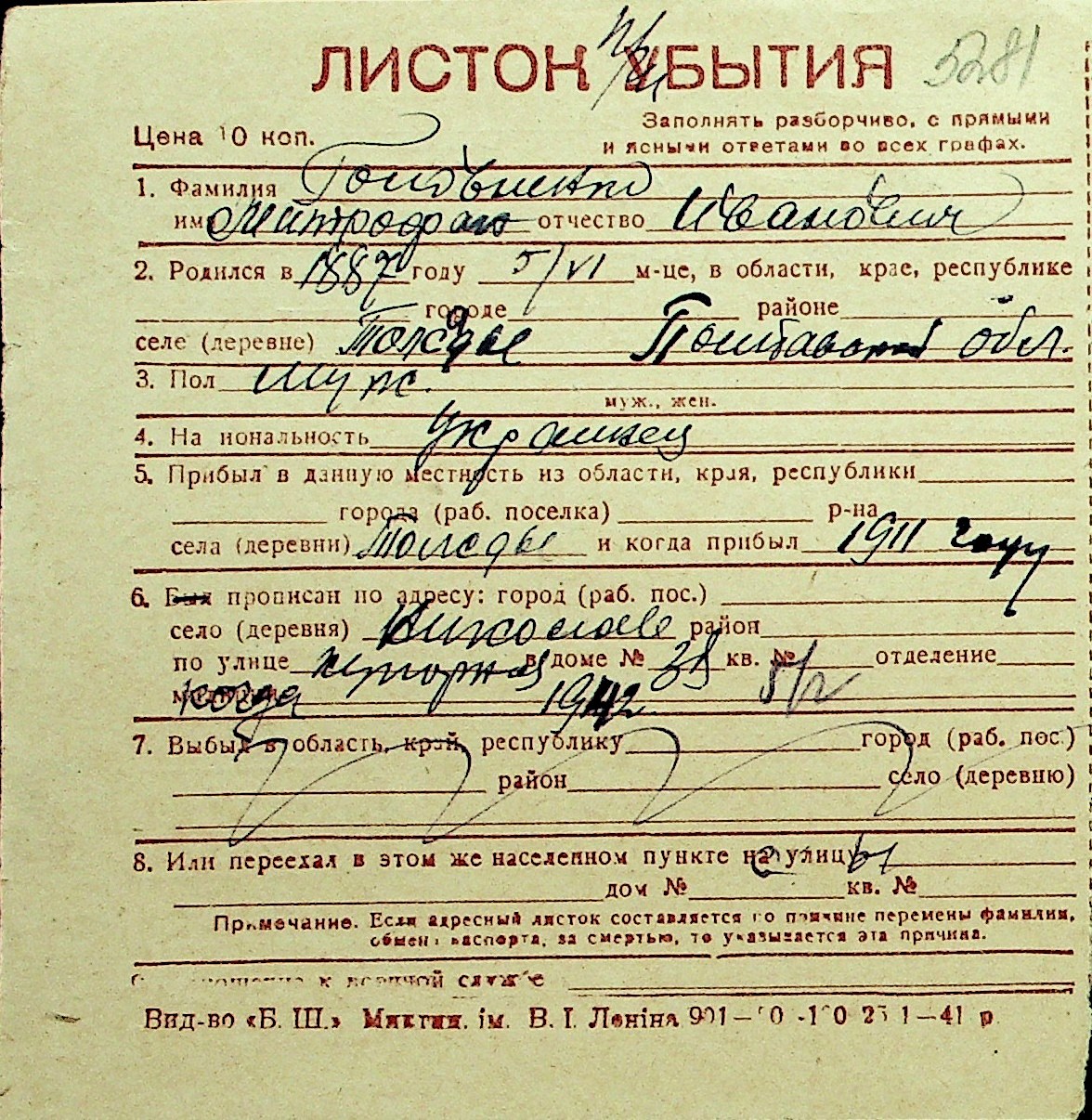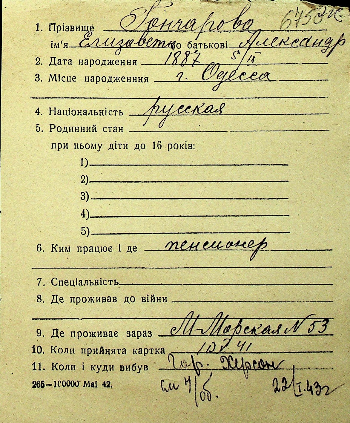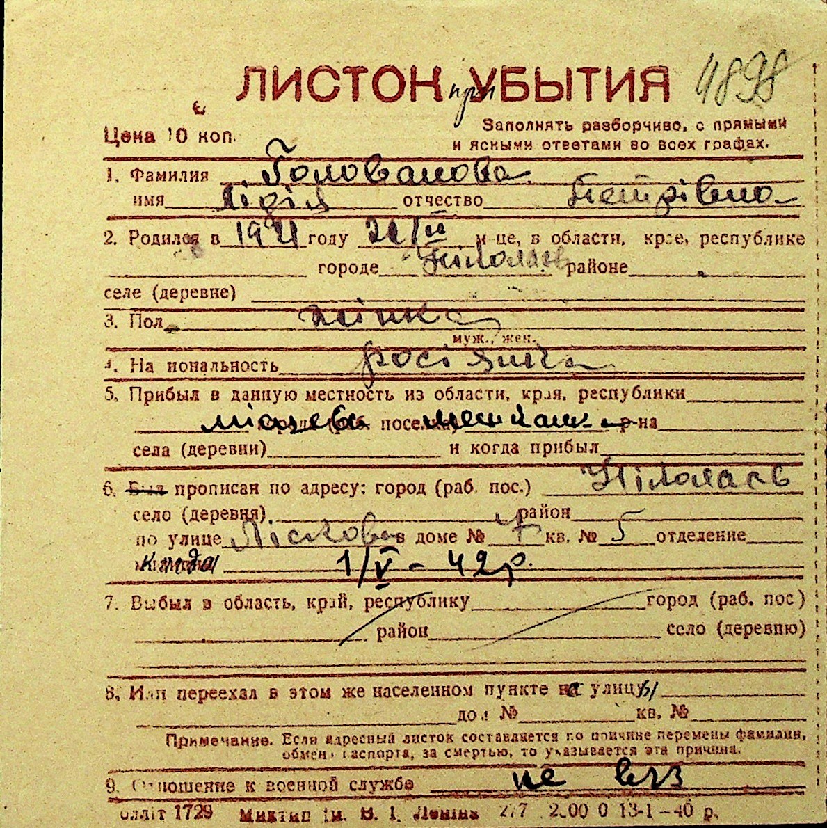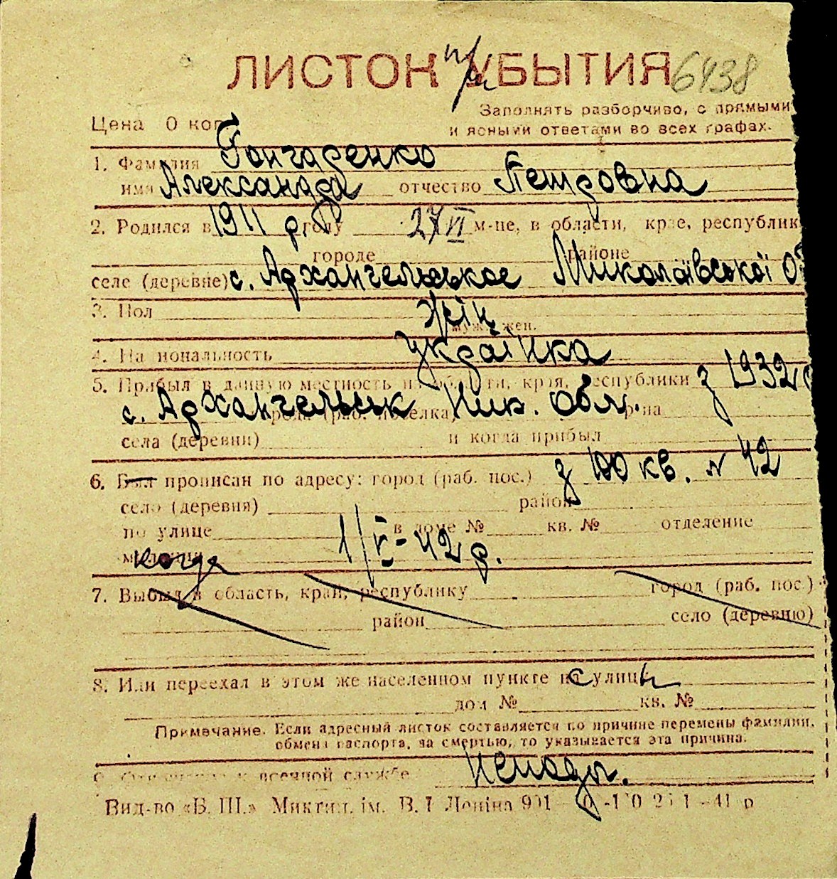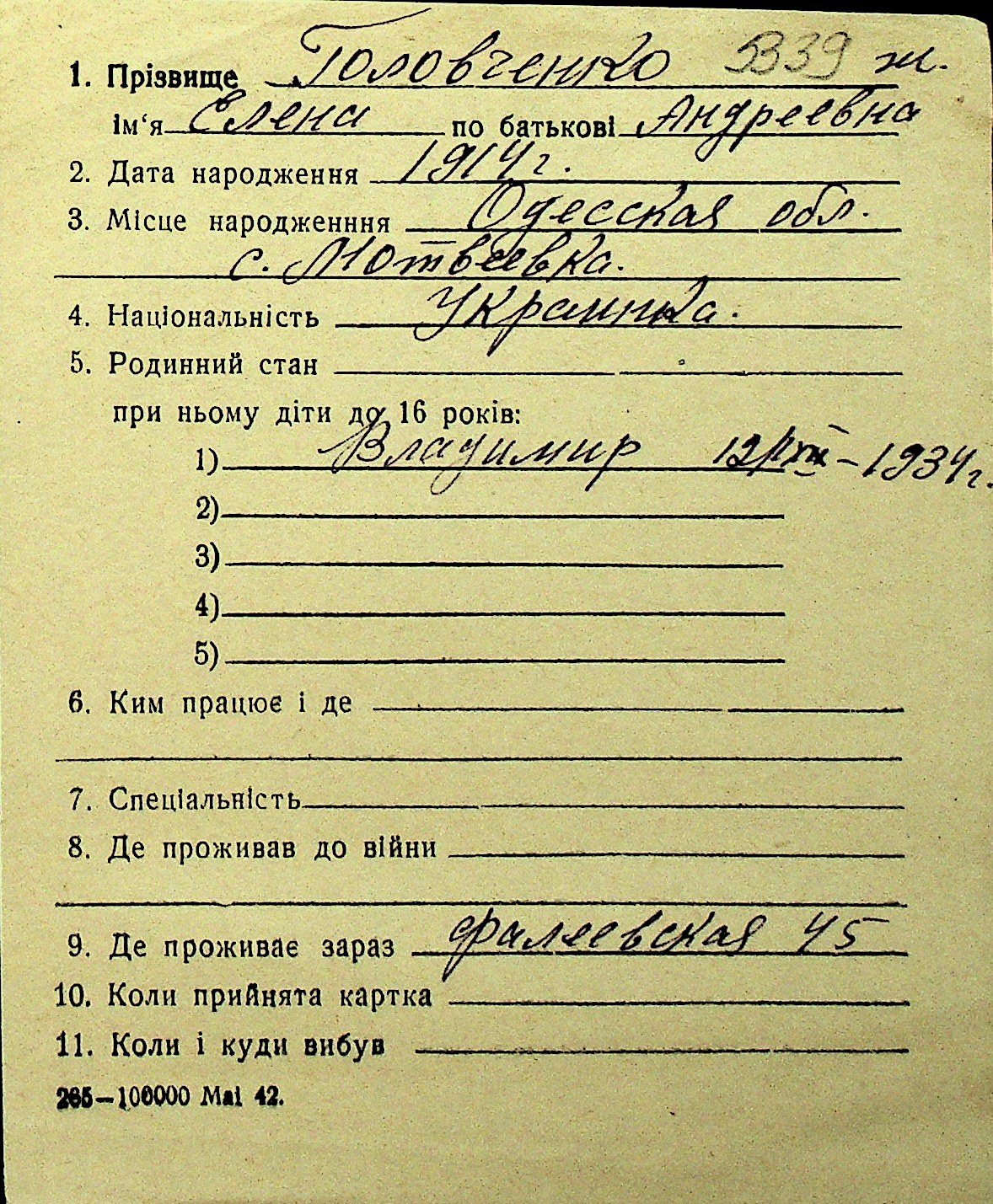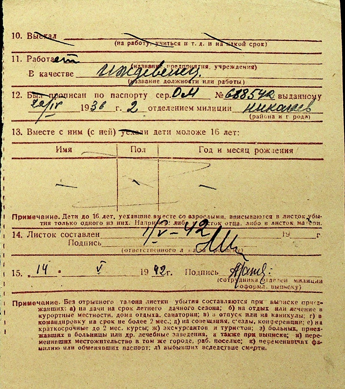 • • Перелік карток до фонду № Н-1016