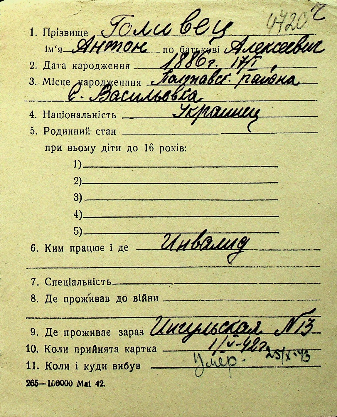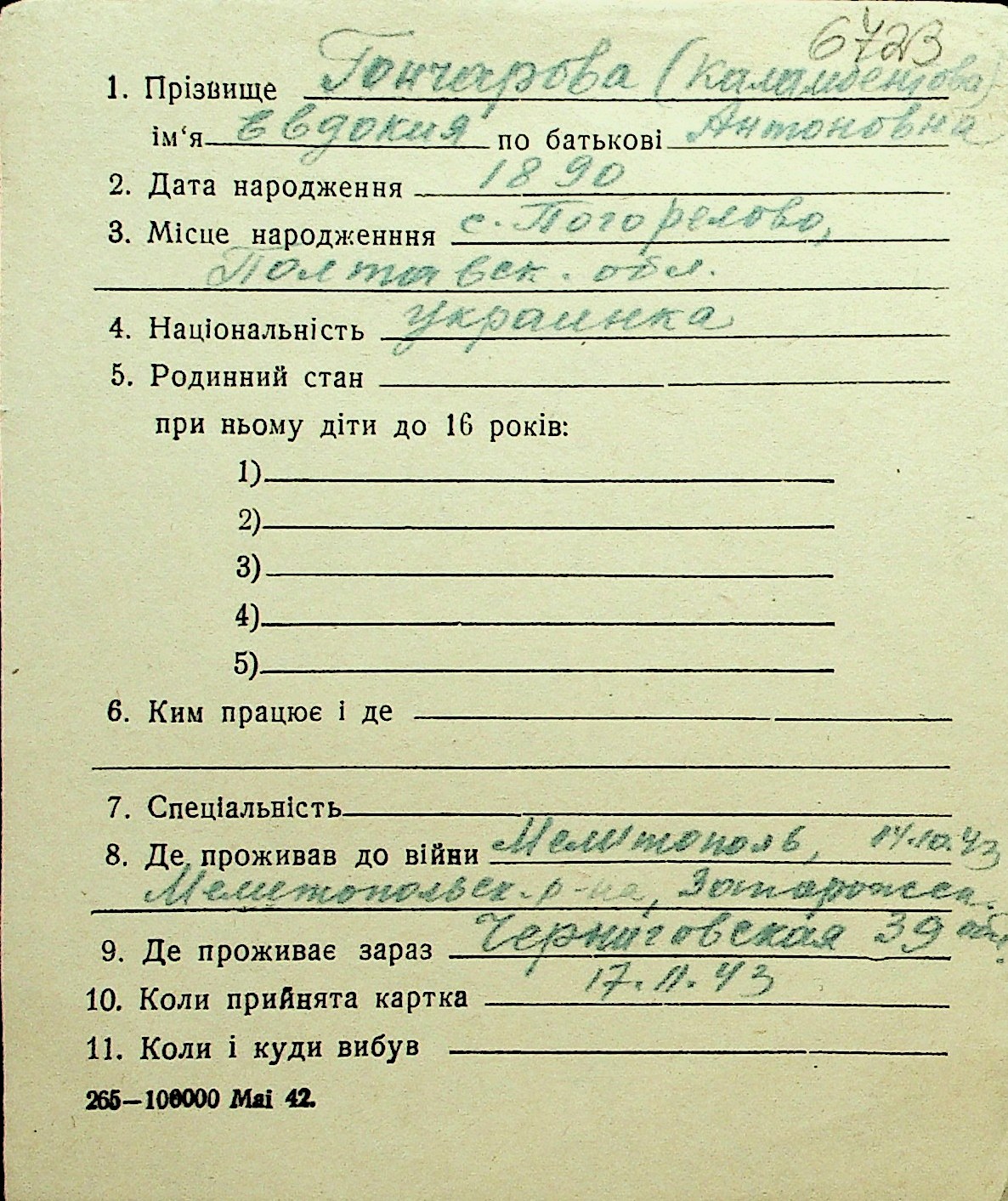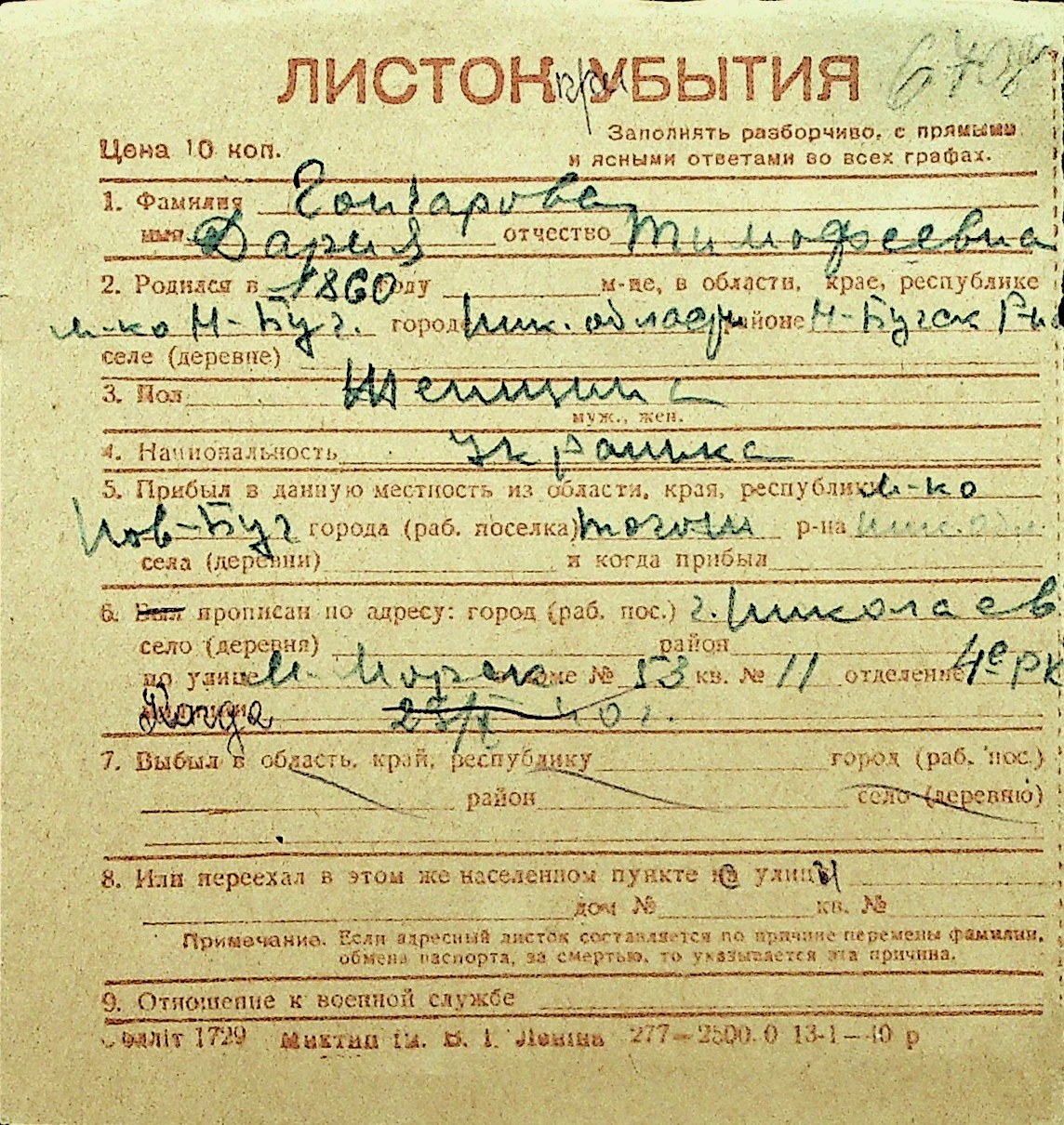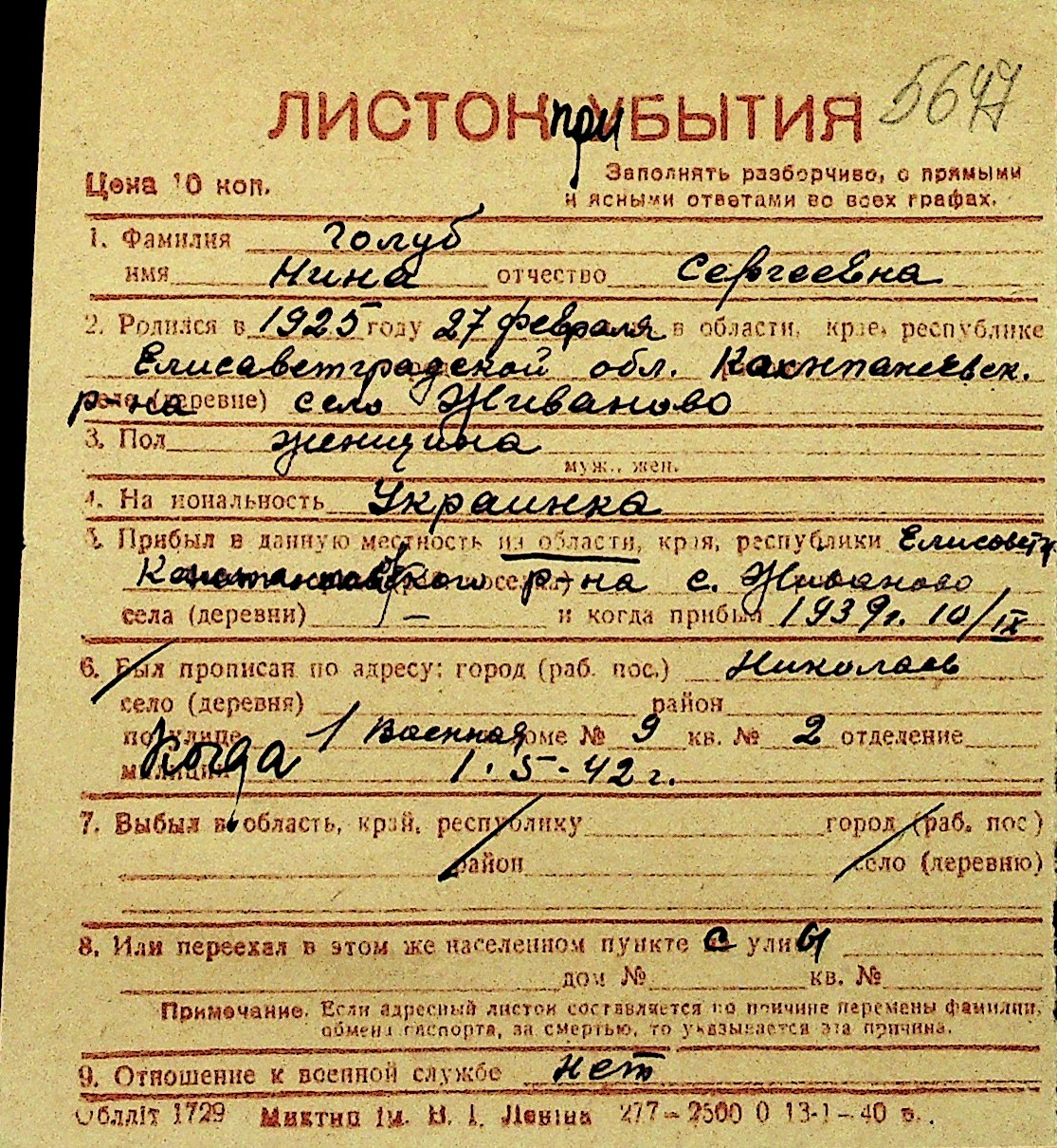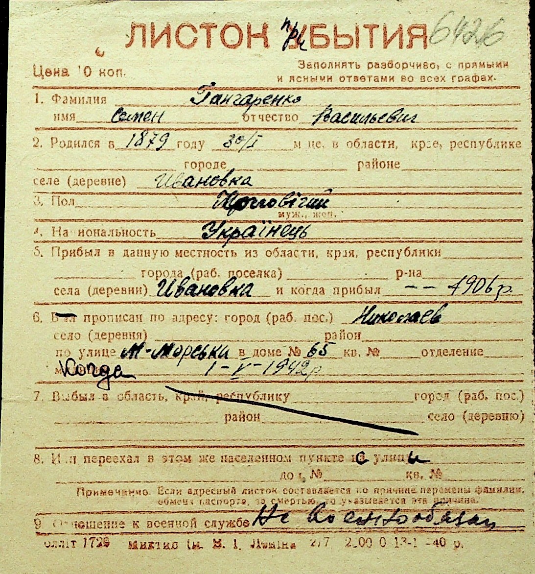 • • Перелік карток до фонду № Н-1016