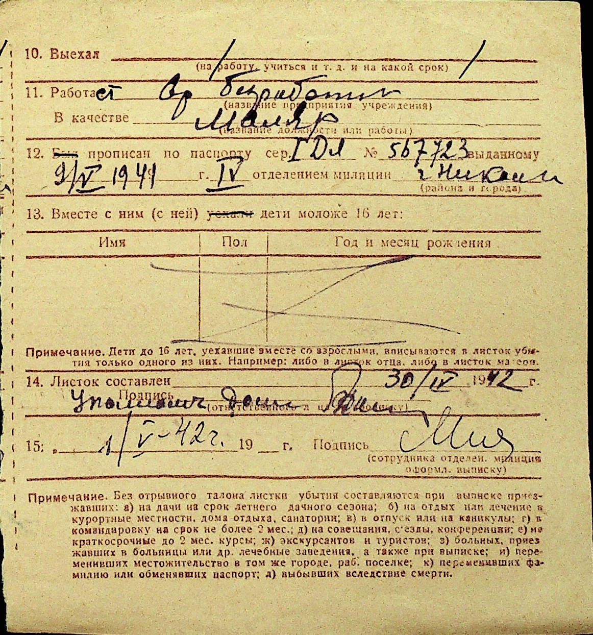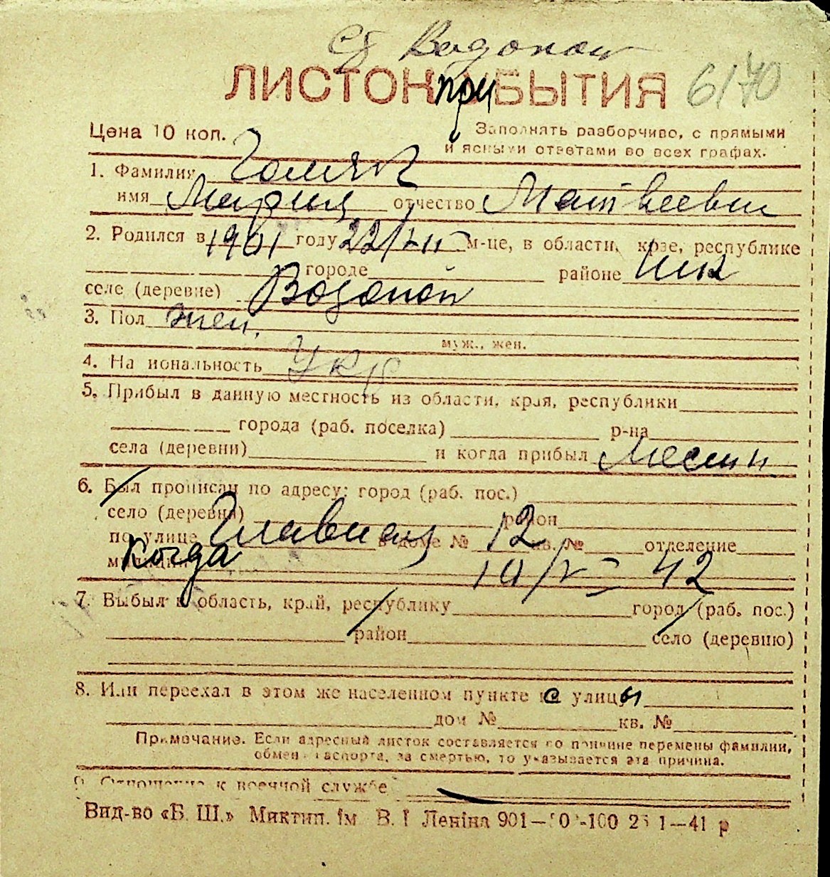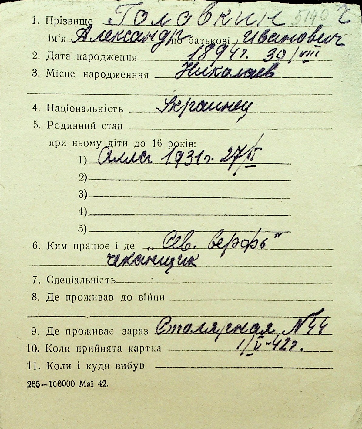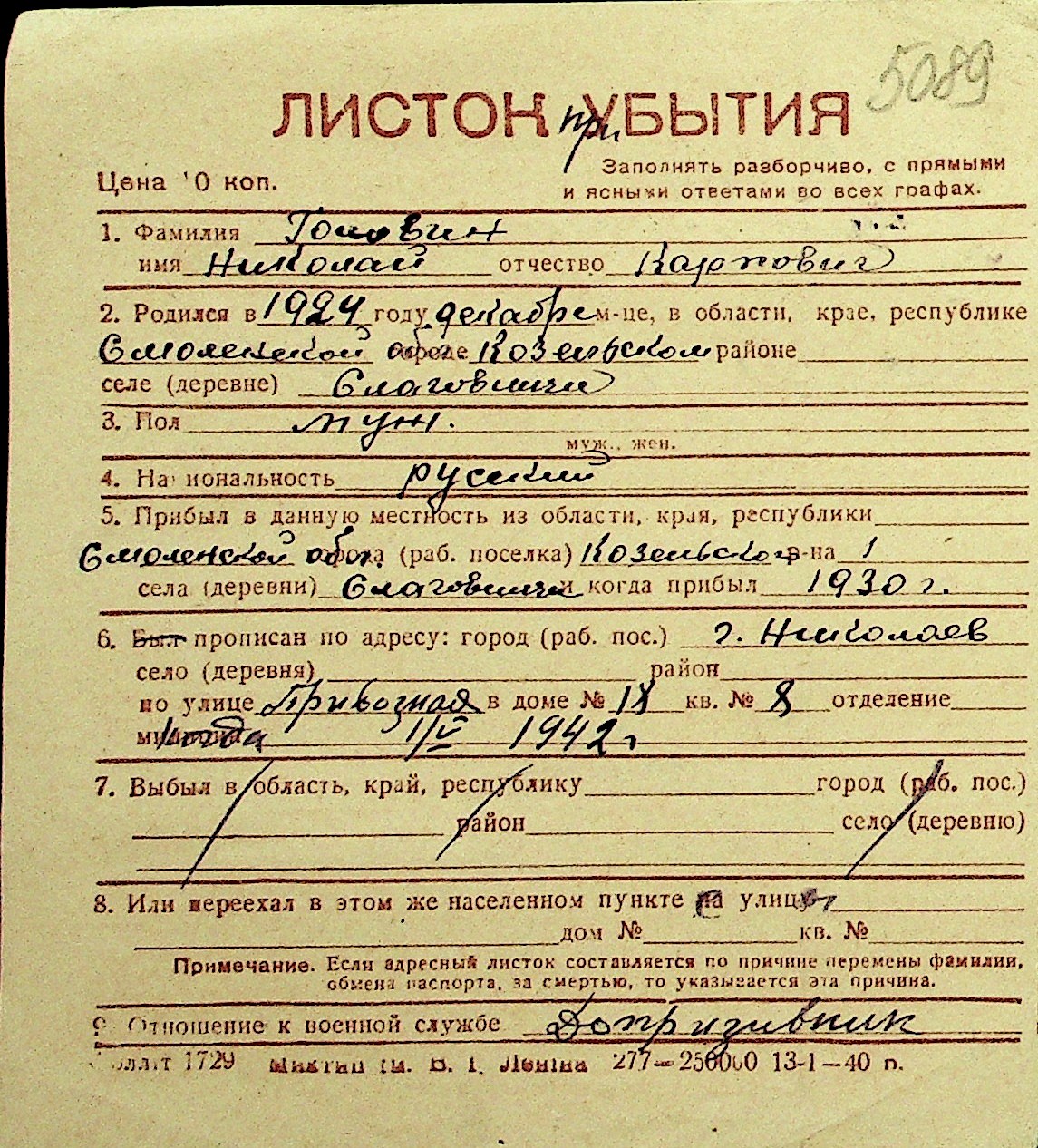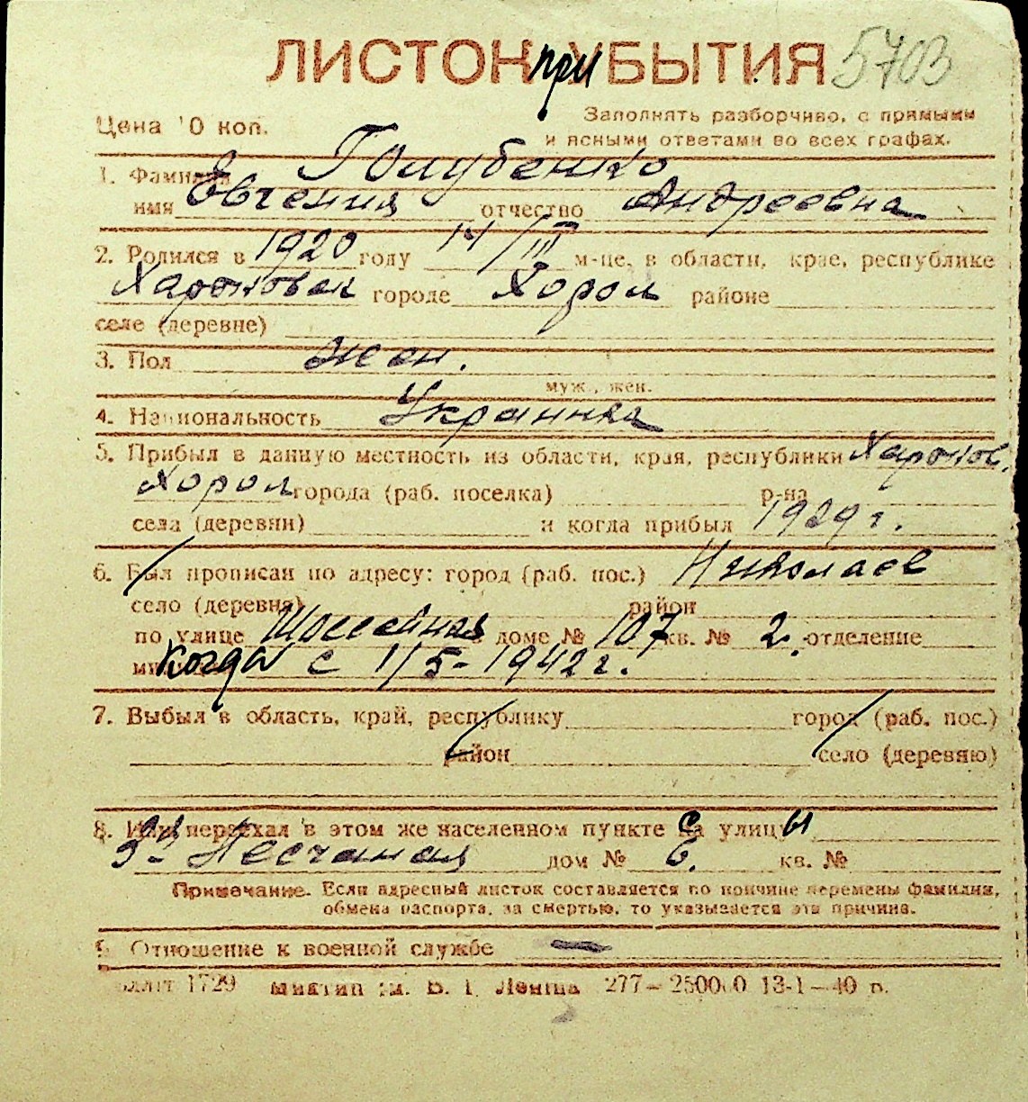 • • Перелік карток до фонду № Н-1016