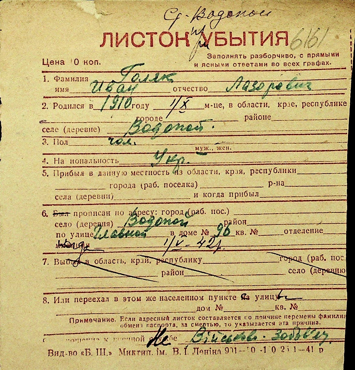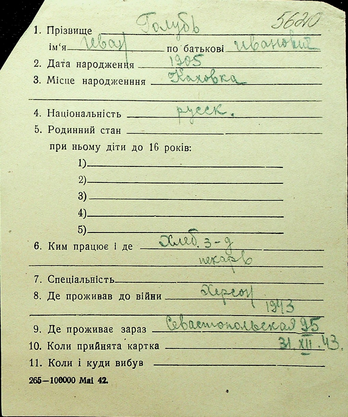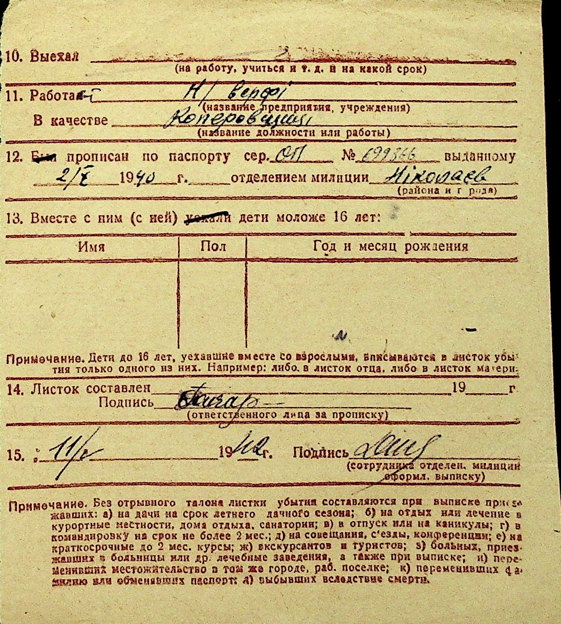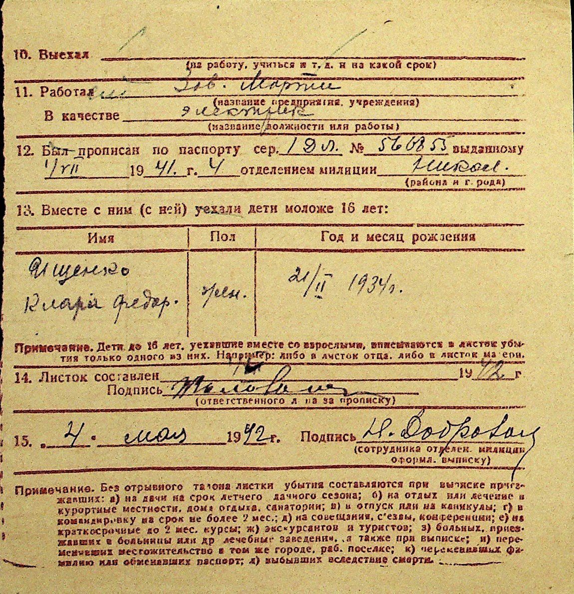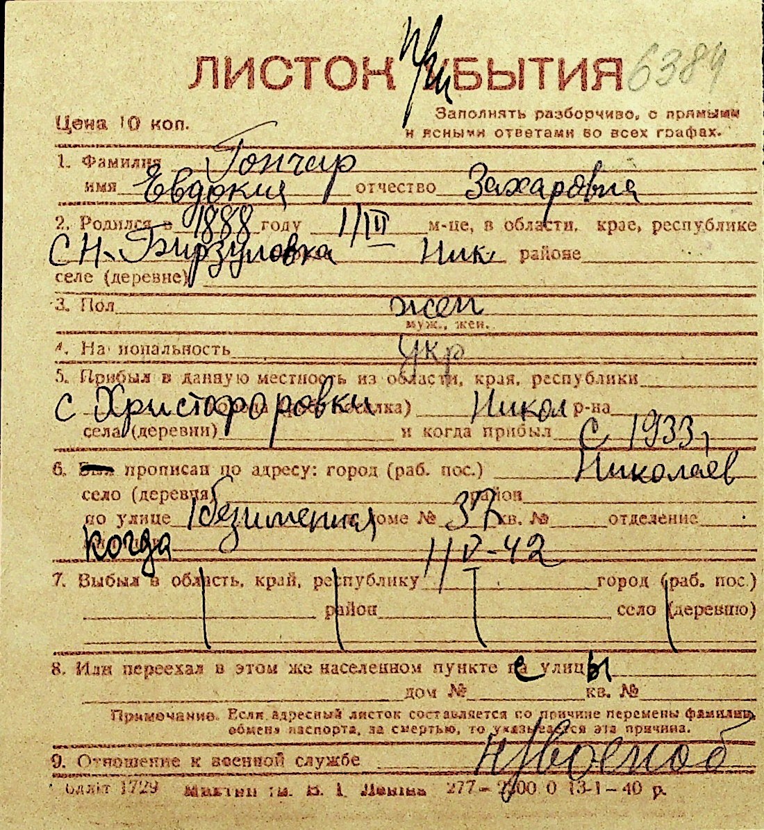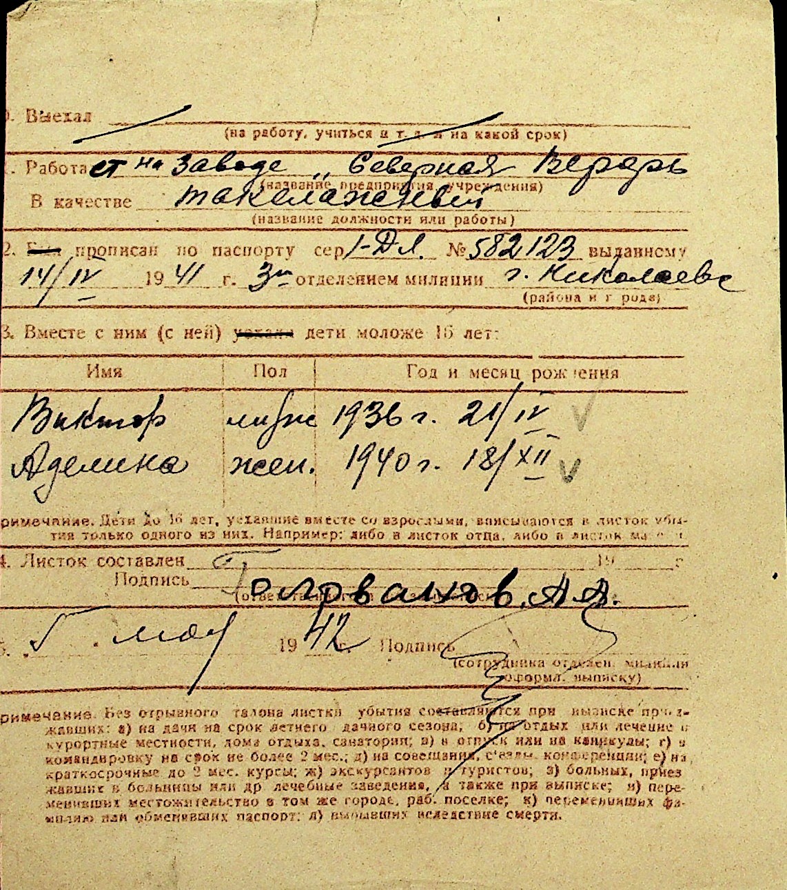 • • Перелік карток до фонду № Н-1016