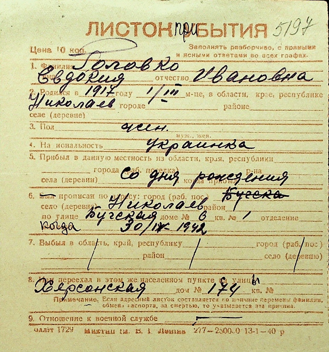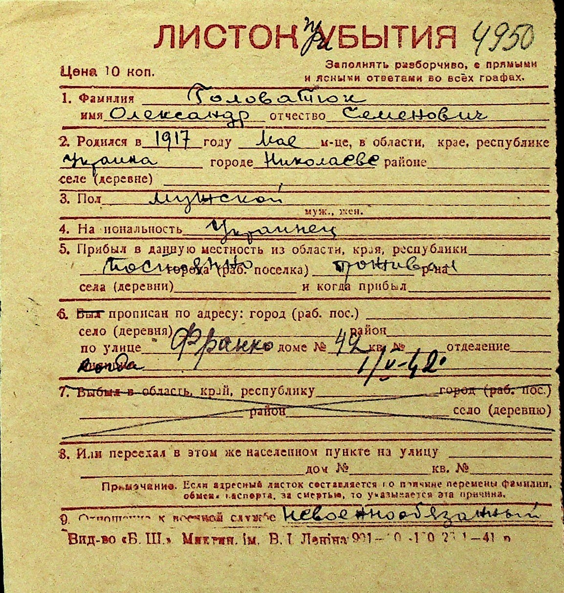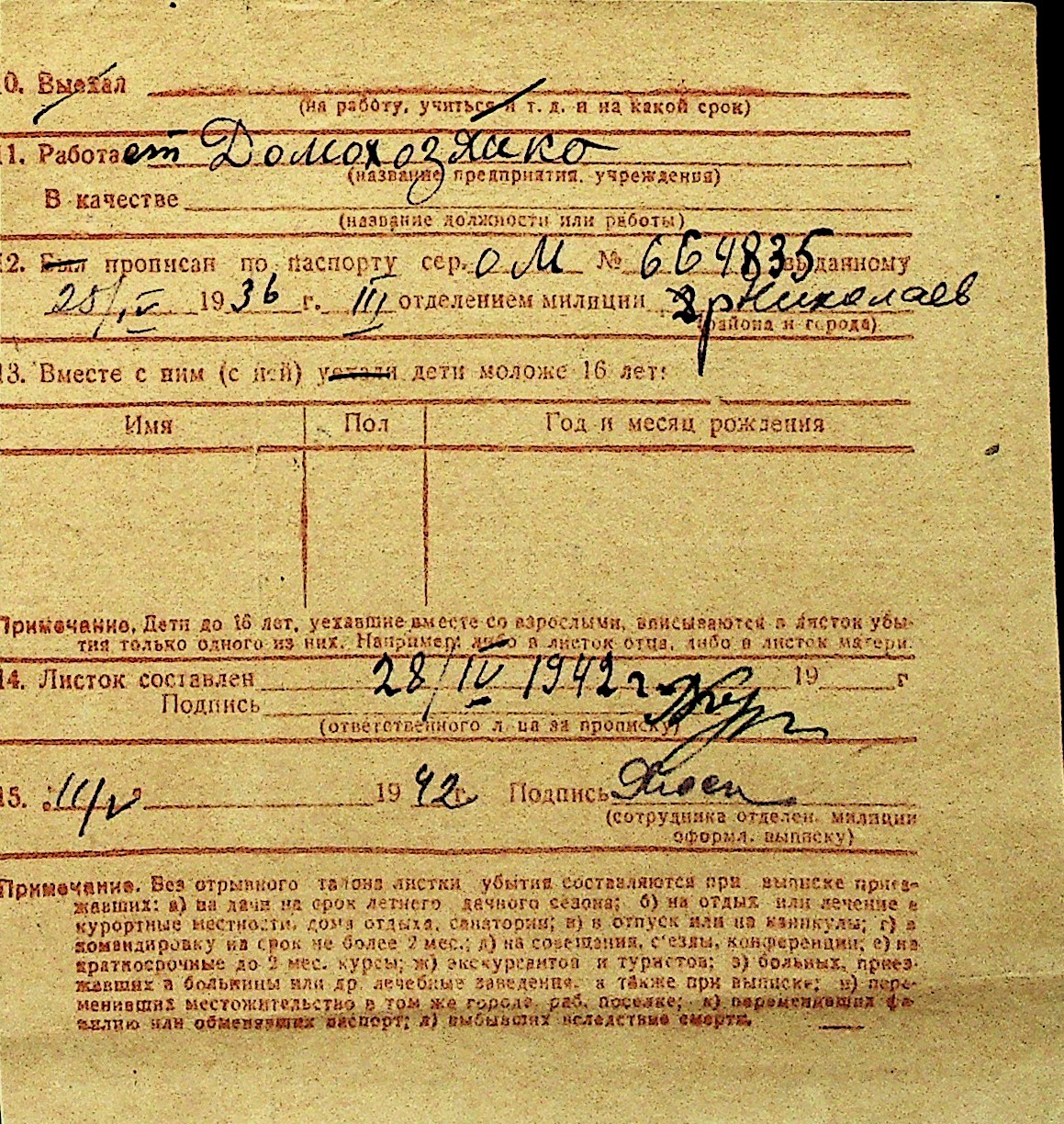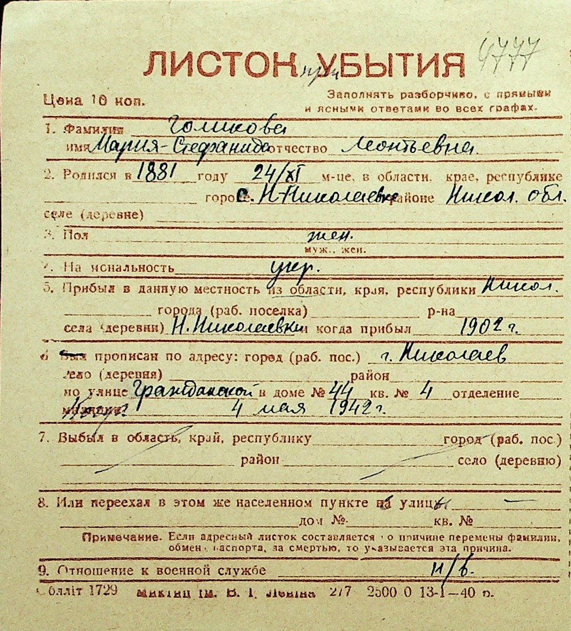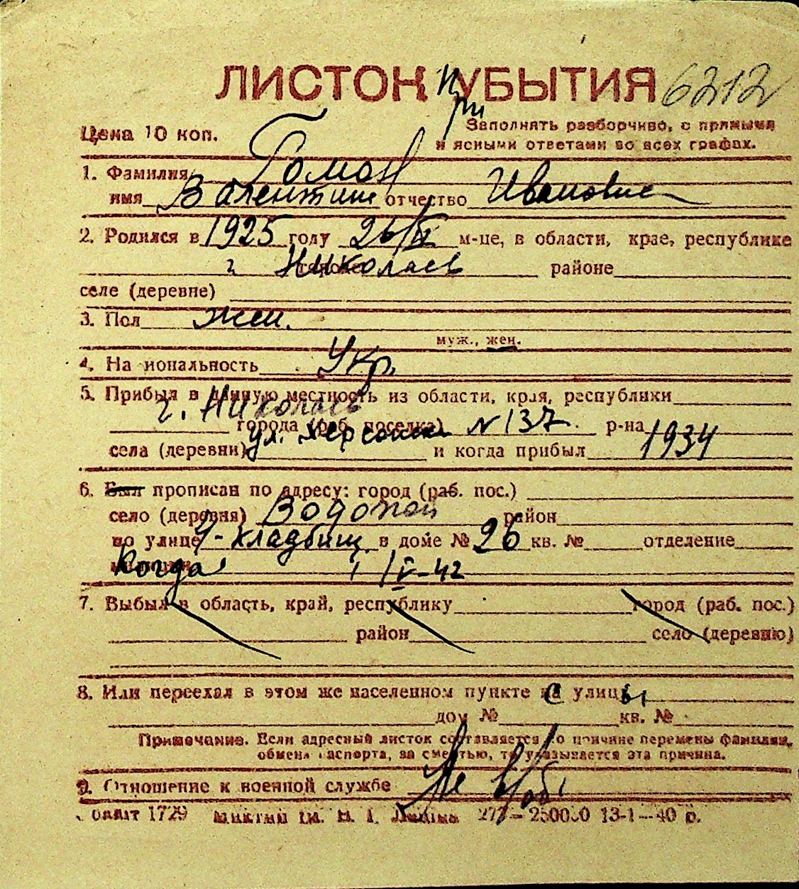 • • Перелік карток до фонду № Н-1016