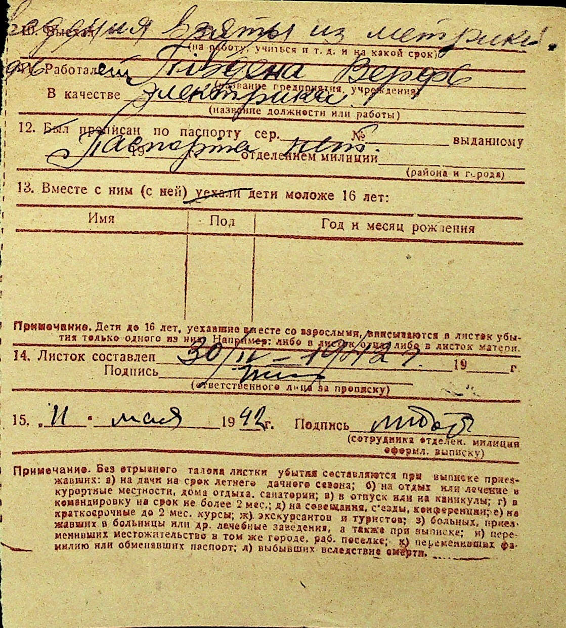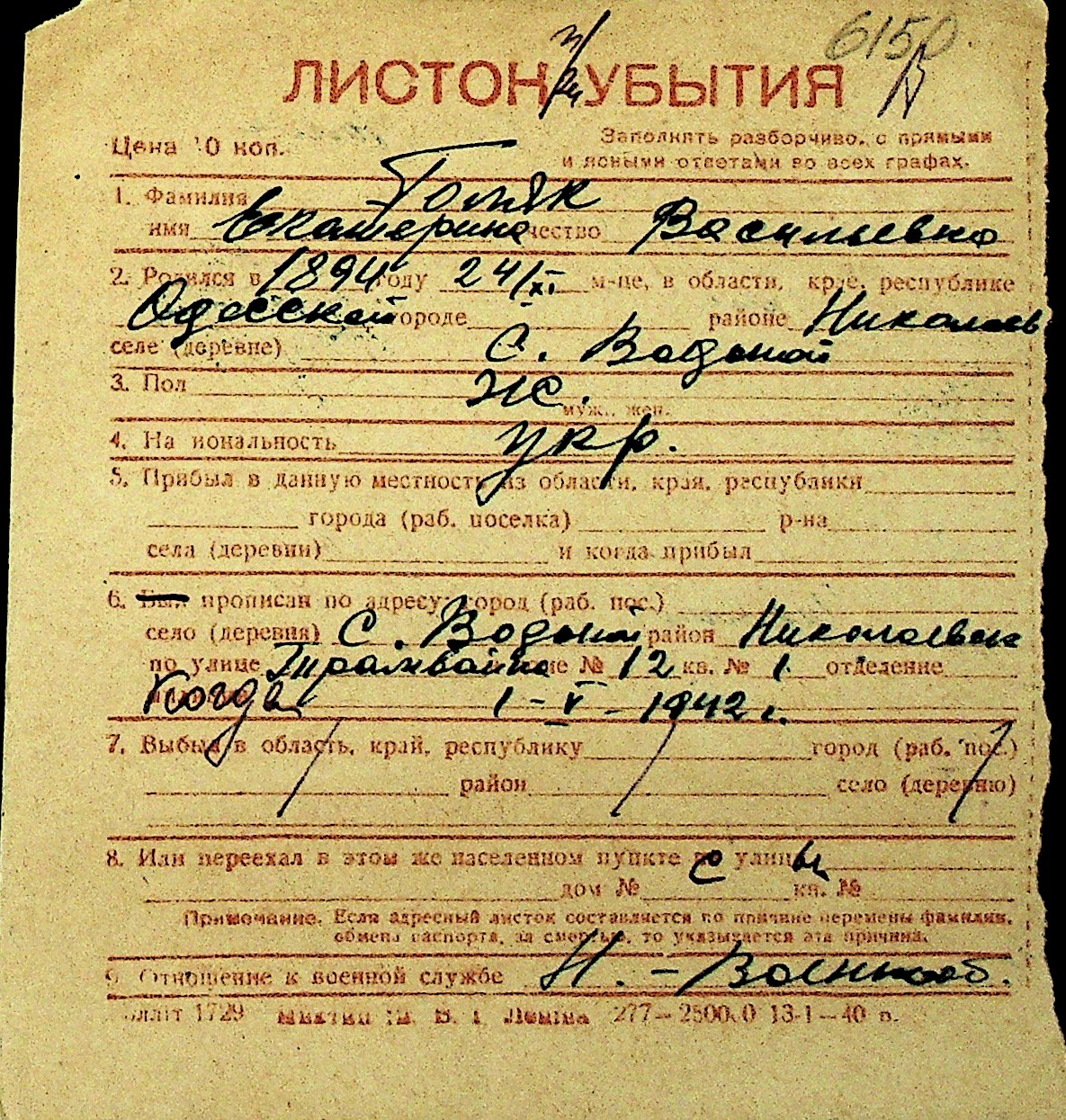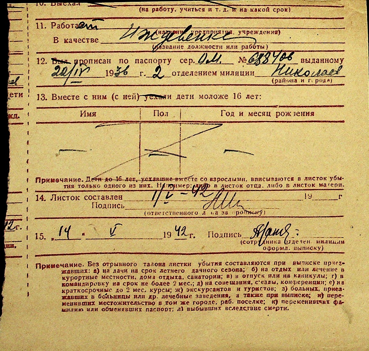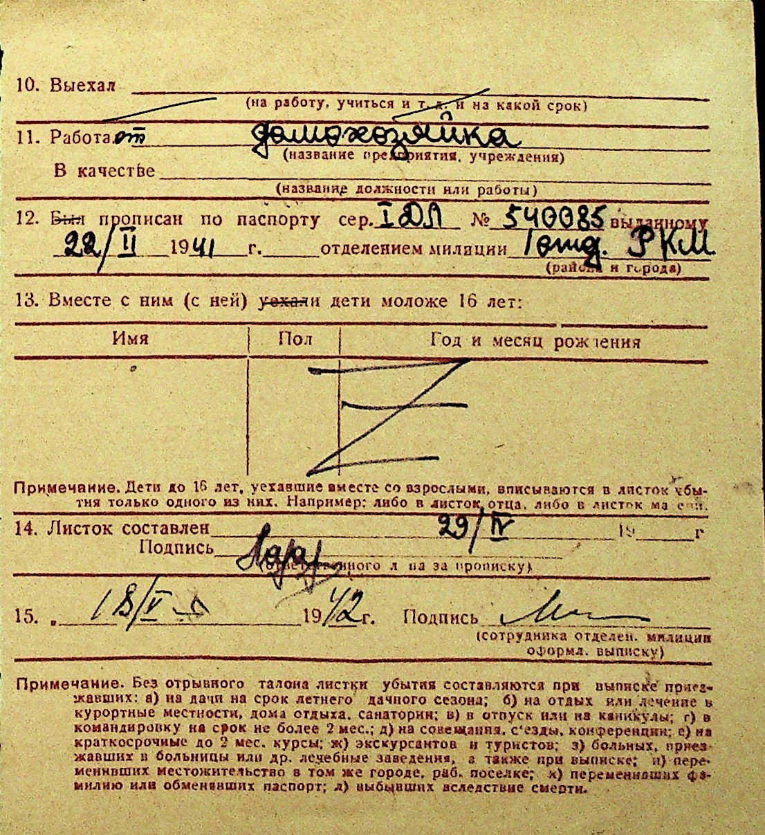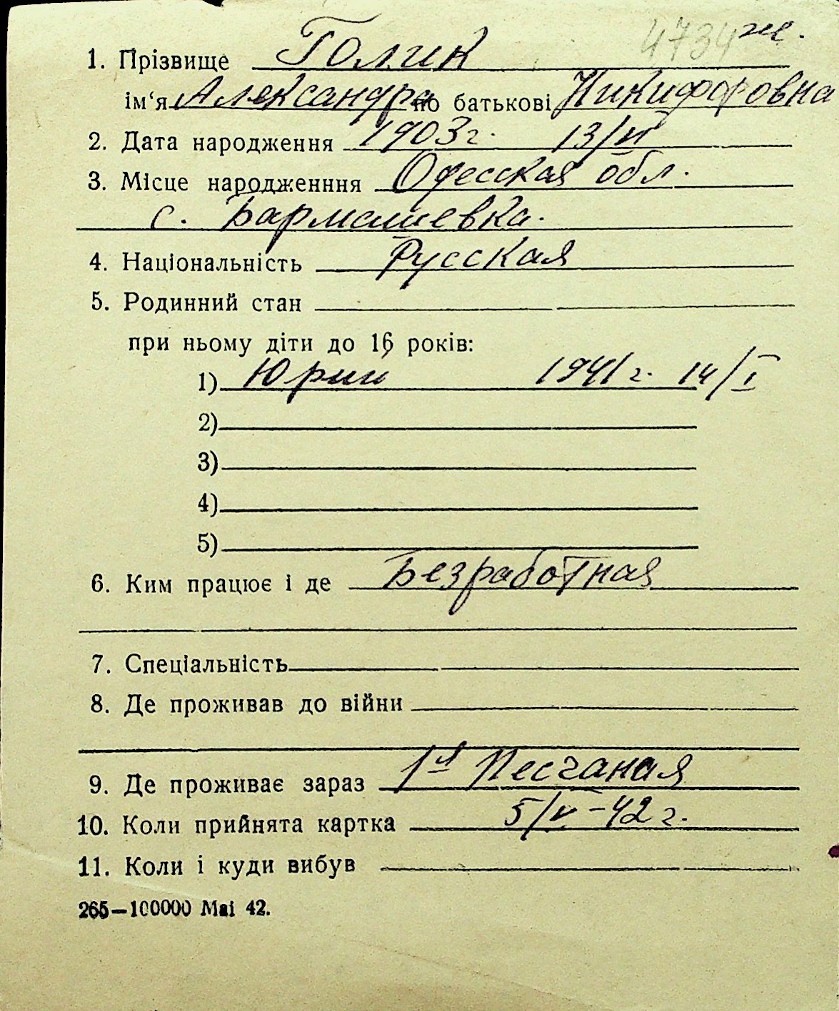 • • Перелік карток до фонду № Н-1016