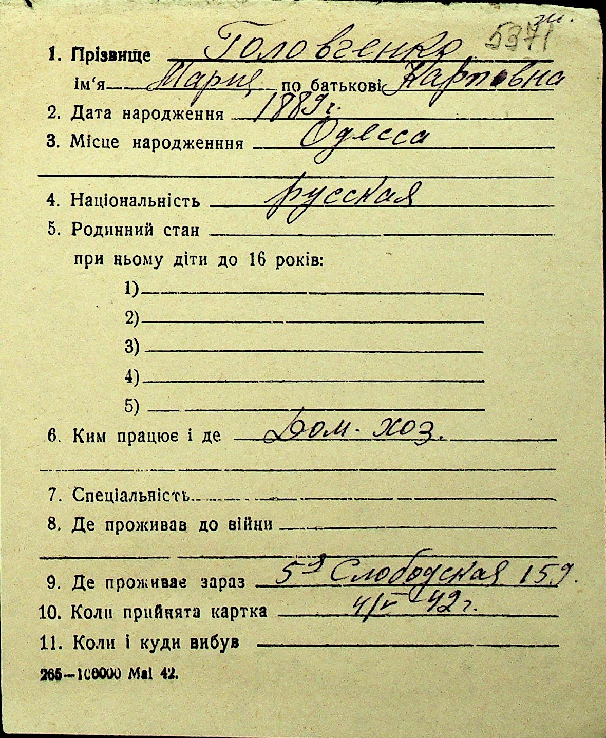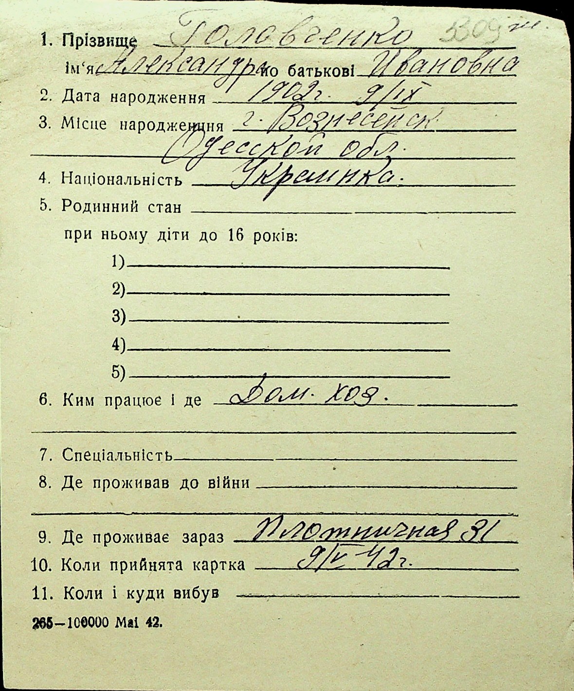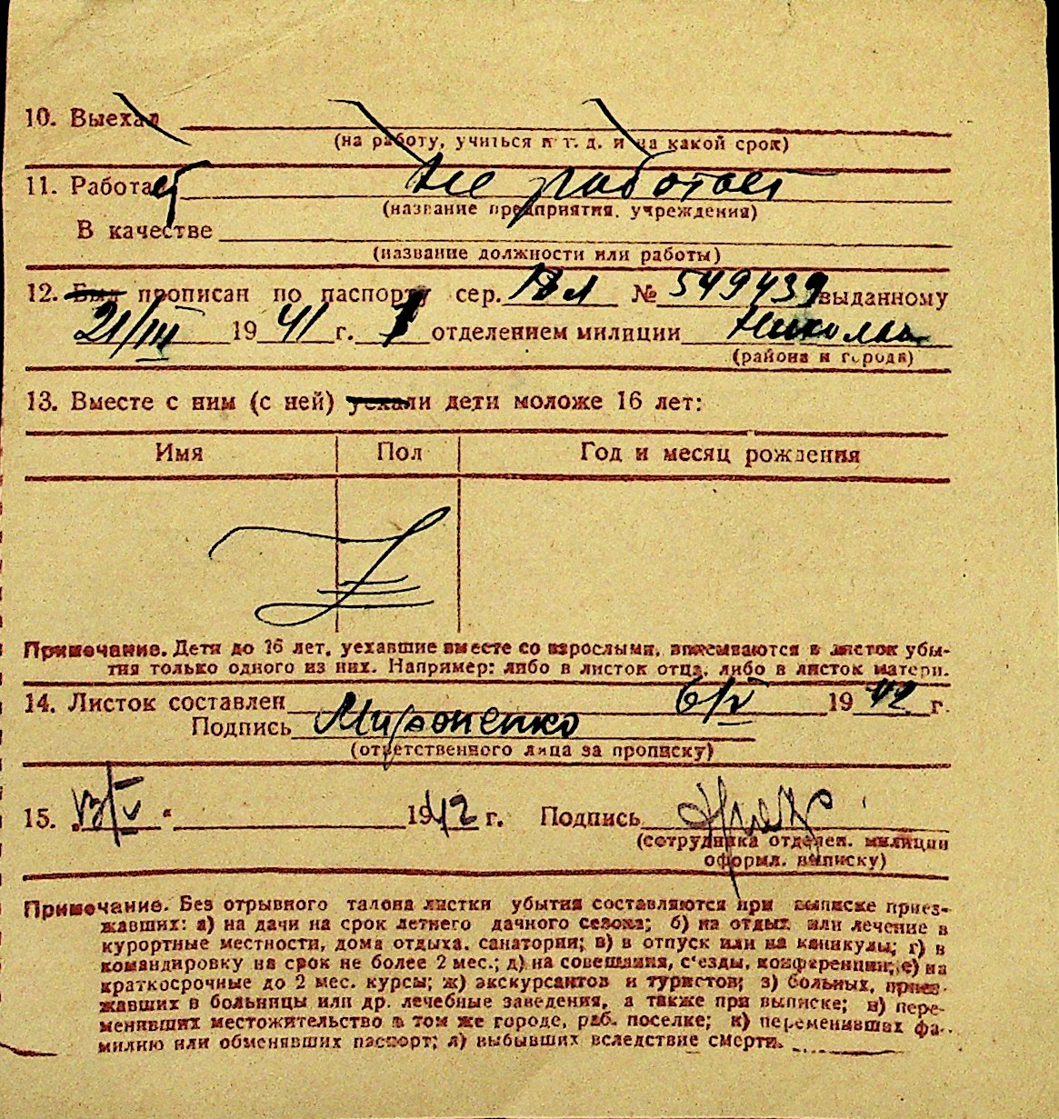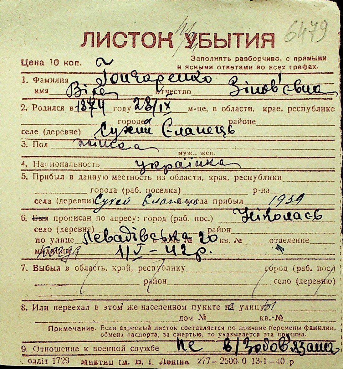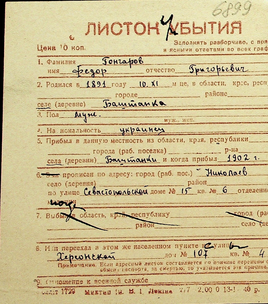 • • Перелік карток до фонду № Н-1016