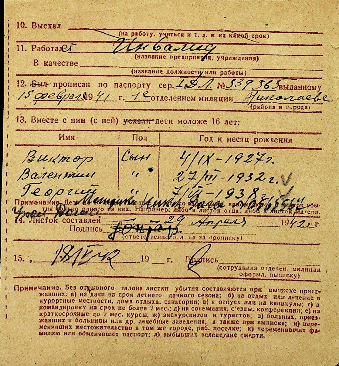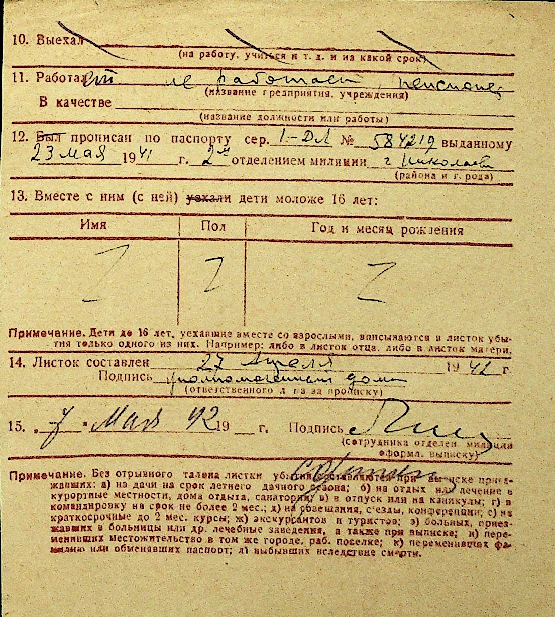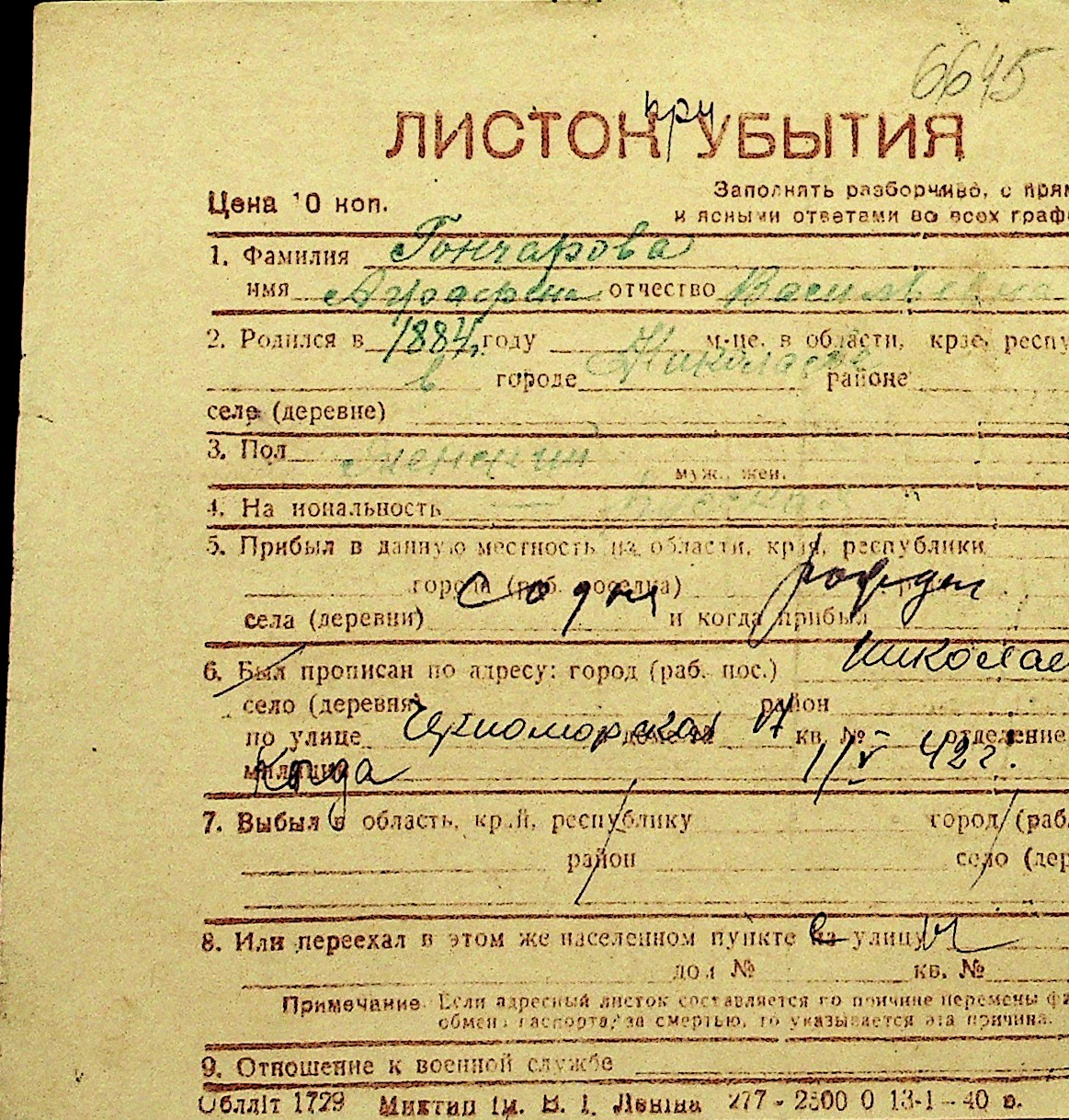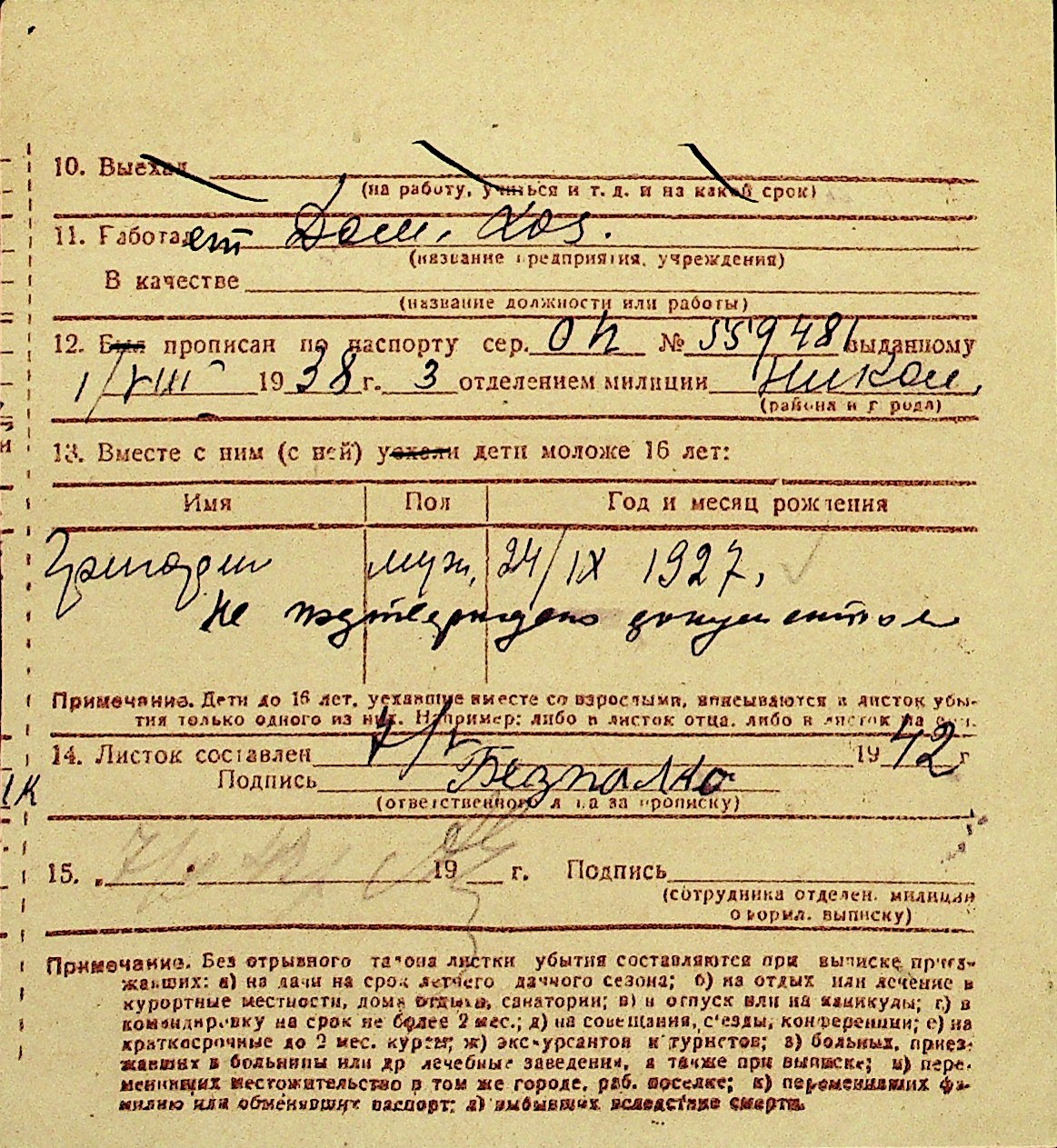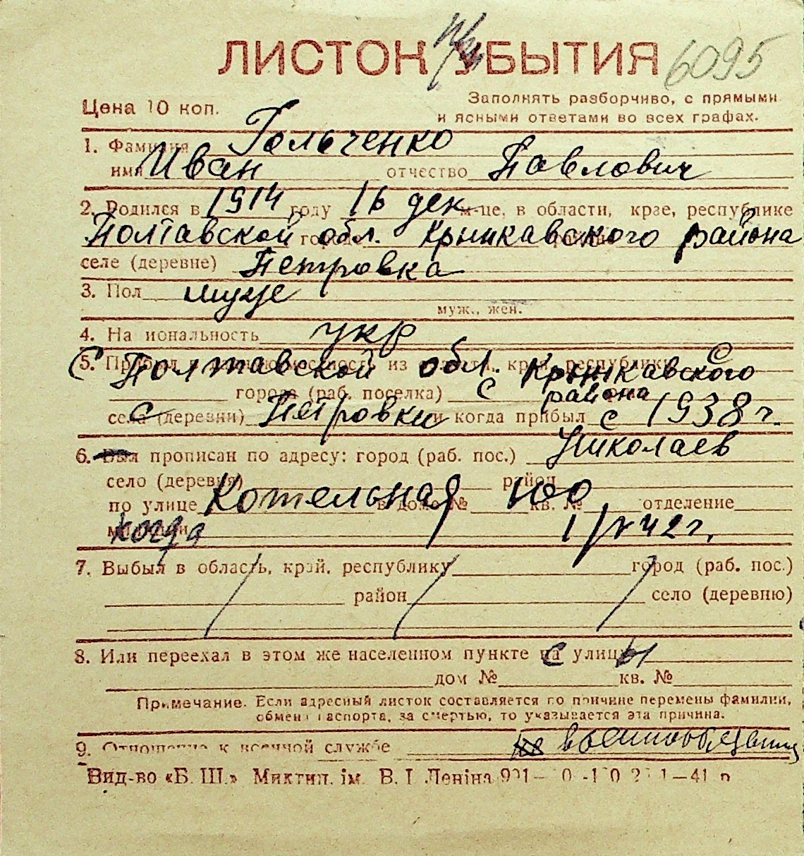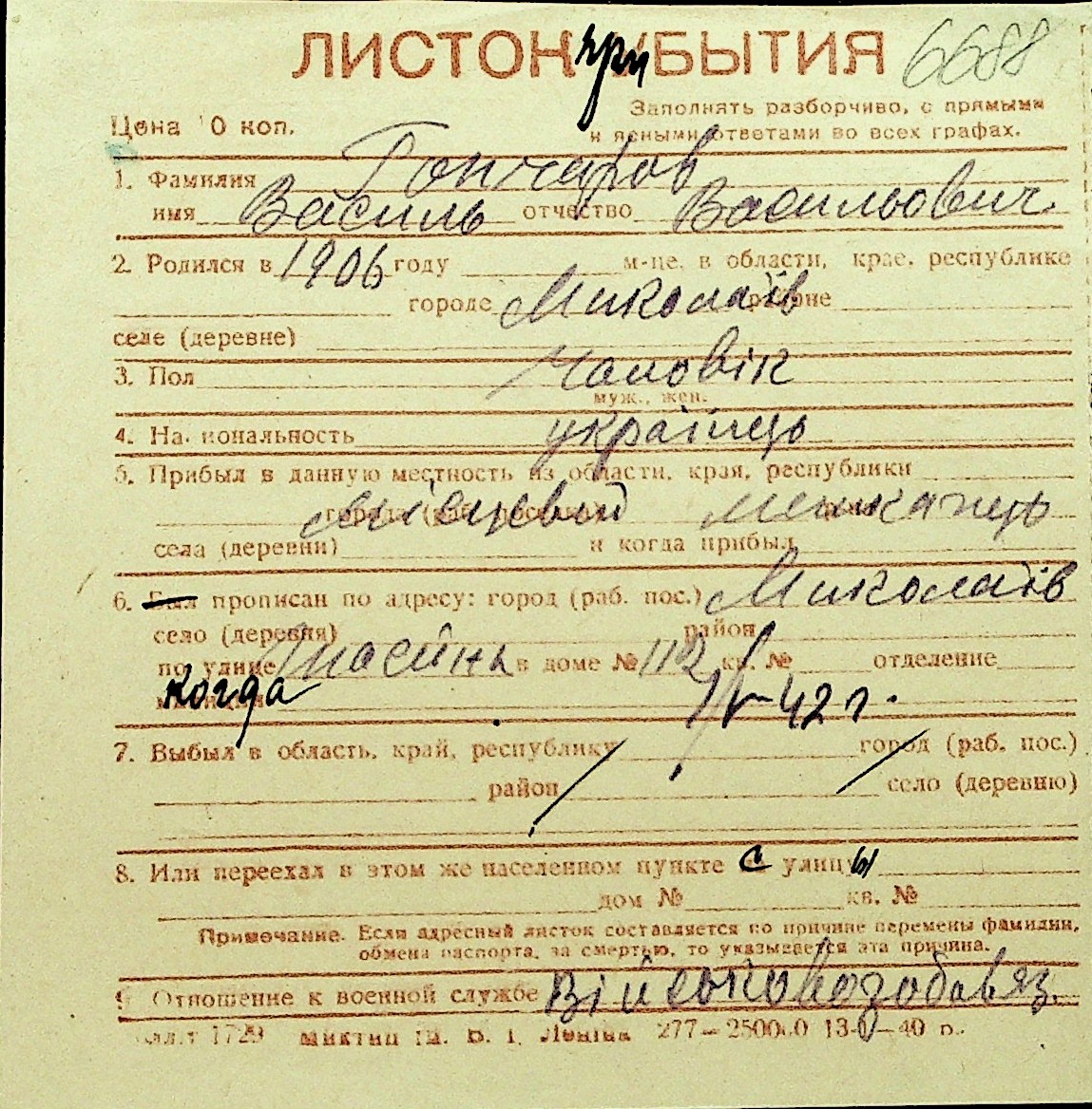 • • Перелік карток до фонду № Н-1016