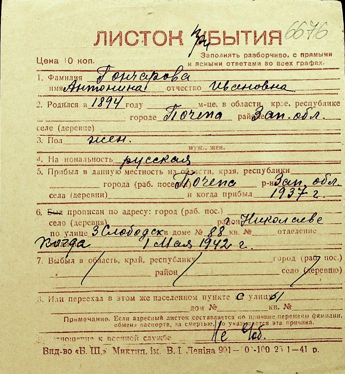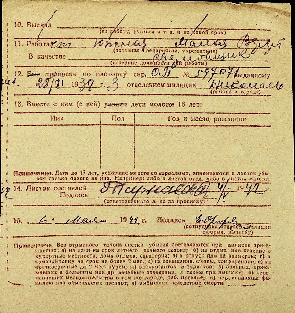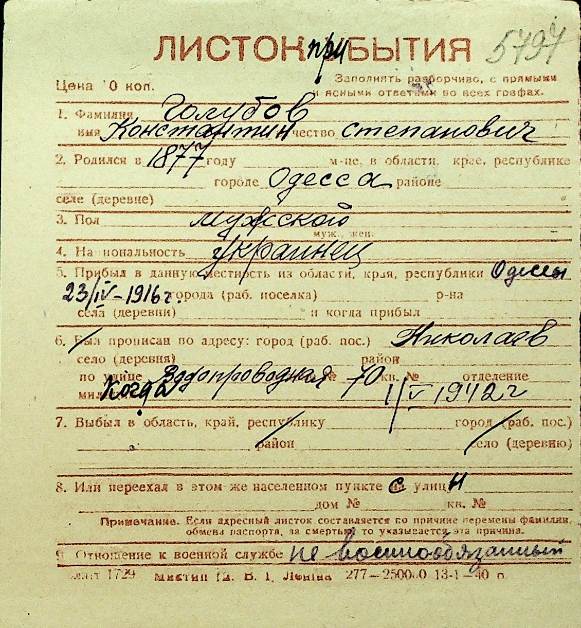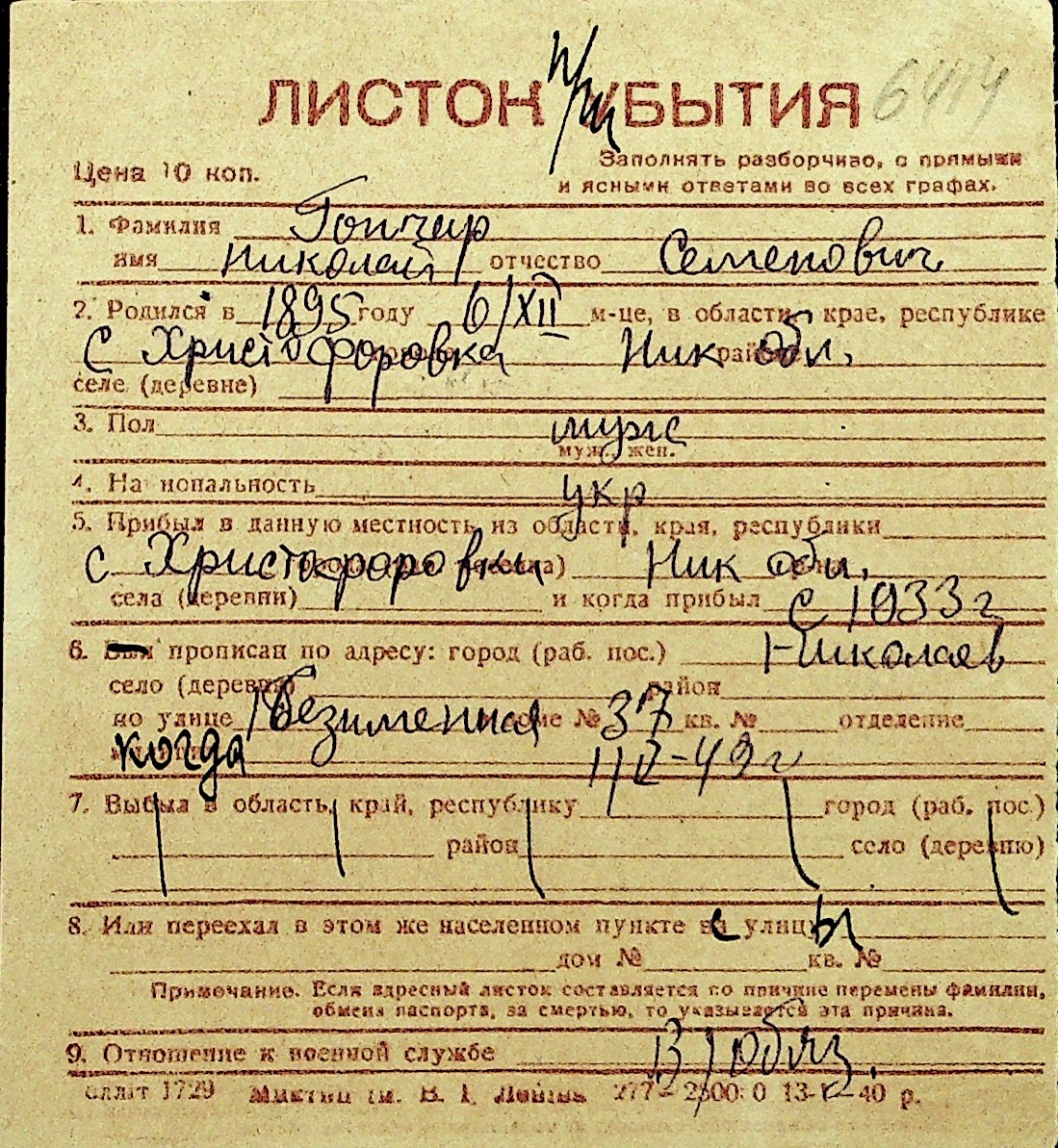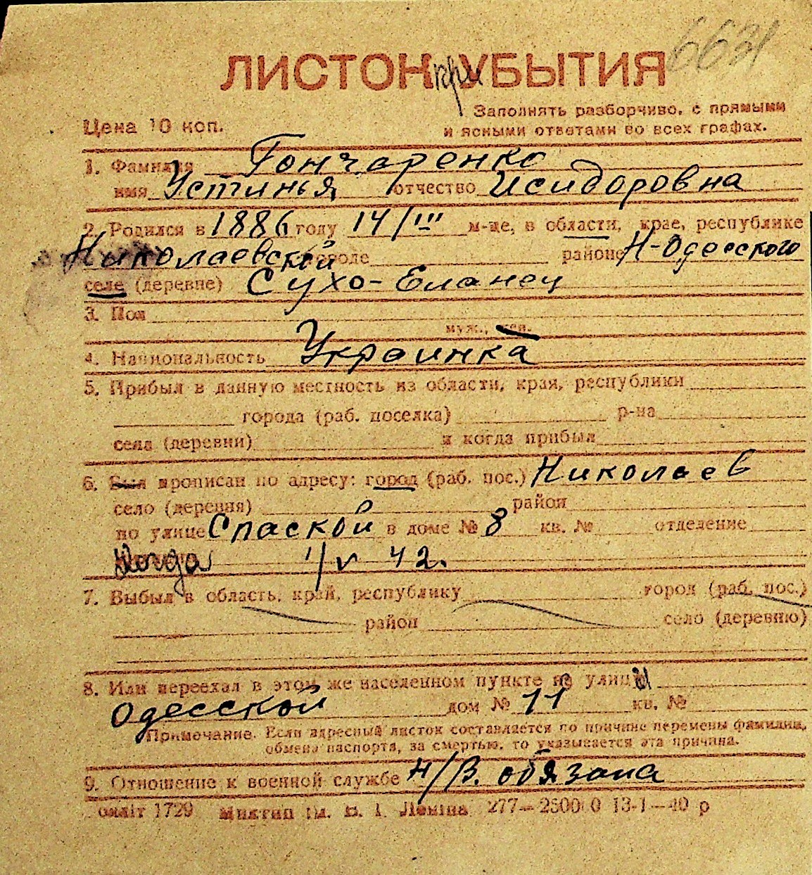 • • Перелік карток до фонду № Н-1016