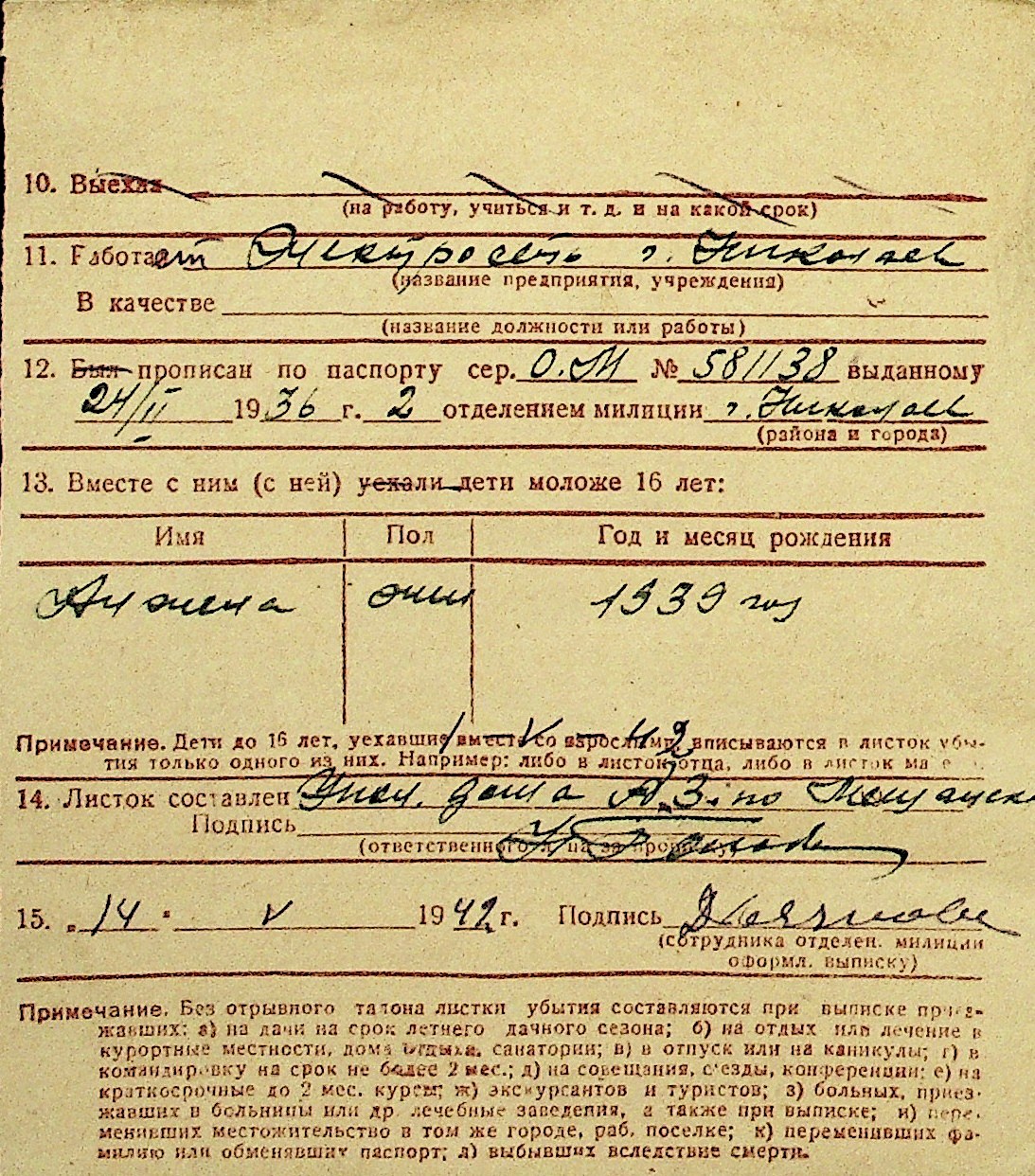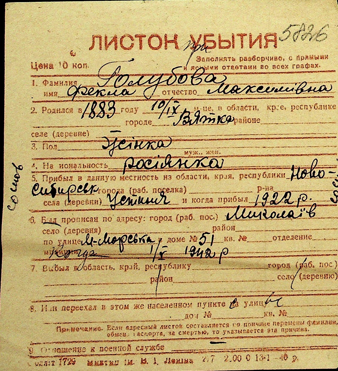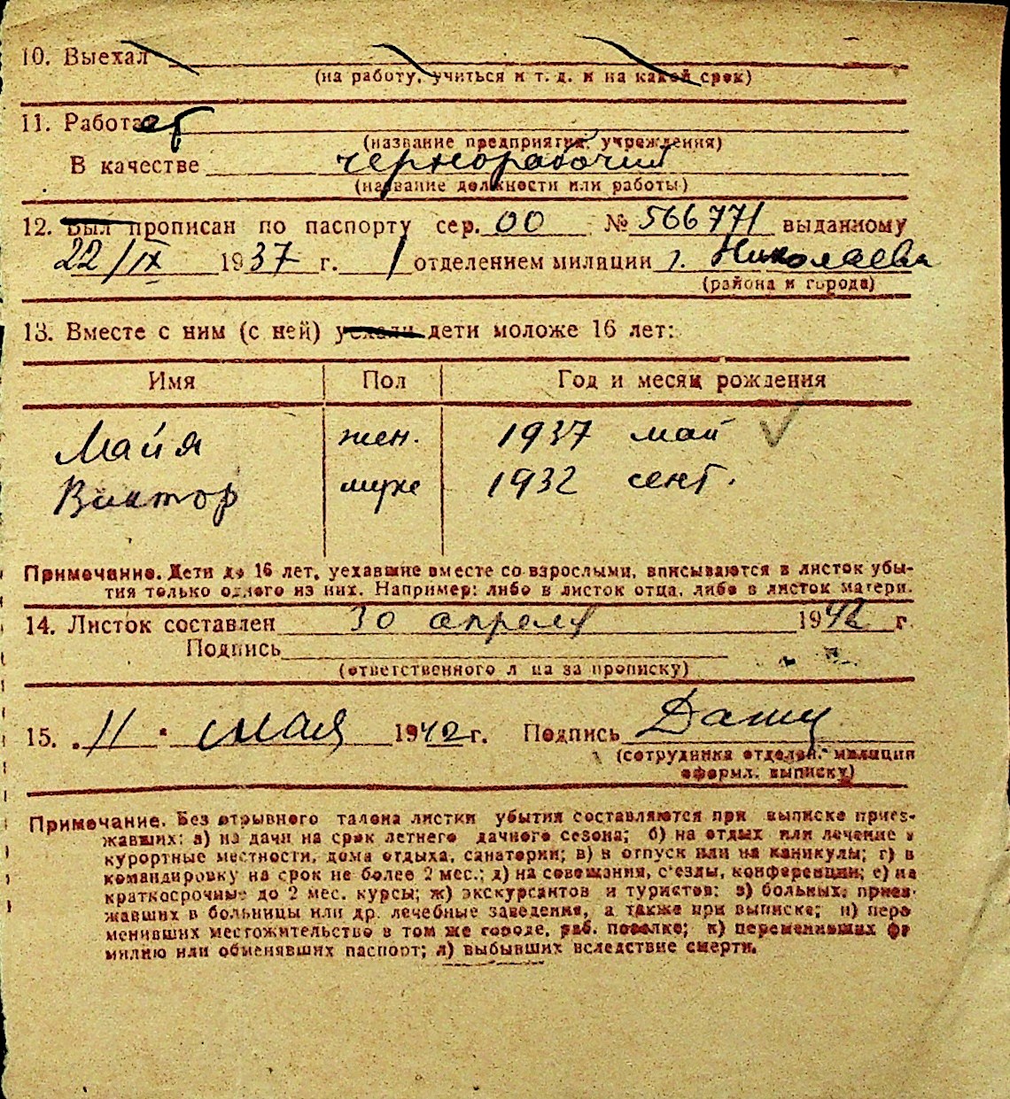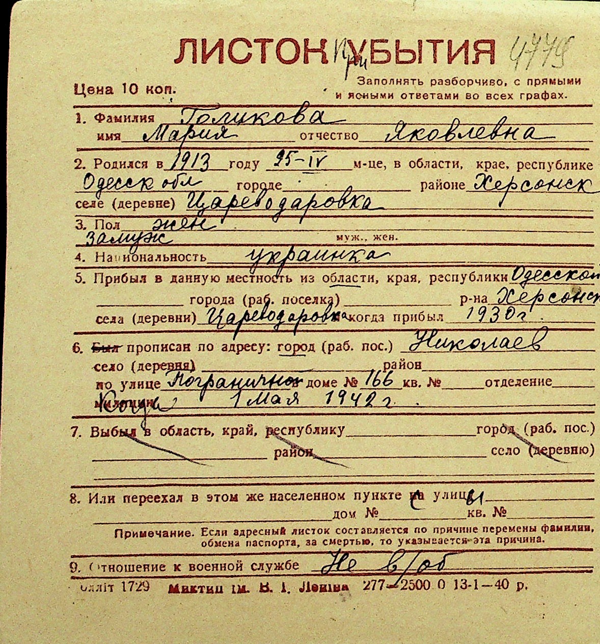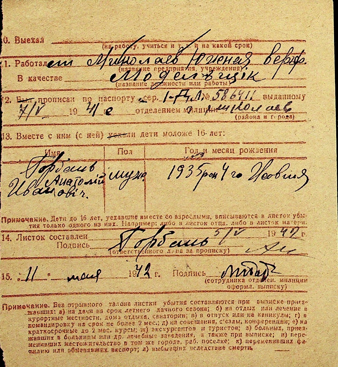• • Перелік карток до фонду № Н-1016