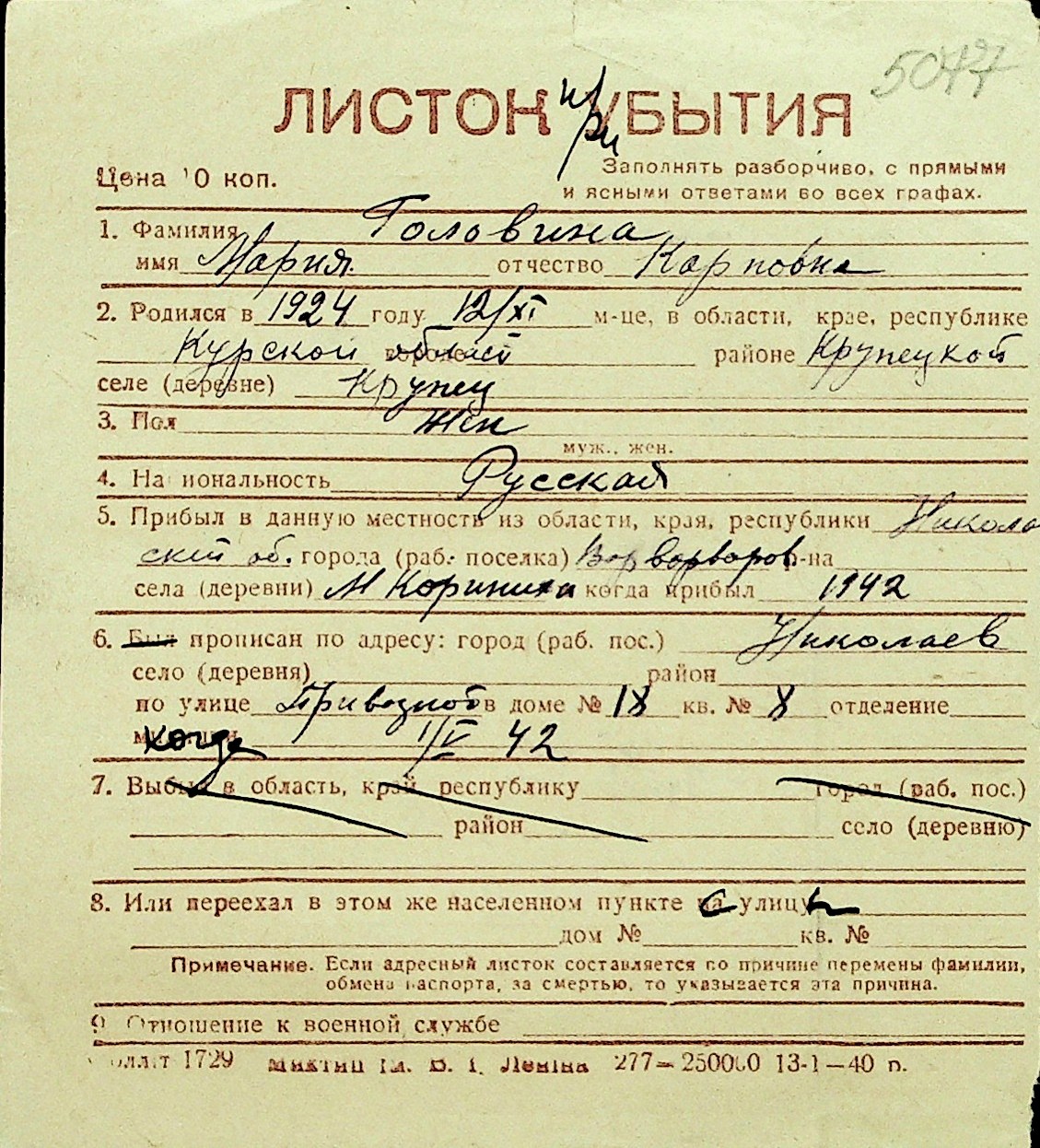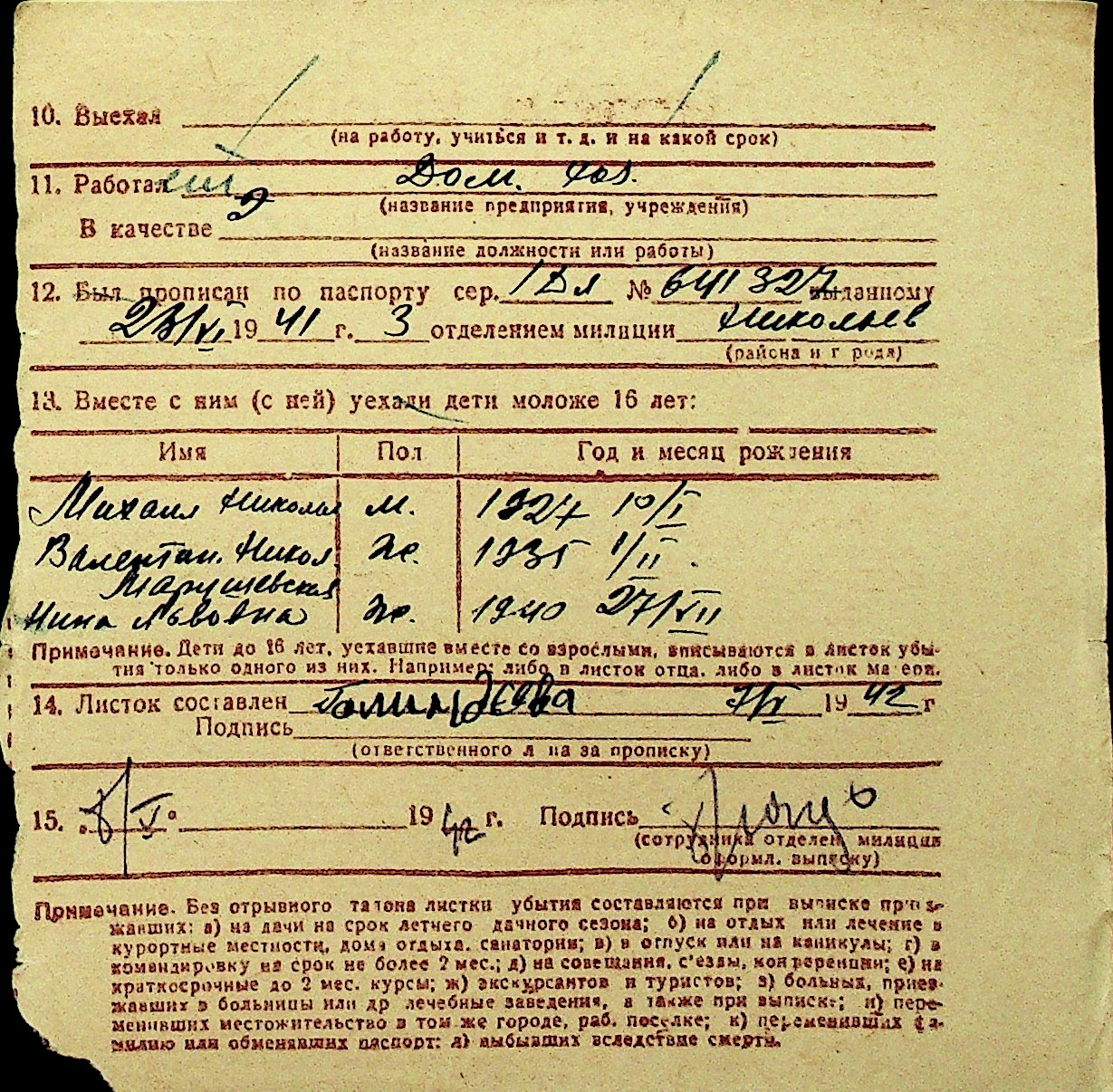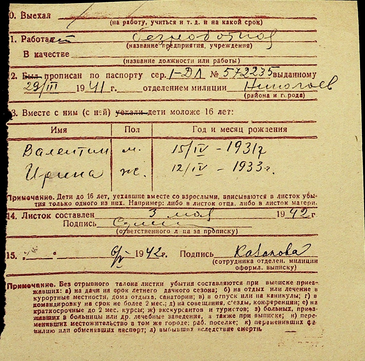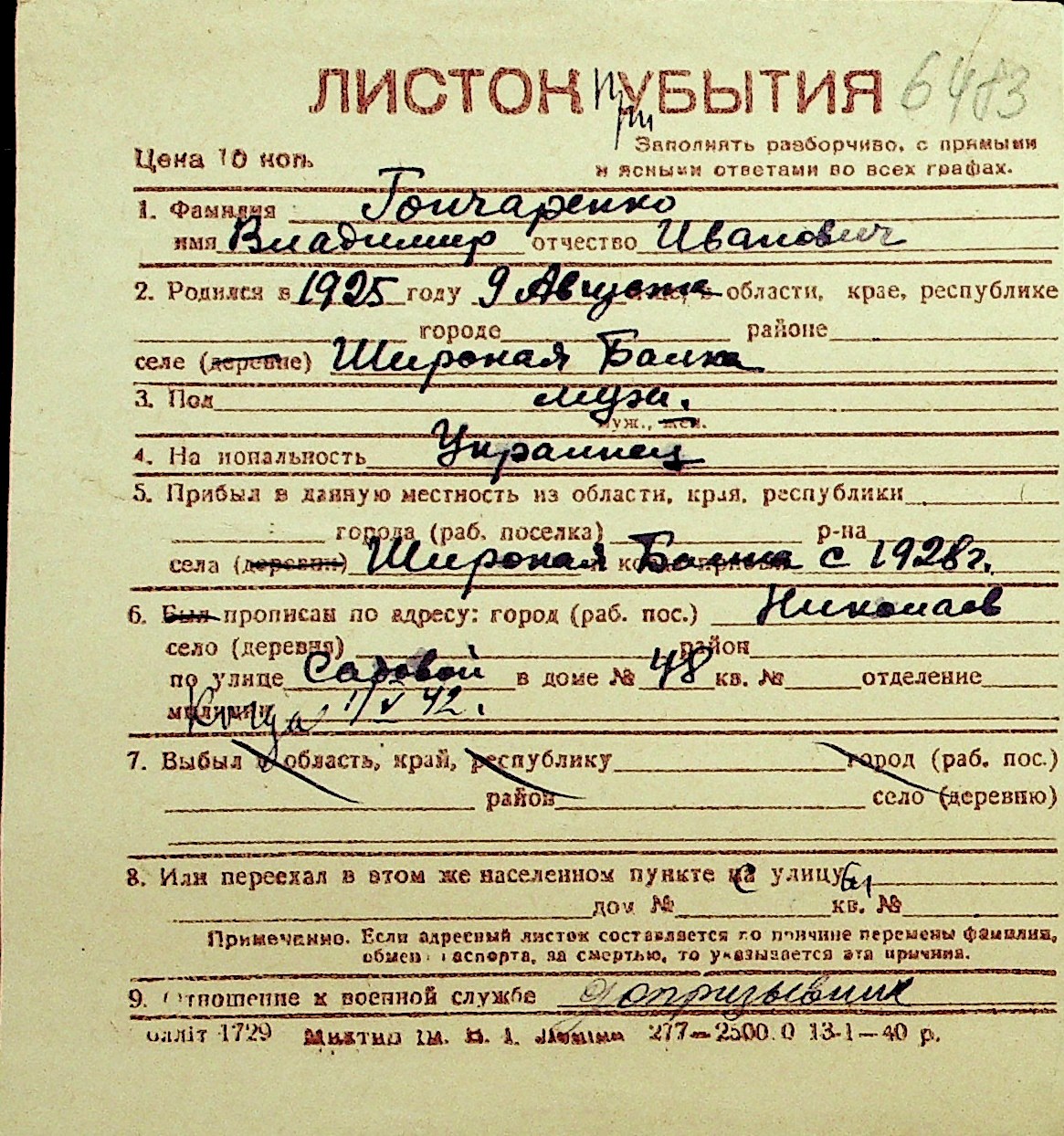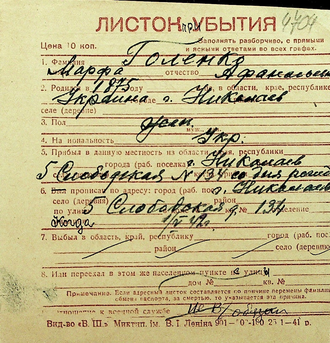 • • Перелік карток до фонду № Н-1016
