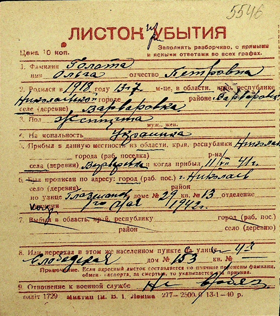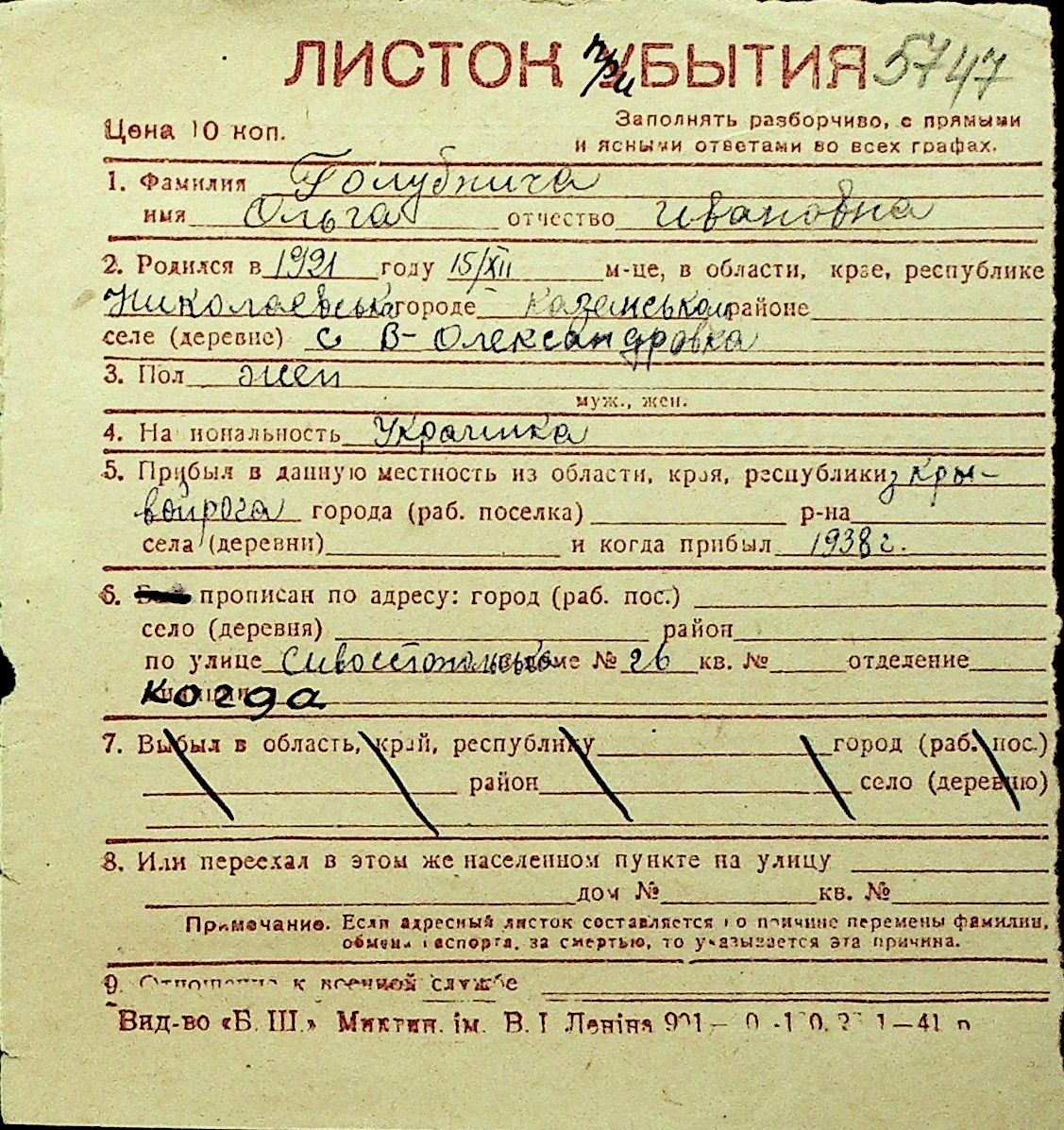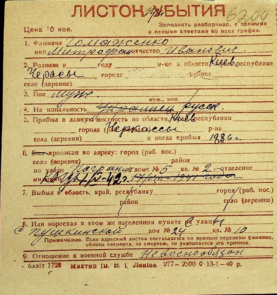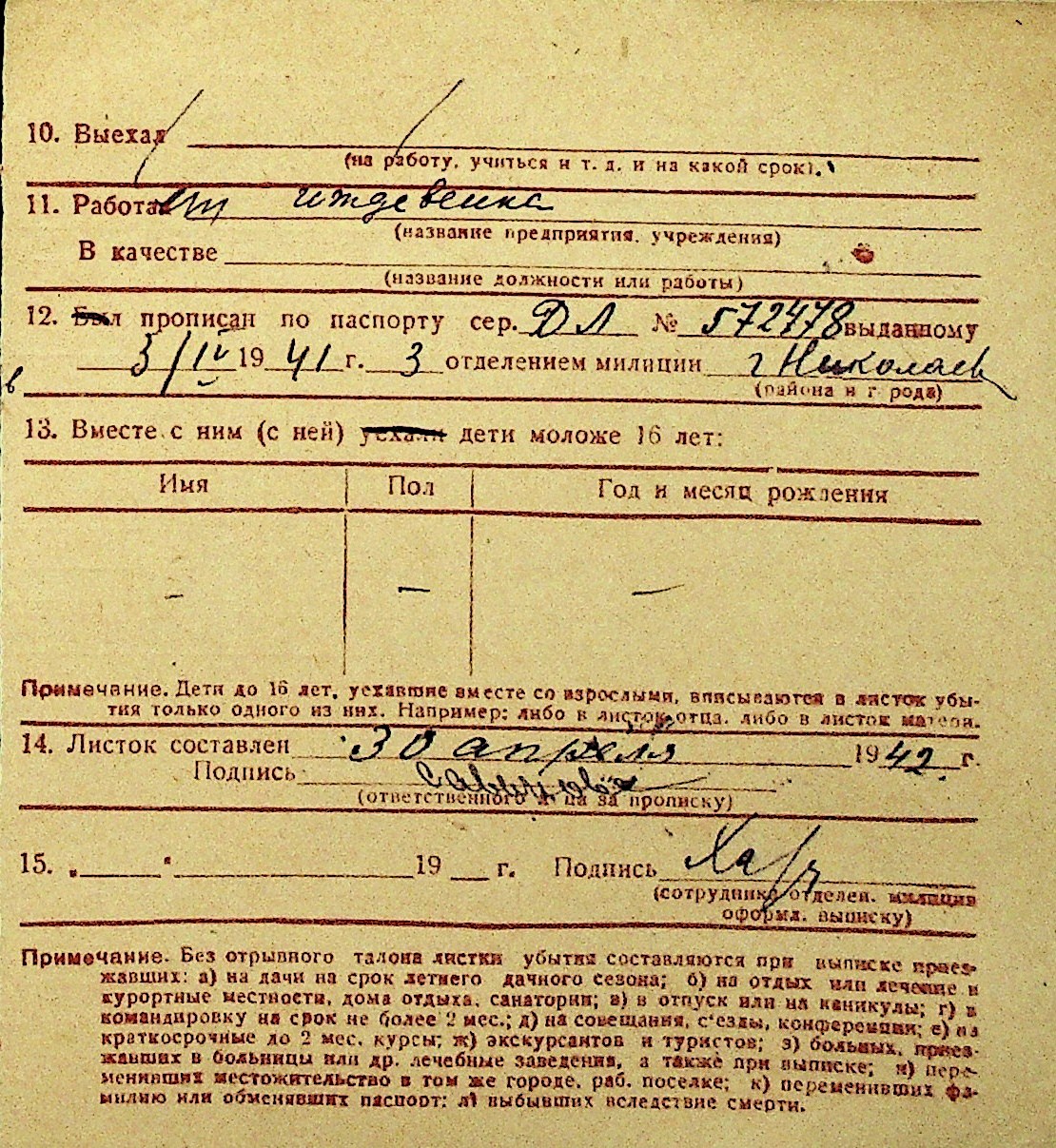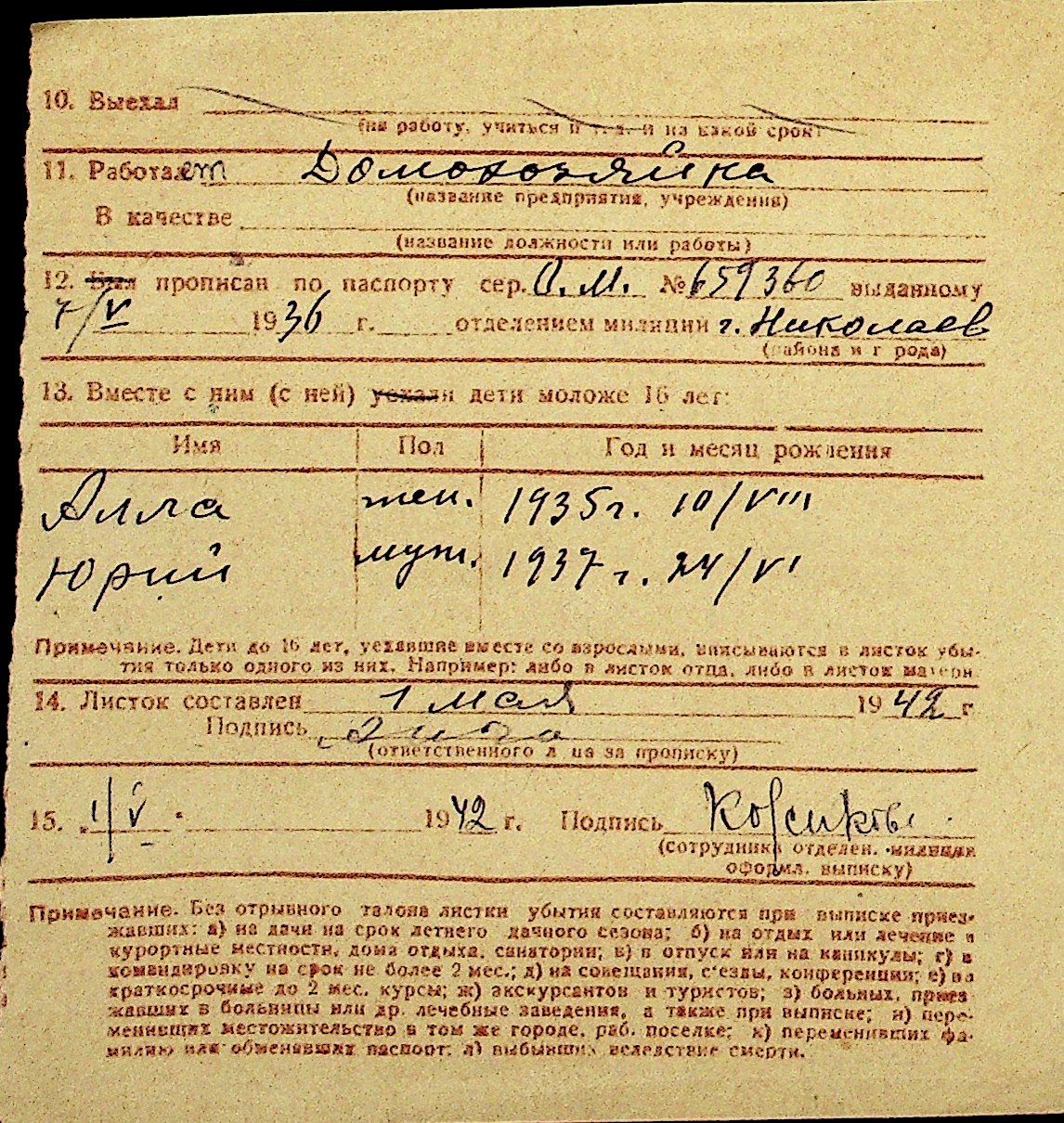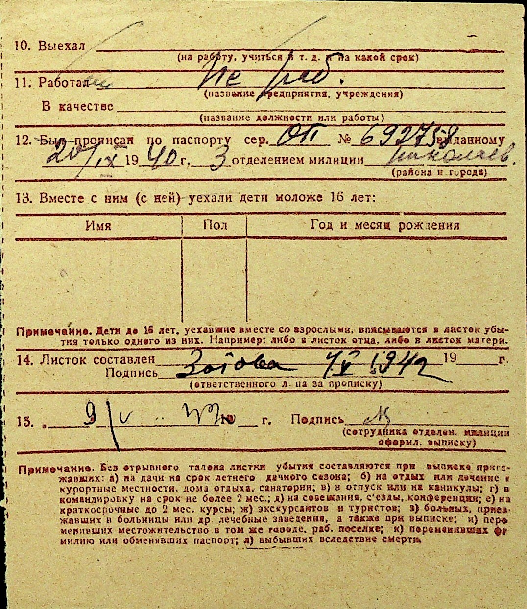 • • Перелік карток до фонду № Н-1016