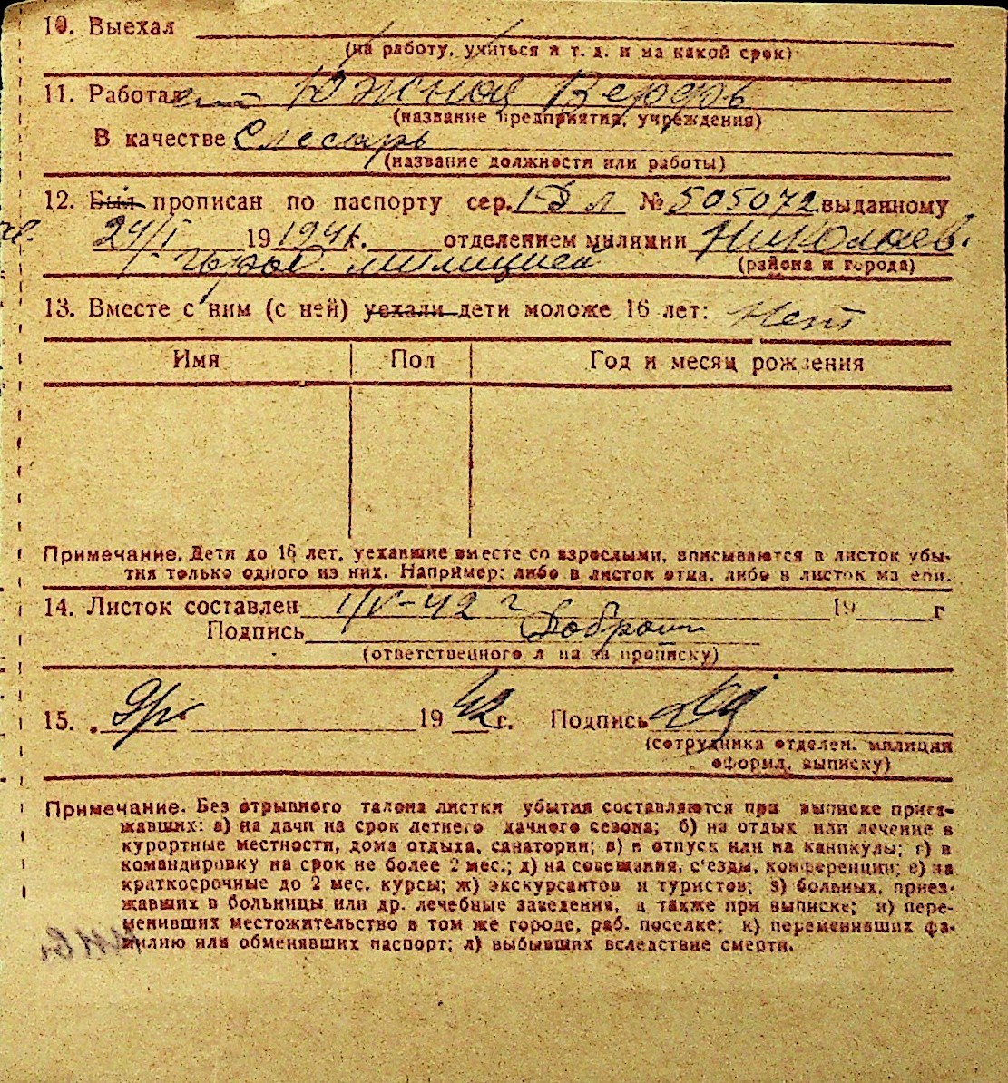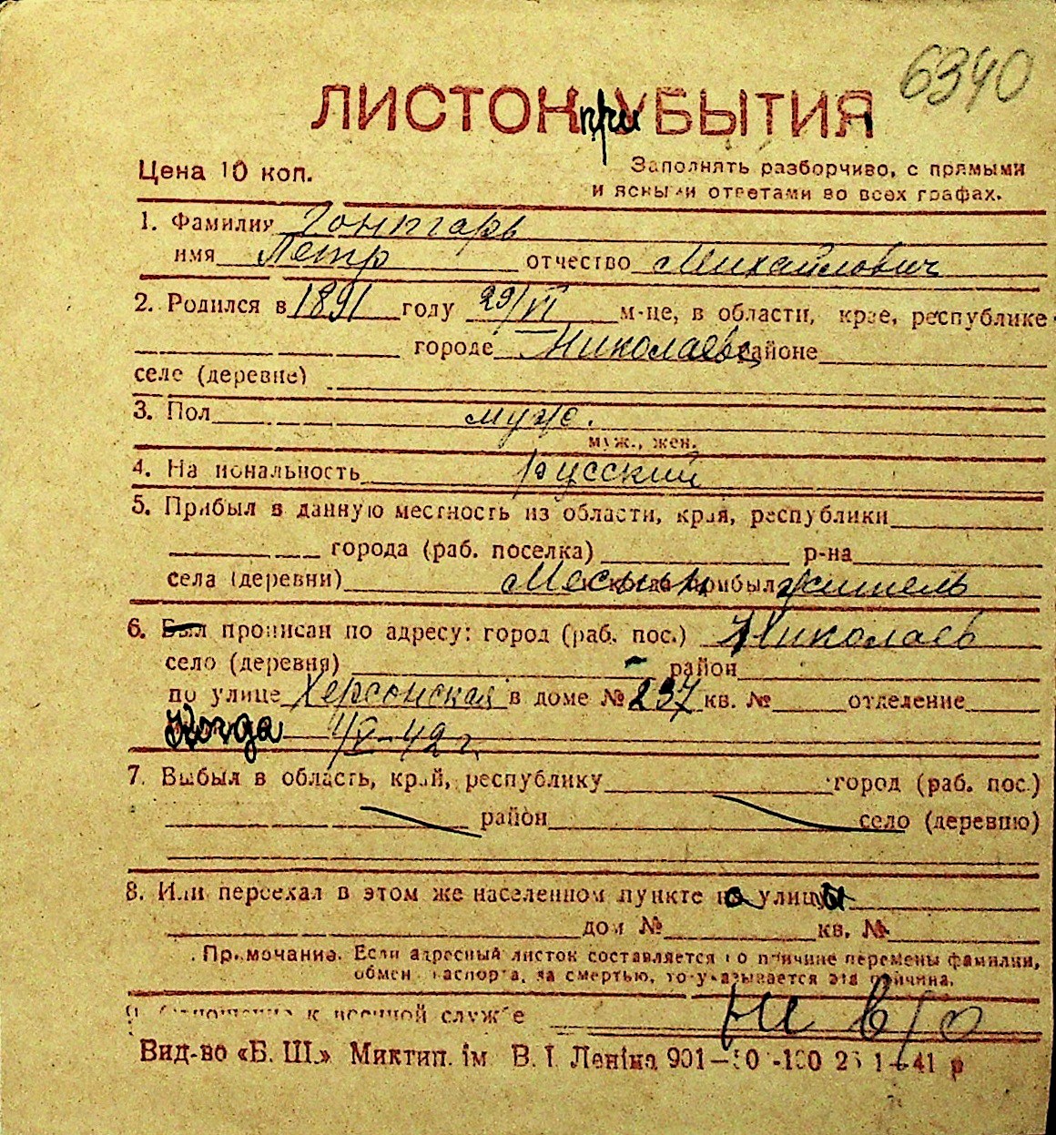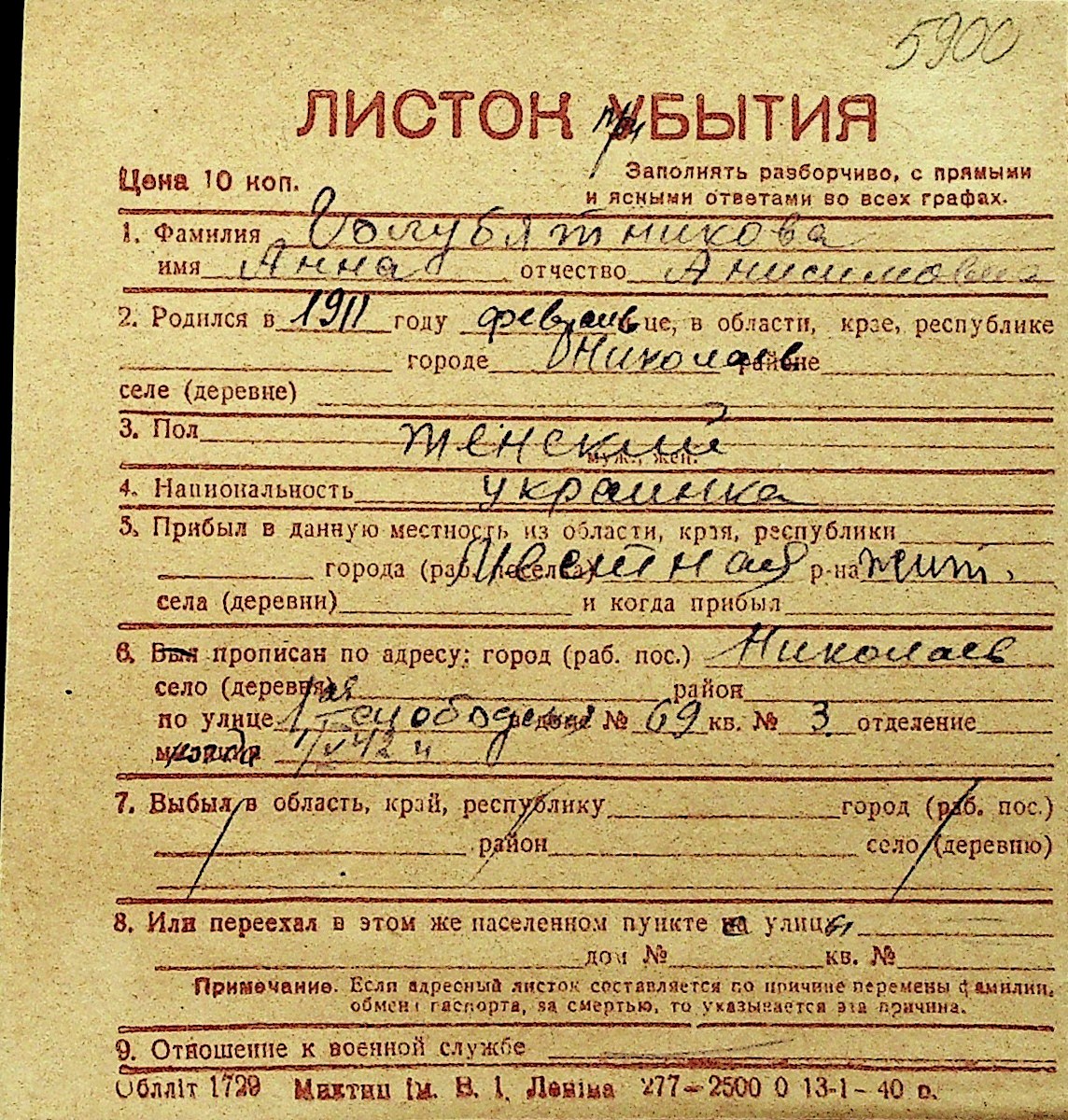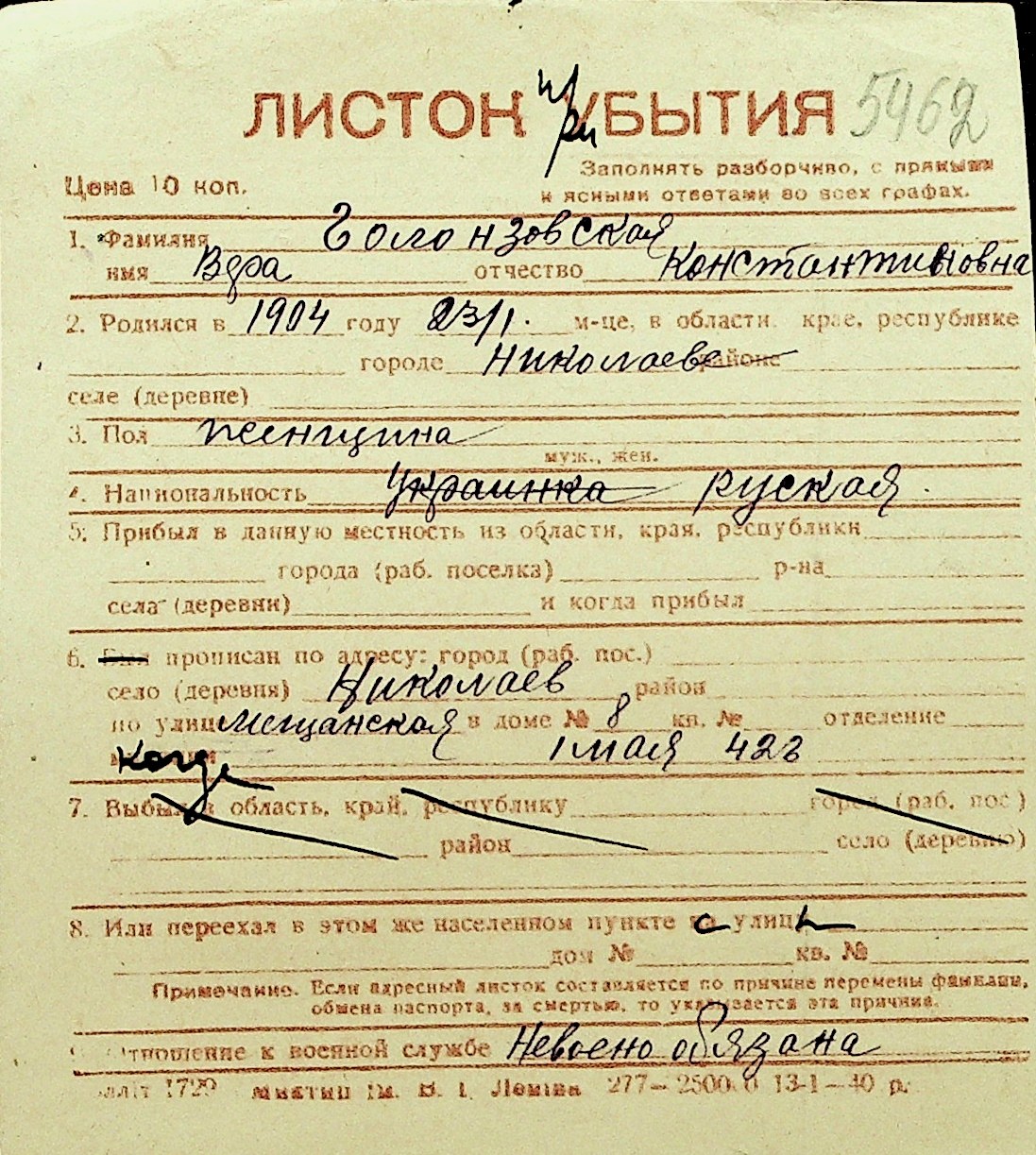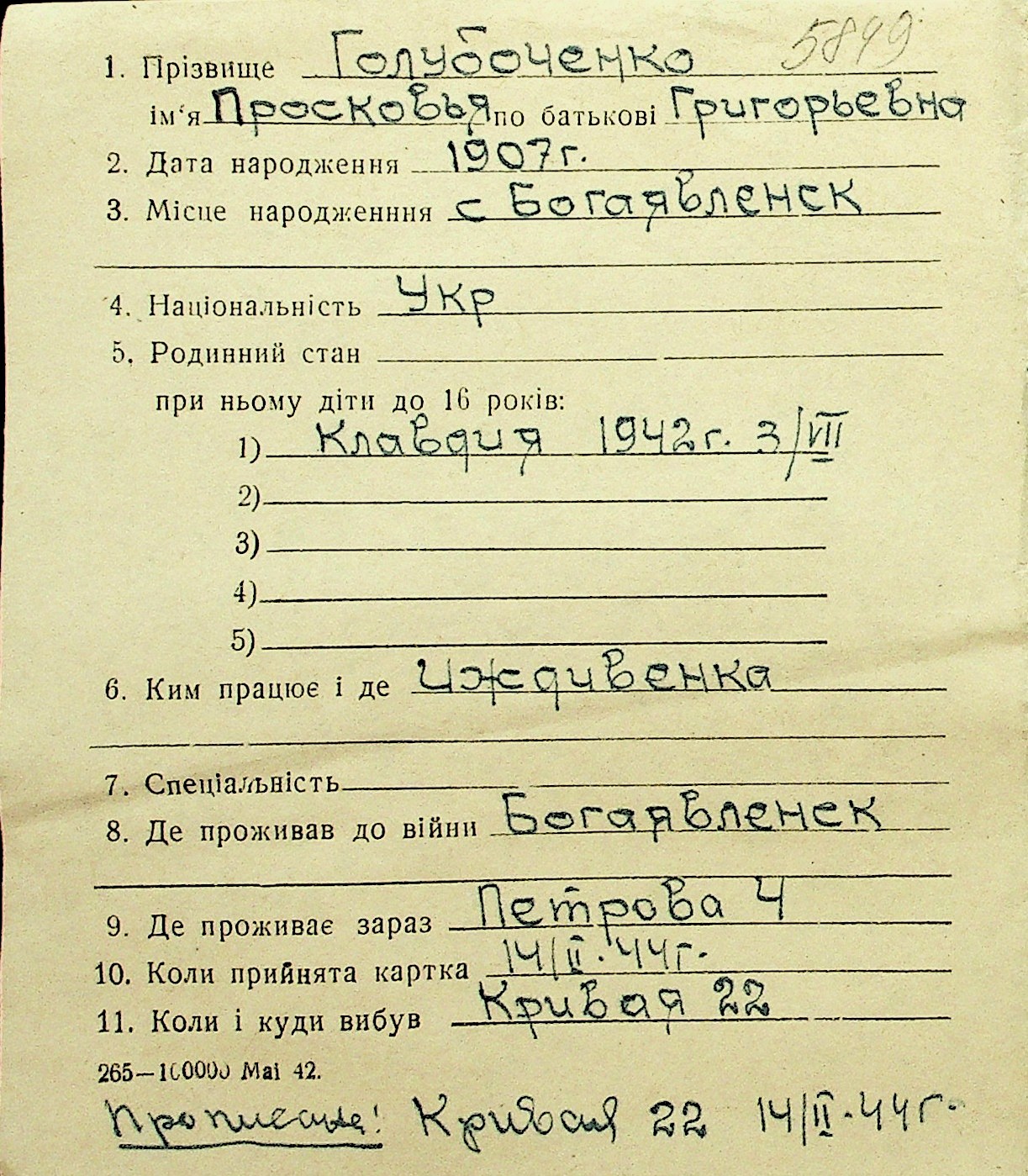 • • Перелік карток до фонду № Н-1016