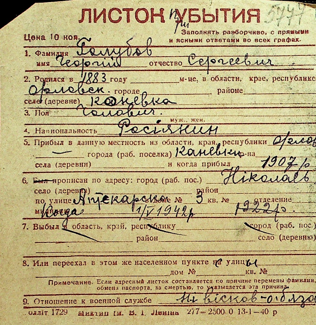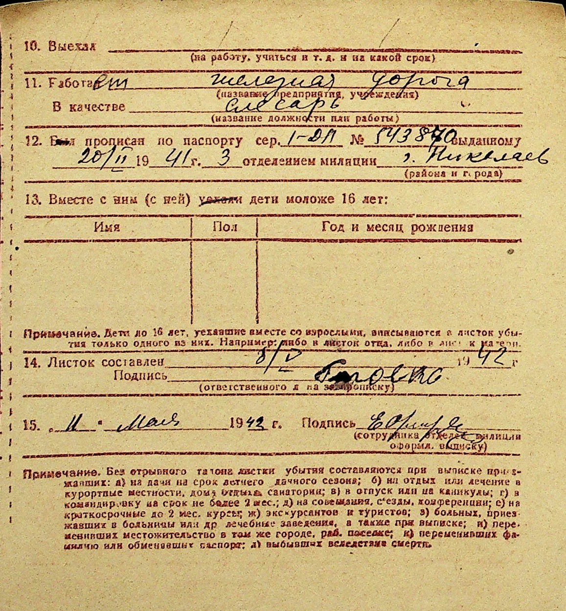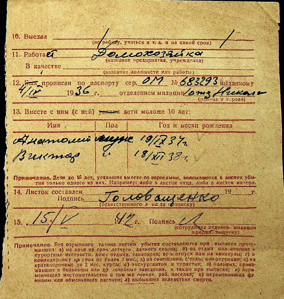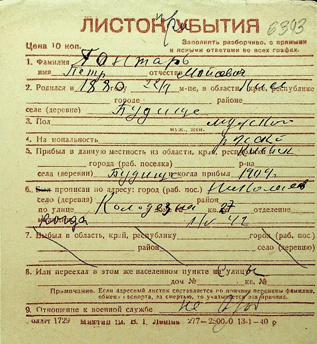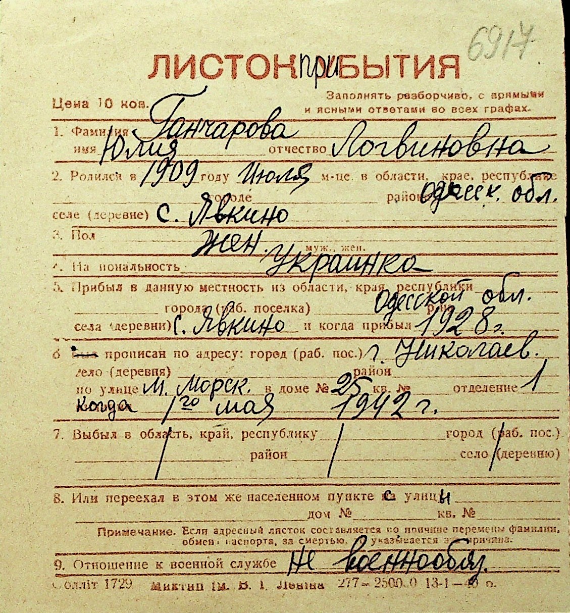 • • Перелік карток до фонду № Н-1016