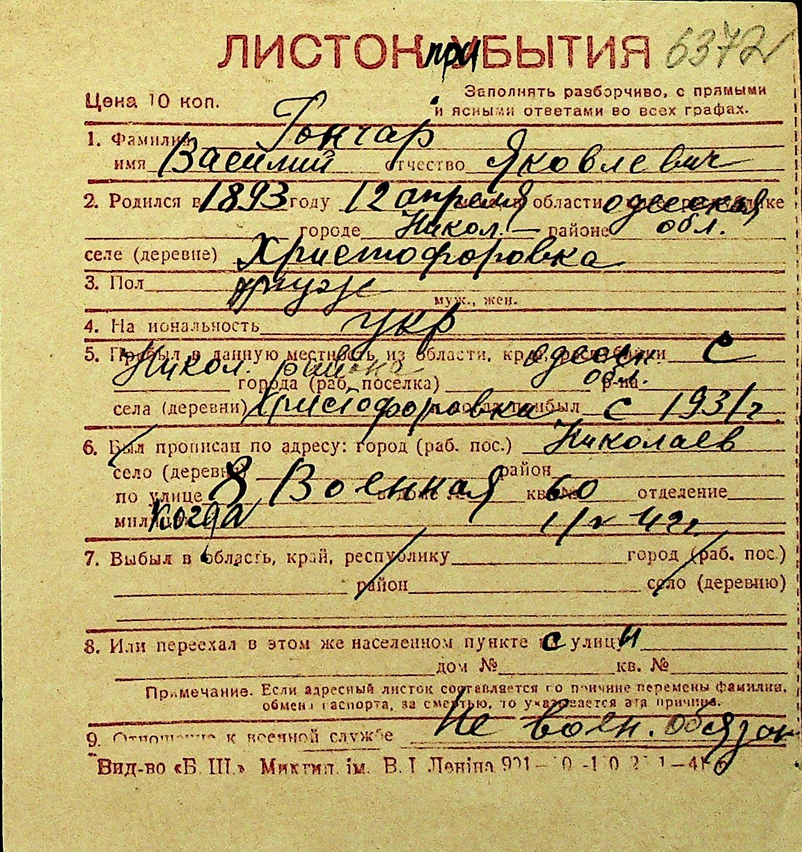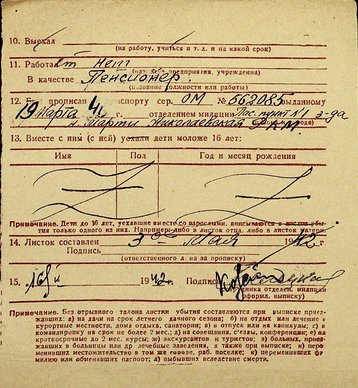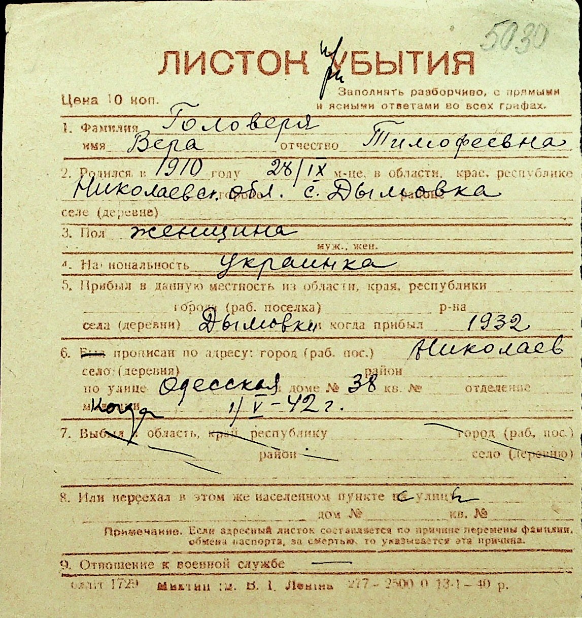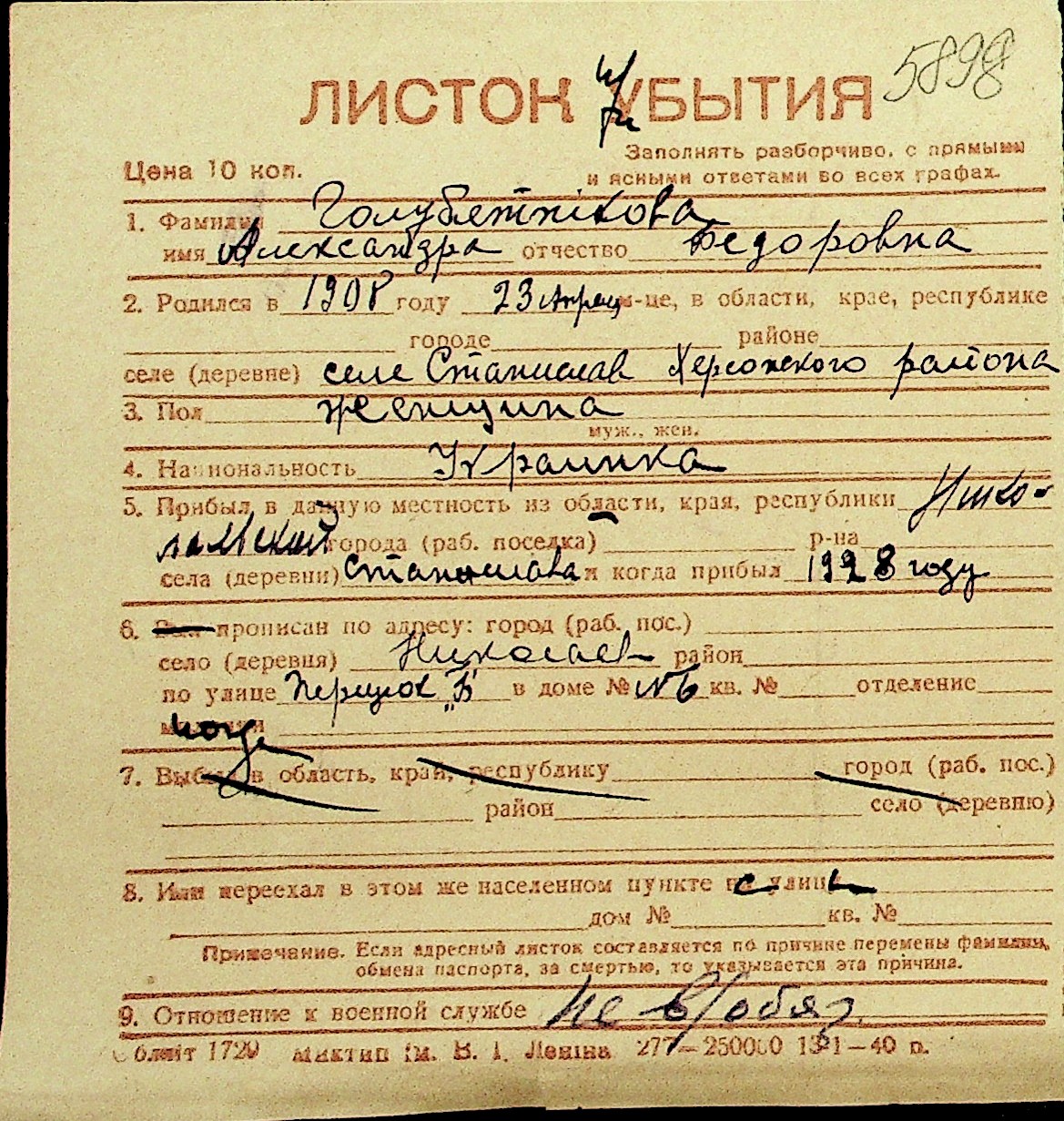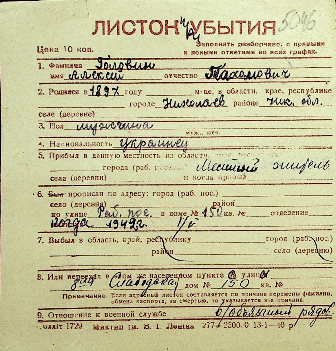 • • Перелік карток до фонду № Н-1016