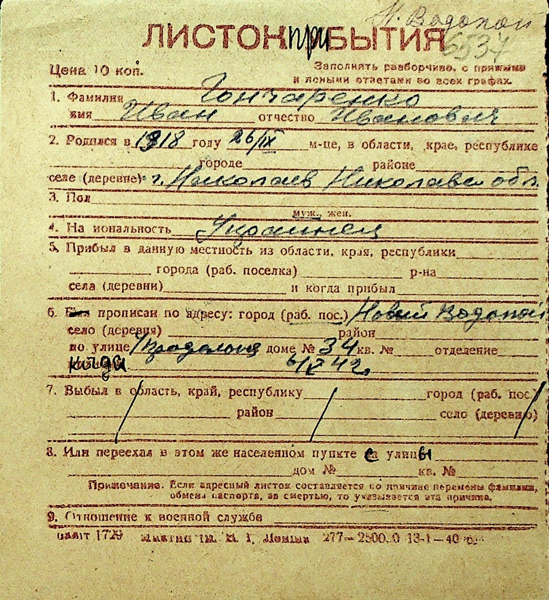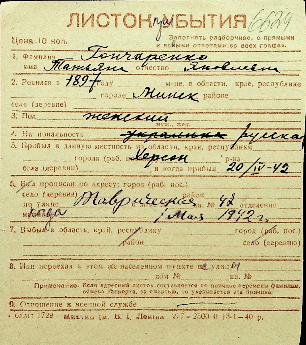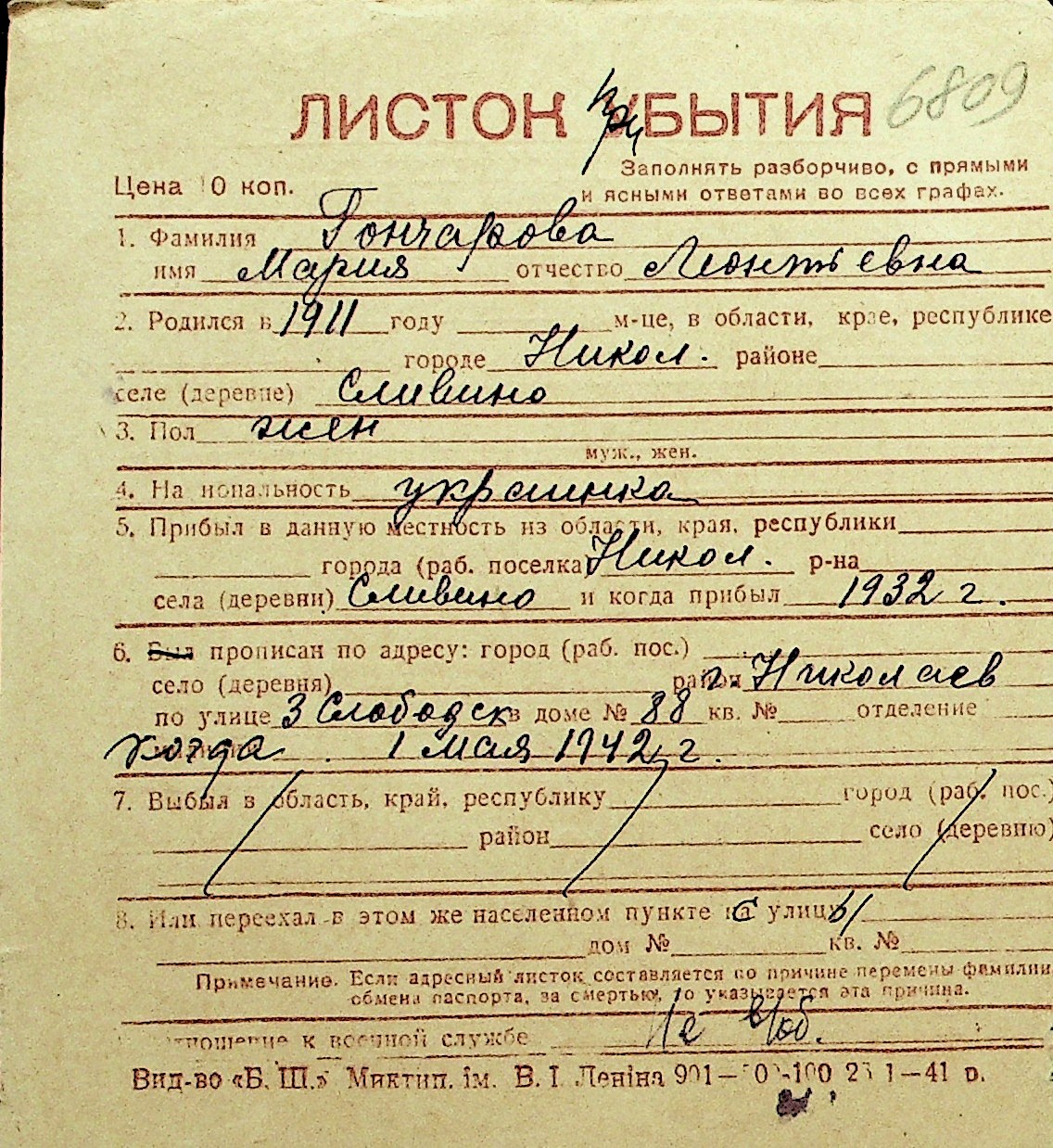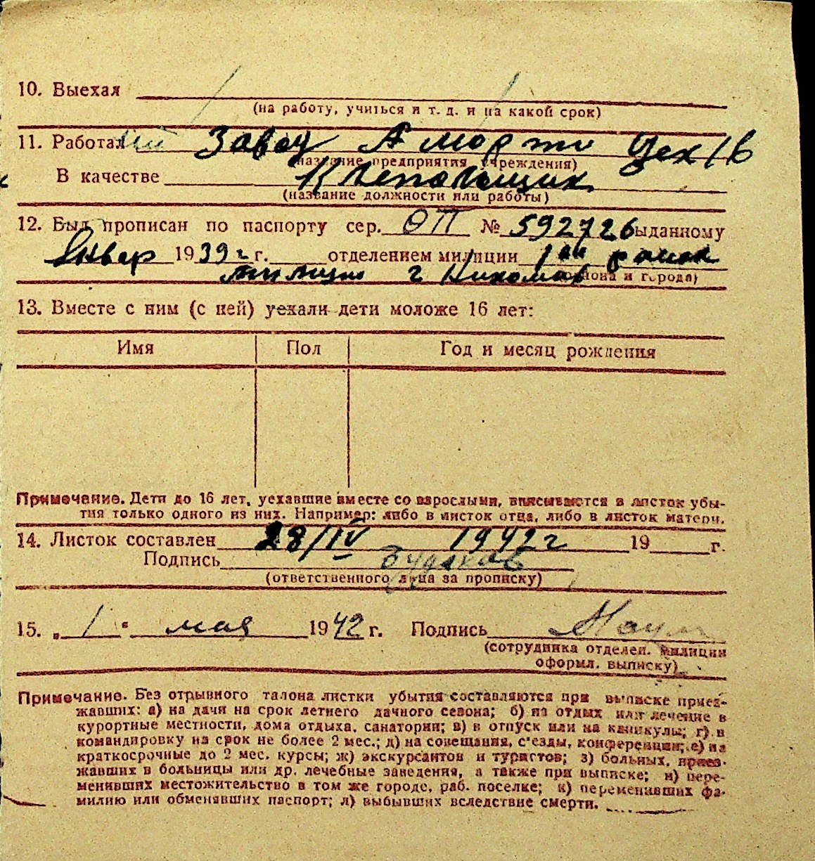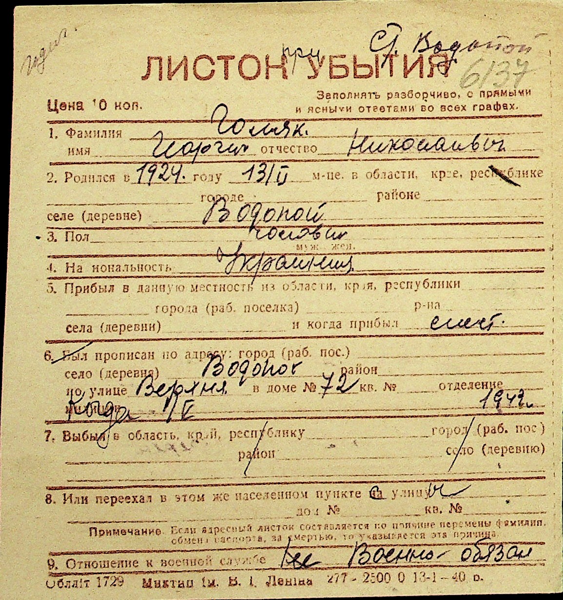 • • Перелік карток до фонду № Н-1016
