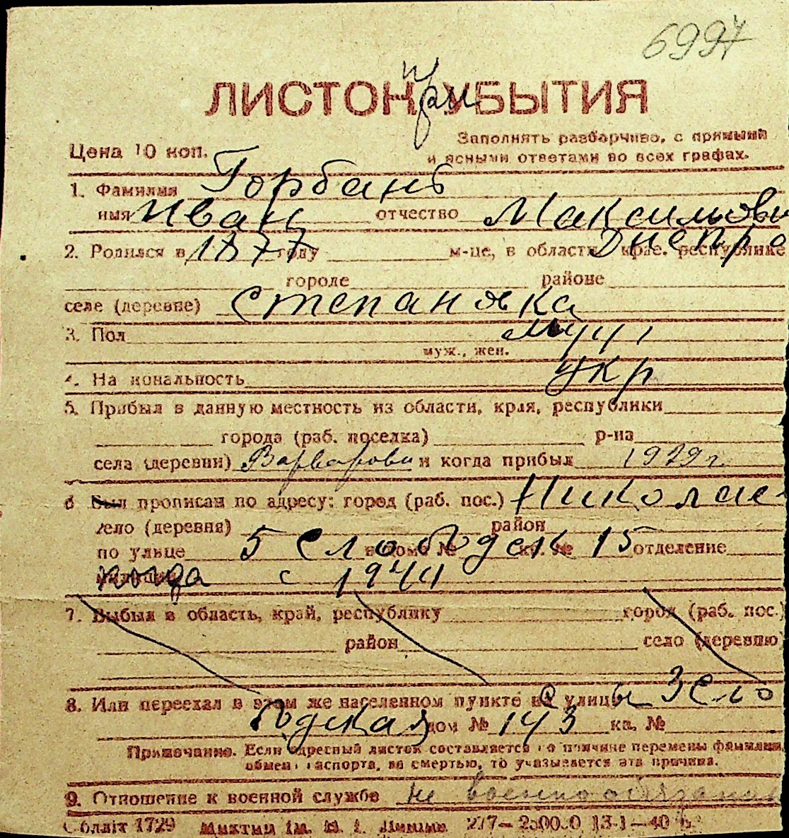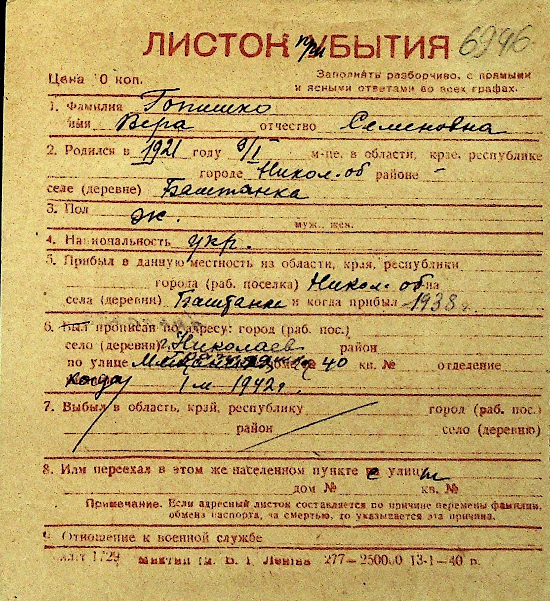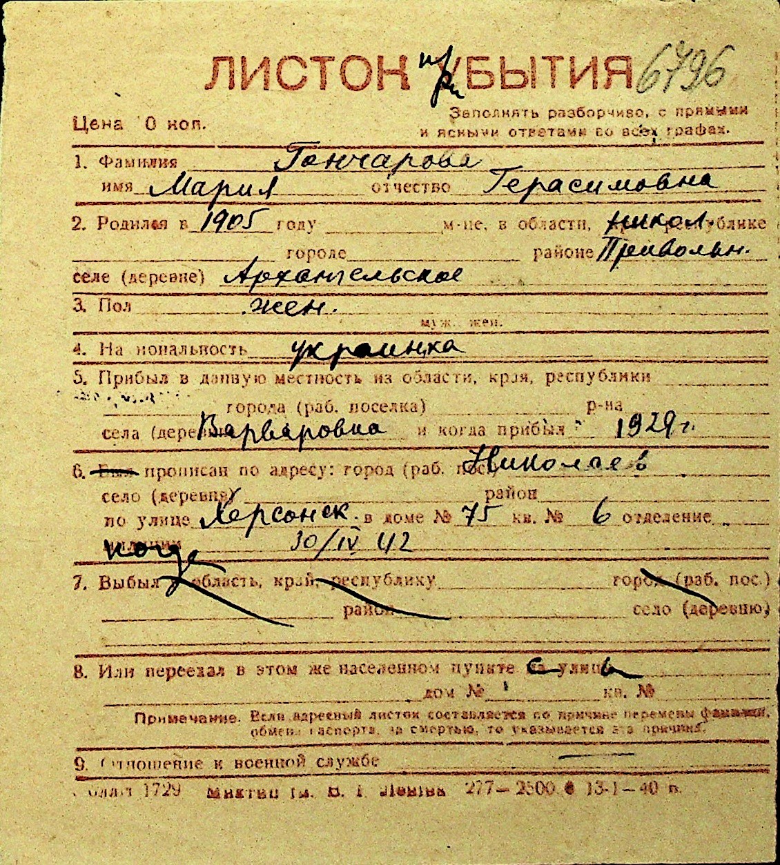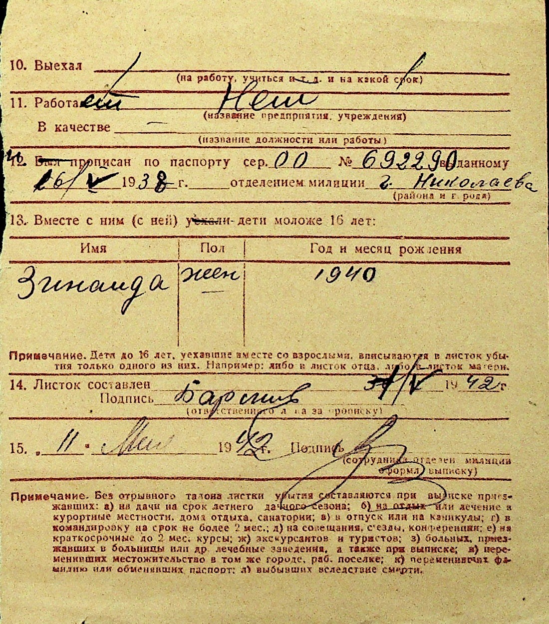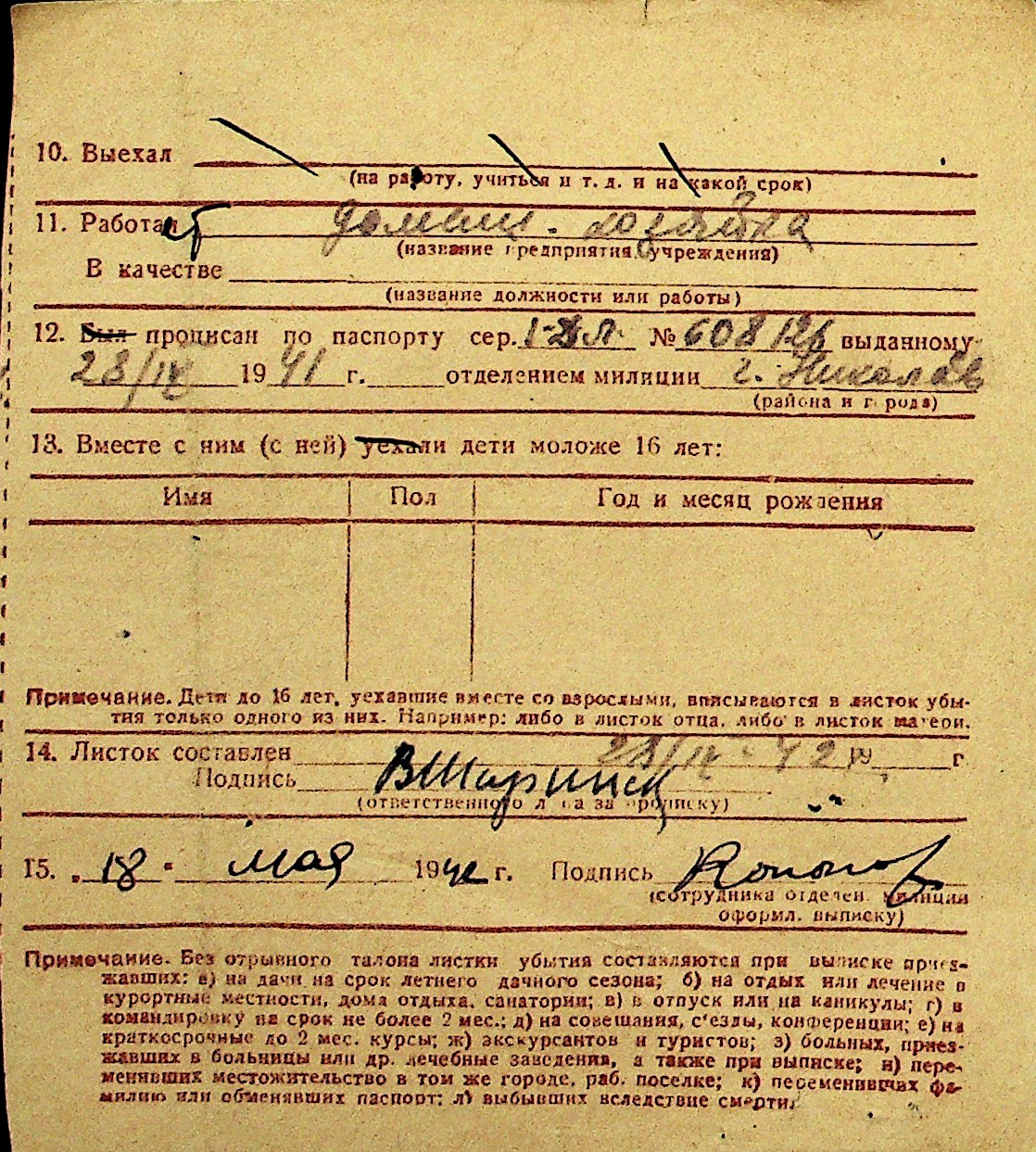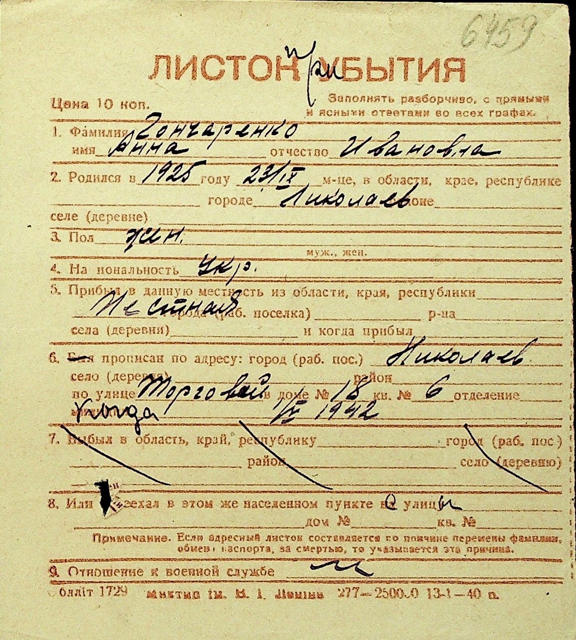 • • Перелік карток до фонду № Н-1016