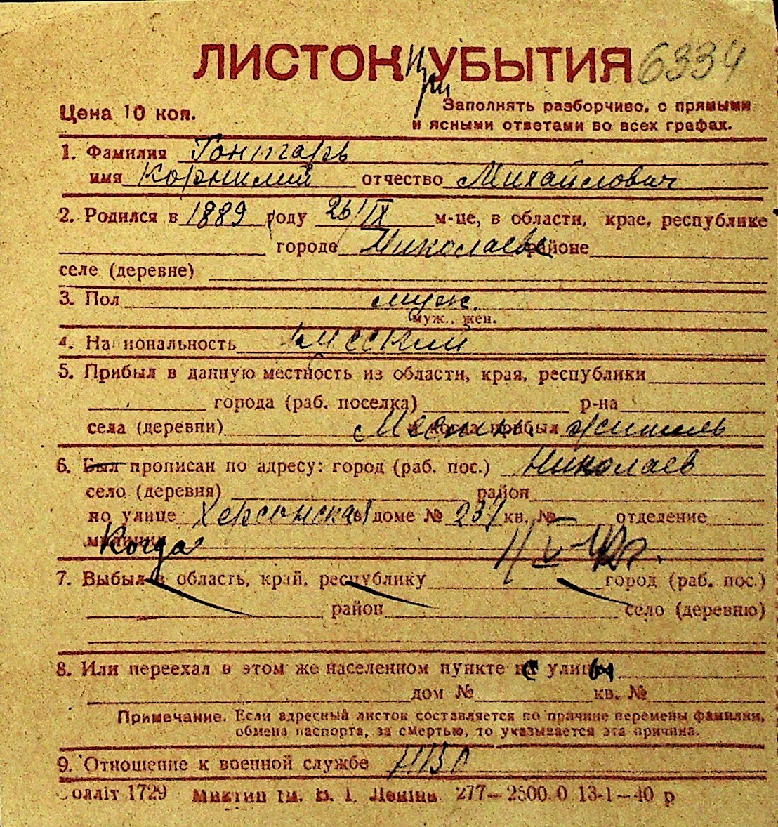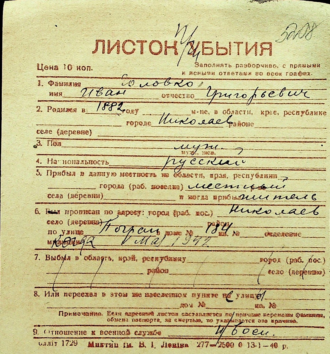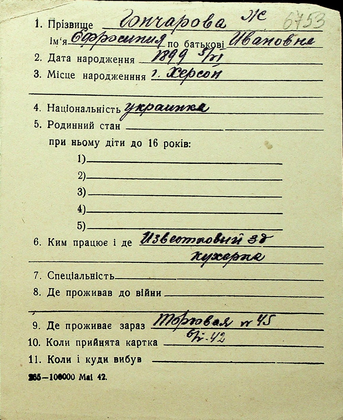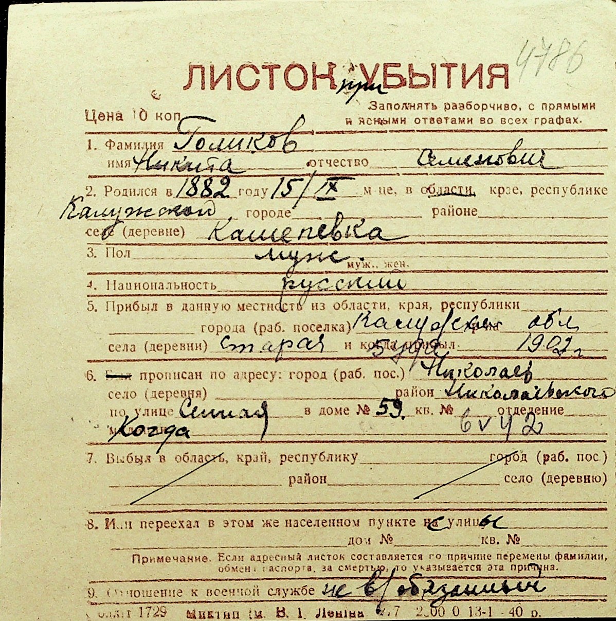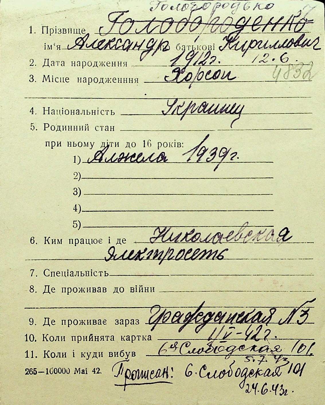 • • Перелік карток до фонду № Н-1016