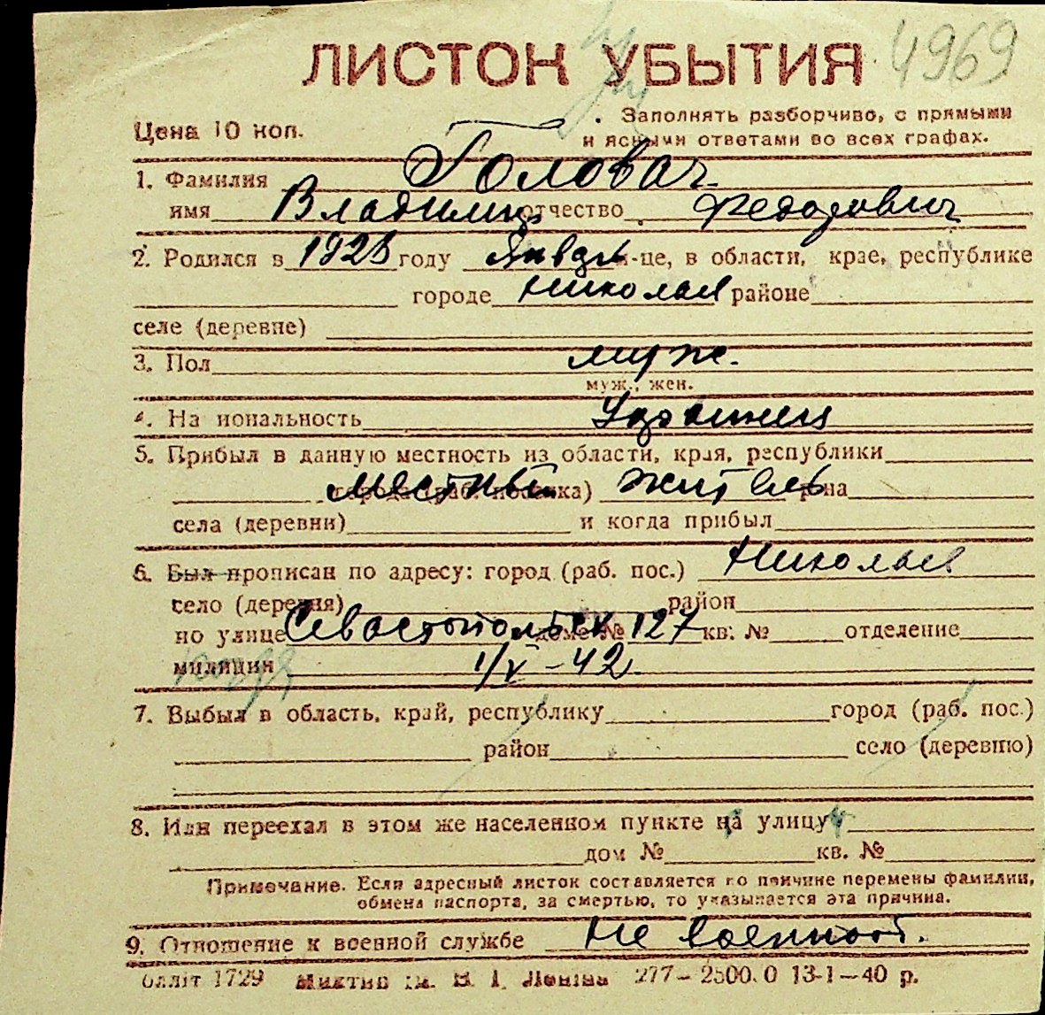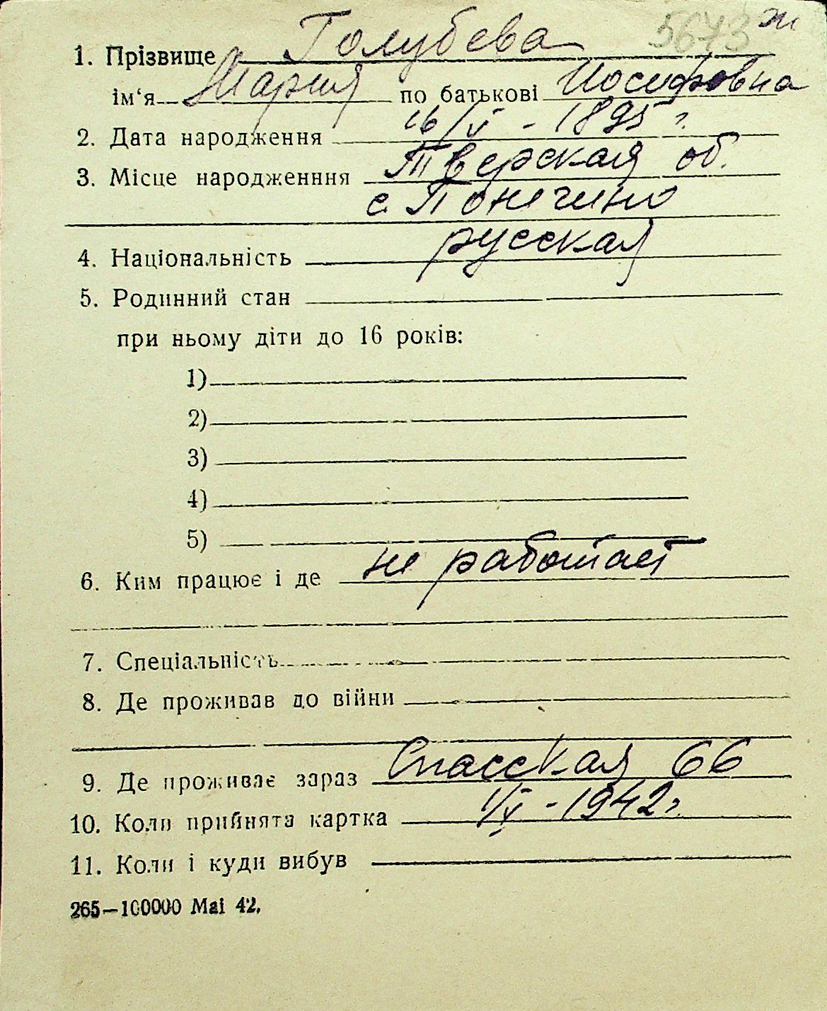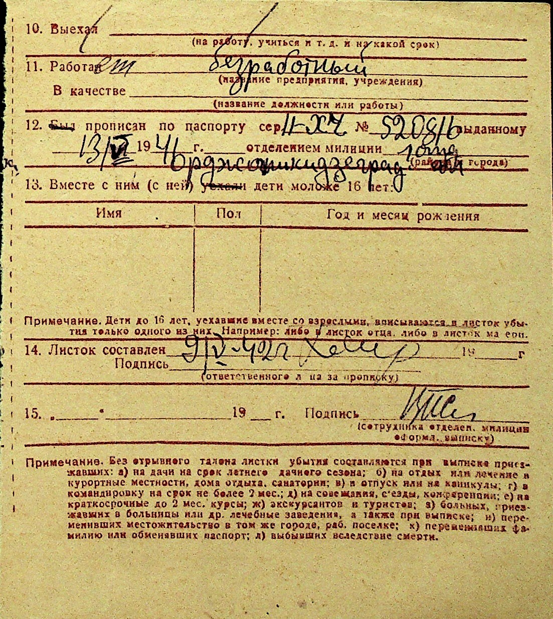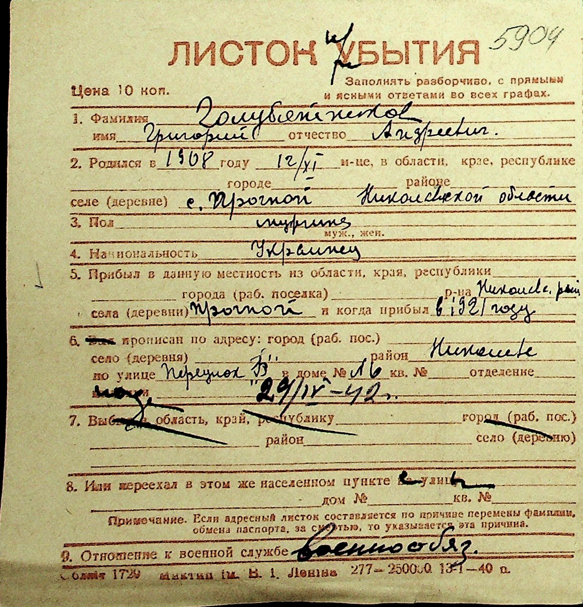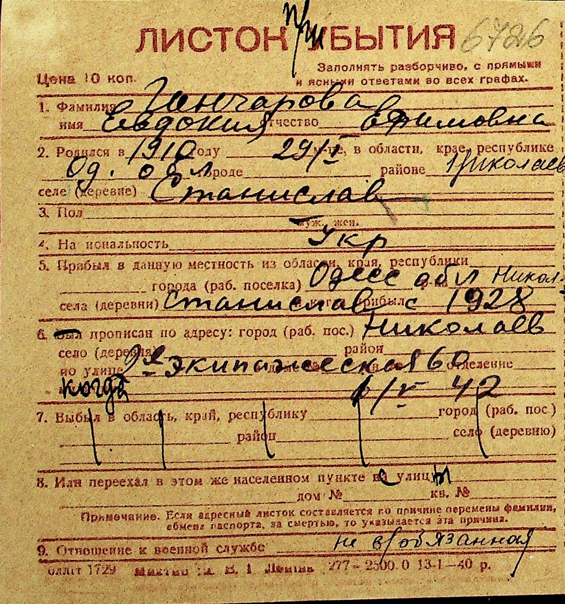 • • Перелік карток до фонду № Н-1016