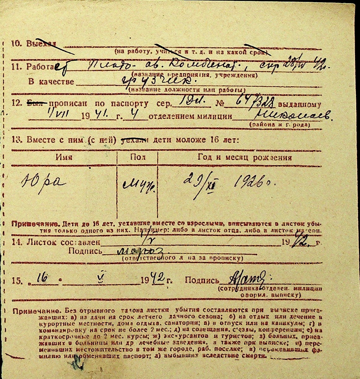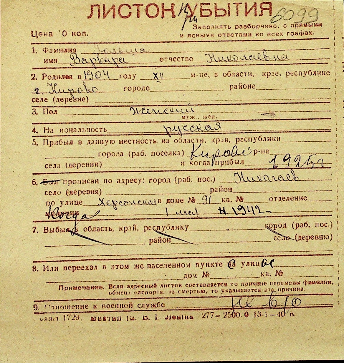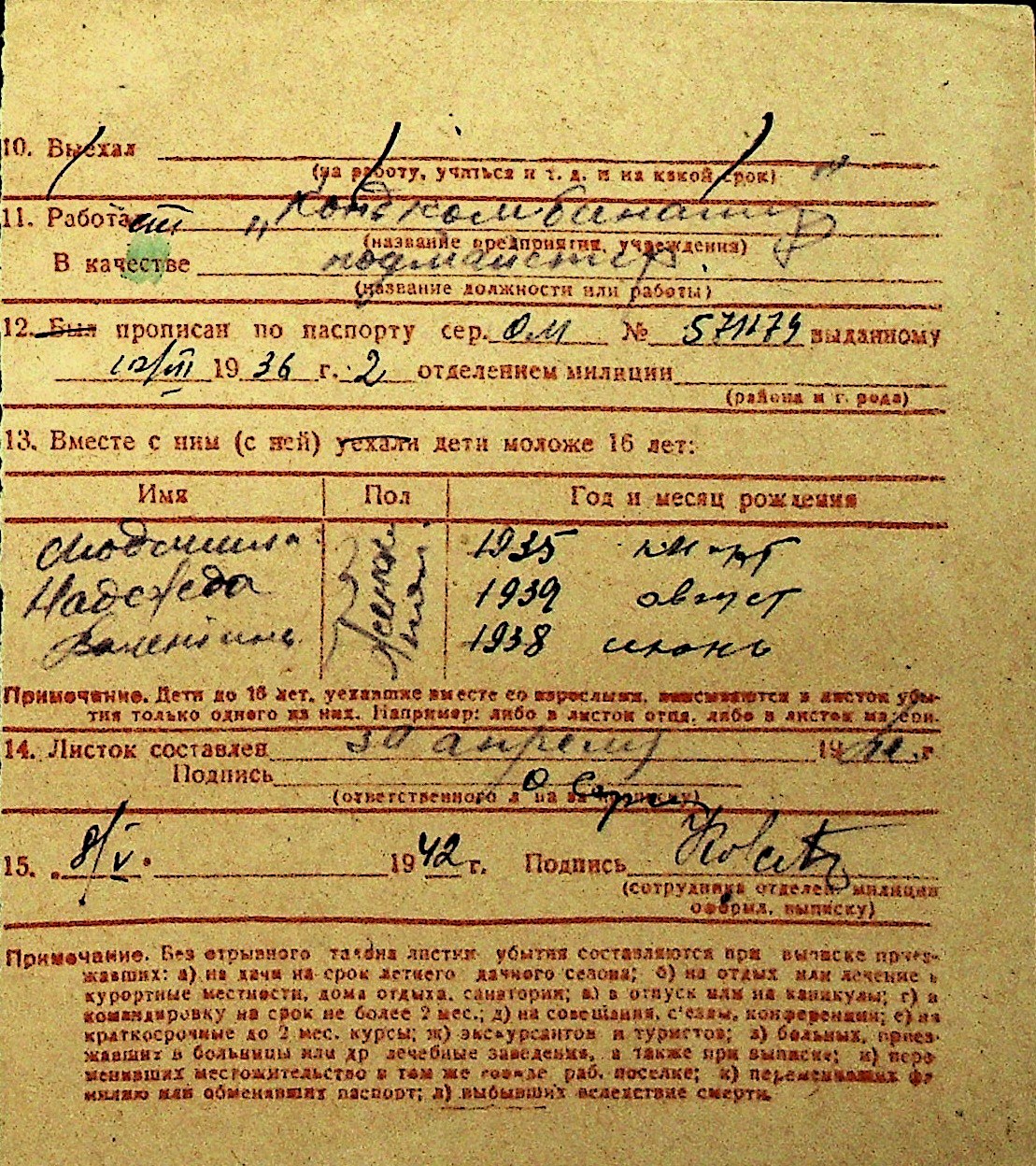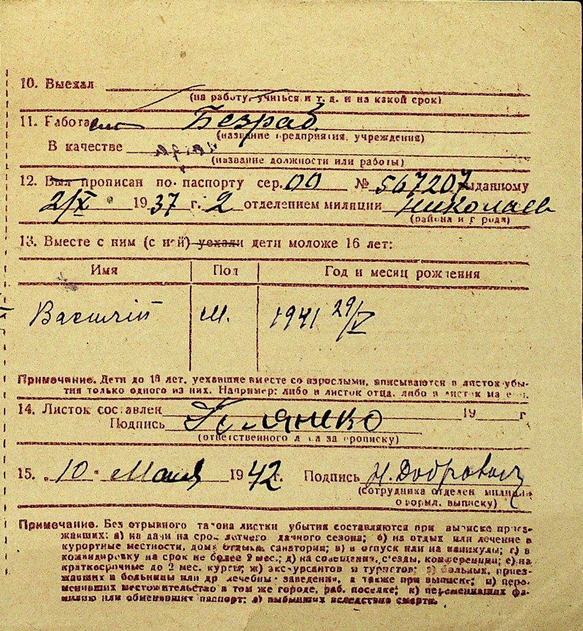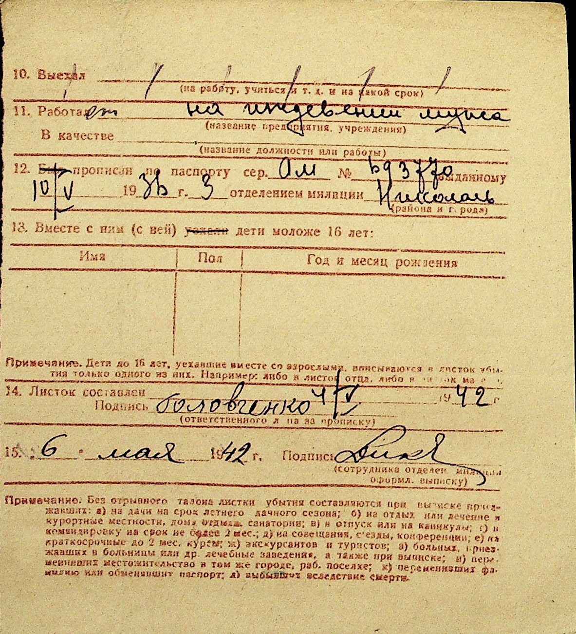 • • Перелік карток до фонду № Н-1016
