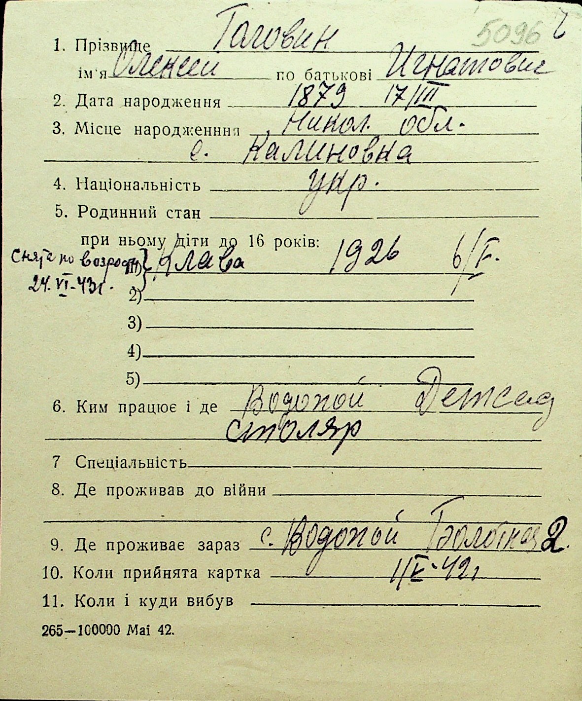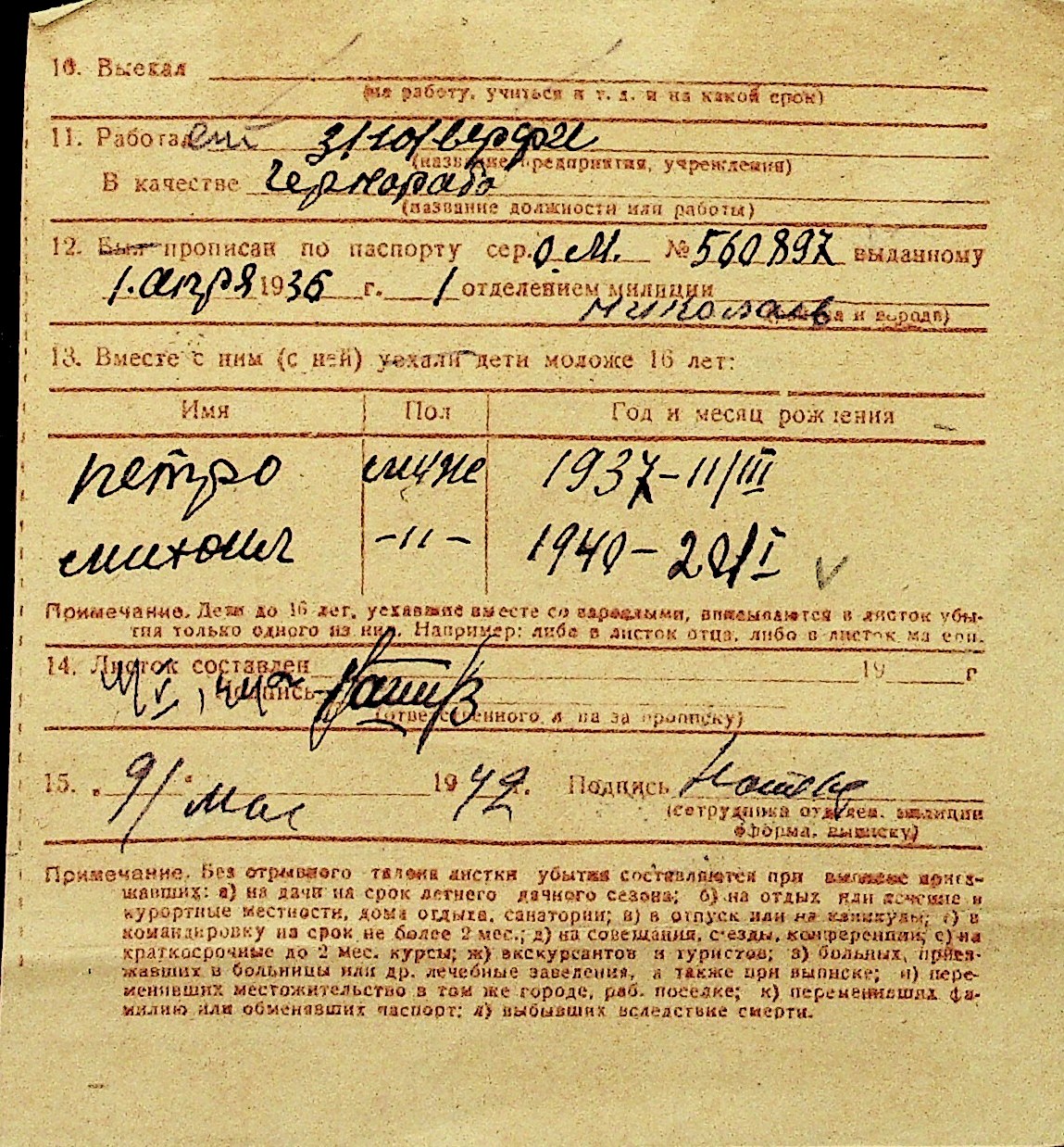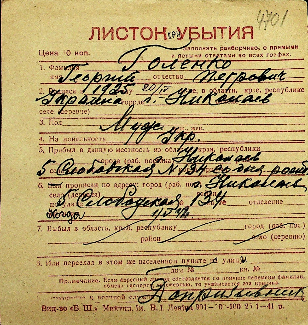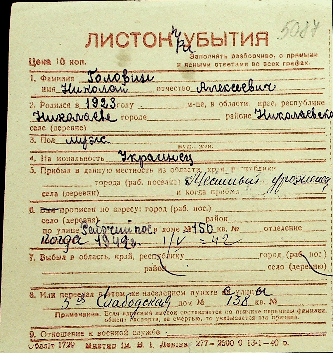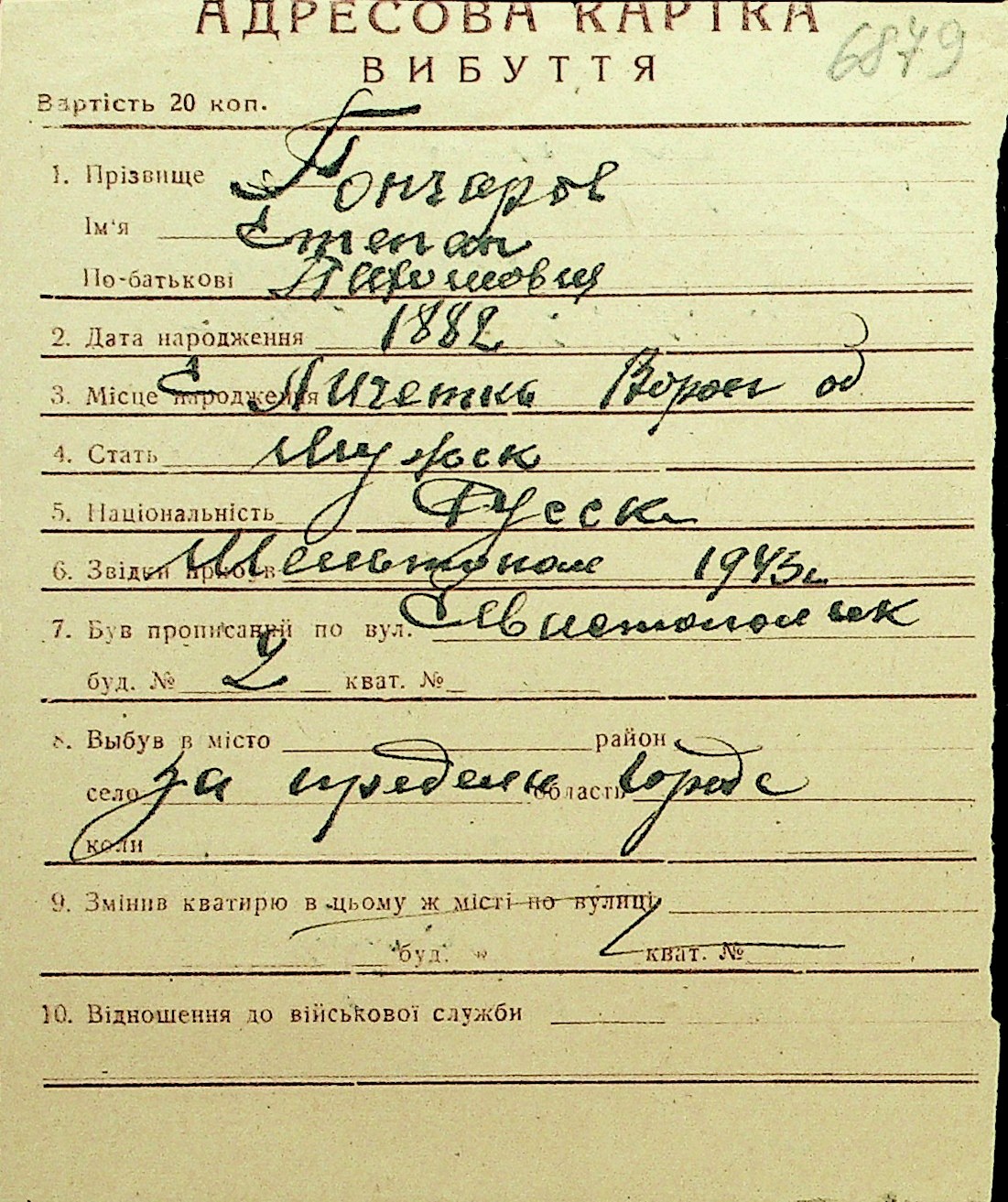 • • Перелік карток до фонду № Н-1016