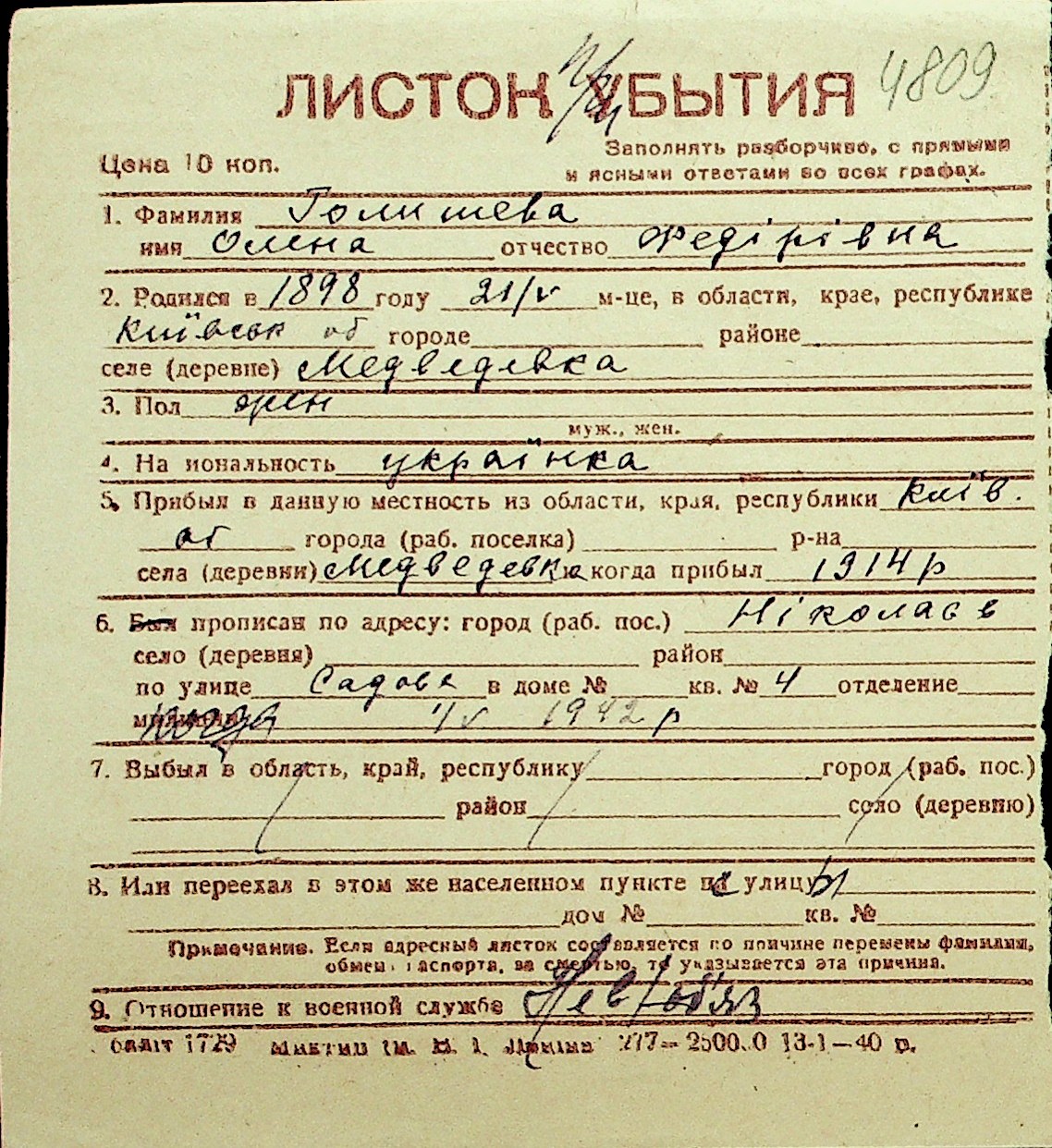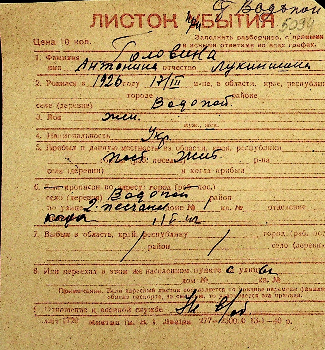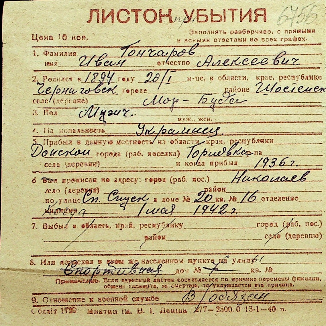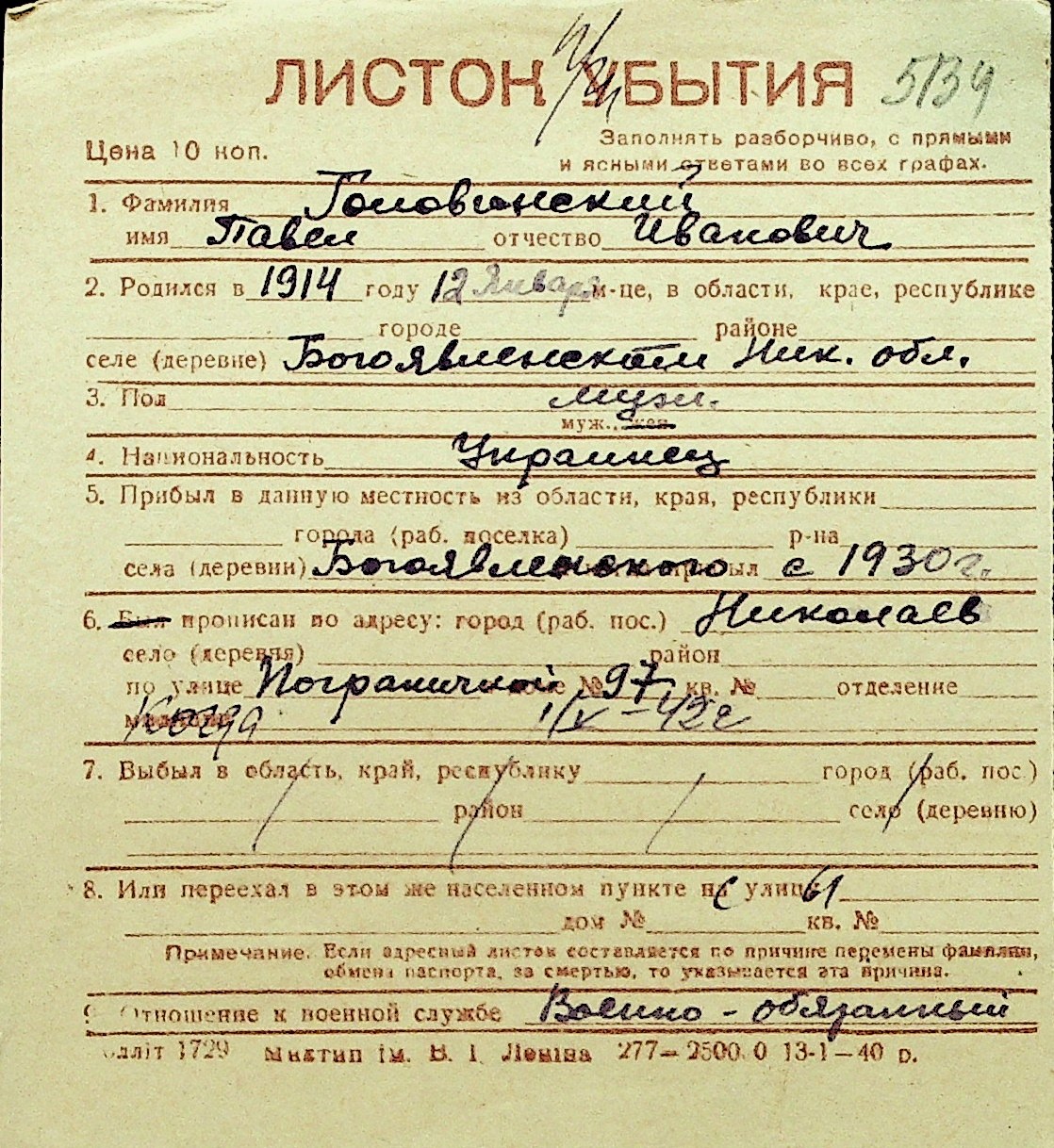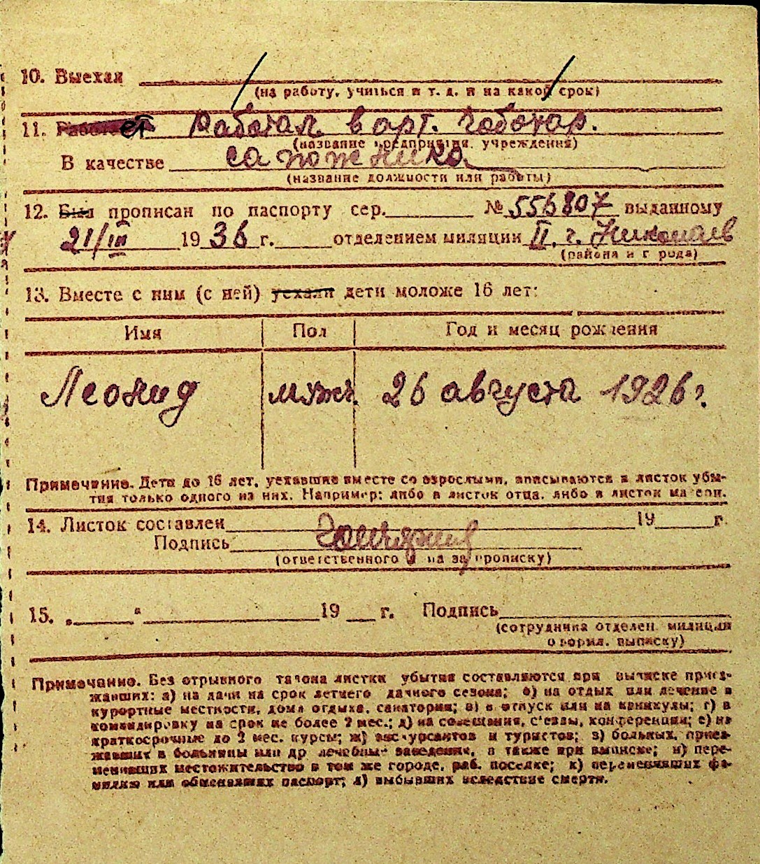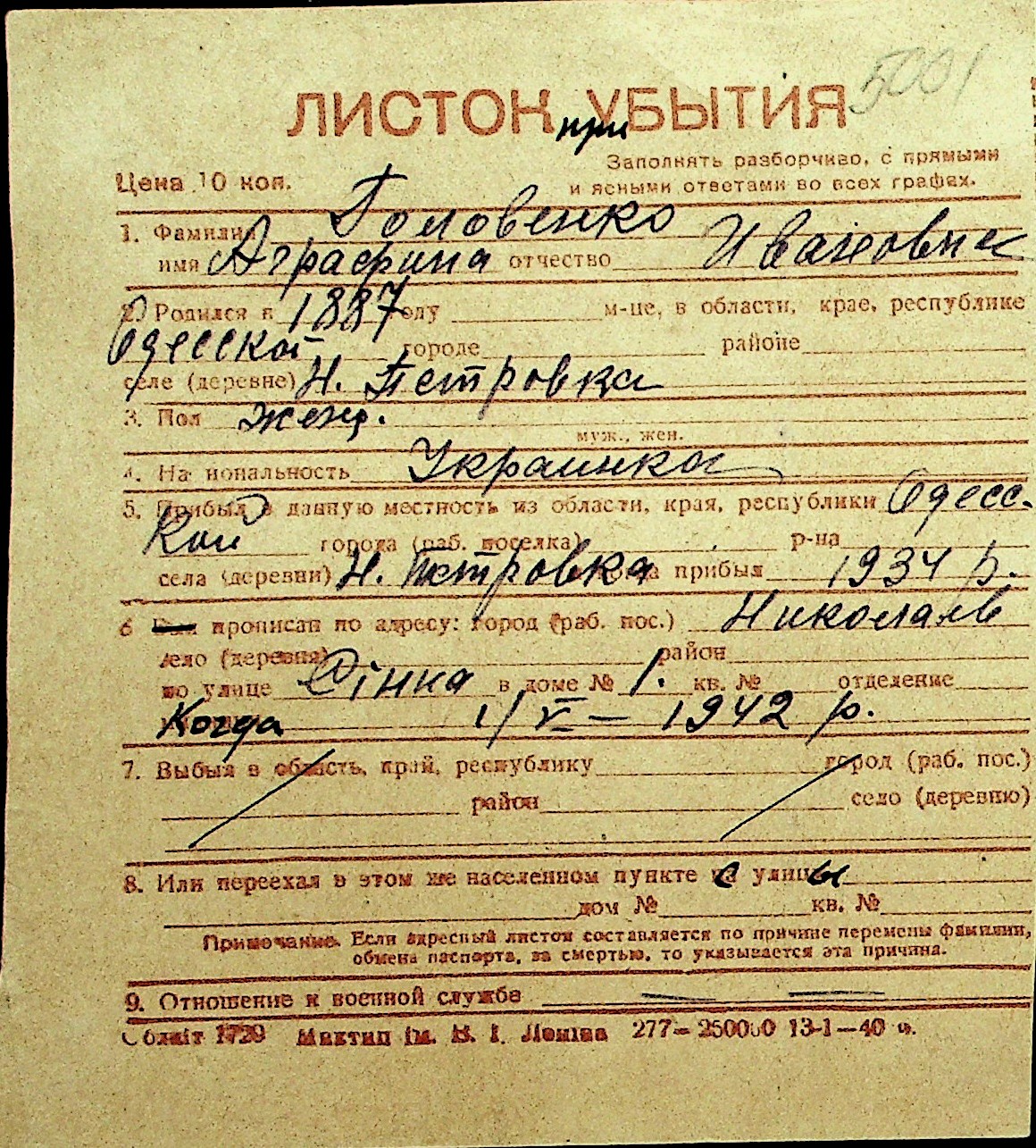 • • Перелік карток до фонду № Н-1016