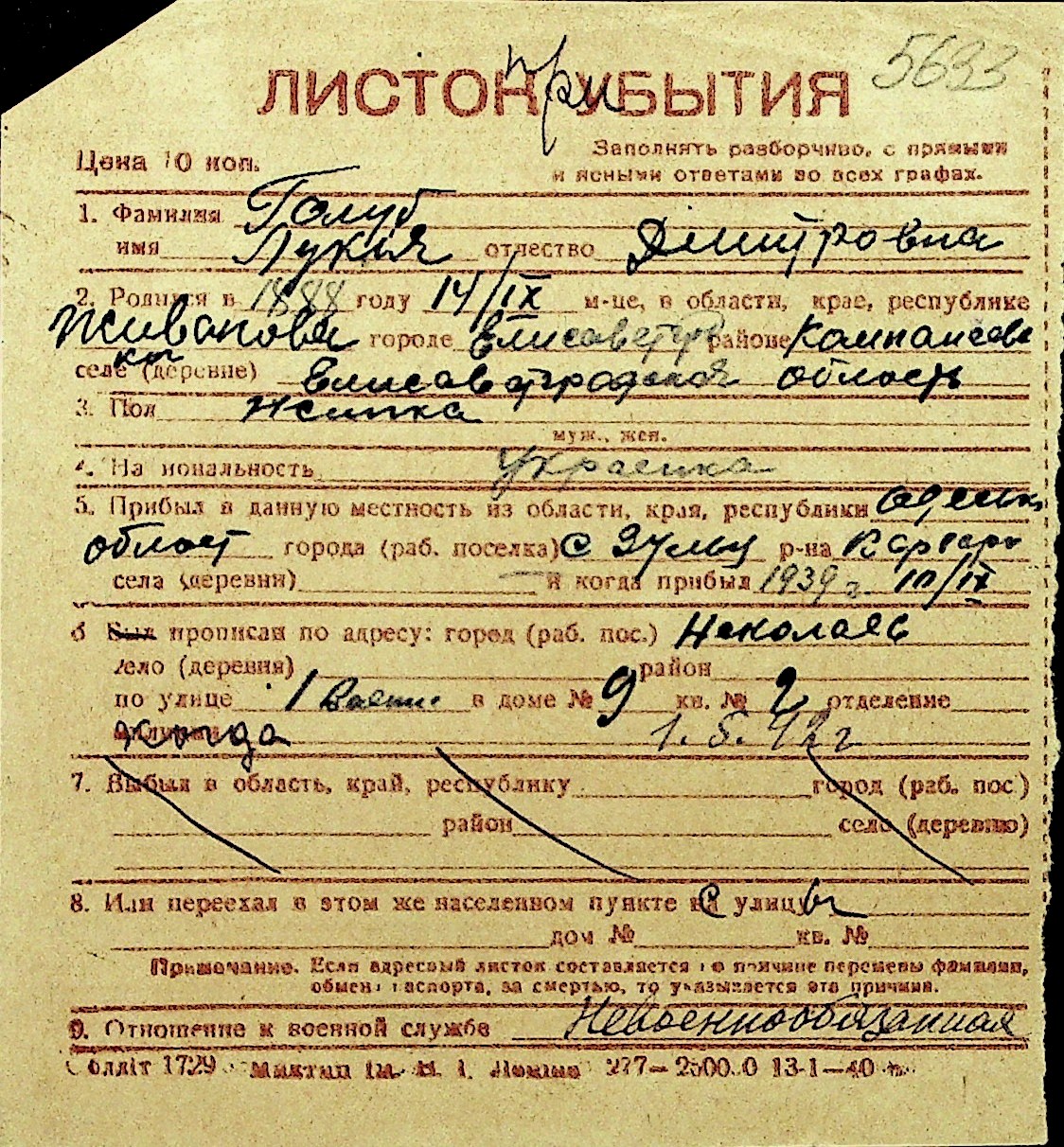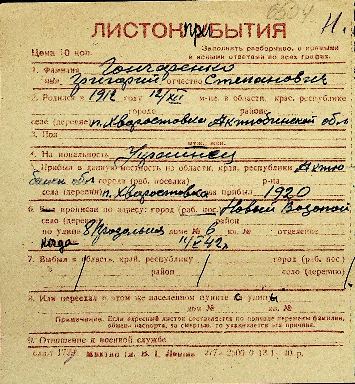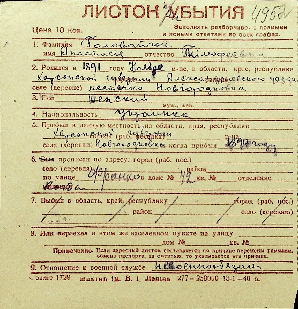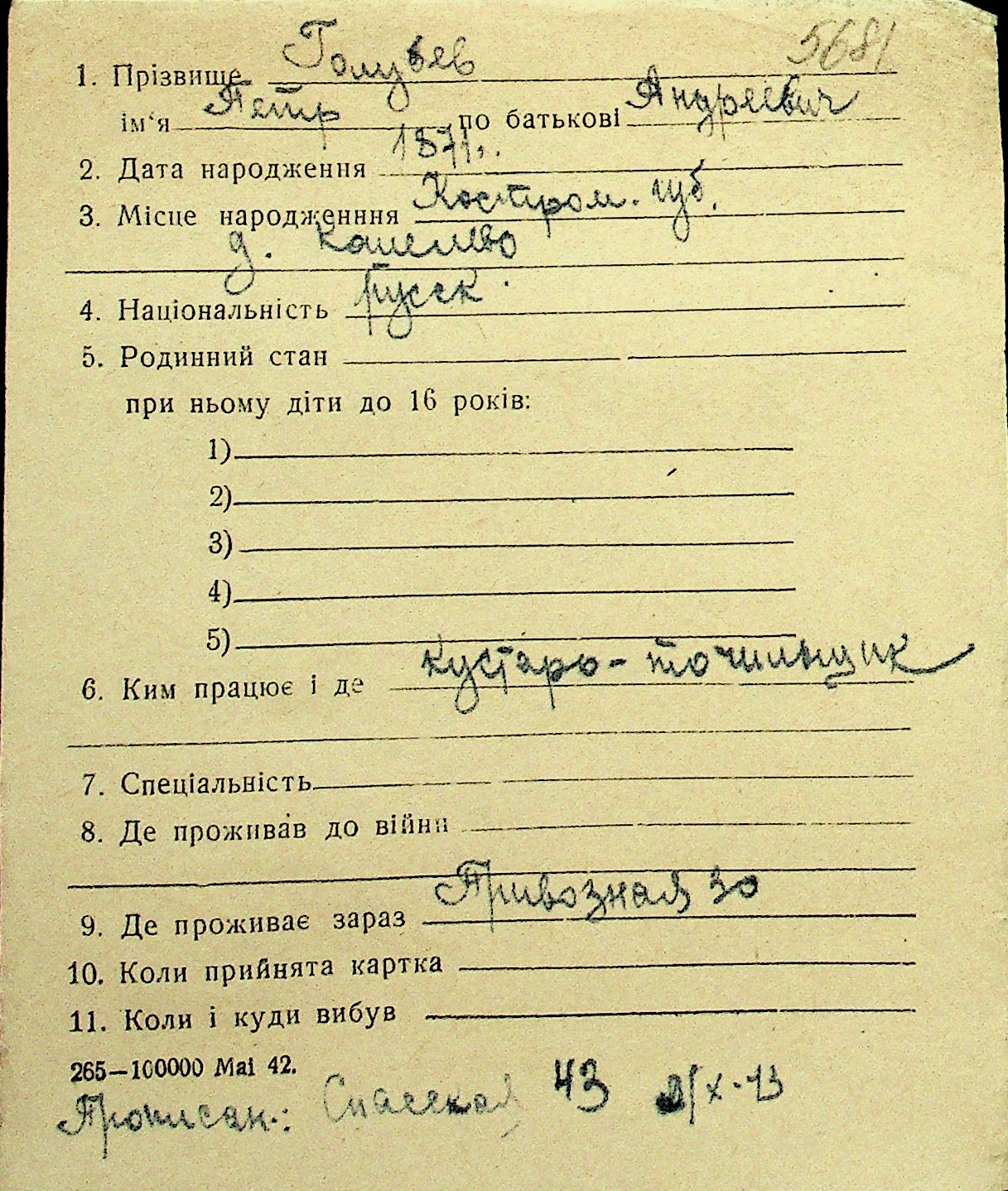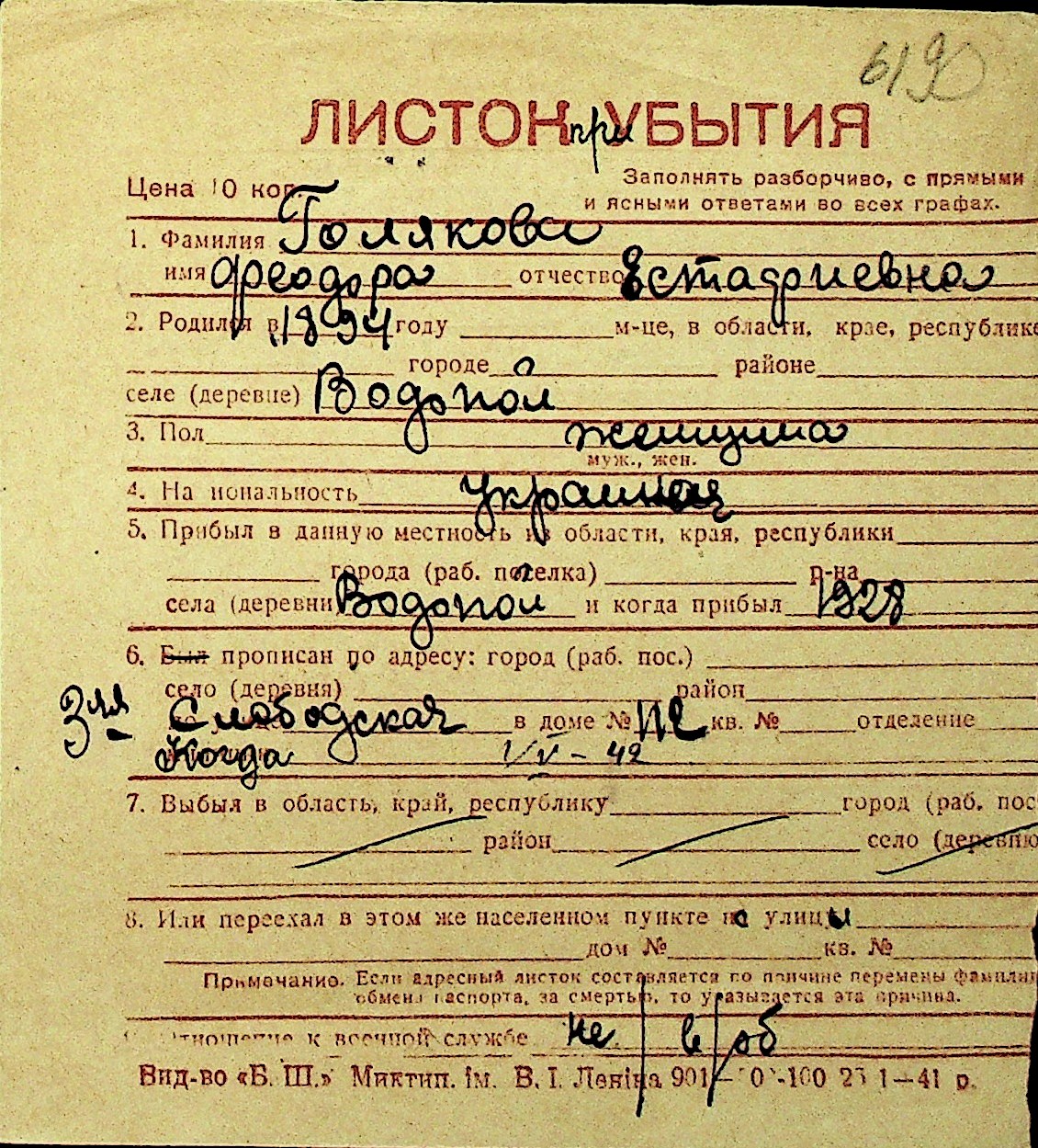 • • Перелік карток до фонду № Н-1016