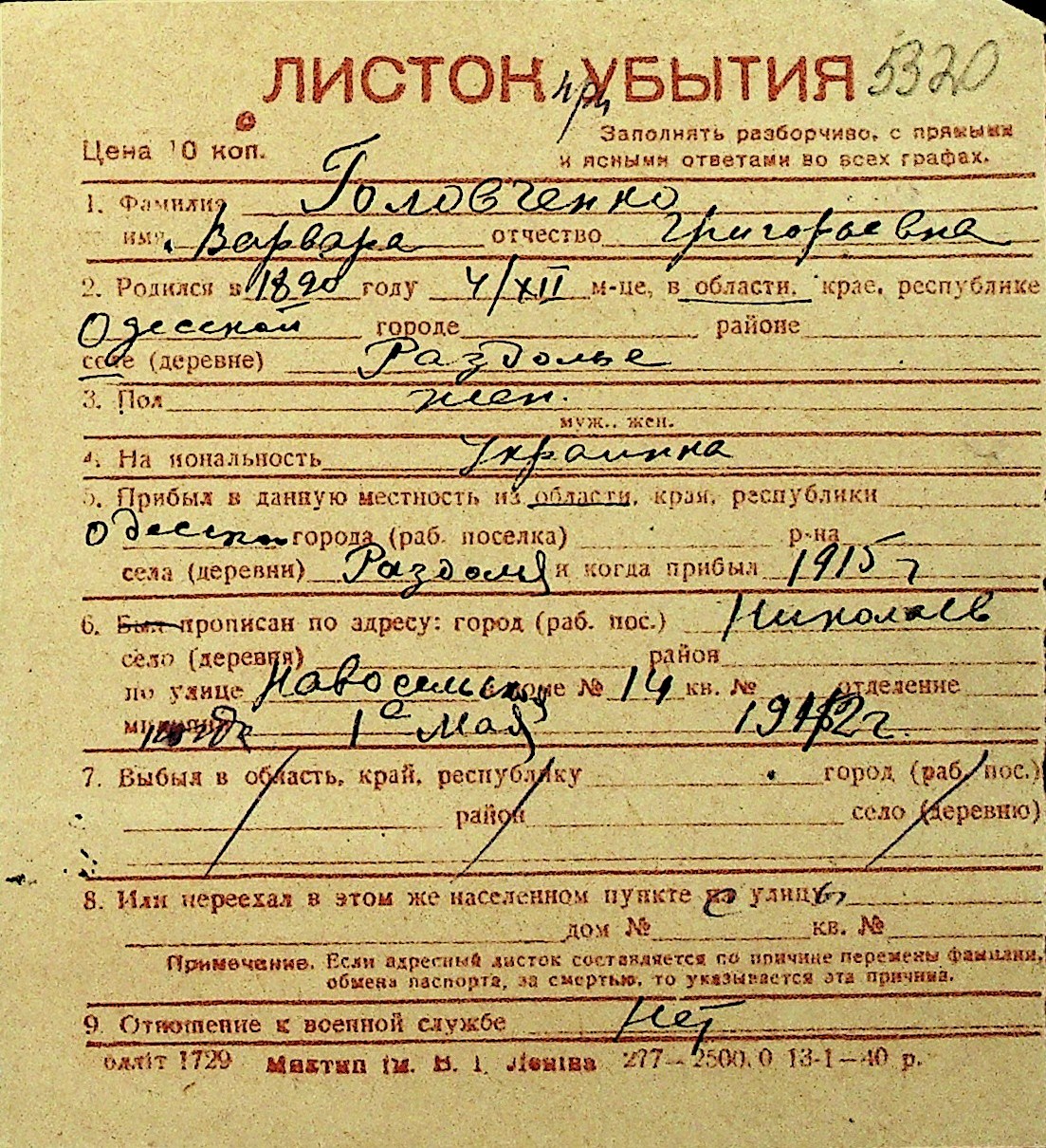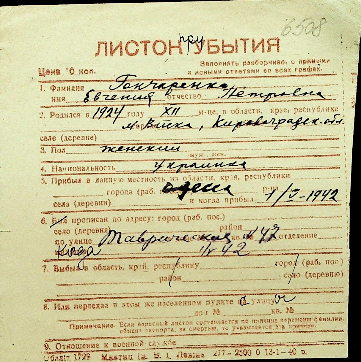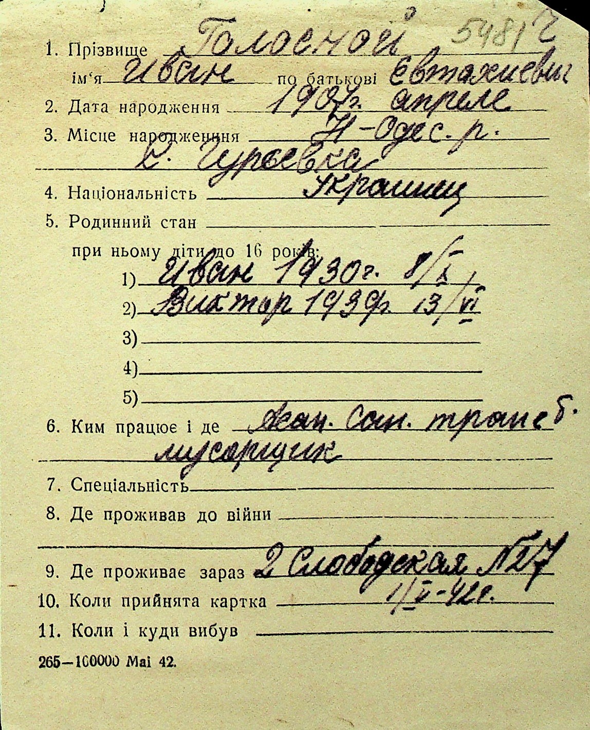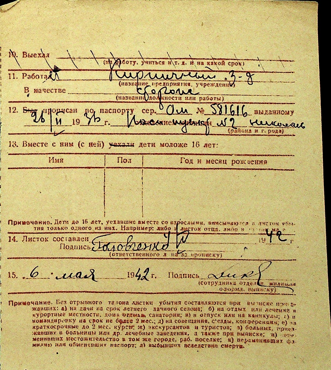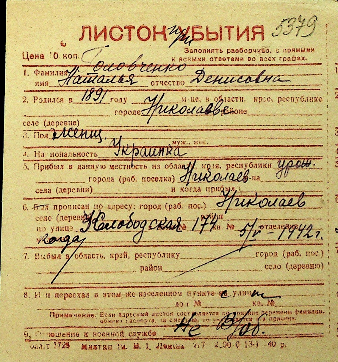 • • Перелік карток до фонду № Н-1016