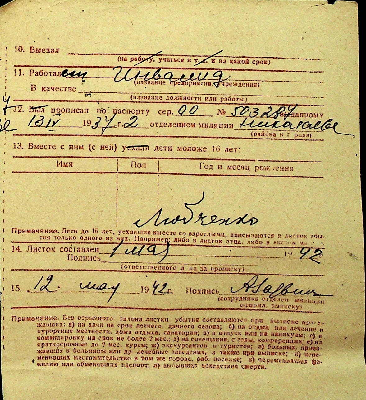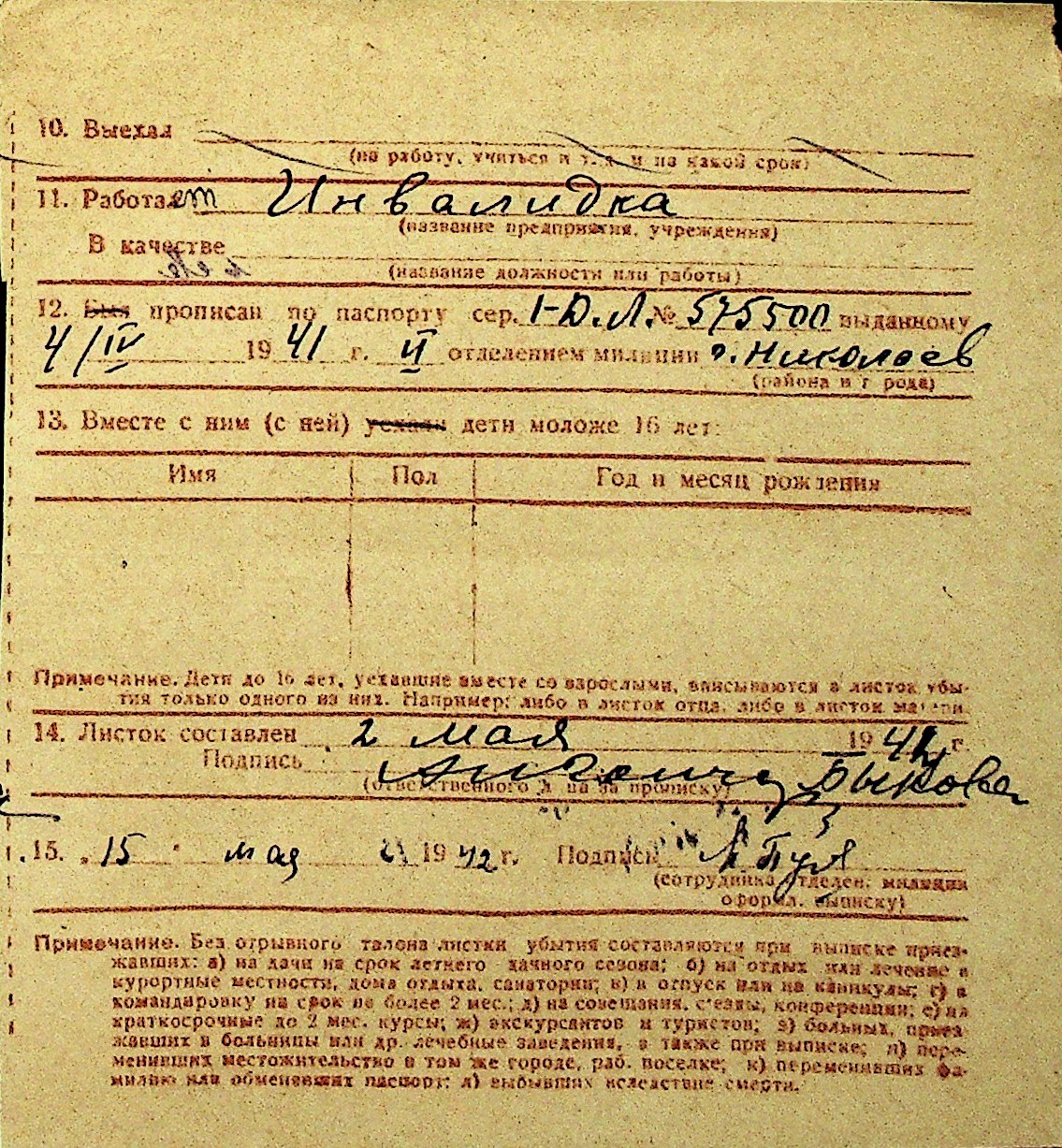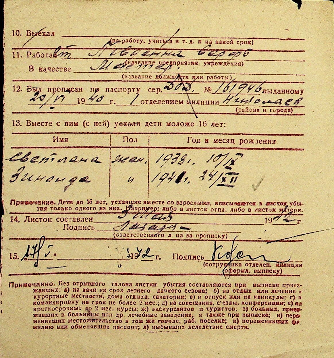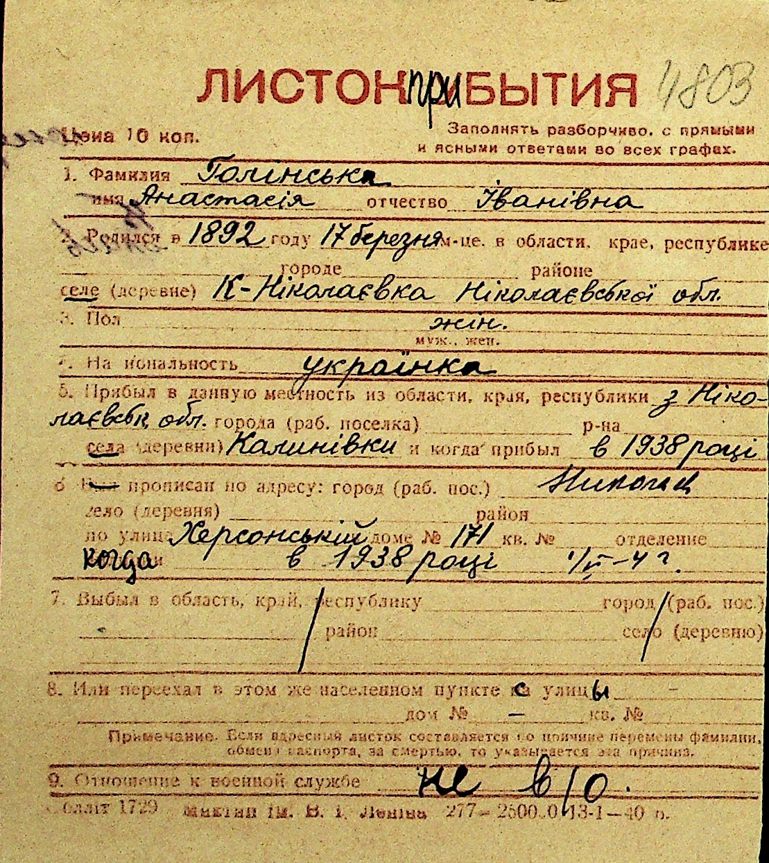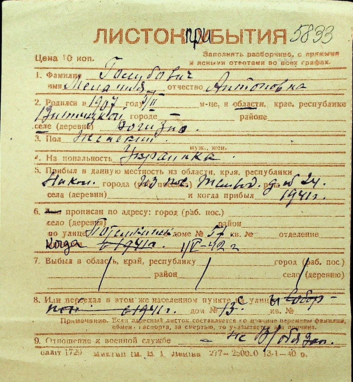 • • Перелік карток до фонду № Н-1016
