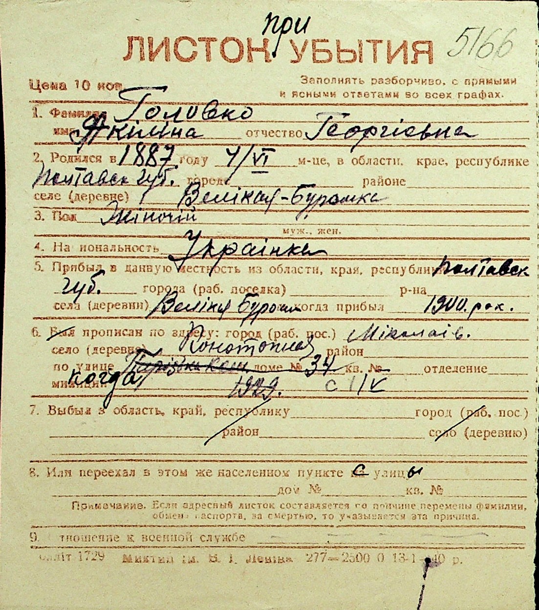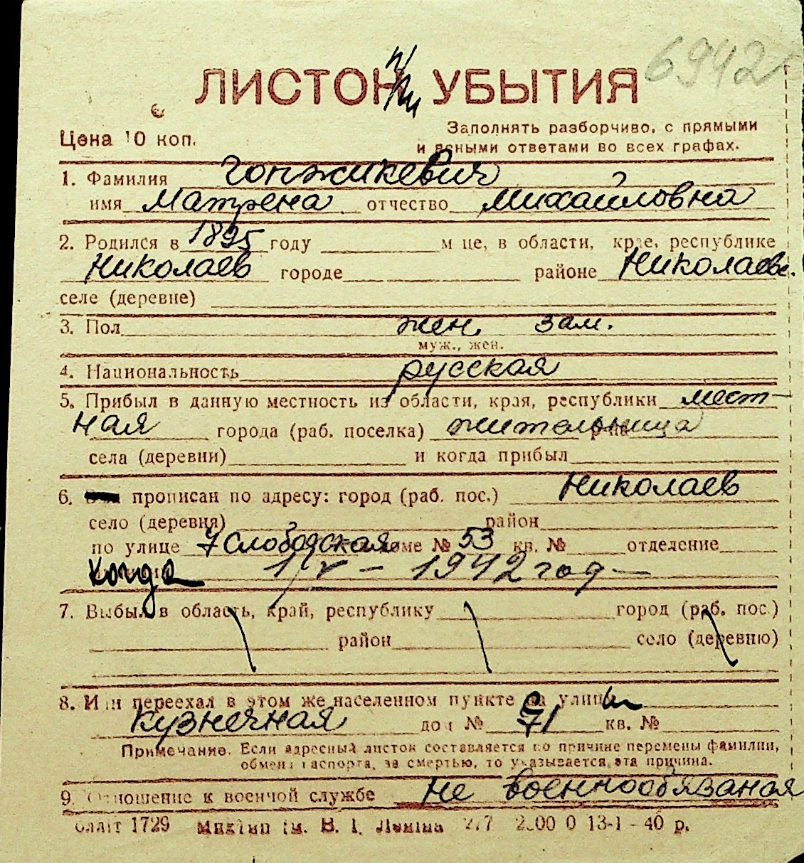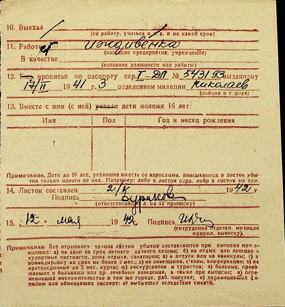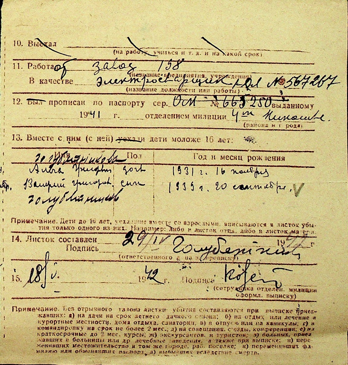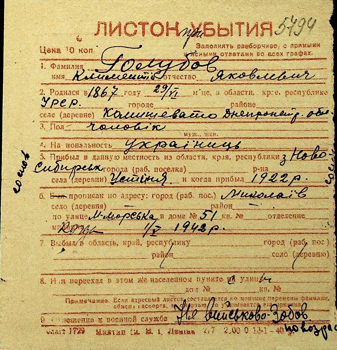 • • Перелік карток до фонду № Н-1016